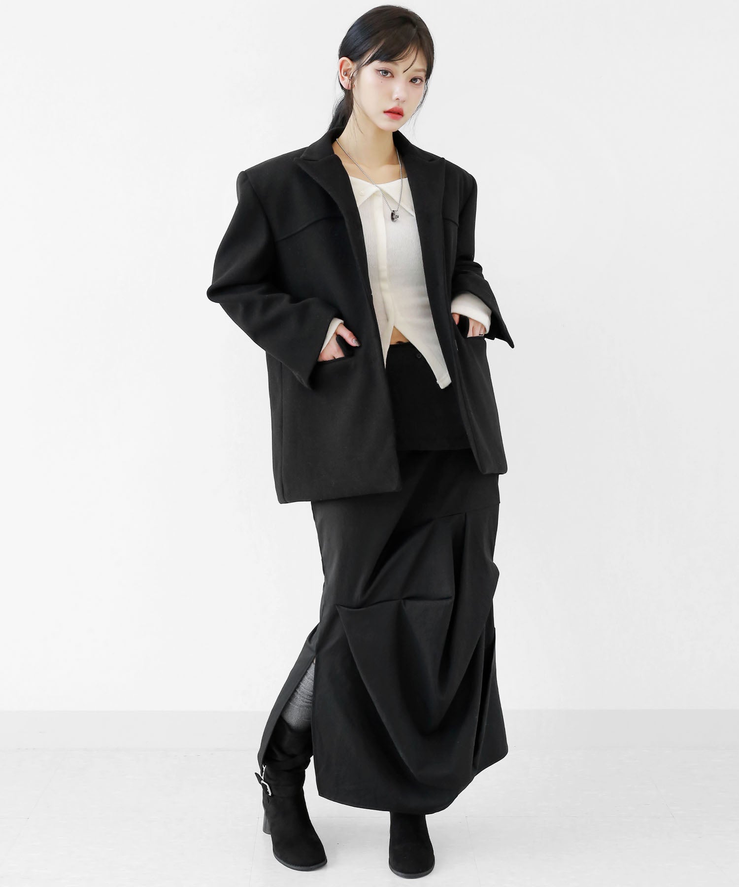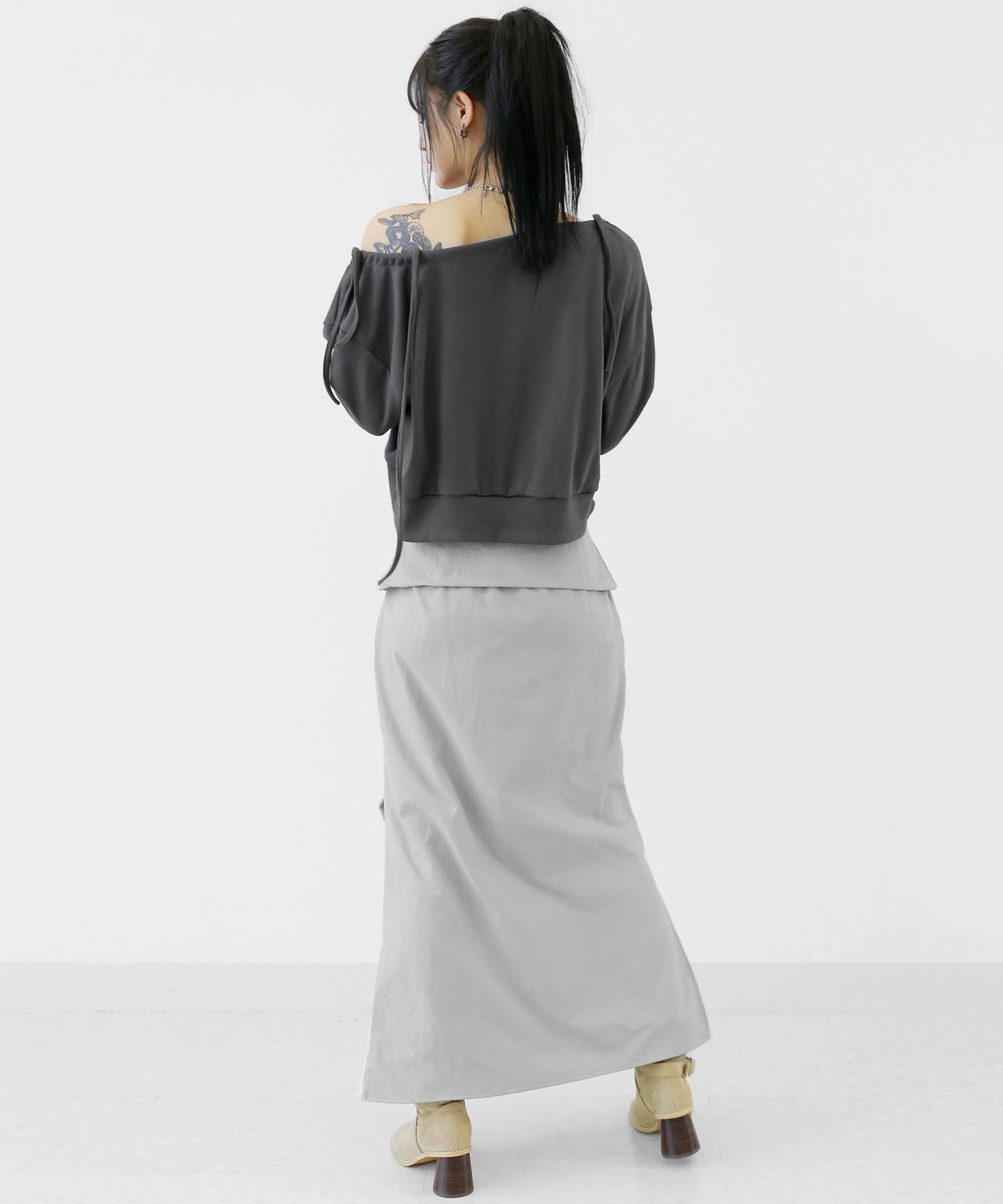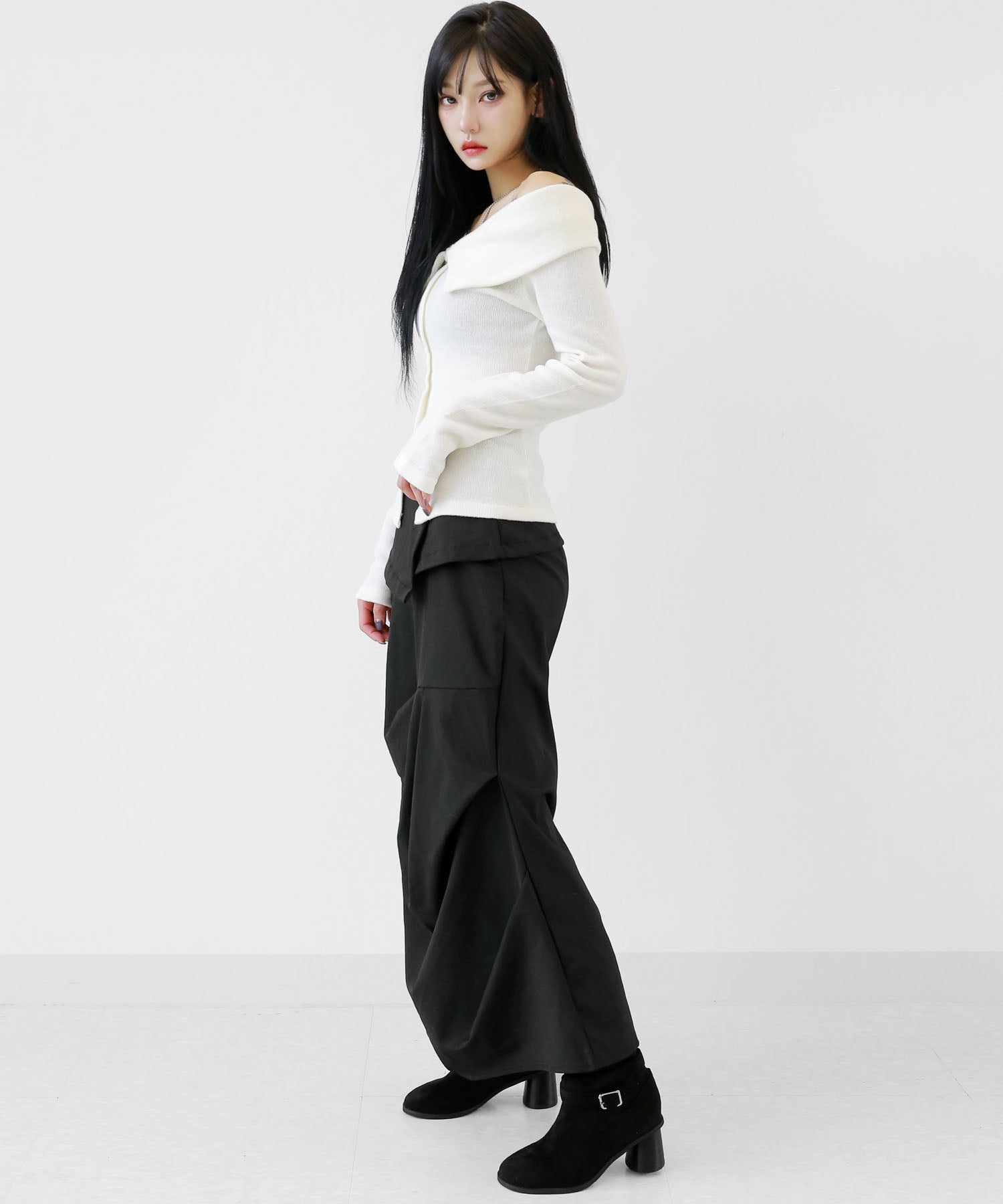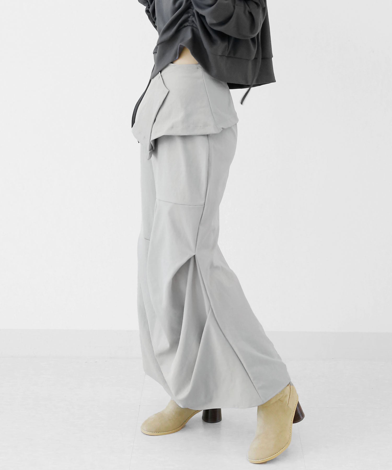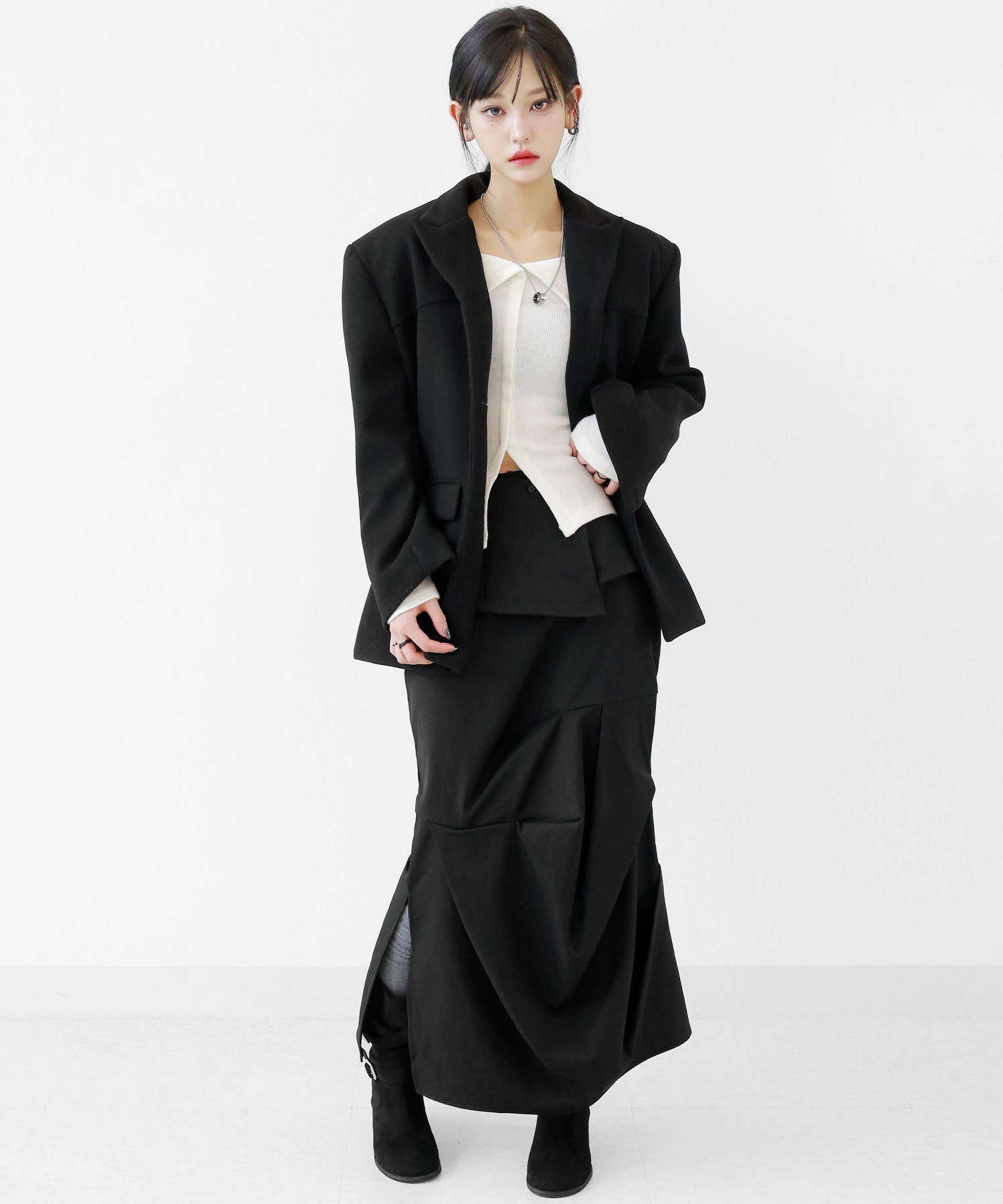 Turn heads with this 2WAY wrap maxi skirt featuring an asymmetric pin-tuck design and deep side slit.