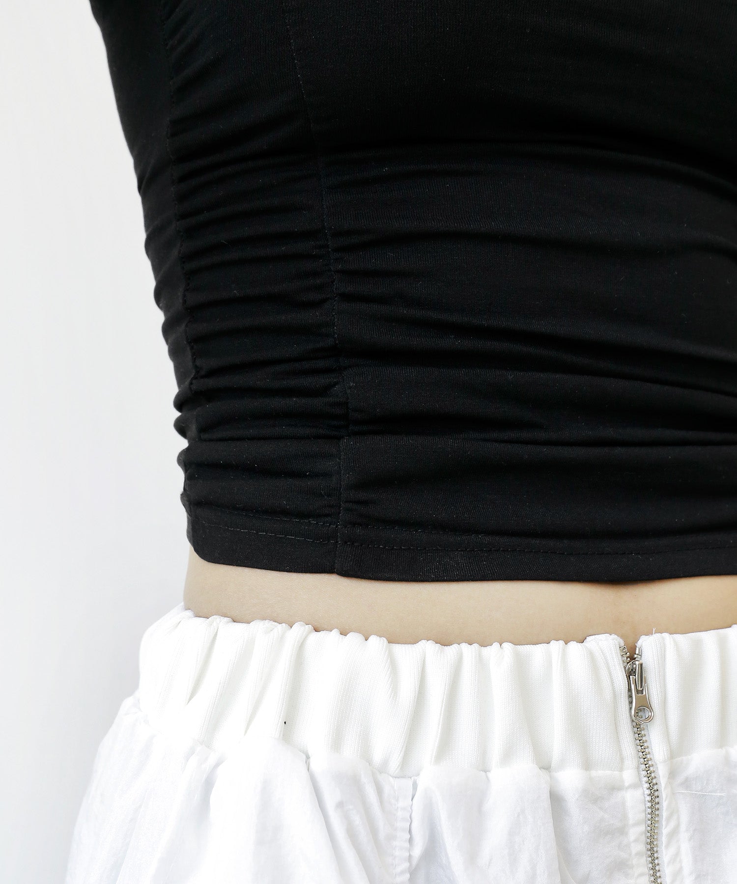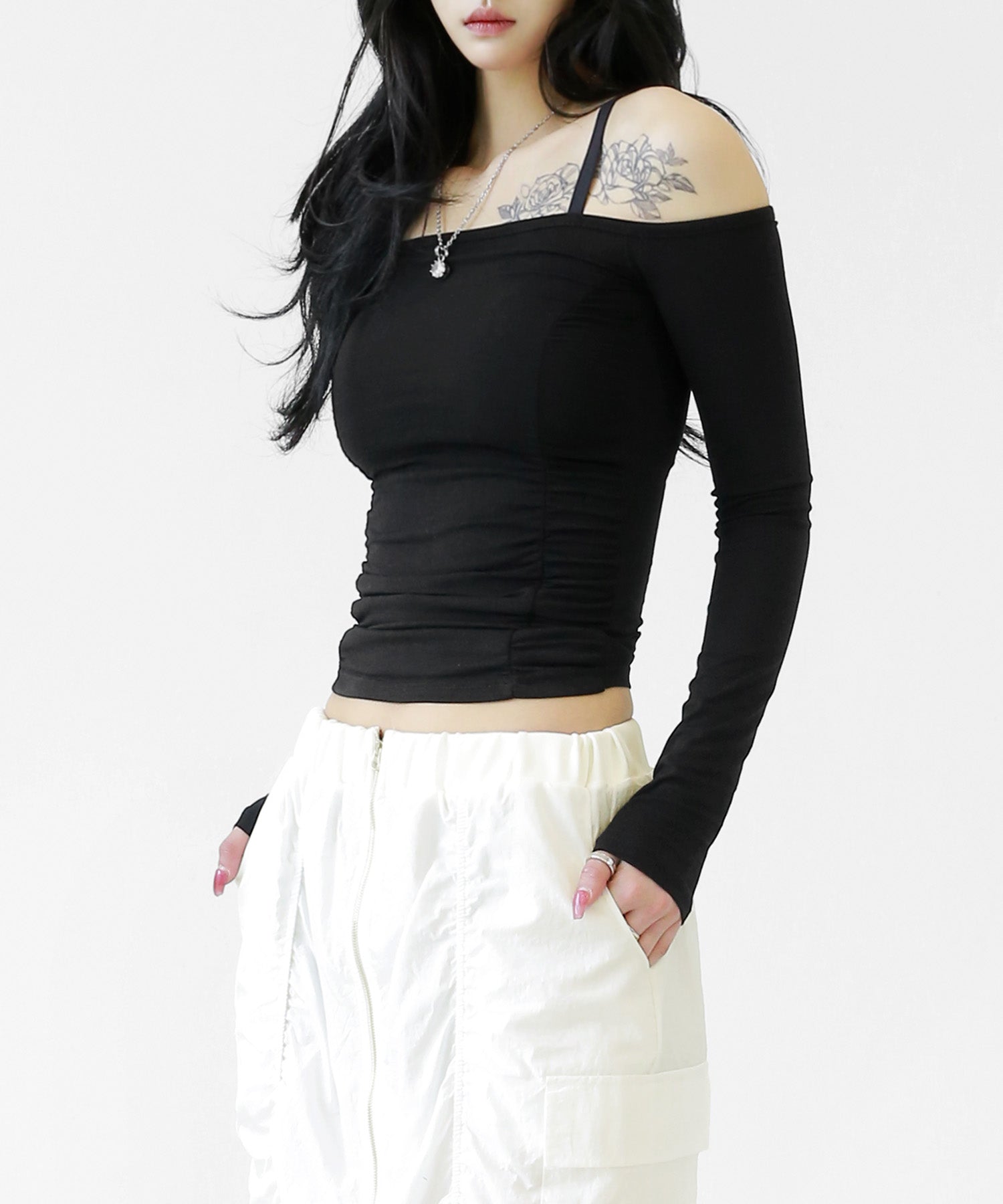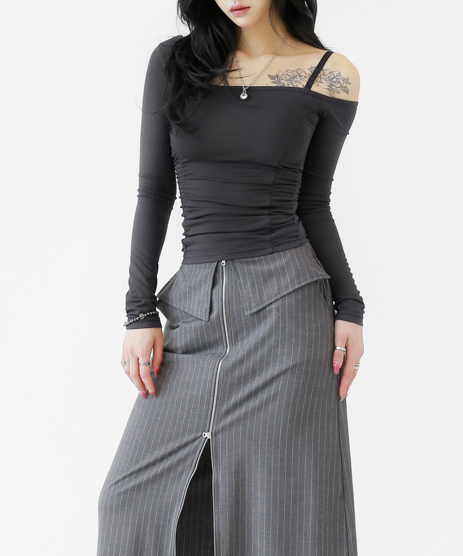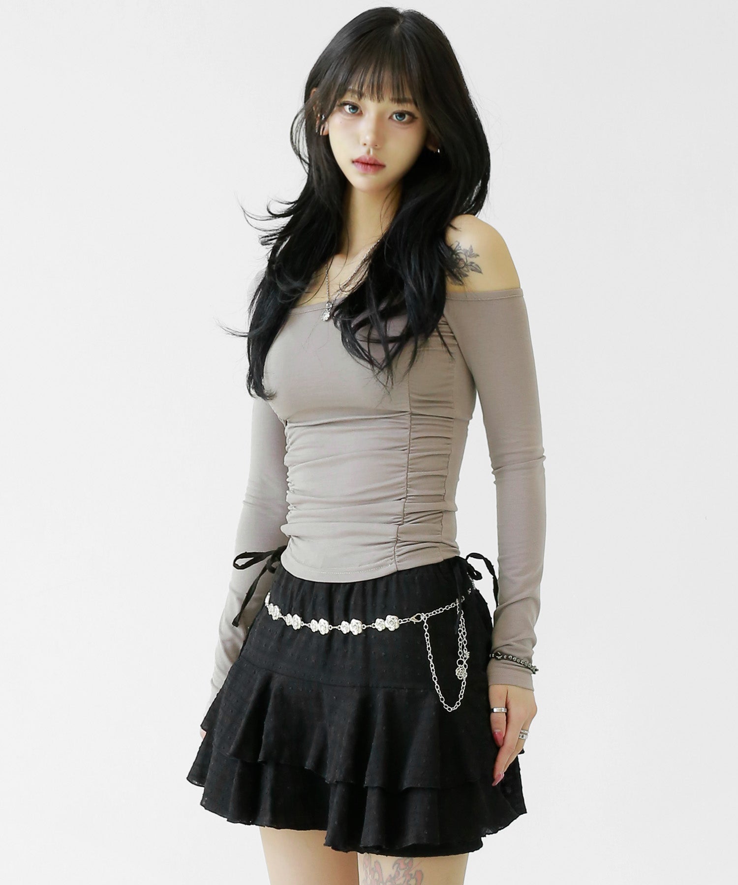 Turn heads with this statement one-shoulder crop top featuring flattering shirring and an unbalanced silhouette. Designed to enhance your shape with a slim fit and cropped cut, it brings that bold "K-Fashion" energy loved by trendsetters in Korea and Japan. Pairs perfectly with denim, cargo pants, or tailored slacks for a fashion-forward look