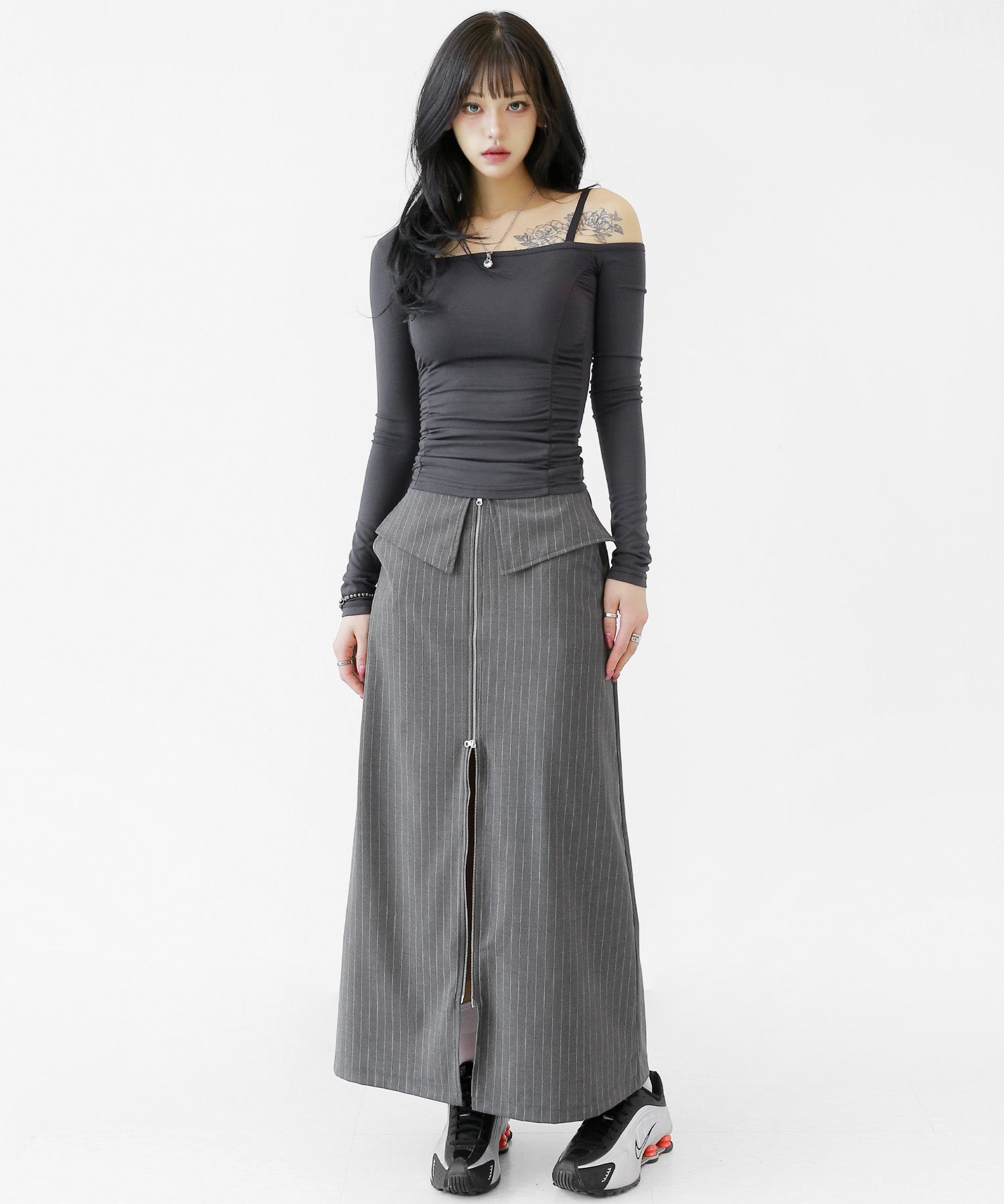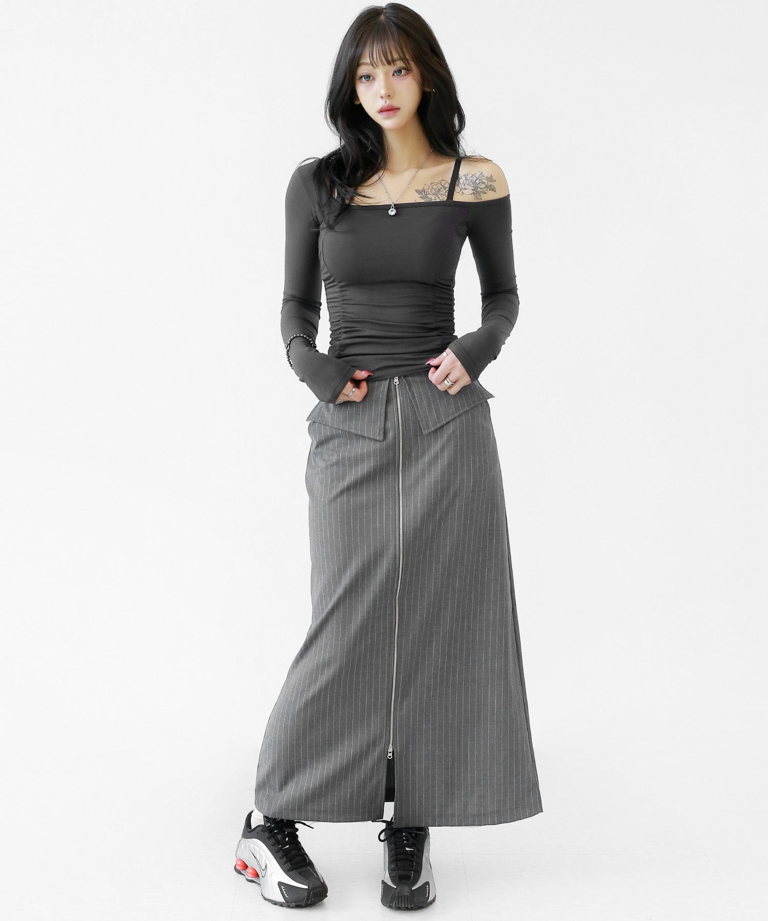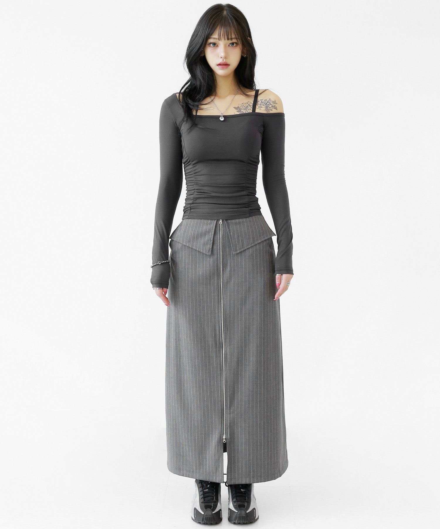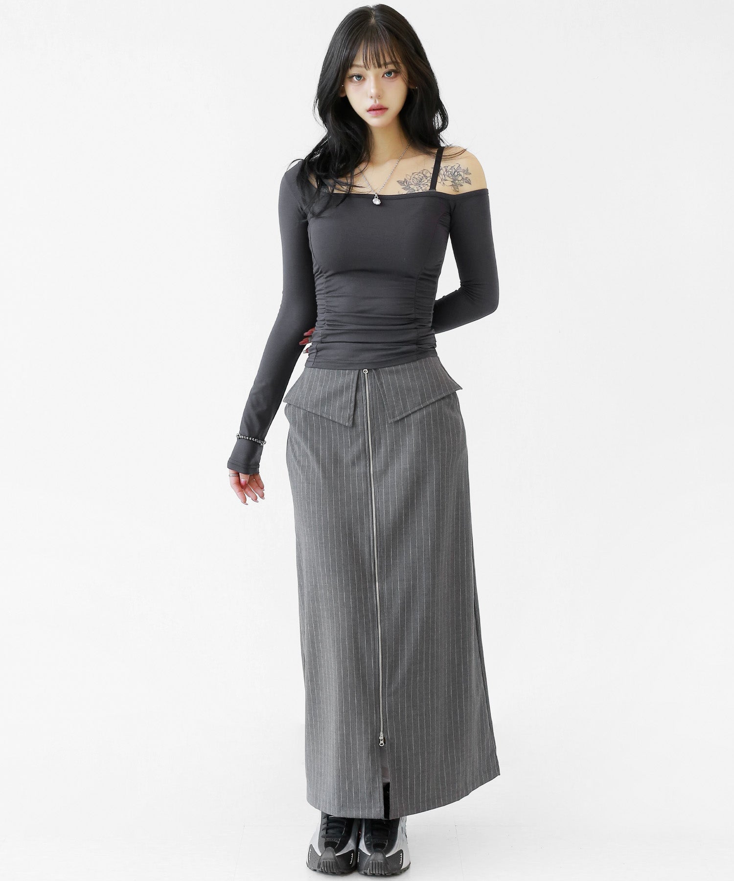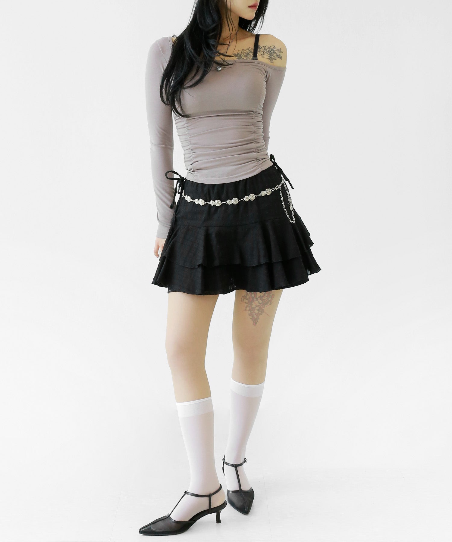 Turn heads with this statement one-shoulder crop top featuring flattering shirring and an unbalanced silhouette. Designed to enhance your shape with a slim fit and cropped cut, it brings that bold "K-Fashion" energy loved by trendsetters in Korea and Japan. Pairs perfectly with denim, cargo pants, or tailored slacks for a fashion-forward look