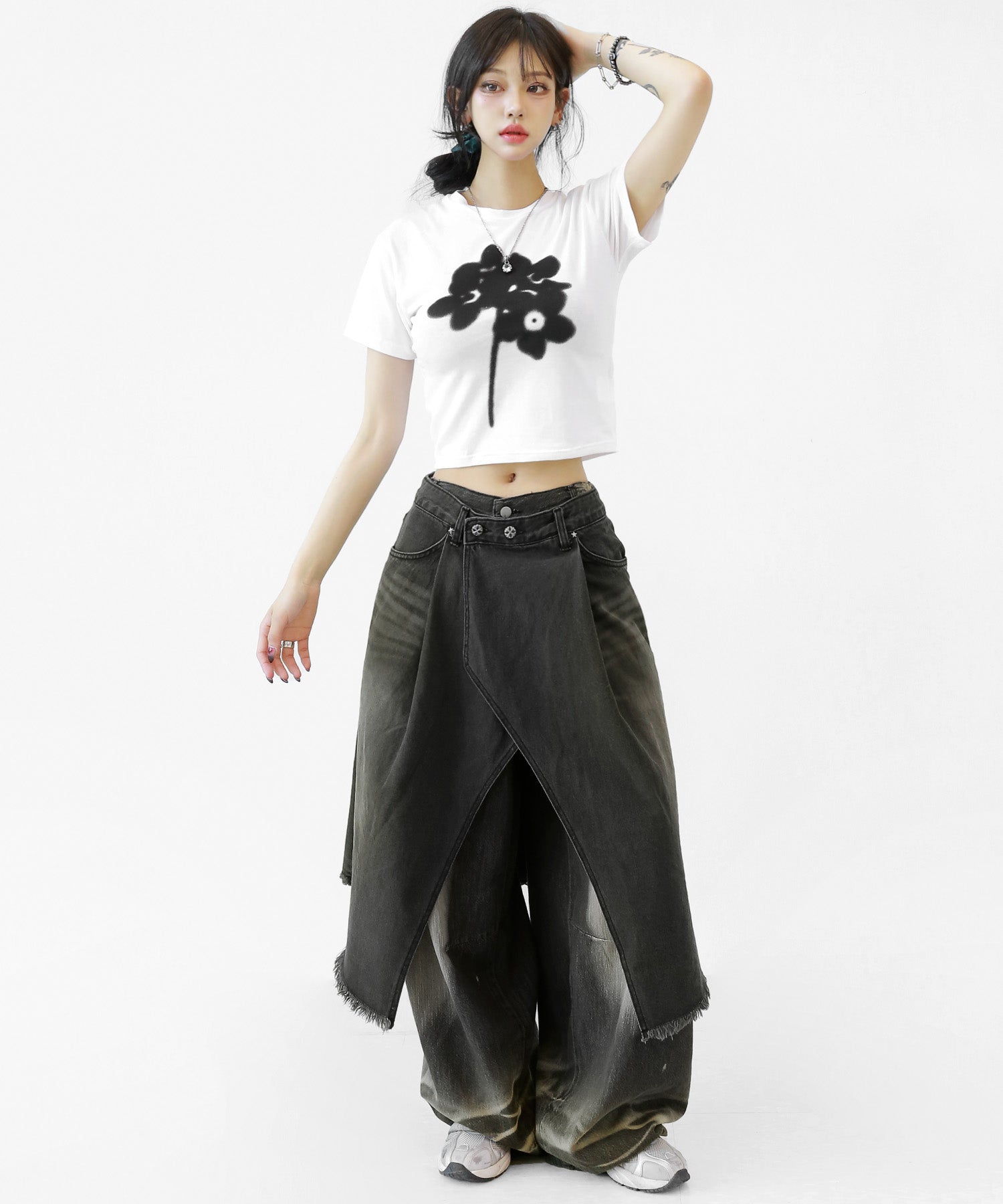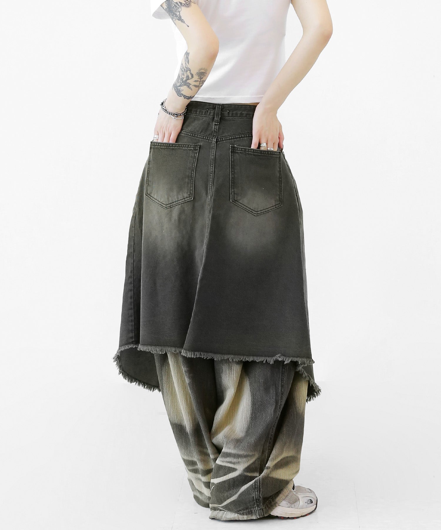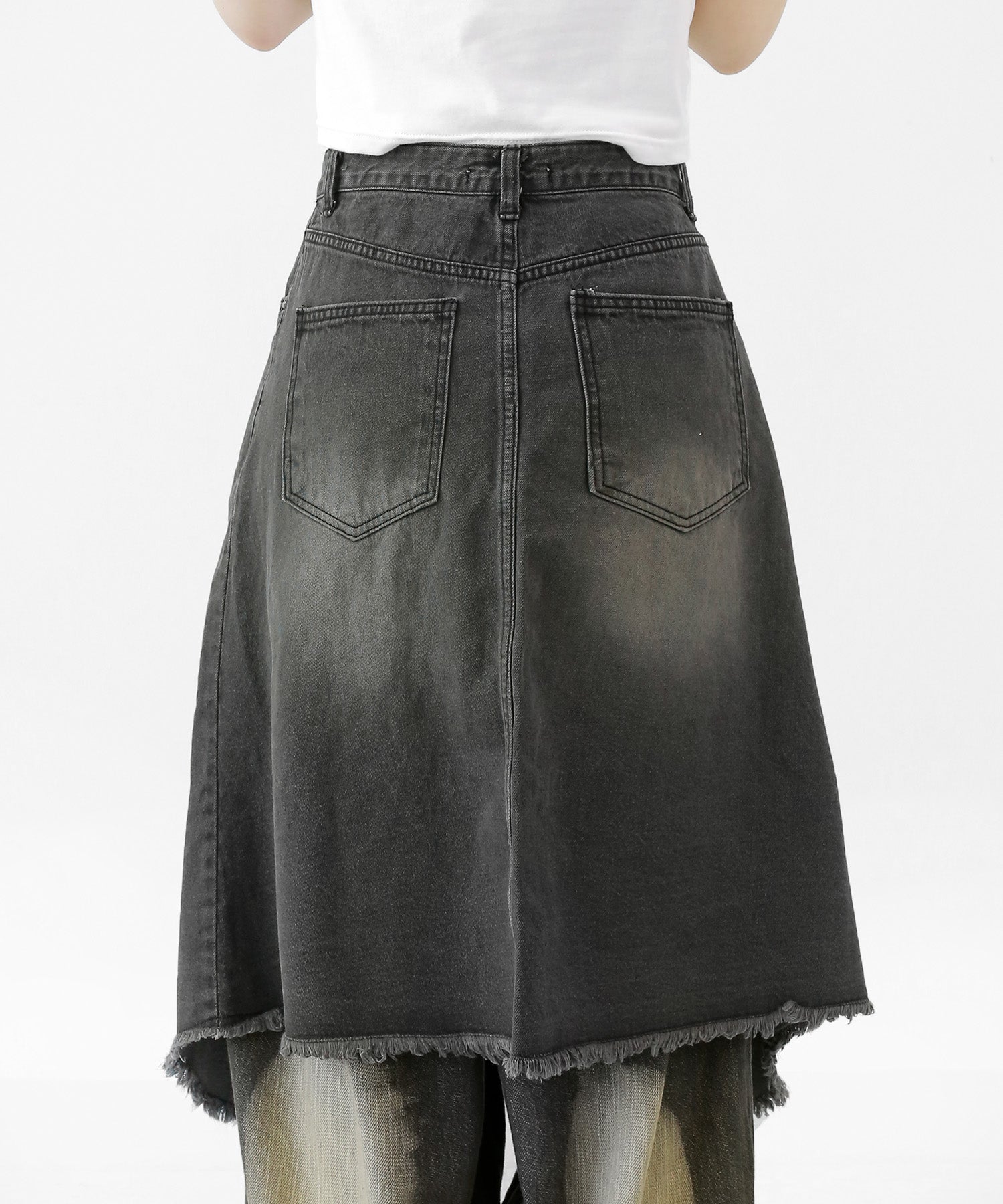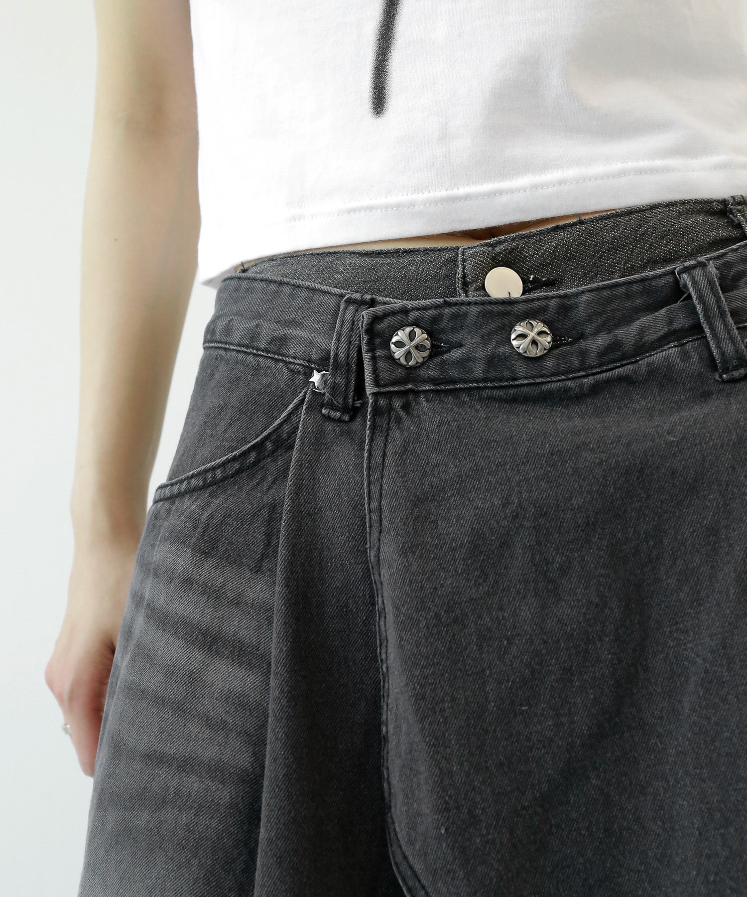 This asymmetrical wrap denim skirt brings a bold twist to a classic silhouette. With a 3-step adjustable waist and structured cotton denim, it’s designed for standout streetwear looks.
