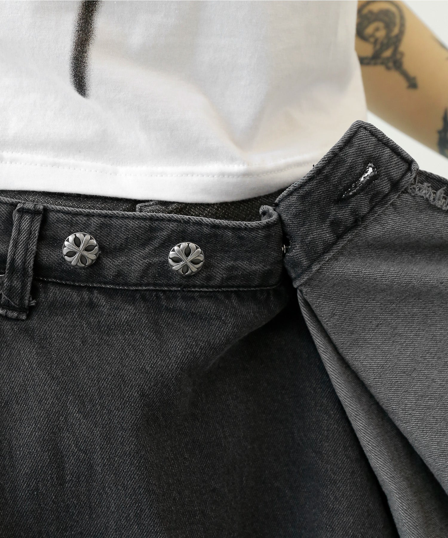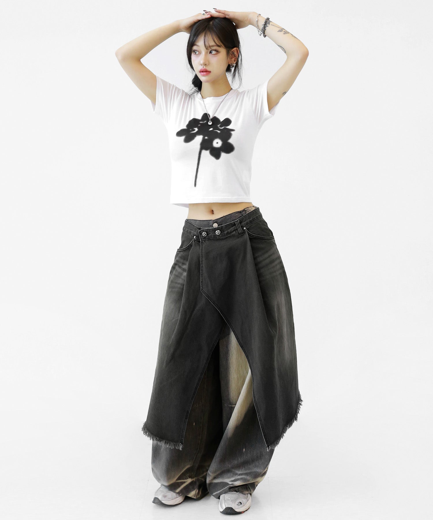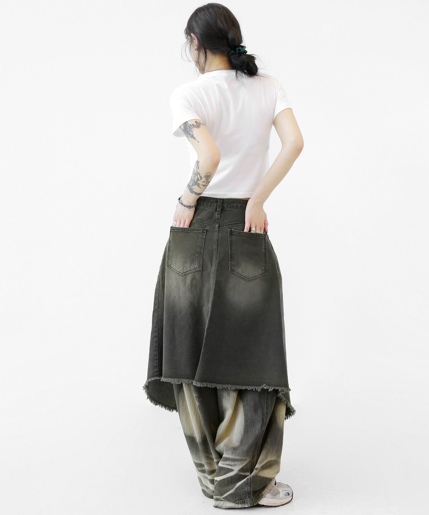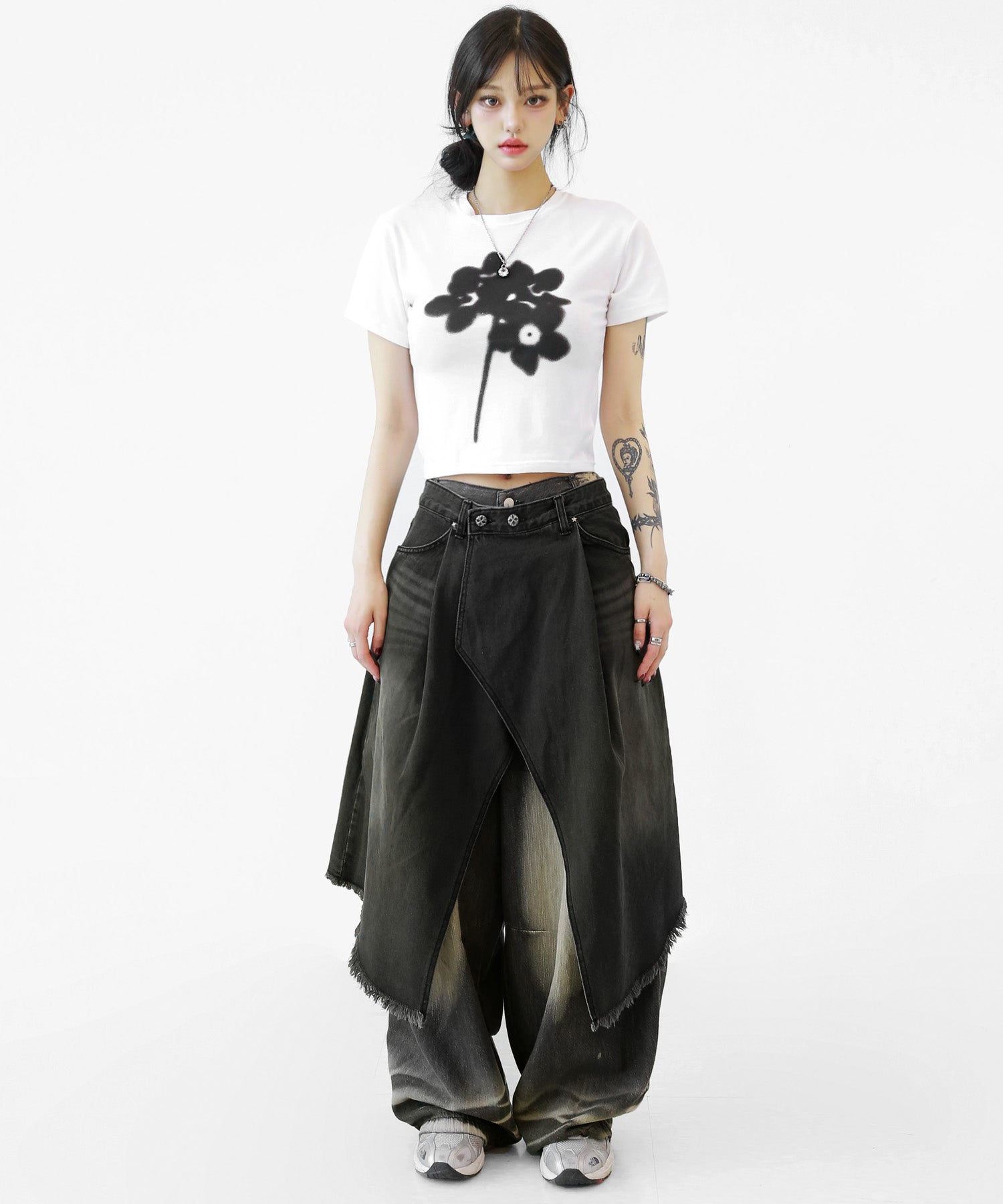 This asymmetrical wrap denim skirt brings a bold twist to a classic silhouette. With a 3-step adjustable waist and structured cotton denim, it’s designed for standout streetwear looks.