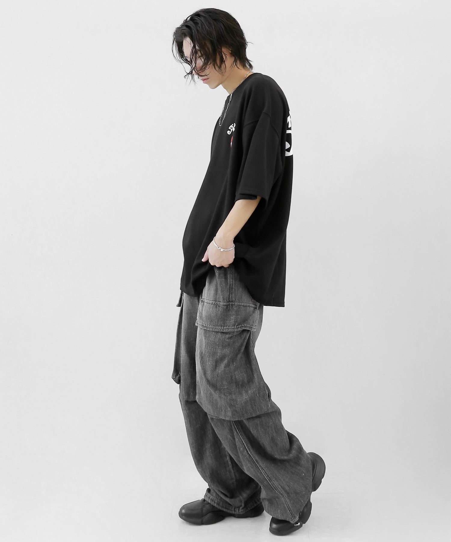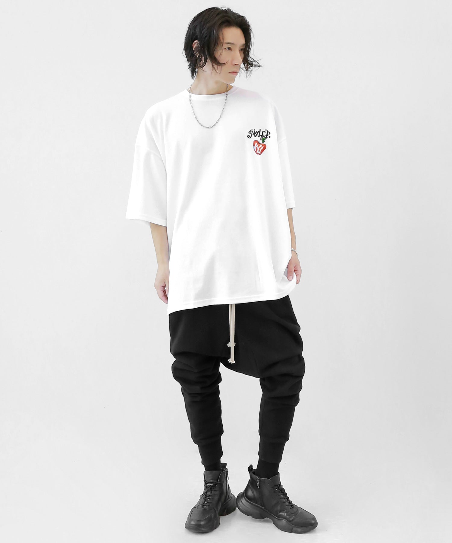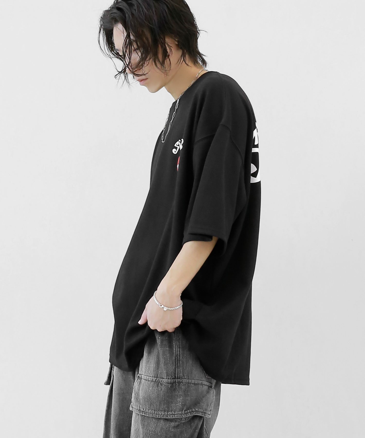 MAN: 178cm | 63kg | Wearing FREE SIZE (BLACK, WHITE)