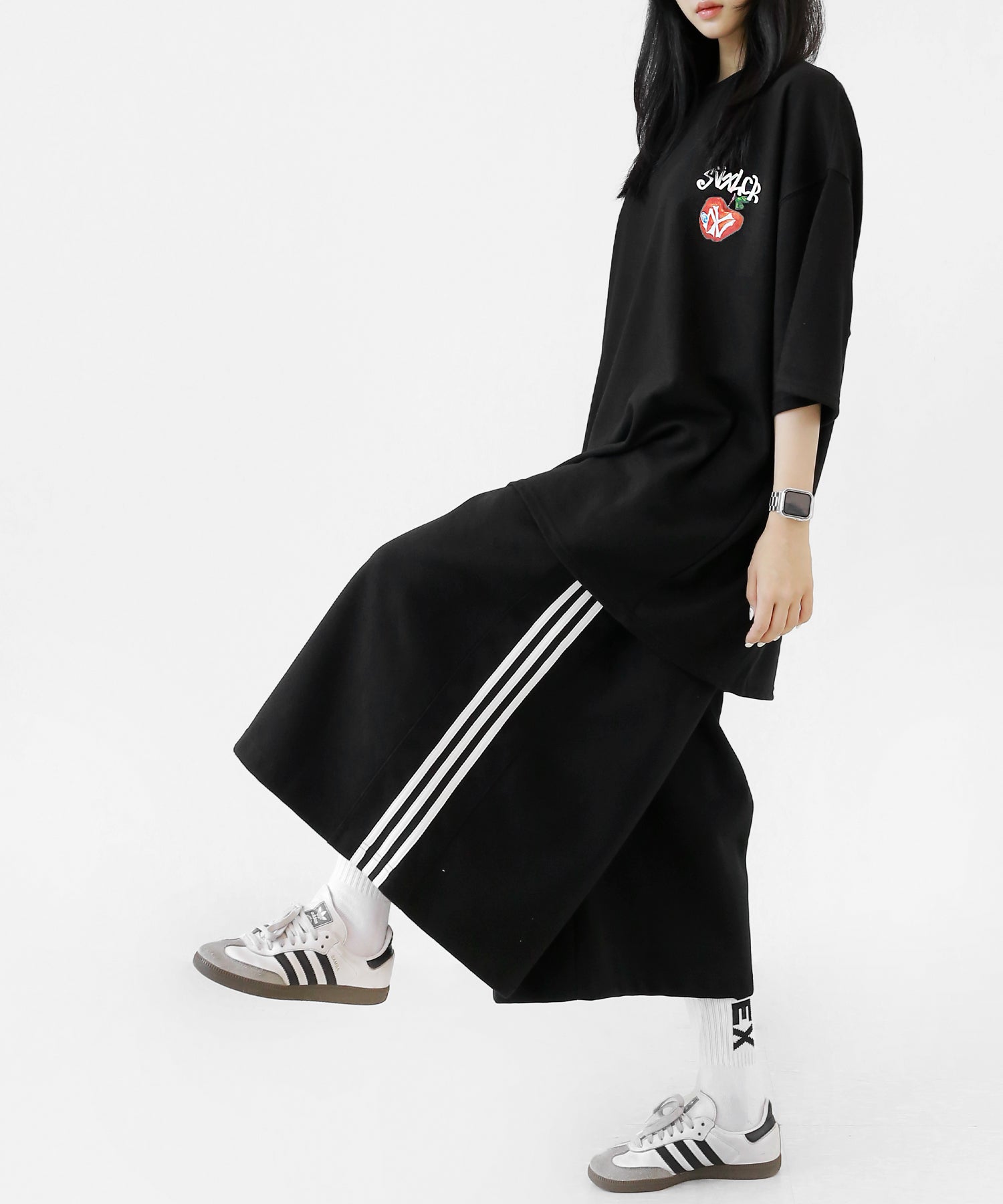 WOMAN: 167cm | 48kg | Wearing FREE SIZE (BLACK, WHITE)