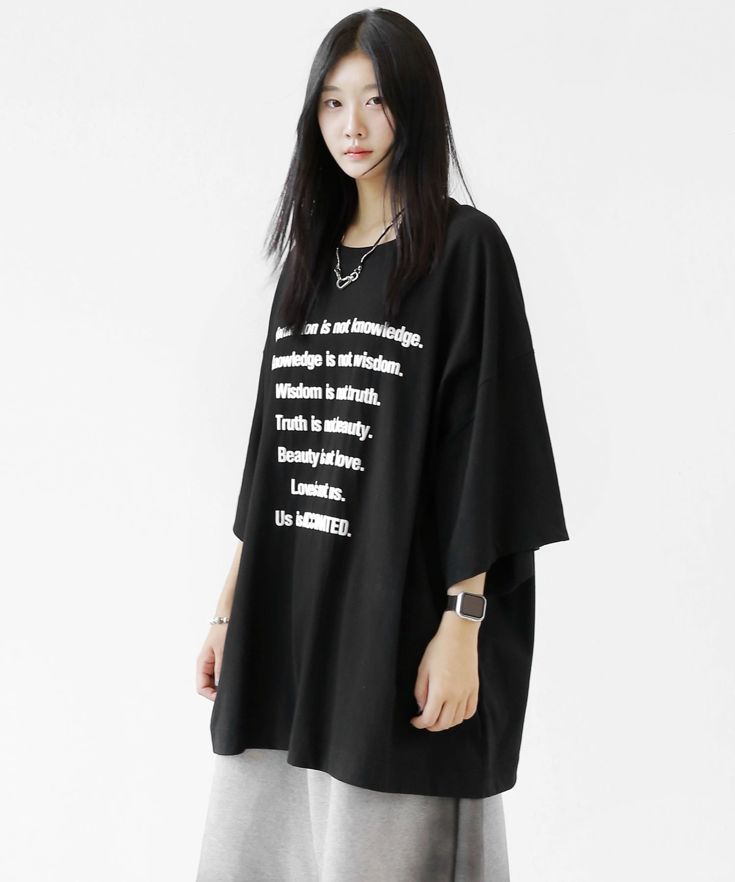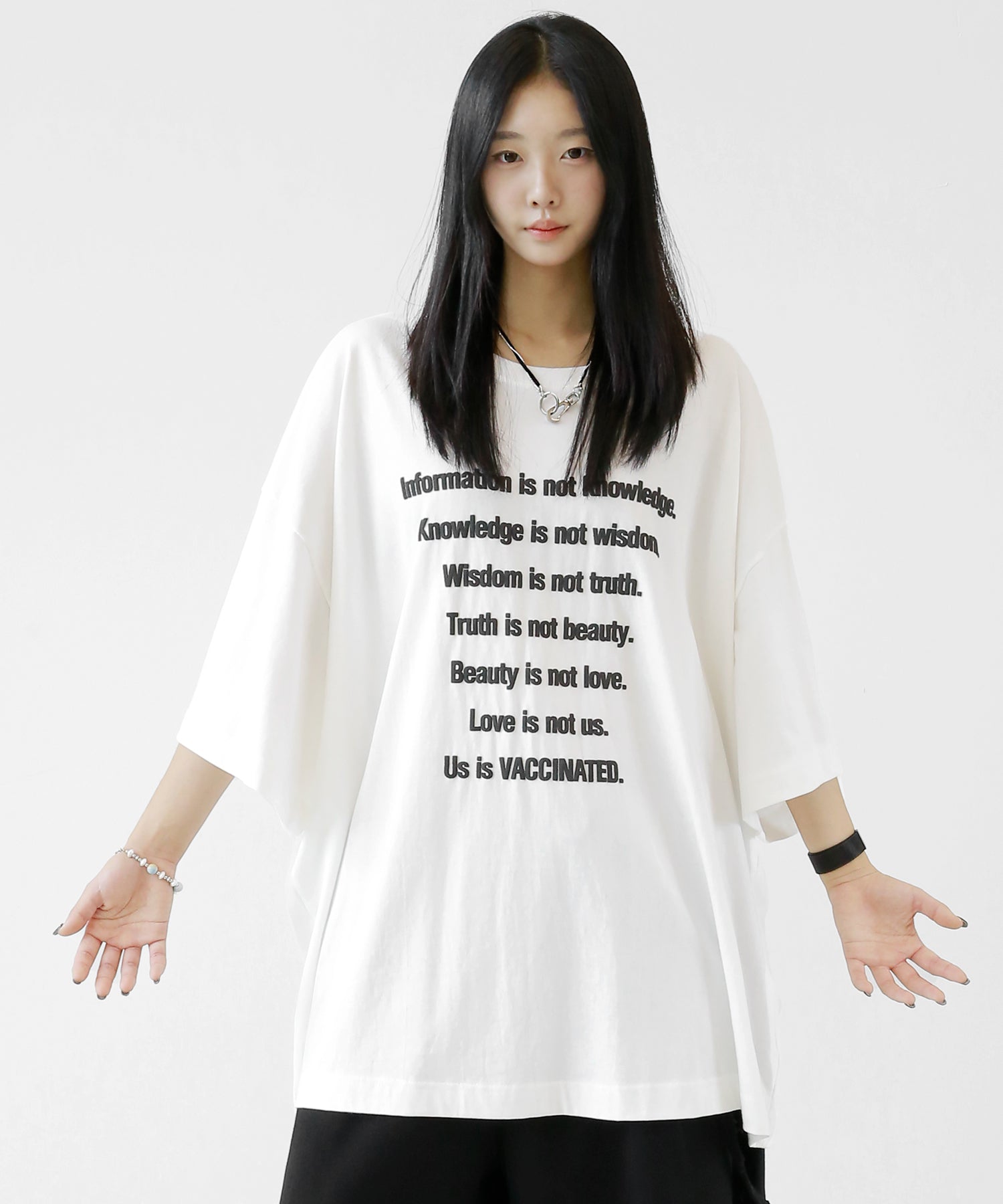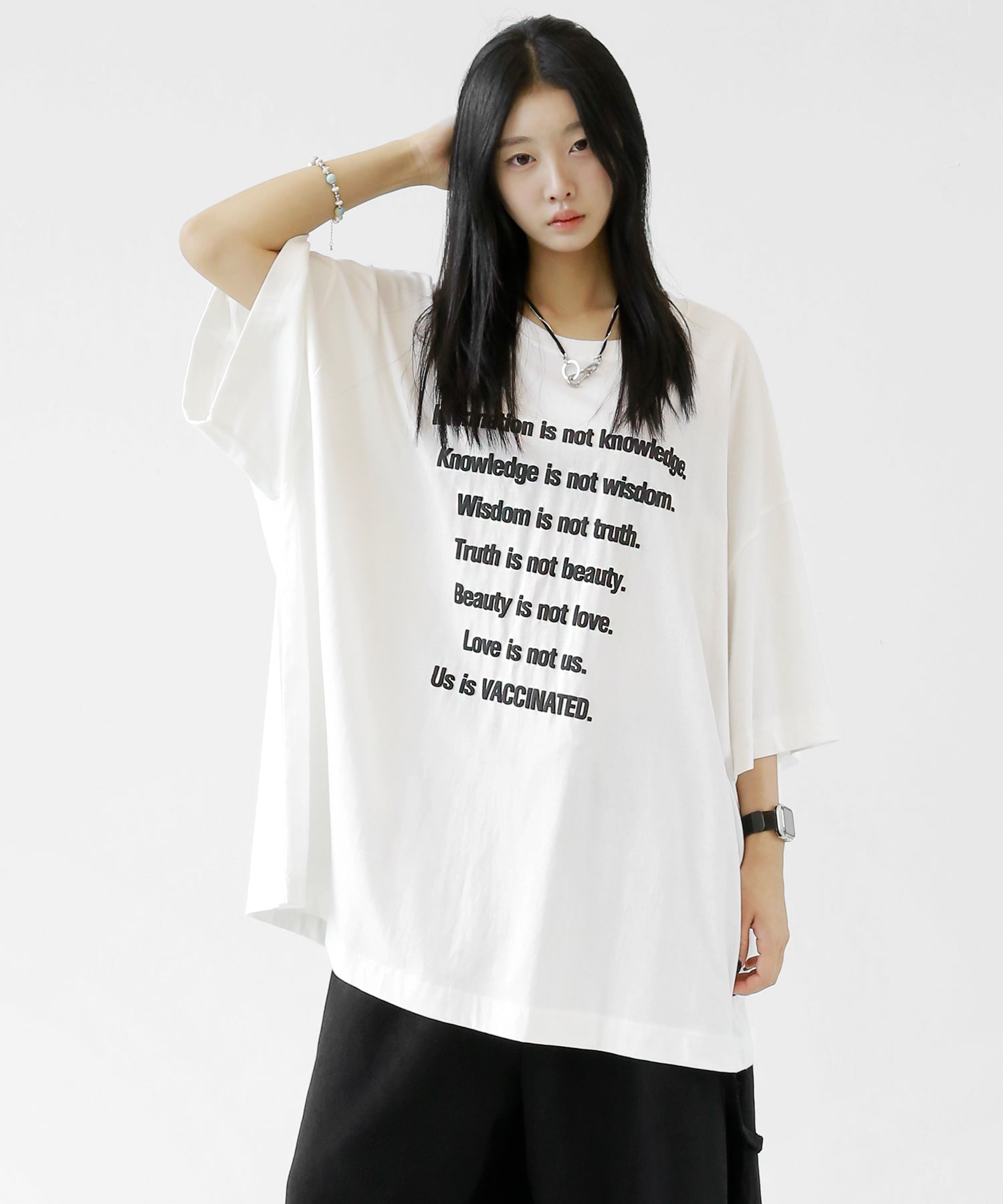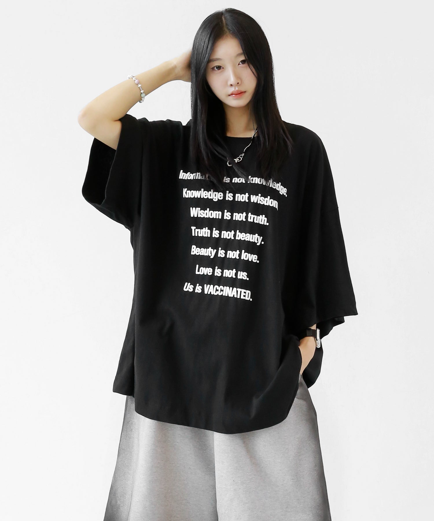 This oversized tee features a playful puff-print lettering design that adds a fun, tactile twist to your look. The extended seam detailing and roomy fit give it that trendy oversized silhouette loved in Korean and Japanese streetwear.