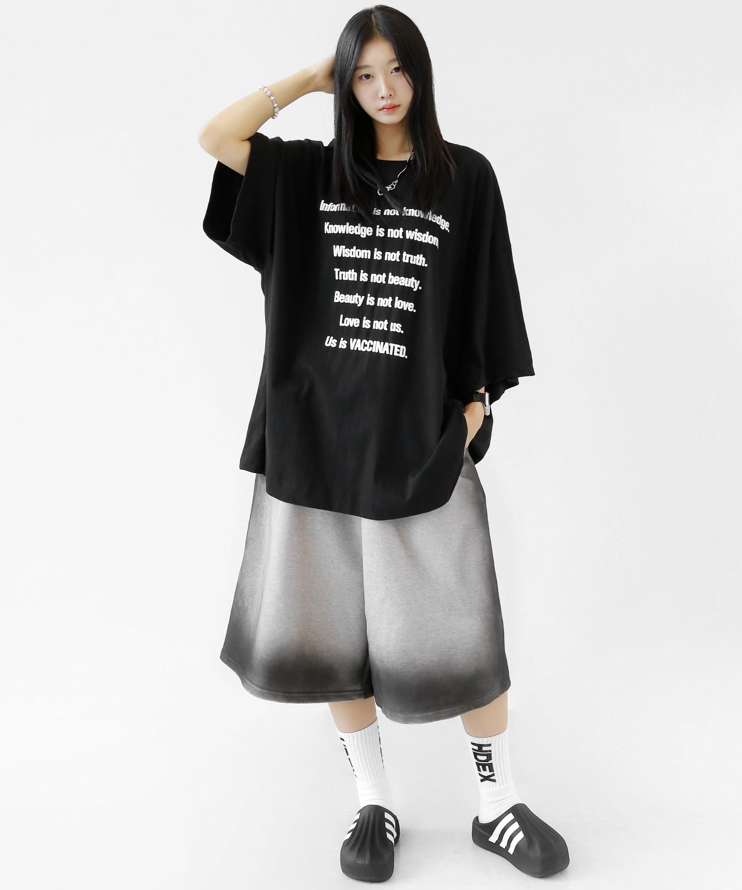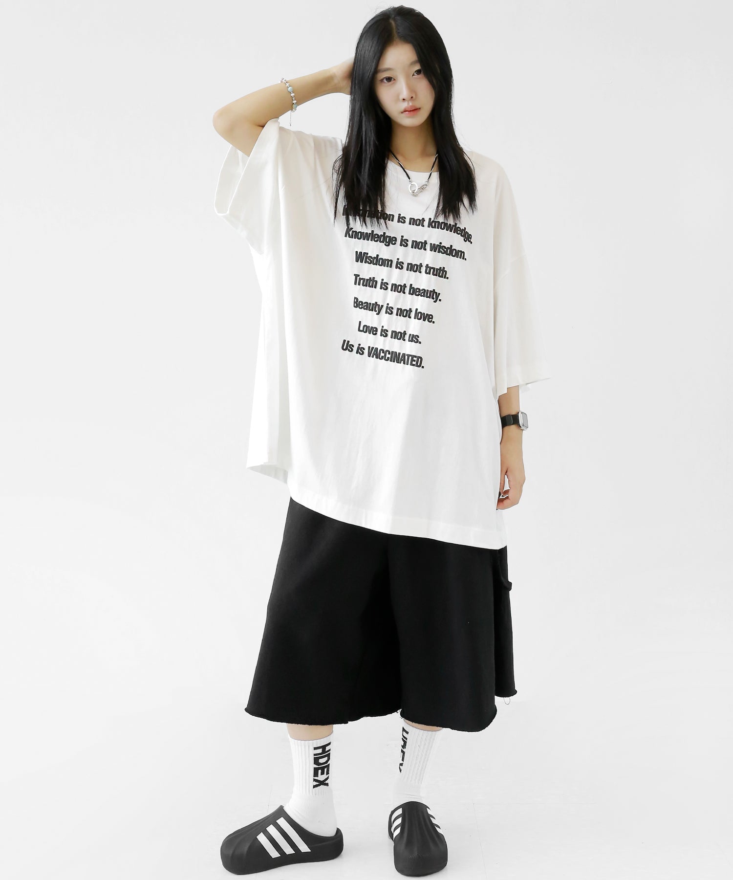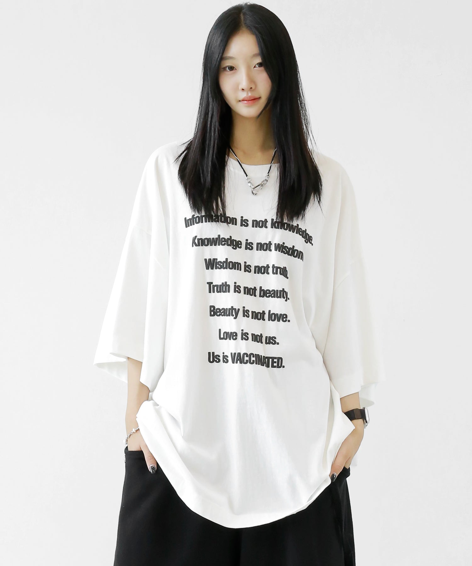 This oversized tee features a playful puff-print lettering design that adds a fun, tactile twist to your look. The extended seam detailing and roomy fit give it that trendy oversized silhouette loved in Korean and Japanese streetwear.