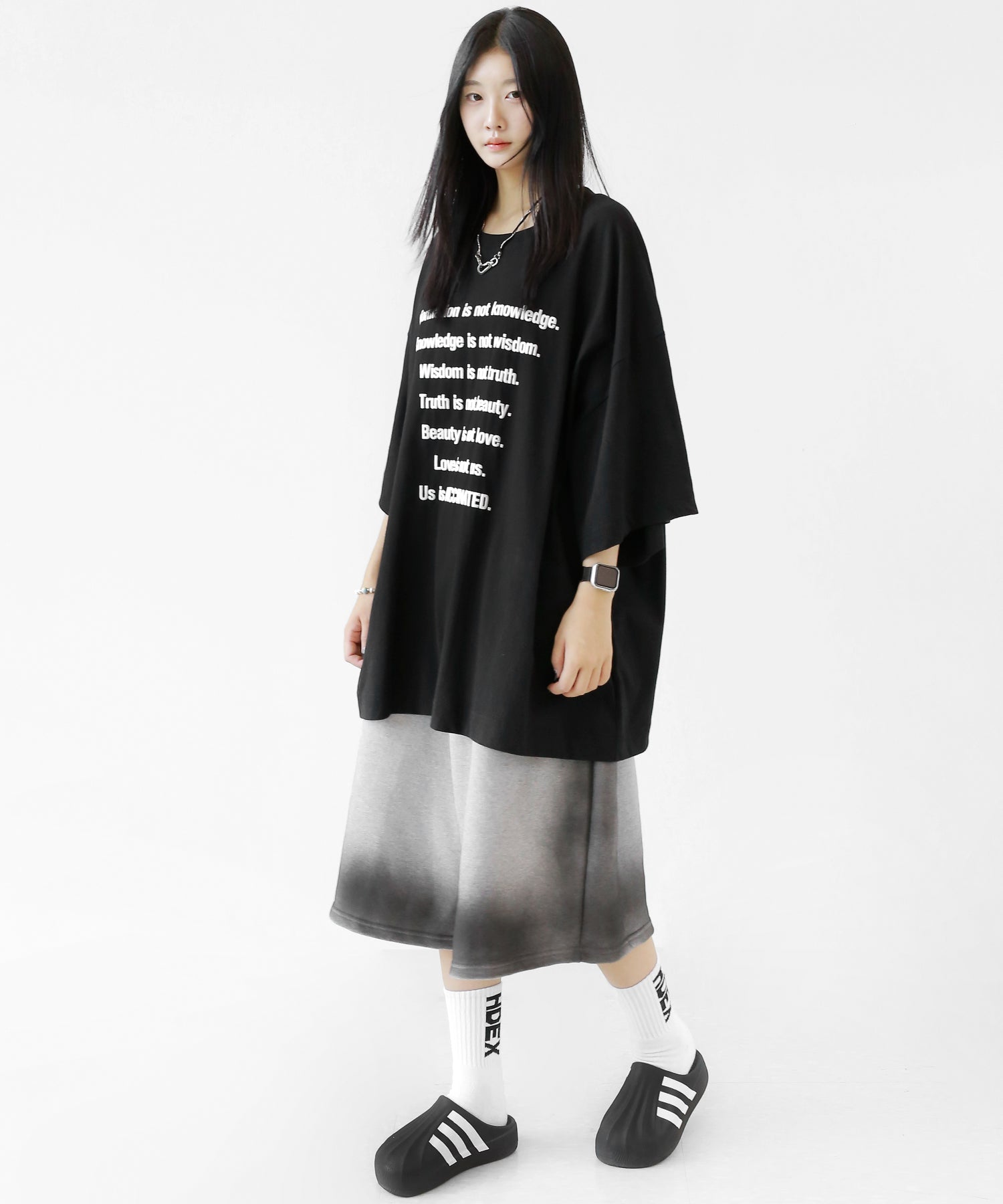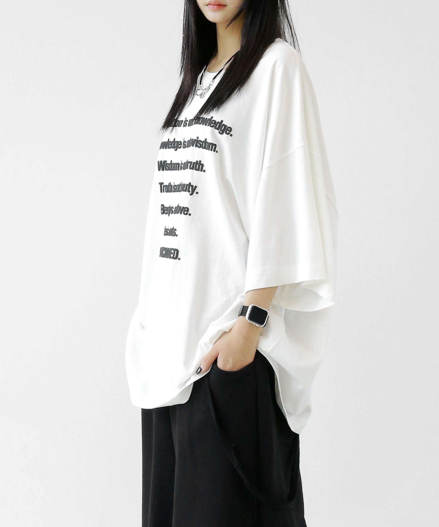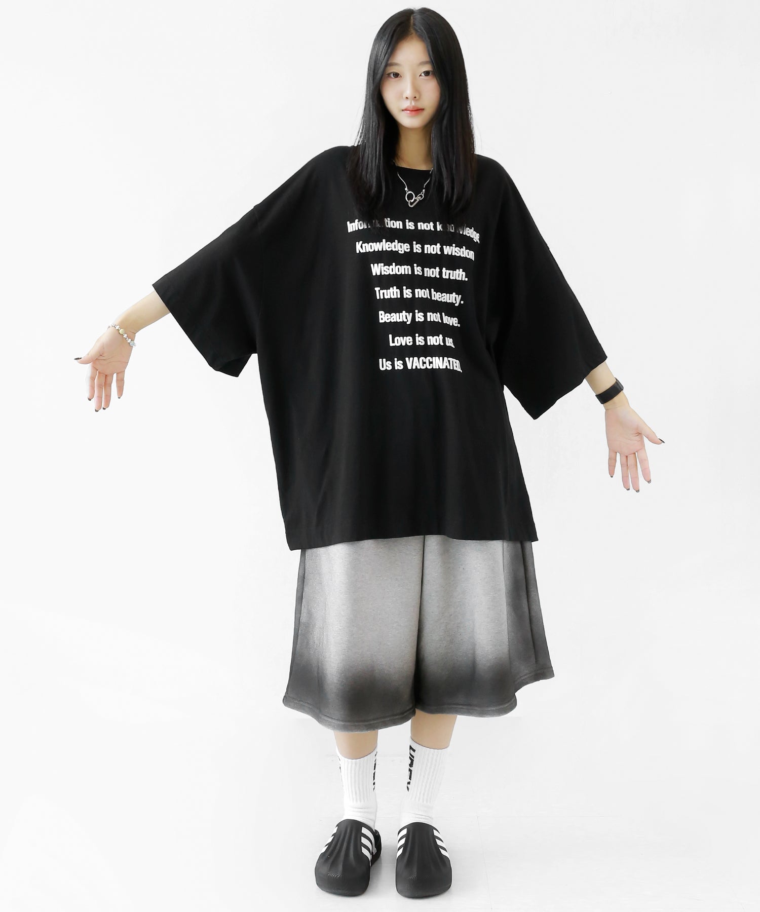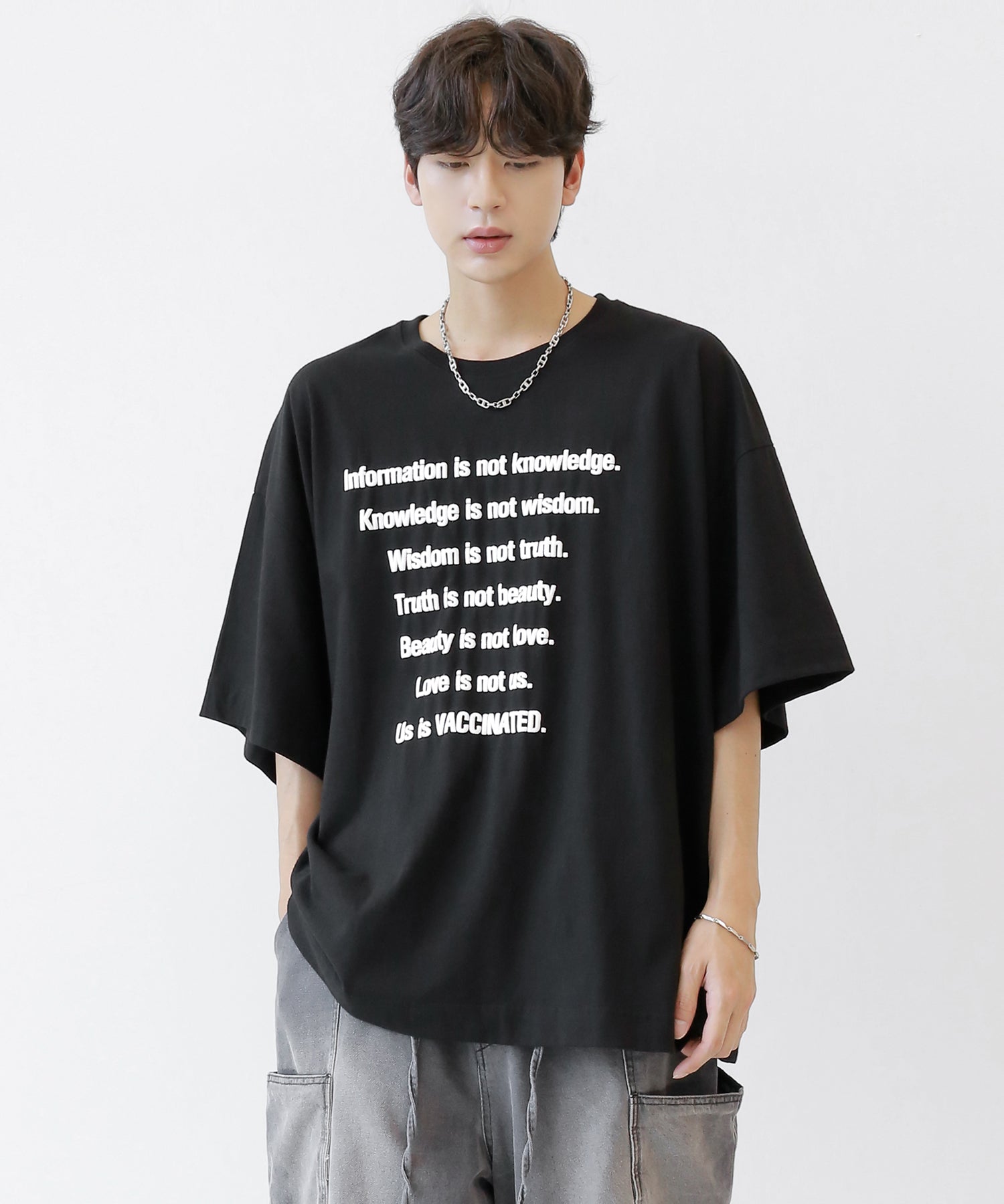 This oversized tee features a playful puff-print lettering design that adds a fun, tactile twist to your look. The extended seam detailing and roomy fit give it that trendy oversized silhouette loved in Korean and Japanese streetwear.