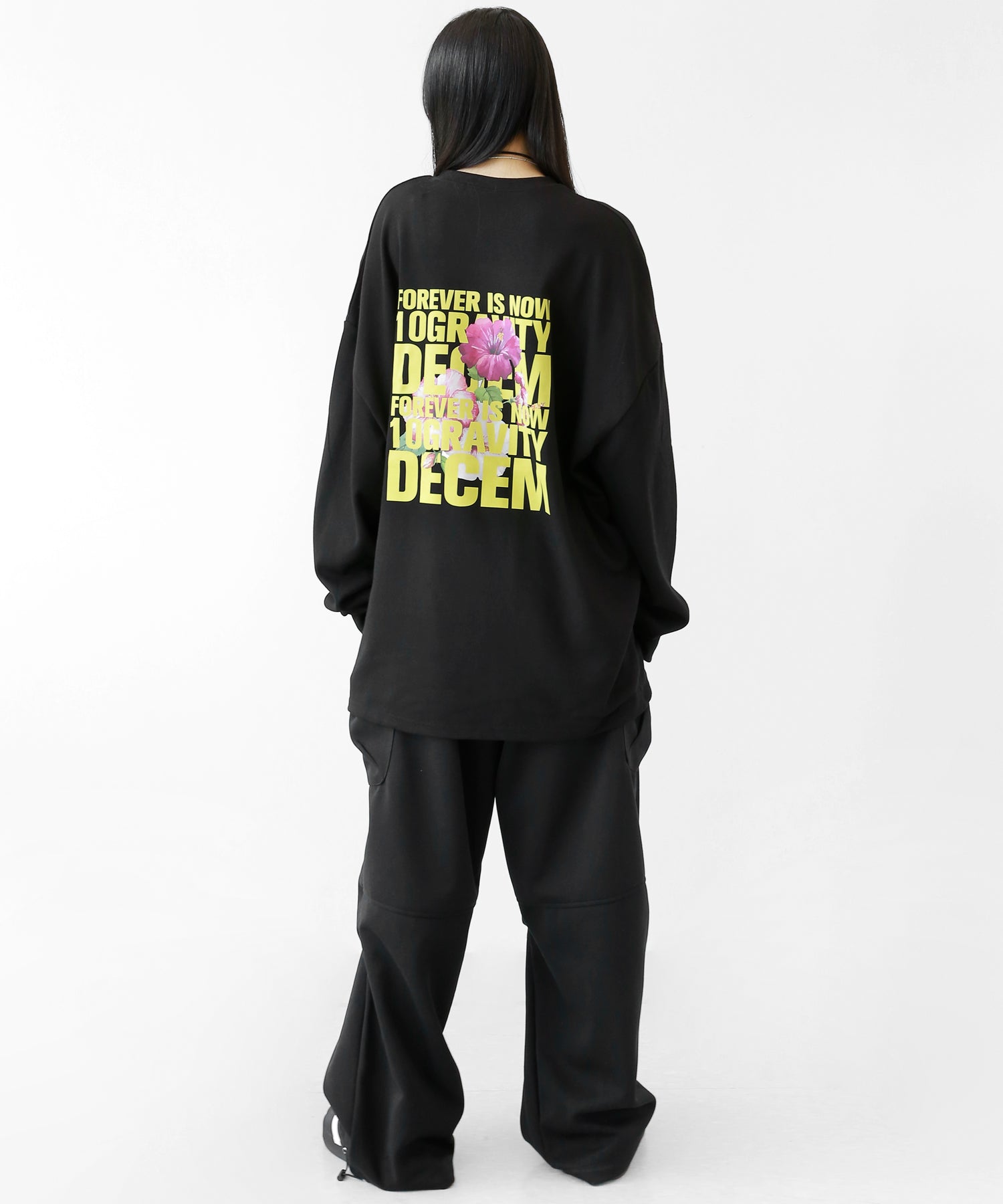 A bold long sleeve tee featuring a striking hibiscus and logo graphic across the back. The front stays clean and minimal, creating a stylish contrast that works effortlessly in street or casual looks.