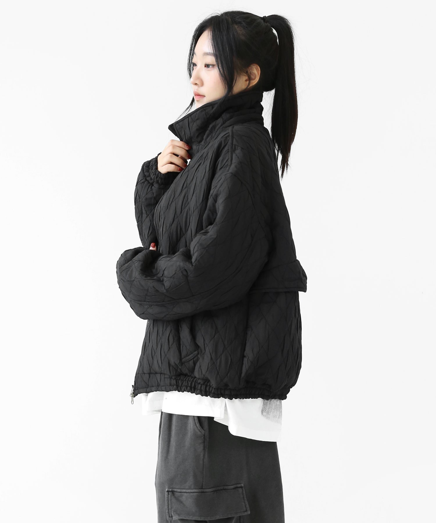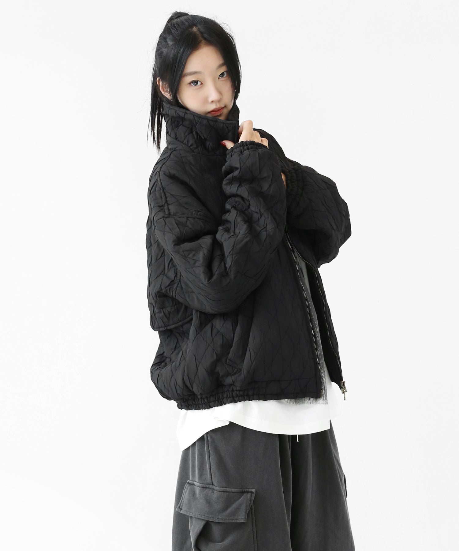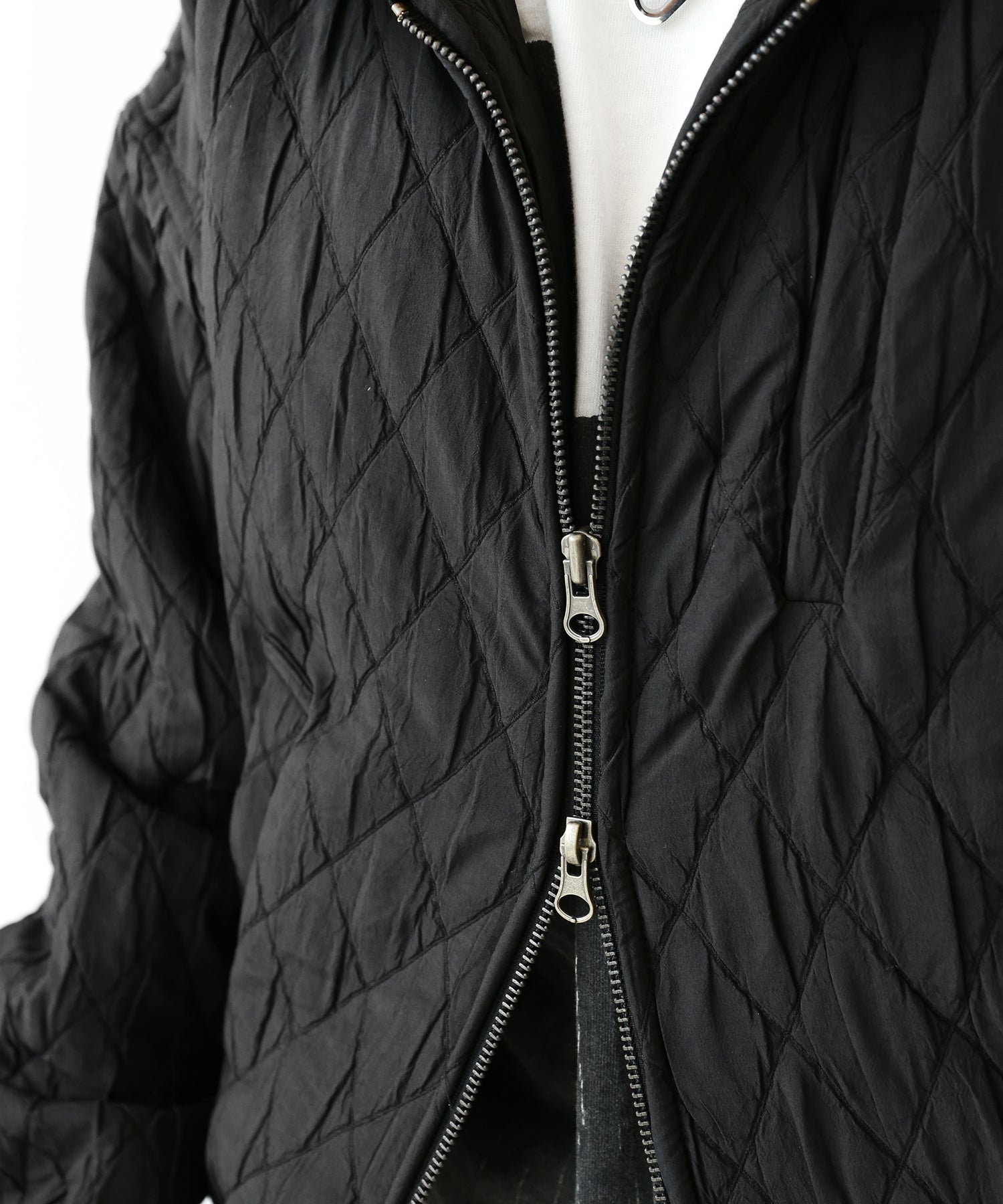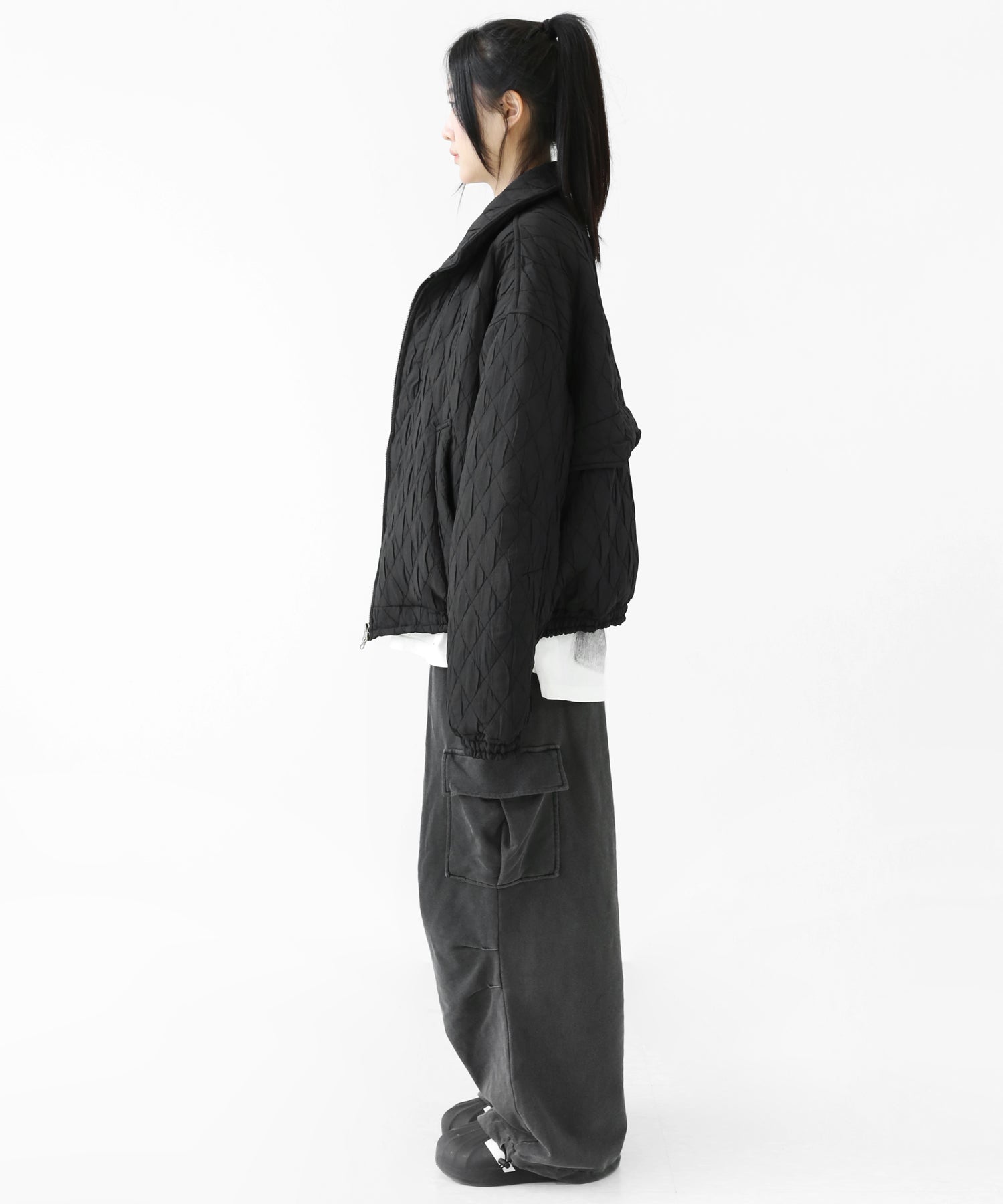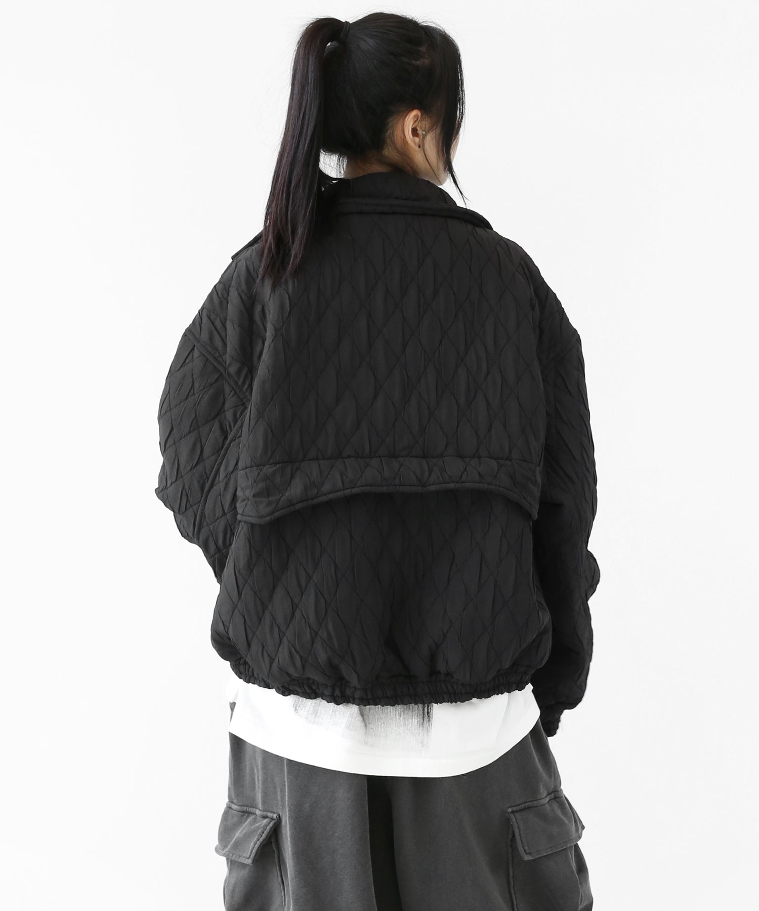 A lightweight yet warm blouson featuring a dimensional diamond-quilted design and a versatile 2-way zipper. Its clean, urban look balances sophistication and casual ease, making it a seasonless outerwear essential.