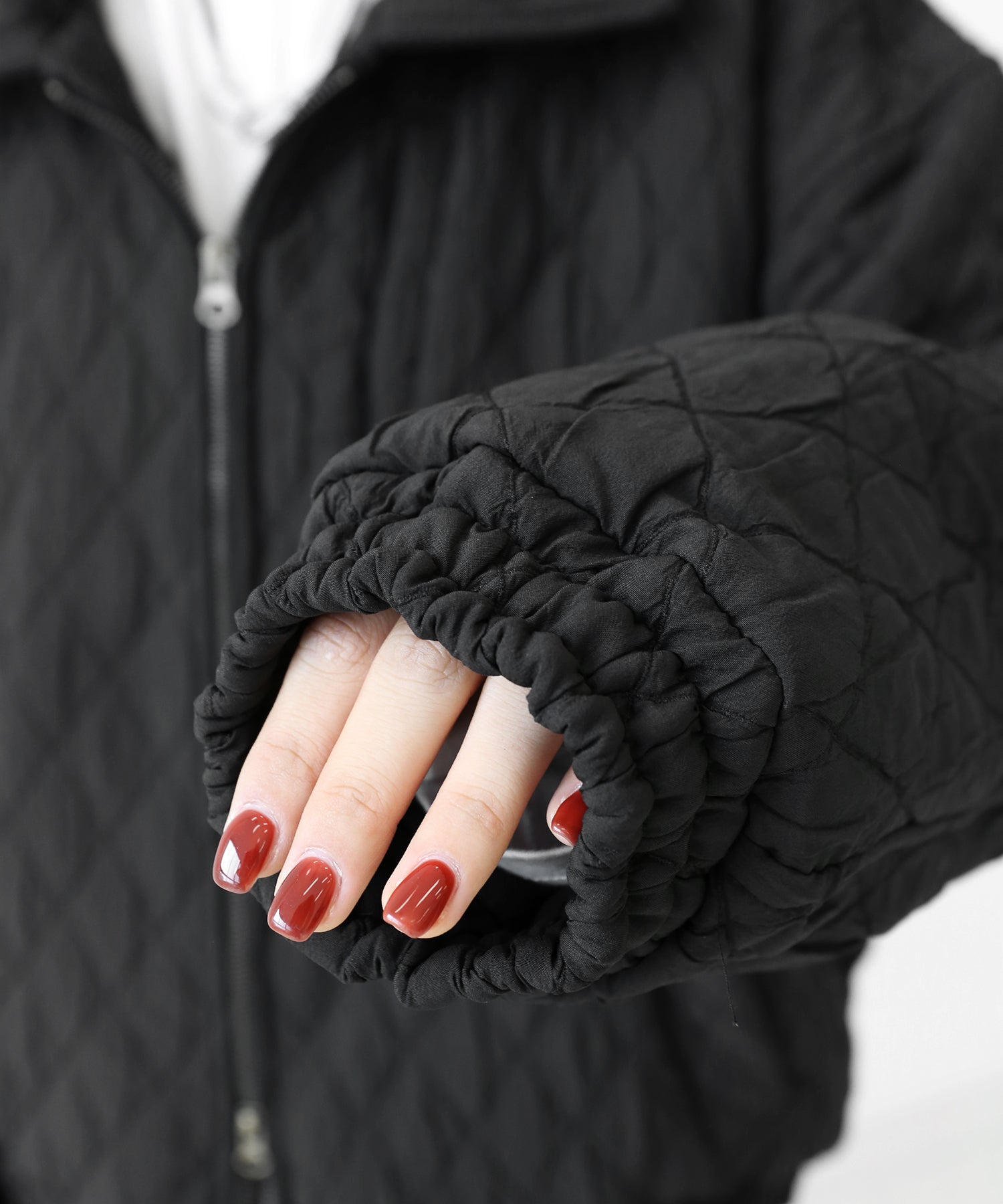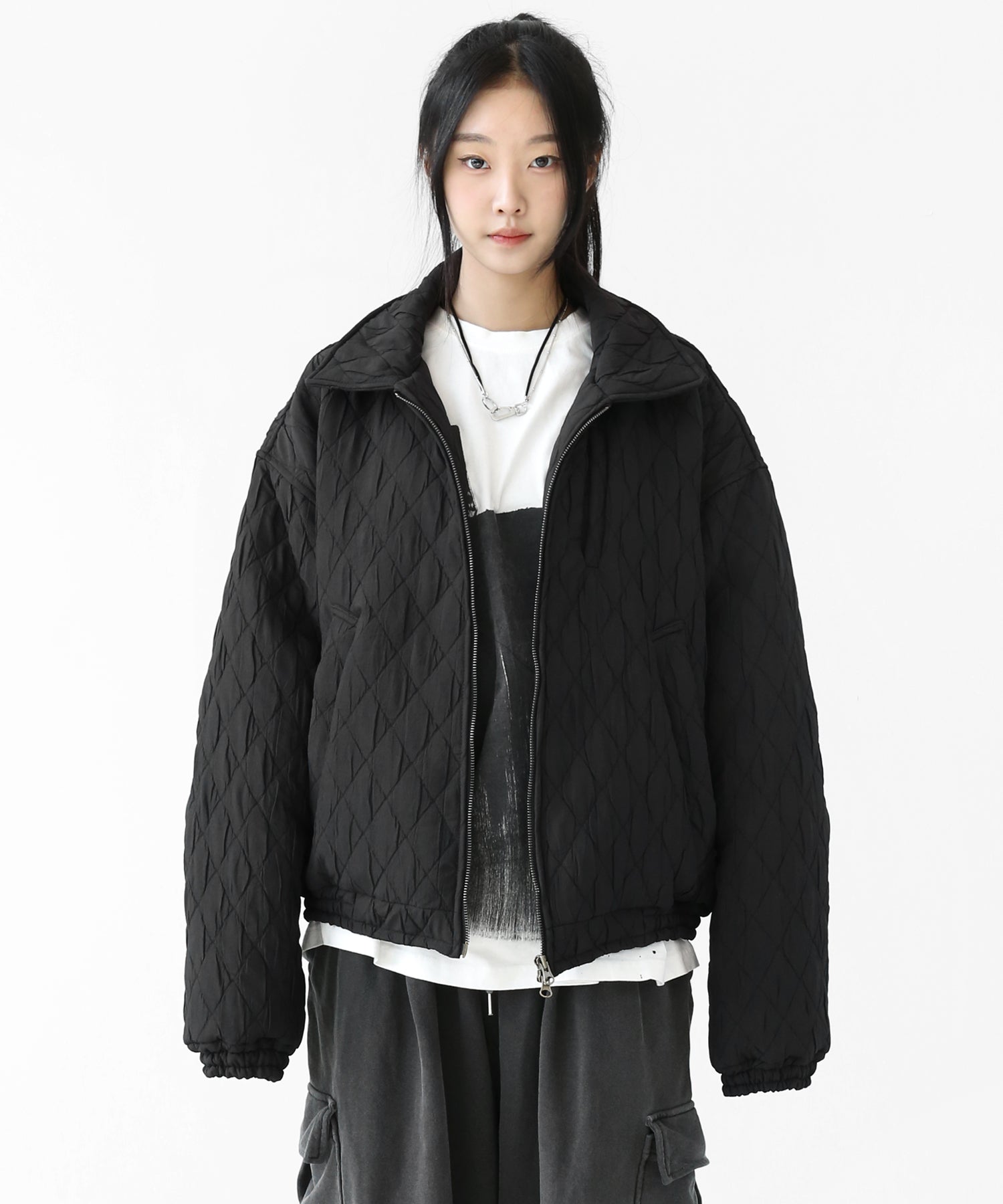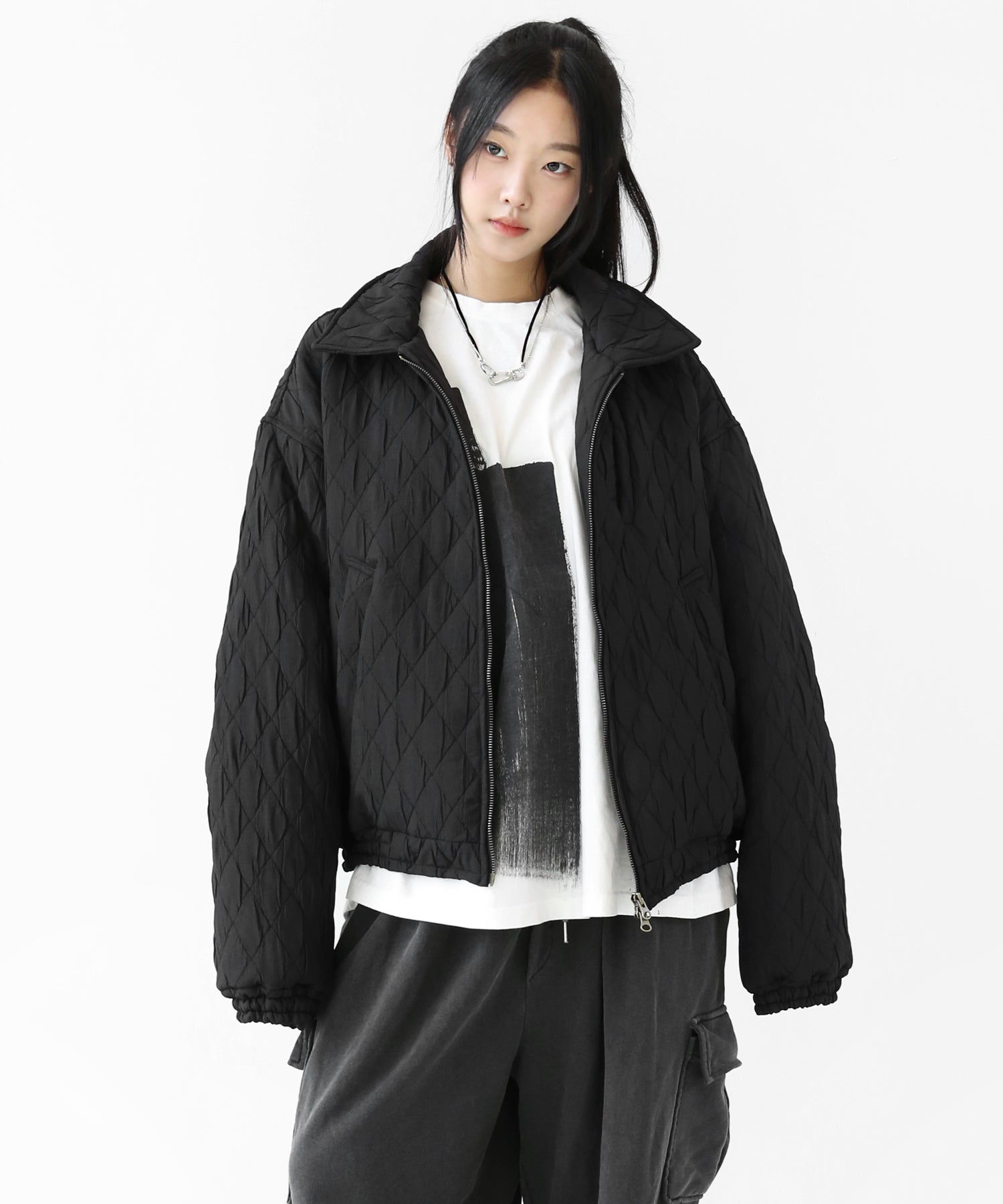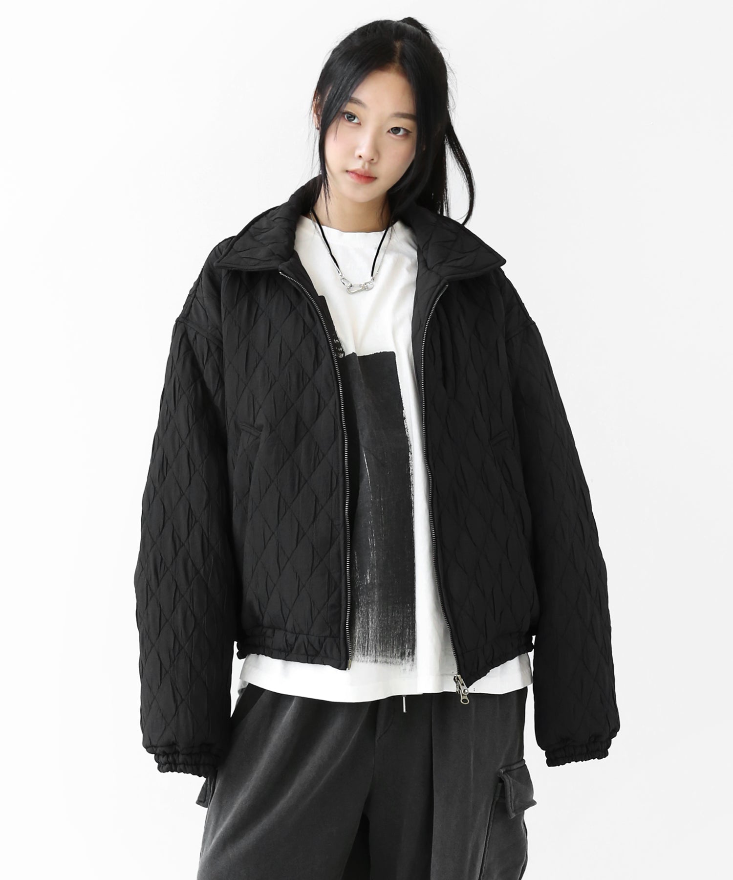 A lightweight yet warm blouson featuring a dimensional diamond-quilted design and a versatile 2-way zipper. Its clean, urban look balances sophistication and casual ease, making it a seasonless outerwear essential.