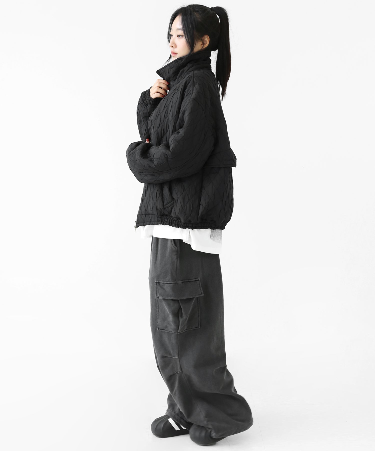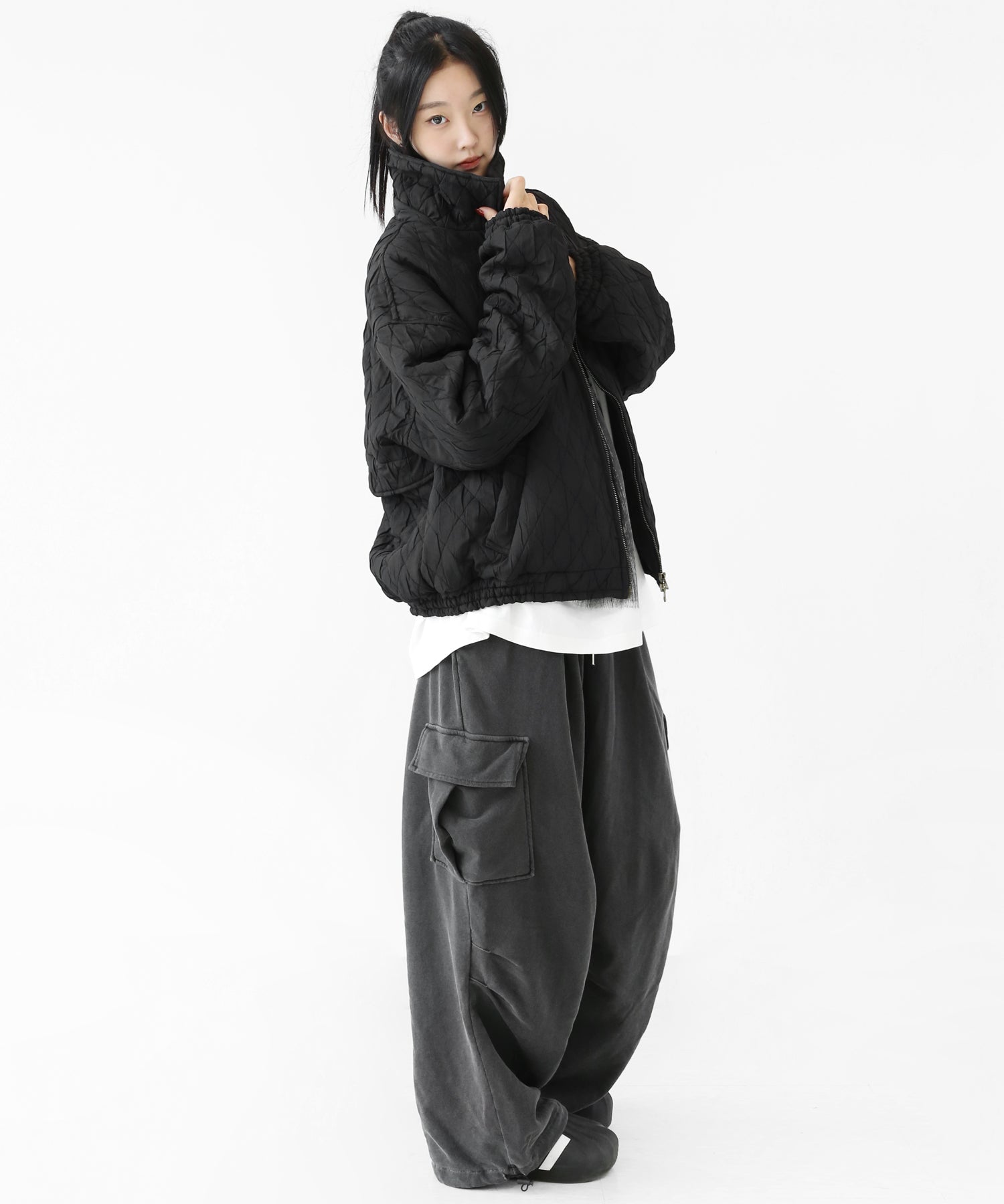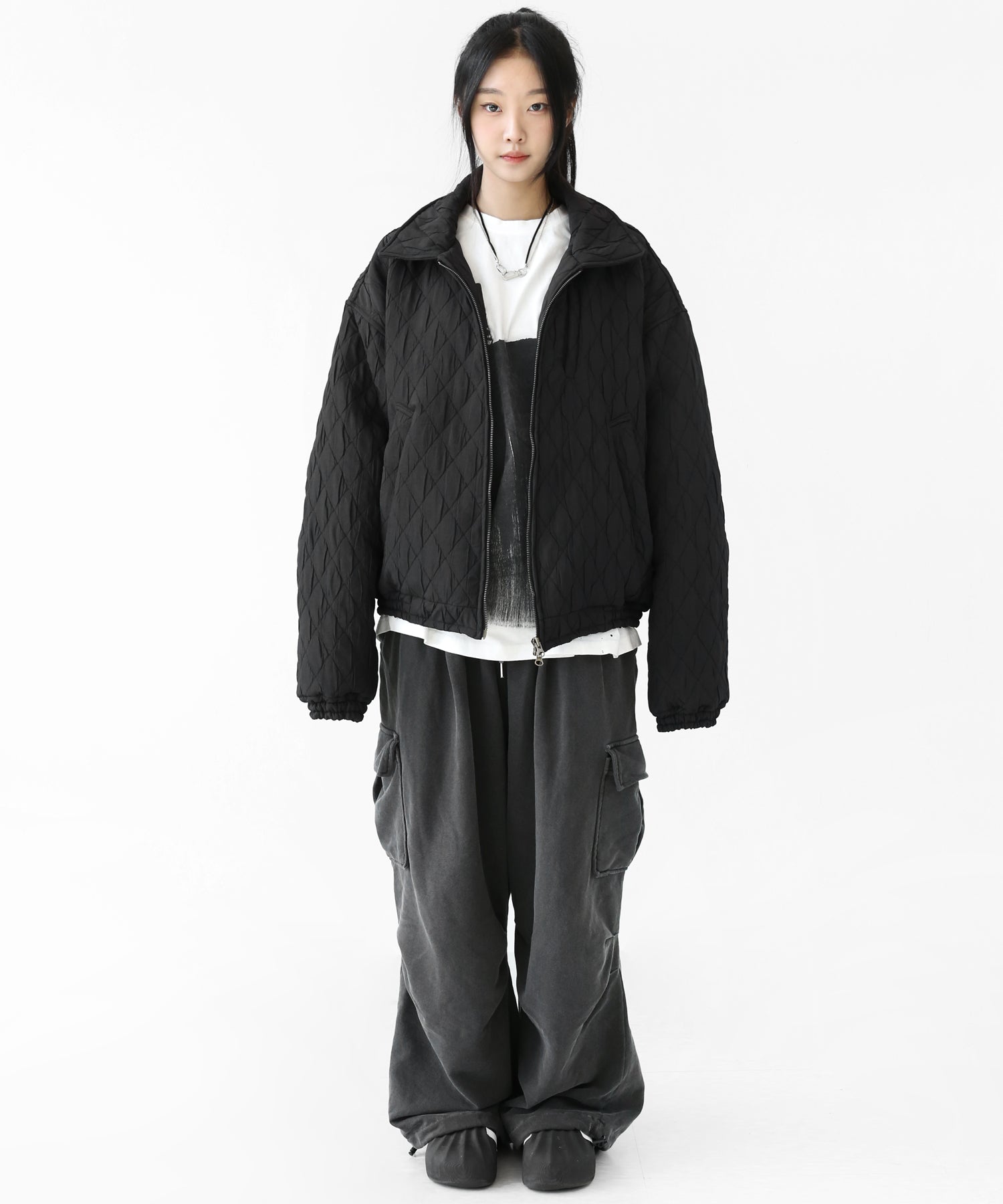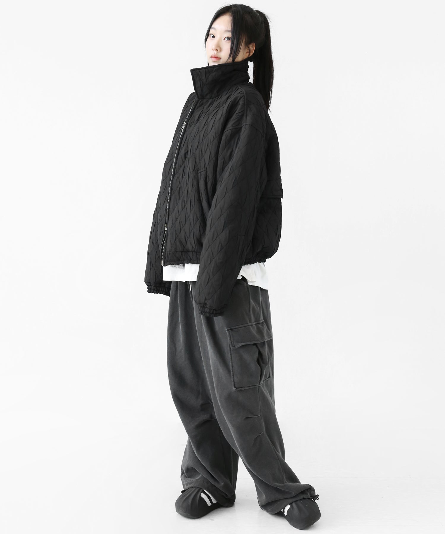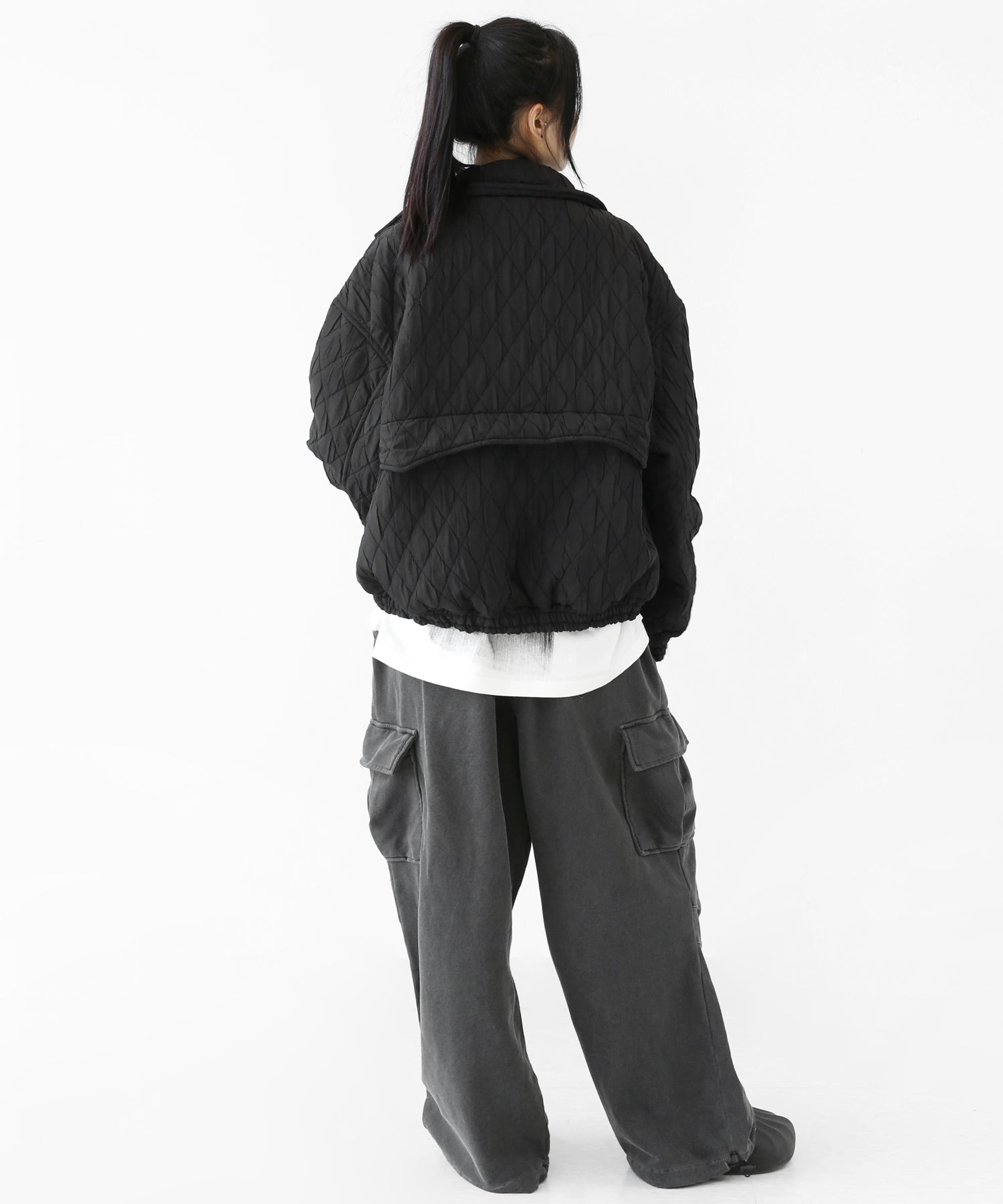 A lightweight yet warm blouson featuring a dimensional diamond-quilted design and a versatile 2-way zipper. Its clean, urban look balances sophistication and casual ease, making it a seasonless outerwear essential.