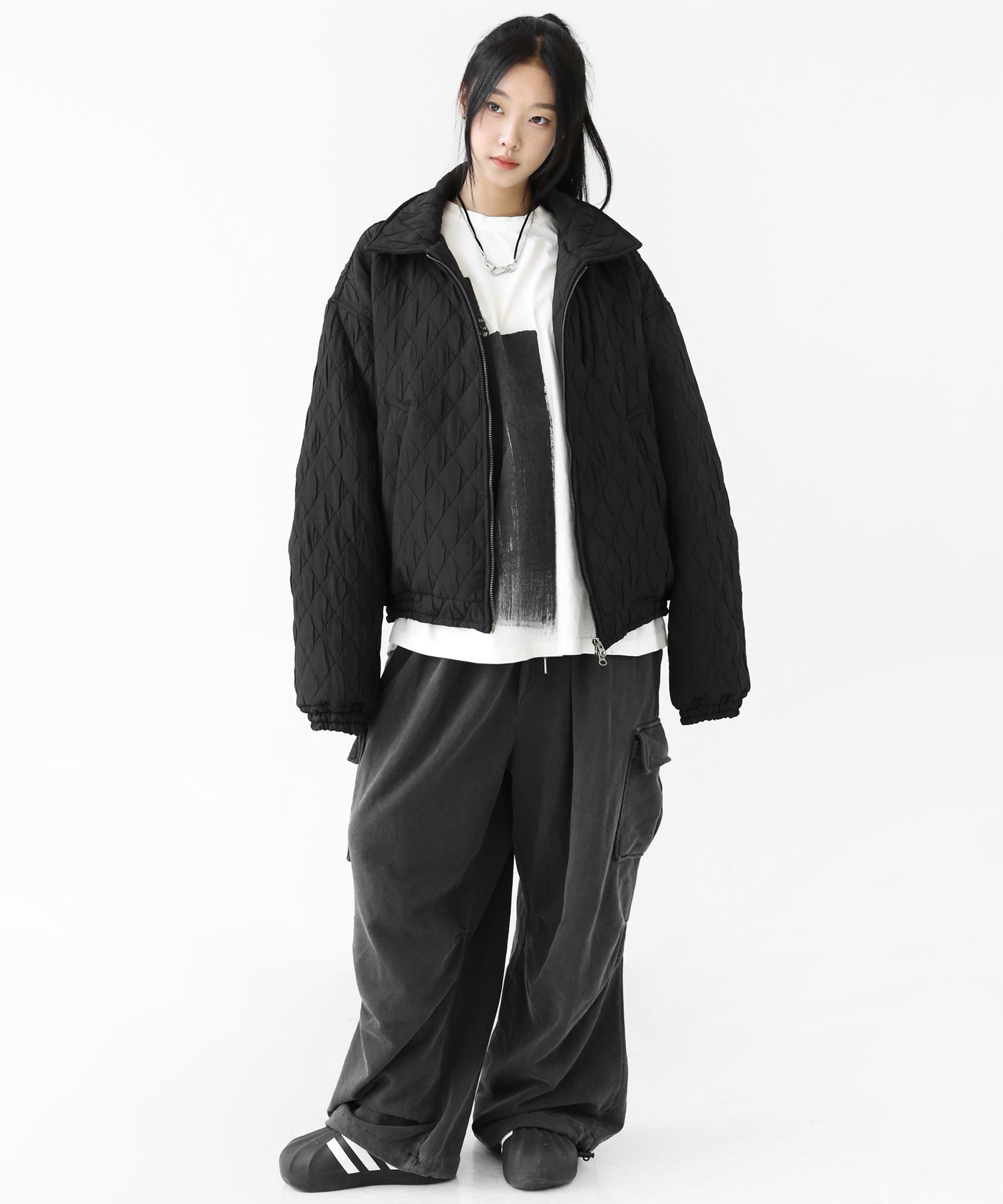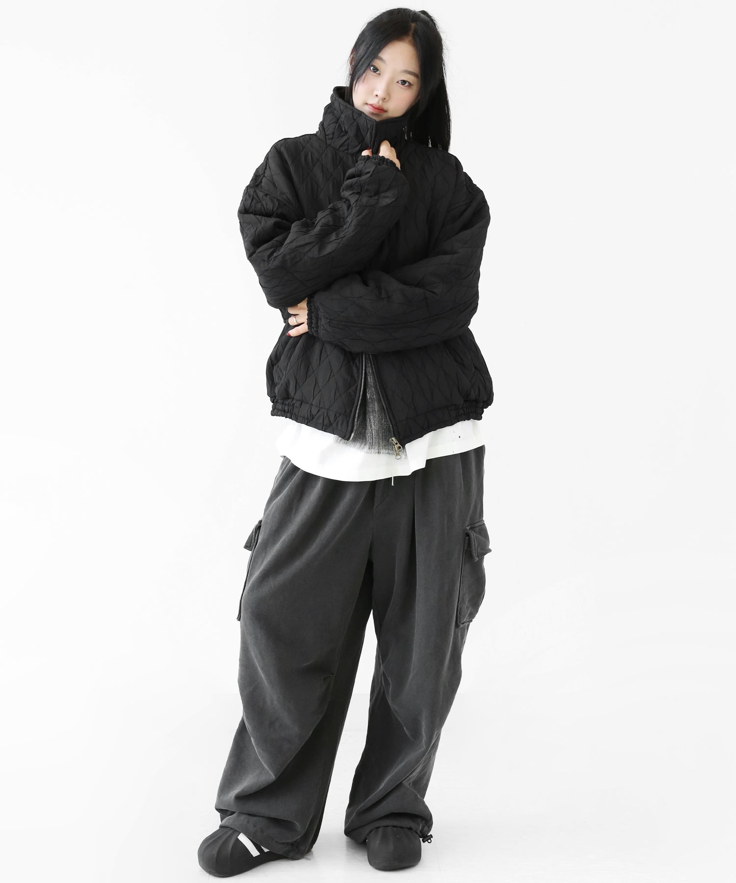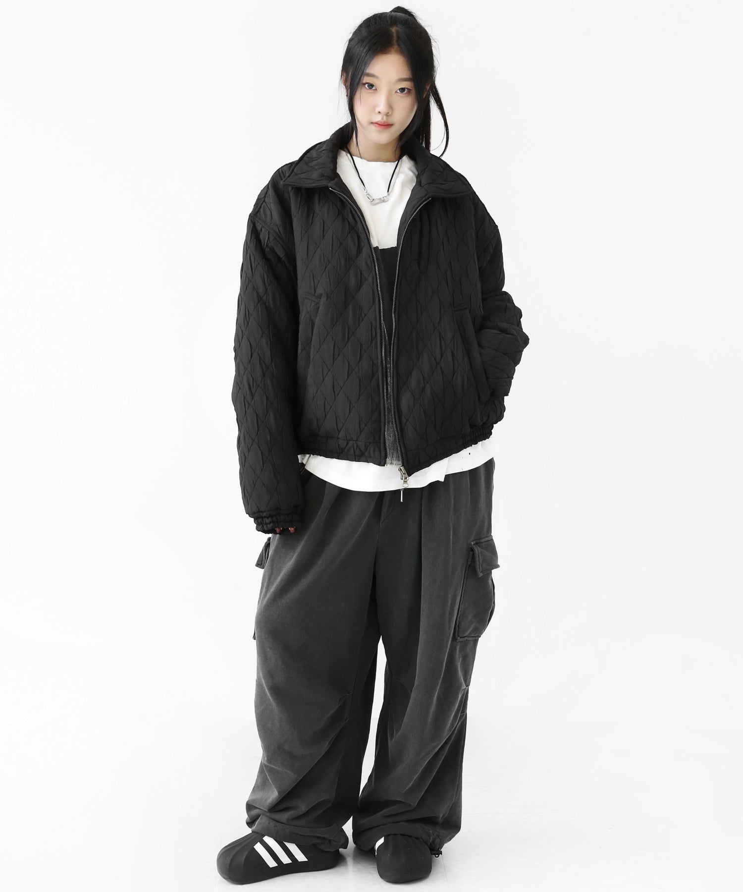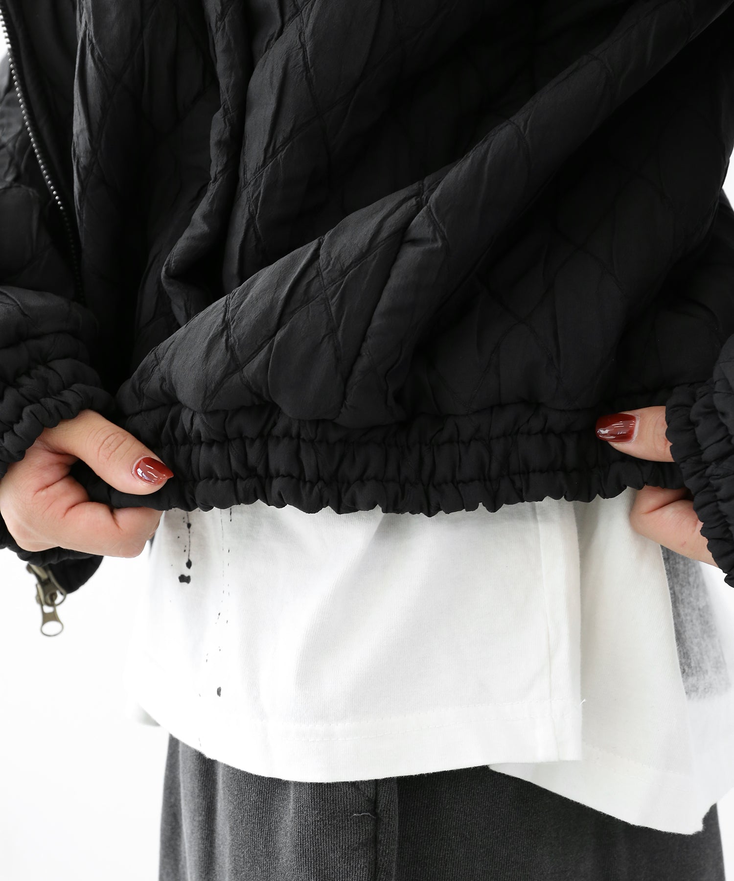 A lightweight yet warm blouson featuring a dimensional diamond-quilted design and a versatile 2-way zipper. Its clean, urban look balances sophistication and casual ease, making it a seasonless outerwear essential.