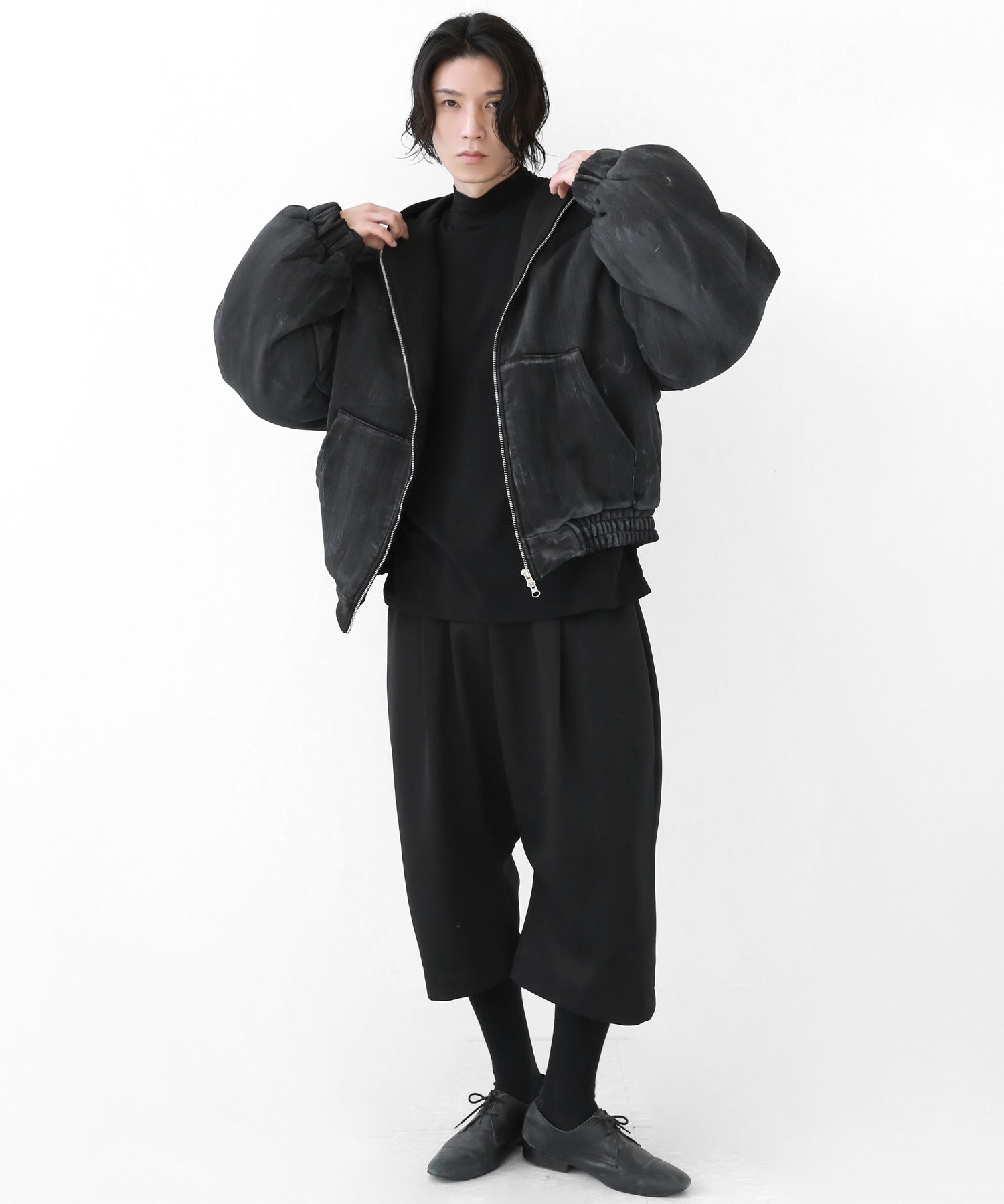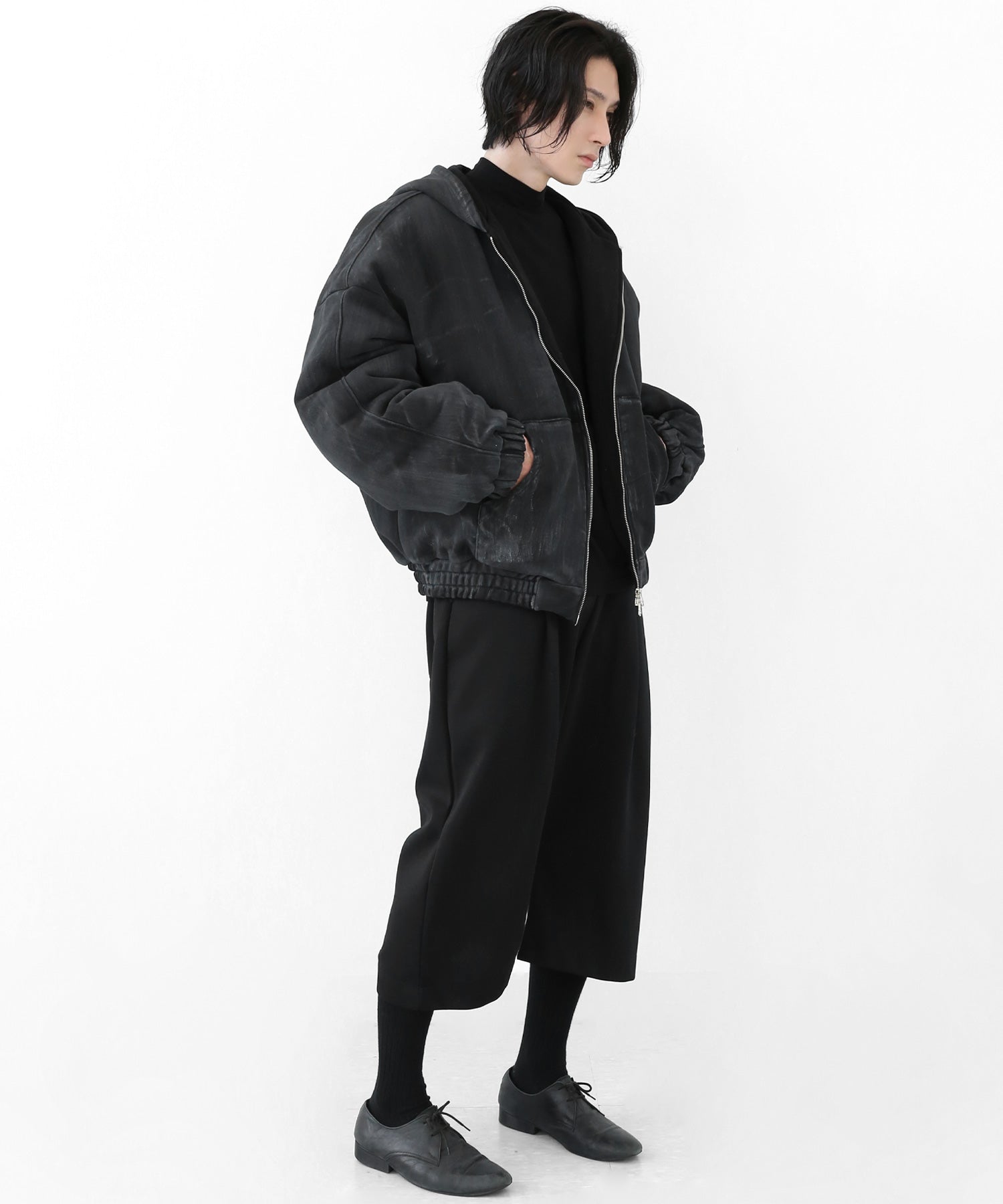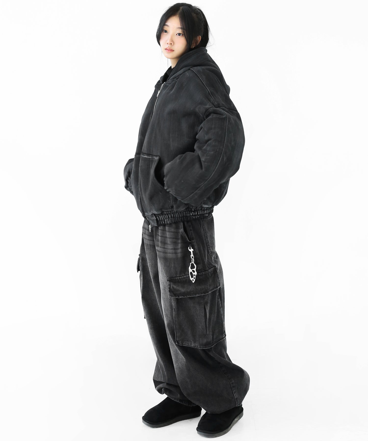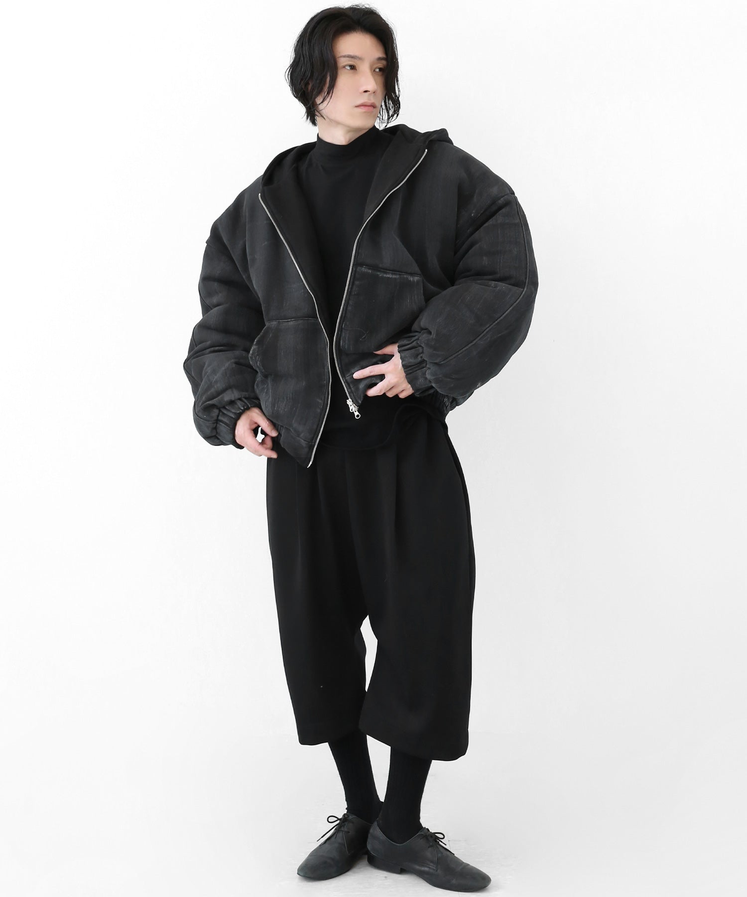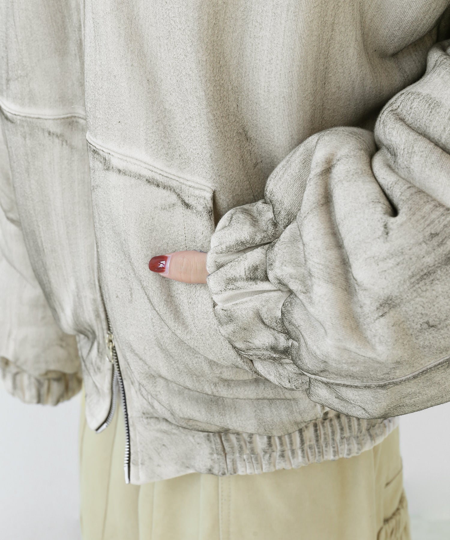 A vintage-inspired hooded jacket featuring an oil-stain fade that adds depth and a distinct street mood. With warm padding and a 2-zip construction, it offers flexible layering and a stylishly worn-in look that stands out effortlessly.