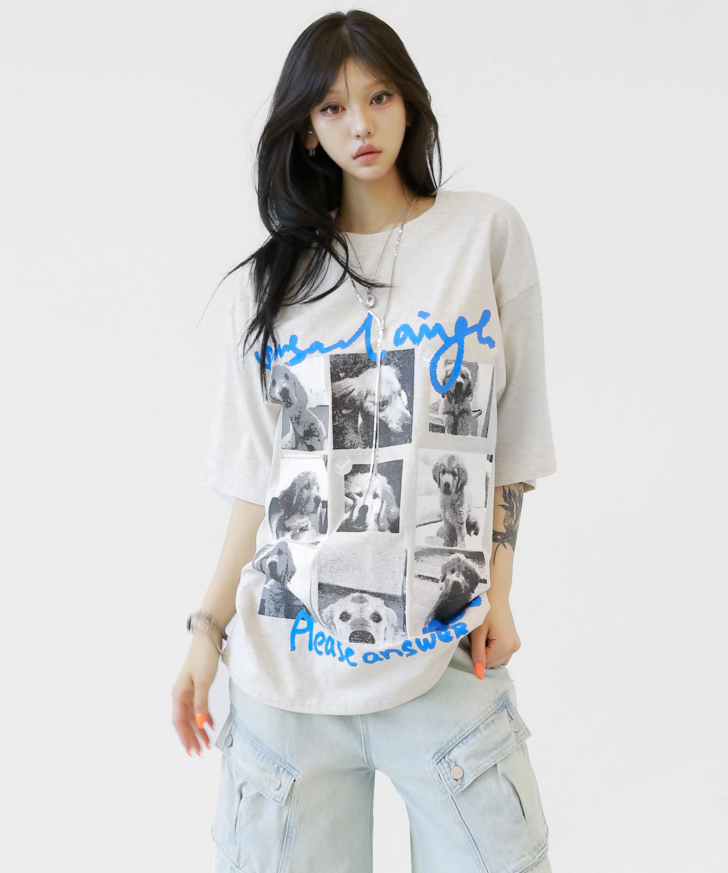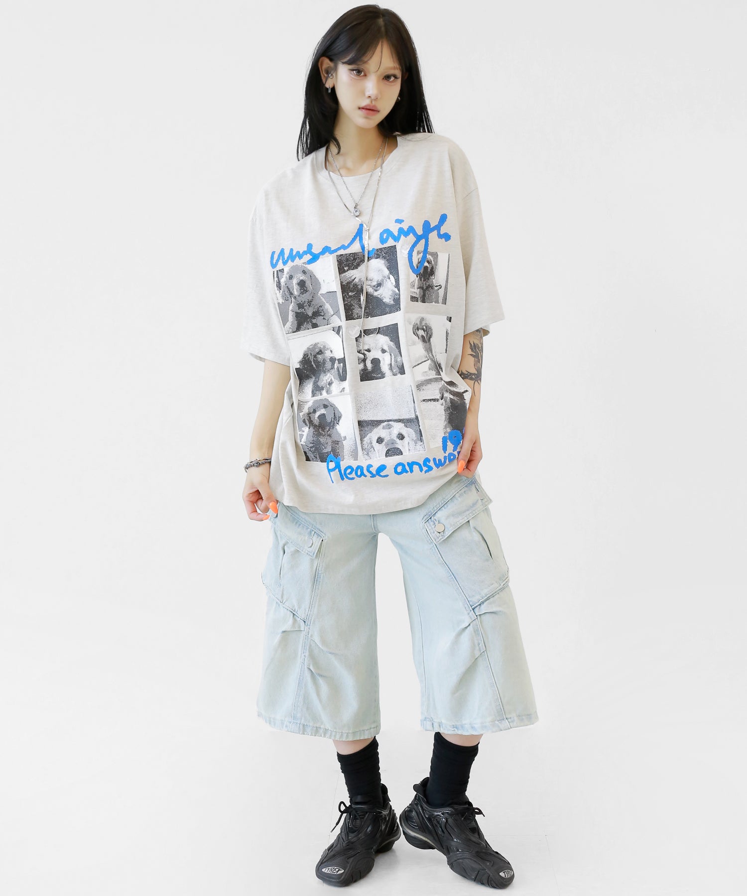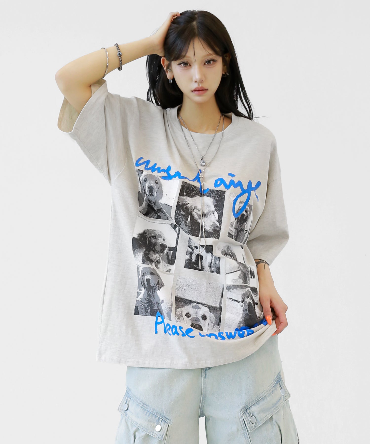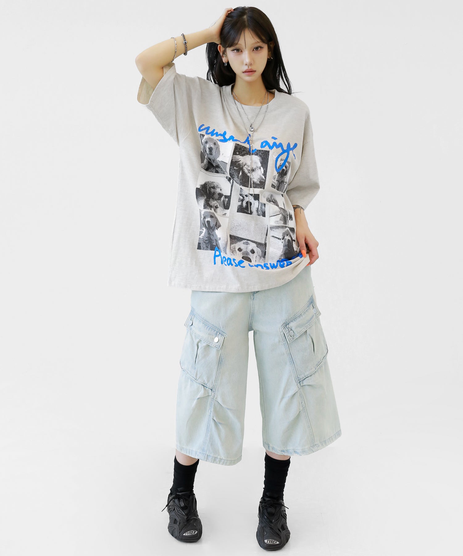 Cute meets cool. This oversized tee features an eye-catching dog graphic that blends playful charm with streetwear energy. With its soft cotton fabric and relaxed silhouette, it’s a stylish staple for casual and street looks alike.