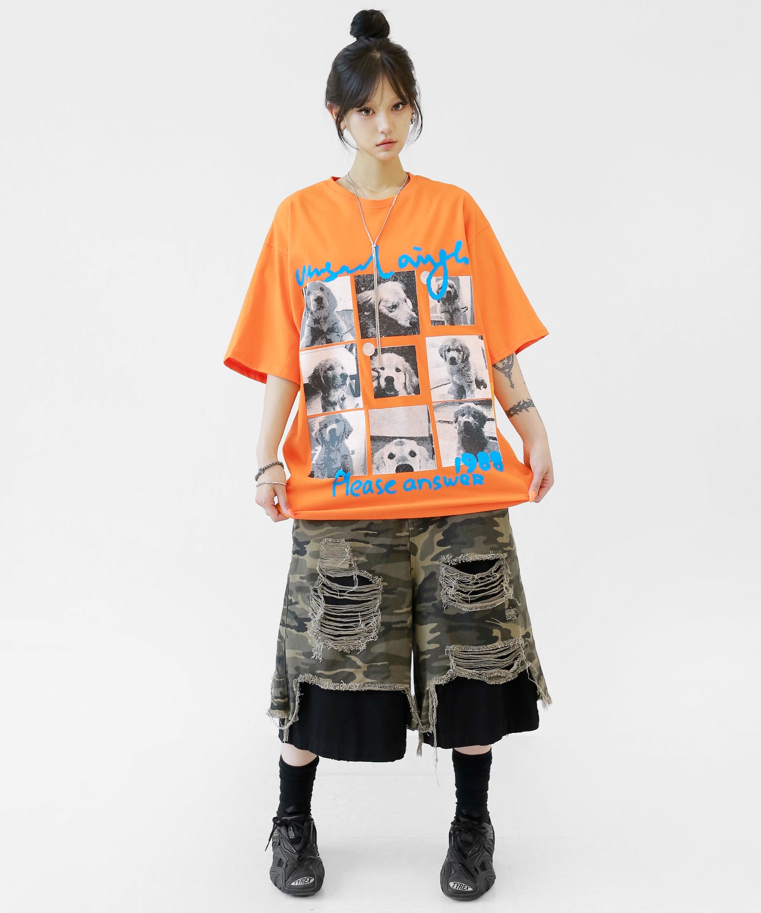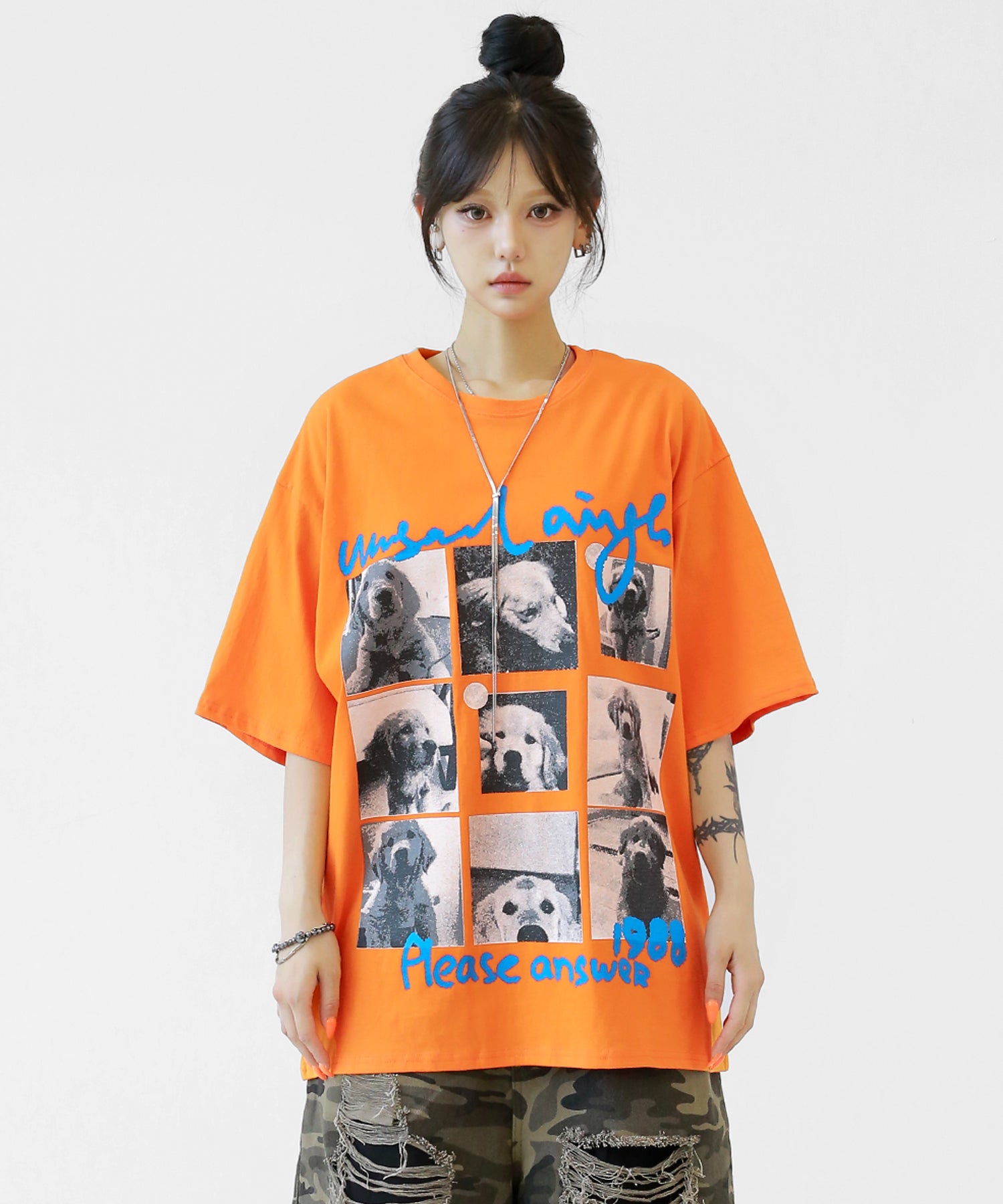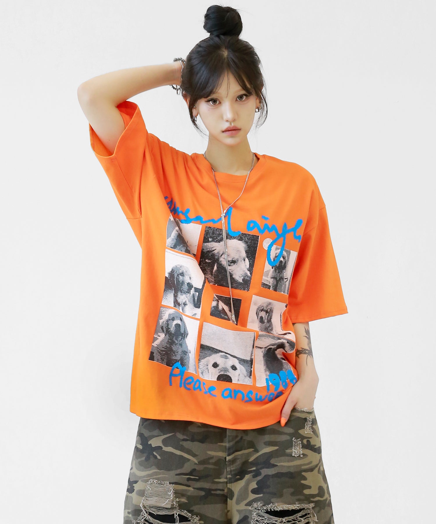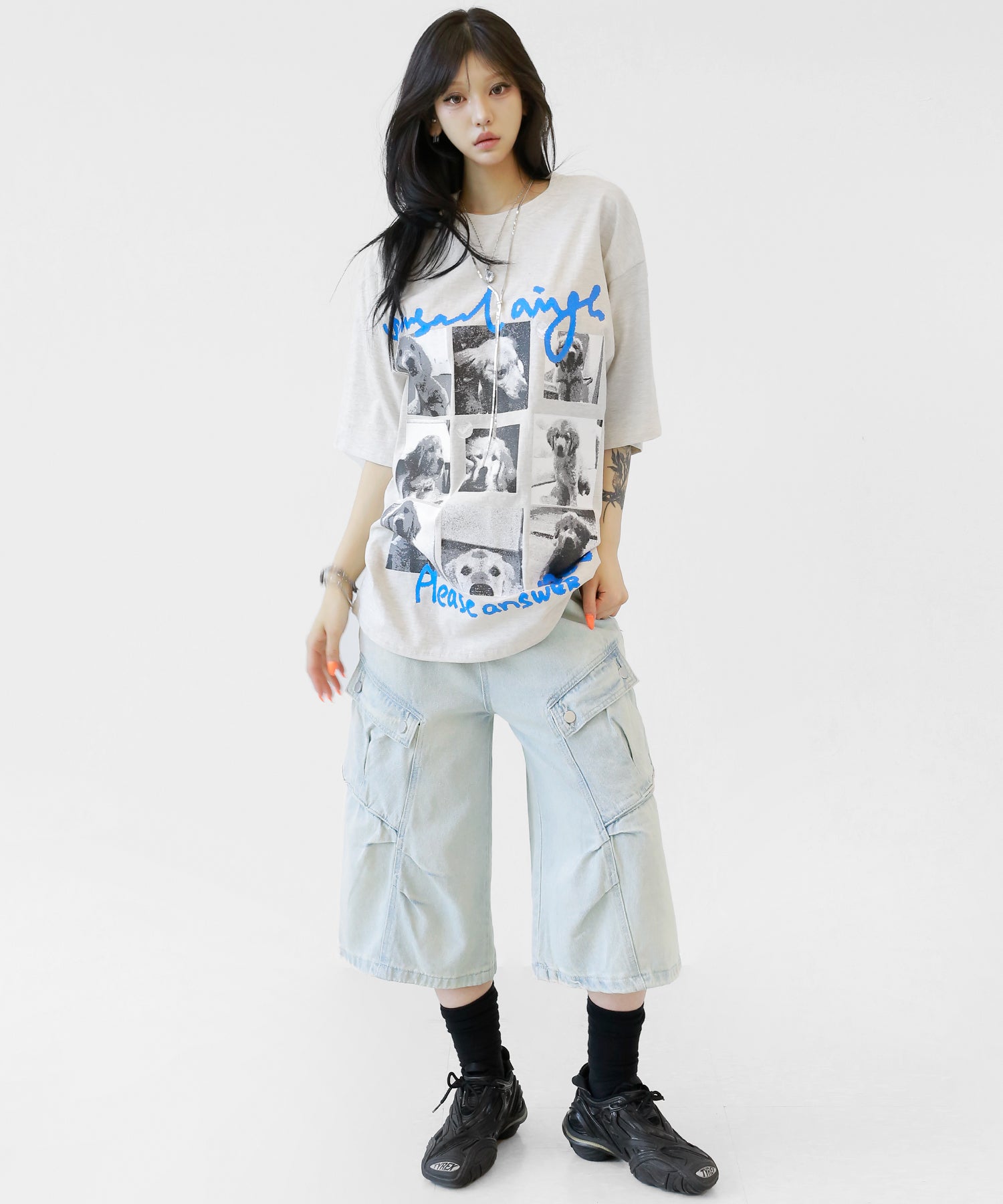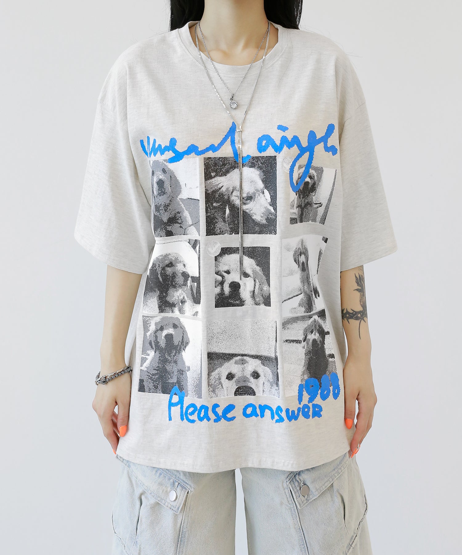 Cute meets cool. This oversized tee features an eye-catching dog graphic that blends playful charm with streetwear energy. With its soft cotton fabric and relaxed silhouette, it’s a stylish staple for casual and street looks alike.
