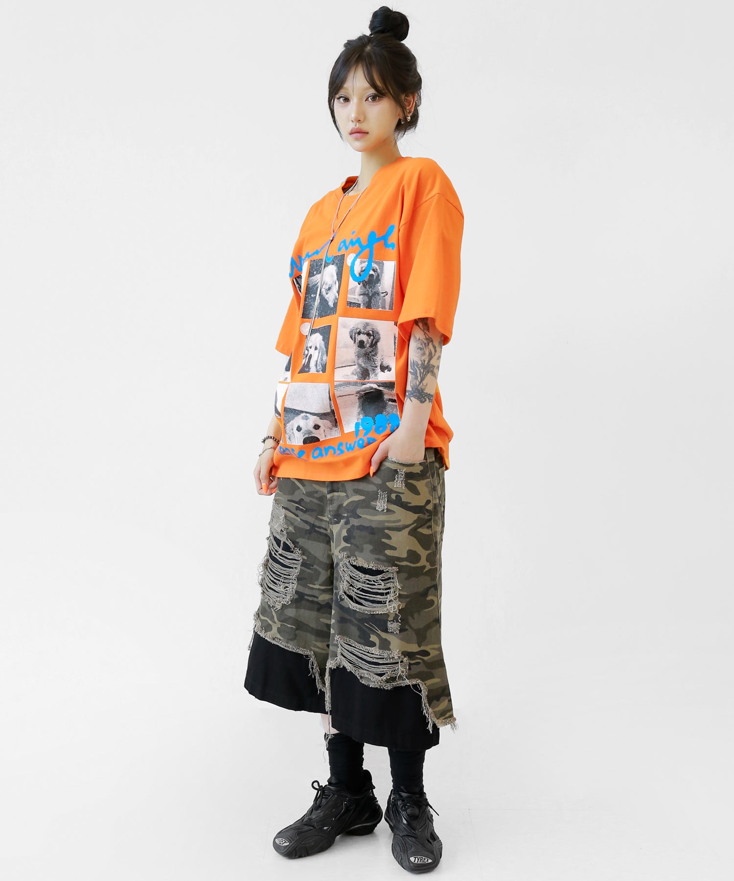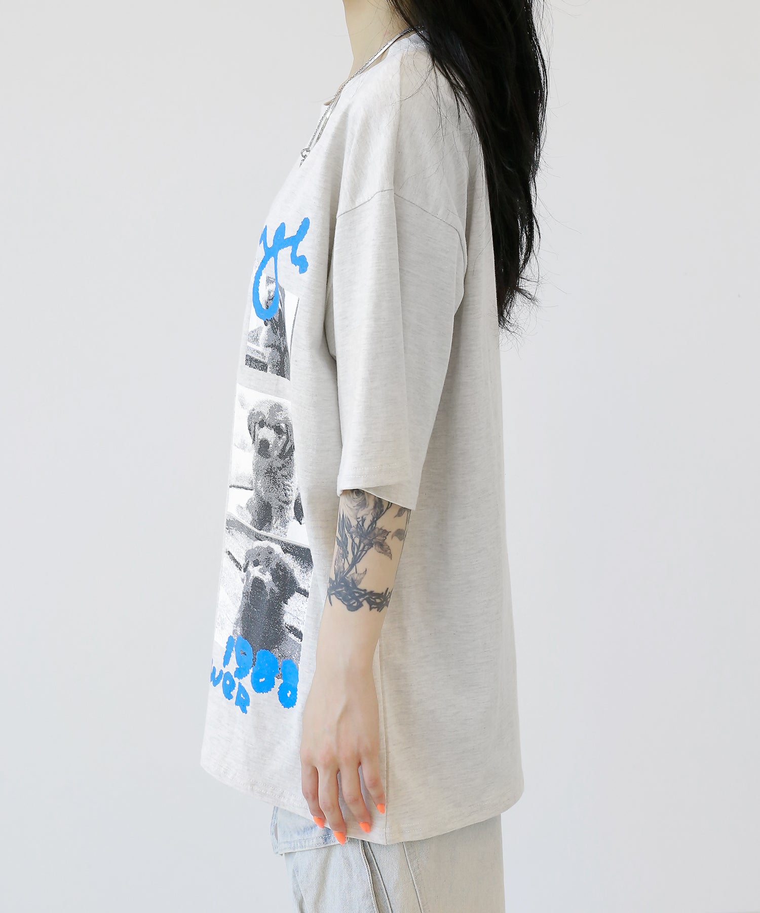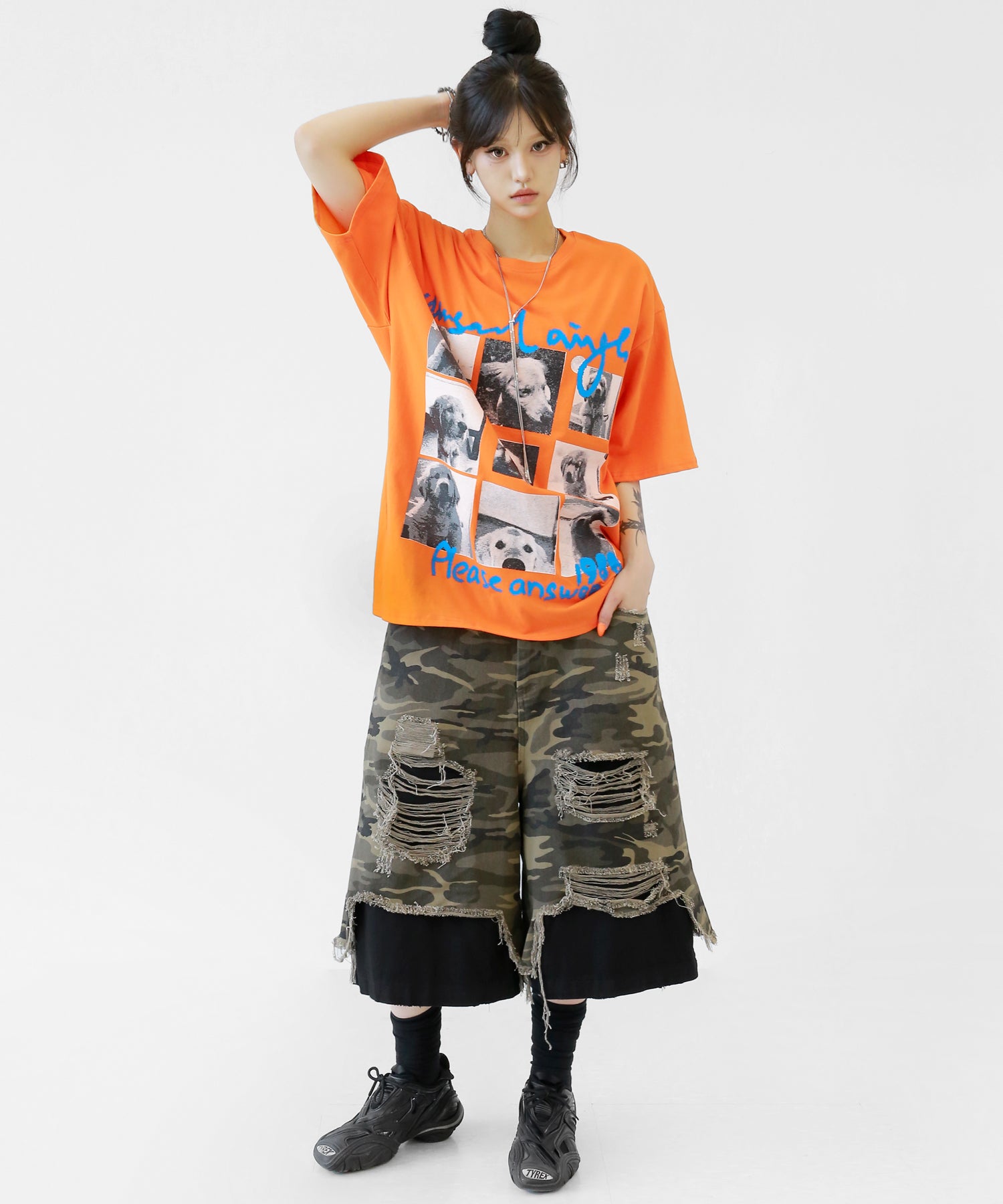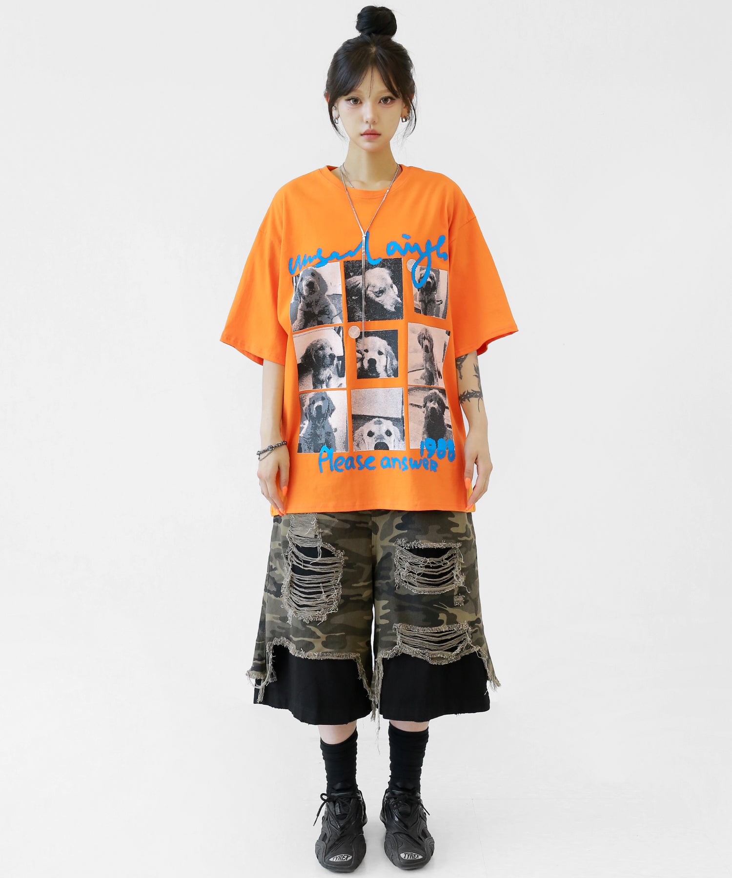 Cute meets cool. This oversized tee features an eye-catching dog graphic that blends playful charm with streetwear energy. With its soft cotton fabric and relaxed silhouette, it’s a stylish staple for casual and street looks alike.