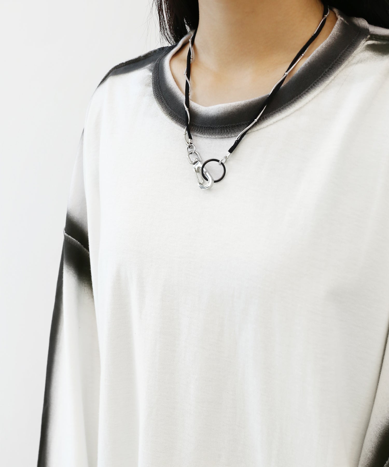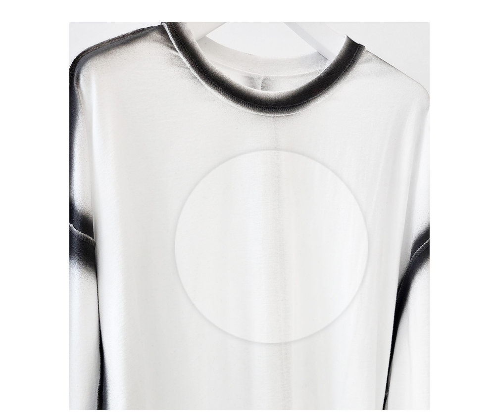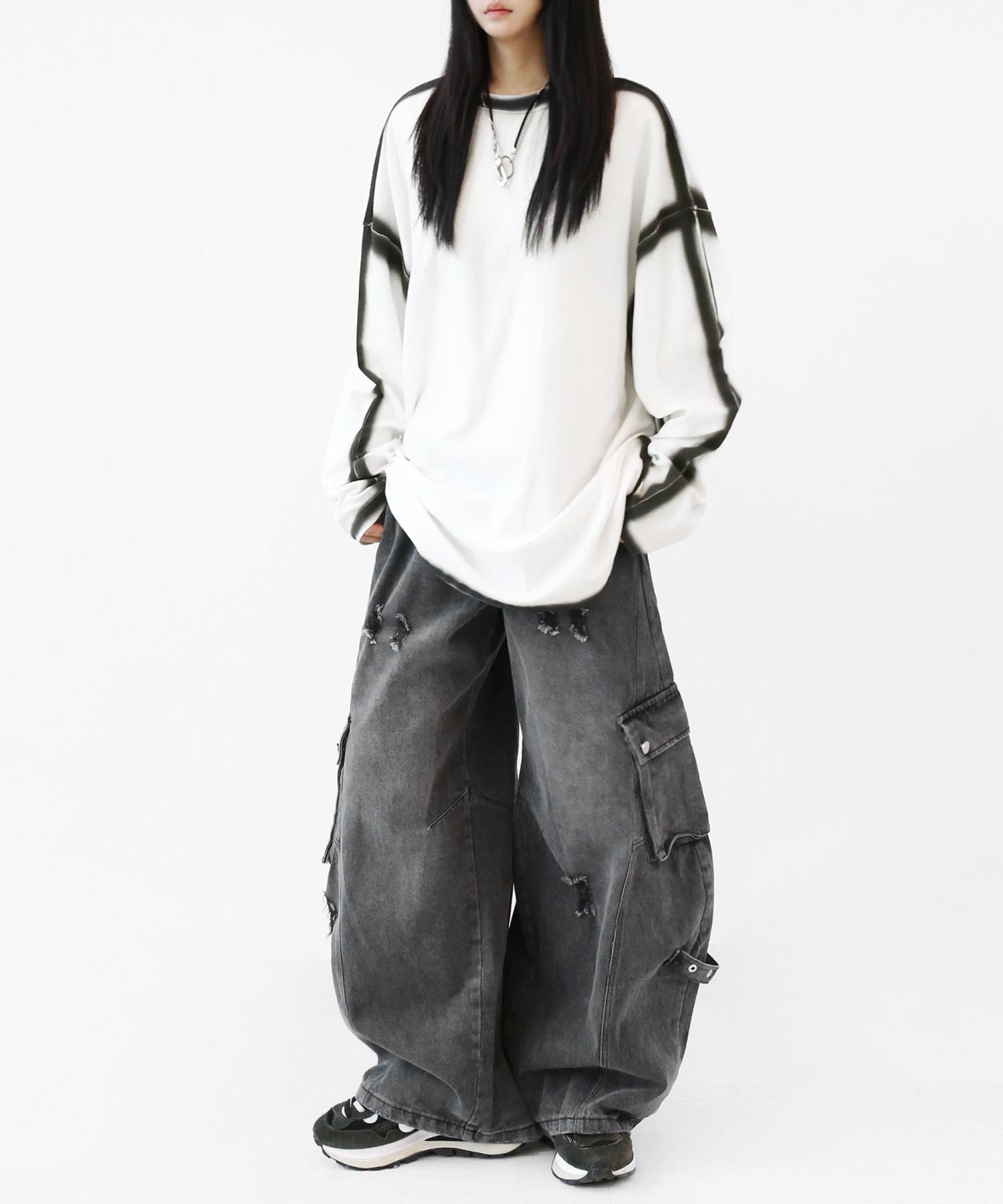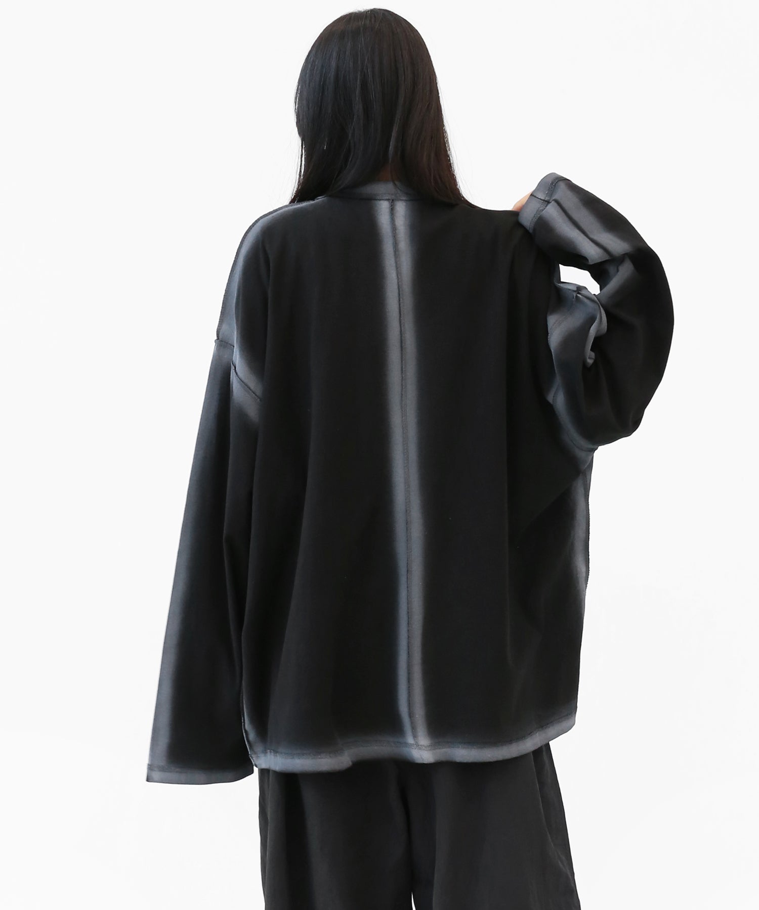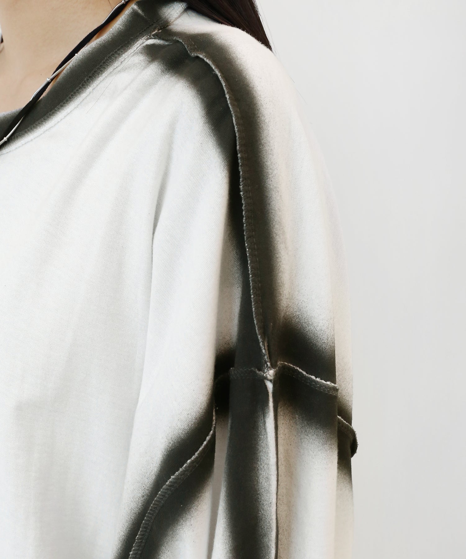 A vintage-inspired long sleeve tee with spray-paint gradient effects and raw-cut details. Its oversized silhouette blends streetwear attitude with effortless layering appeal.