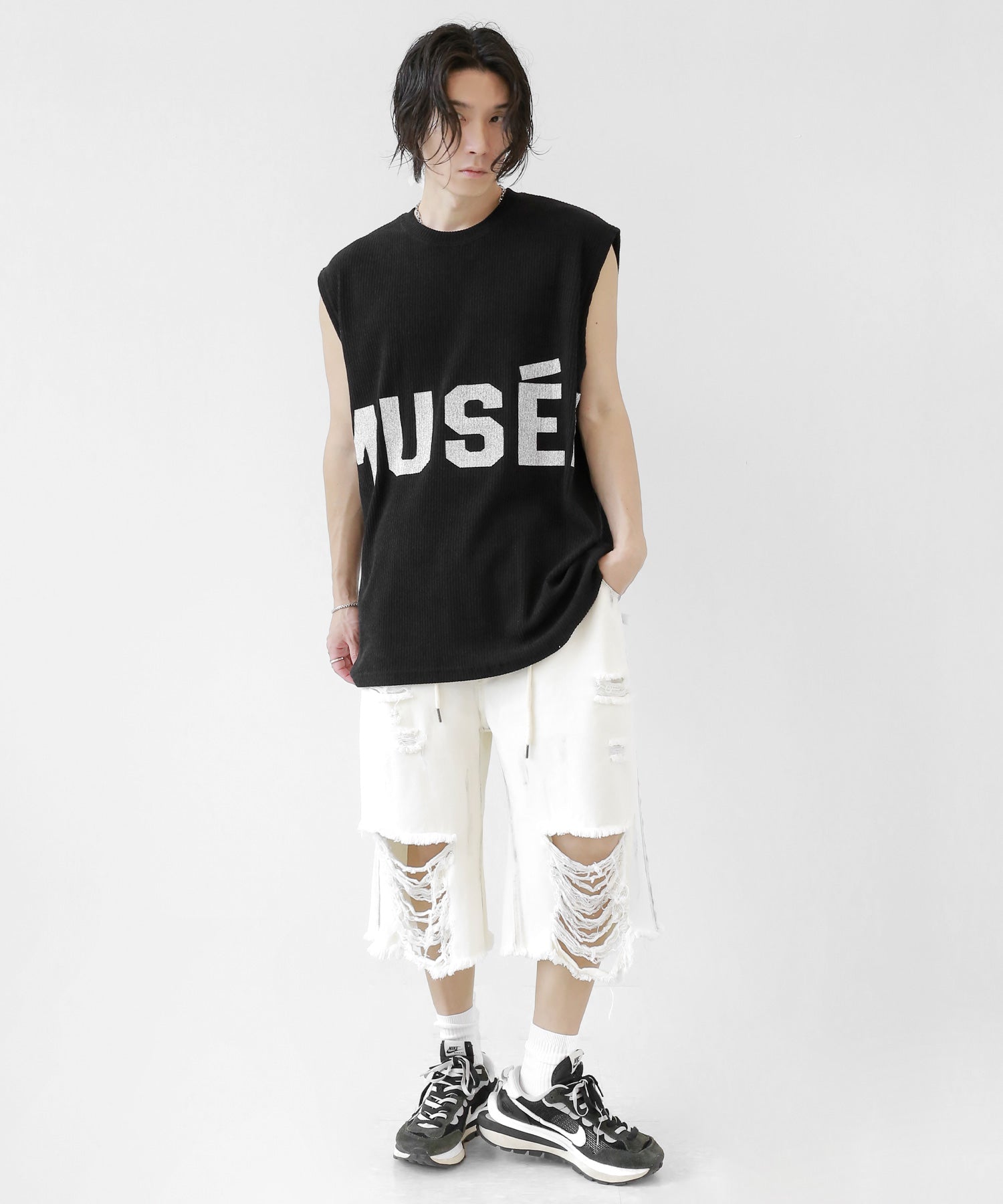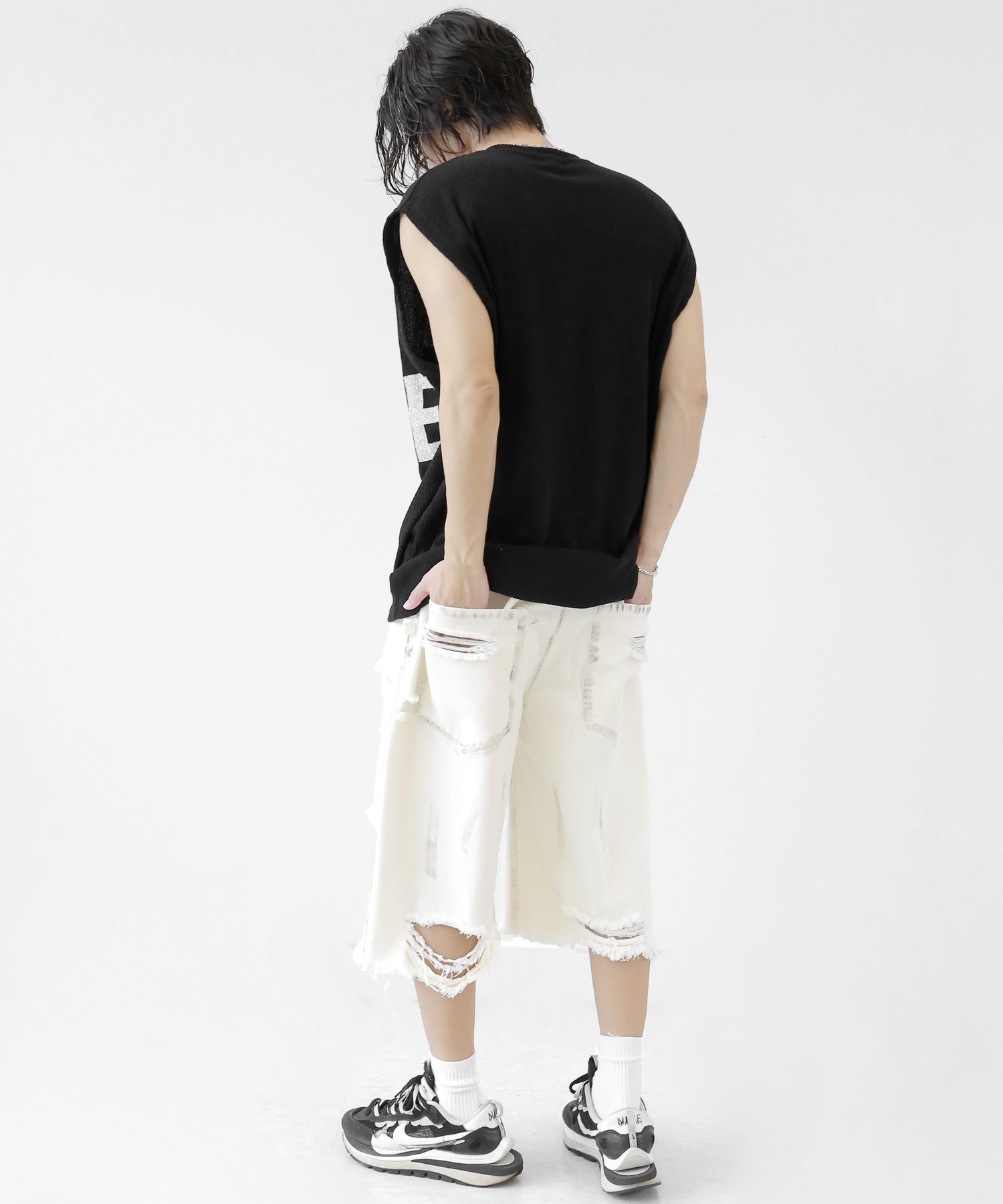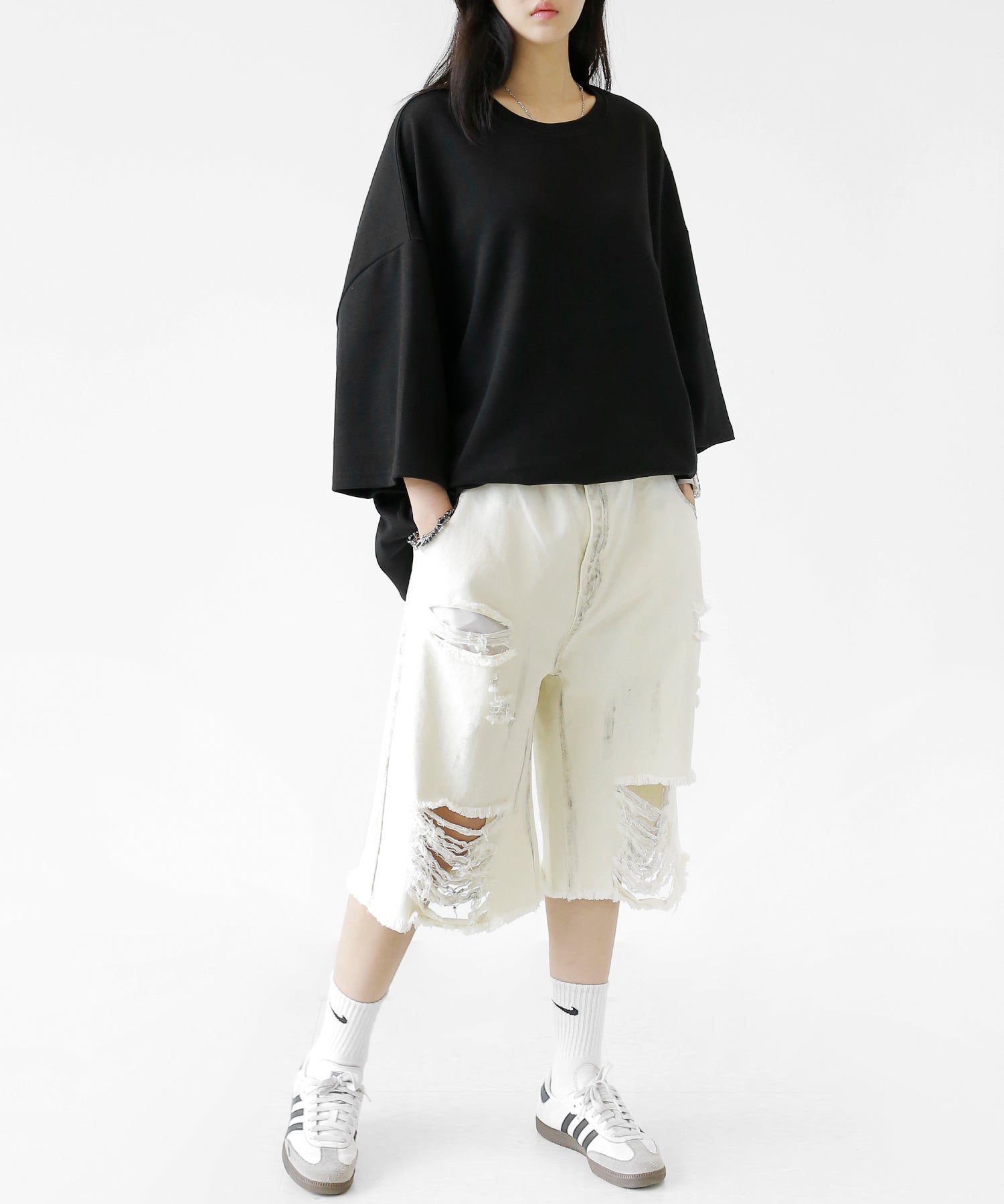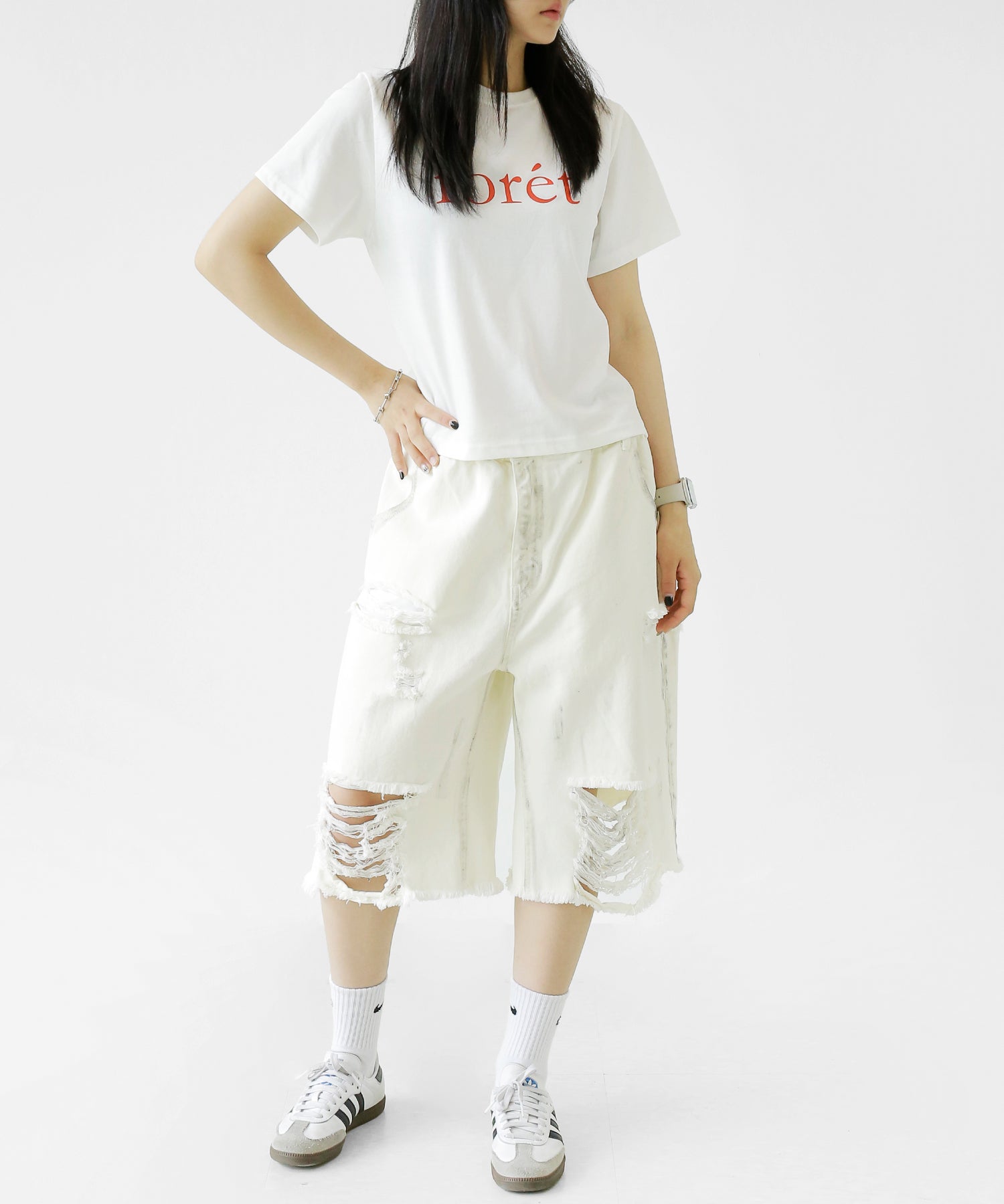 Vintage-washed, heavily distressed, and painted to perfection.These denim shorts bring street style to the next level with raw details and artistic vibes.The elastic waistband and comfortable fit make them your new go-to for edgy summer outfits.