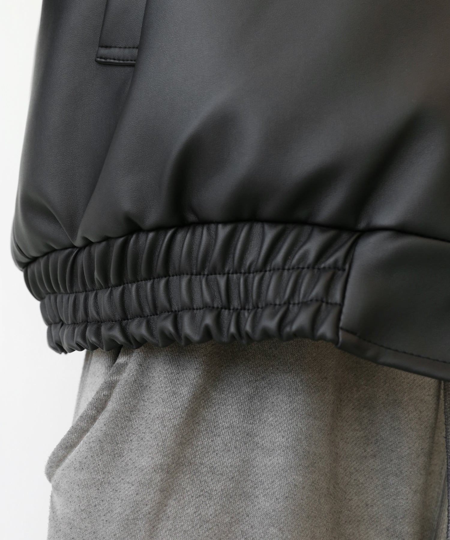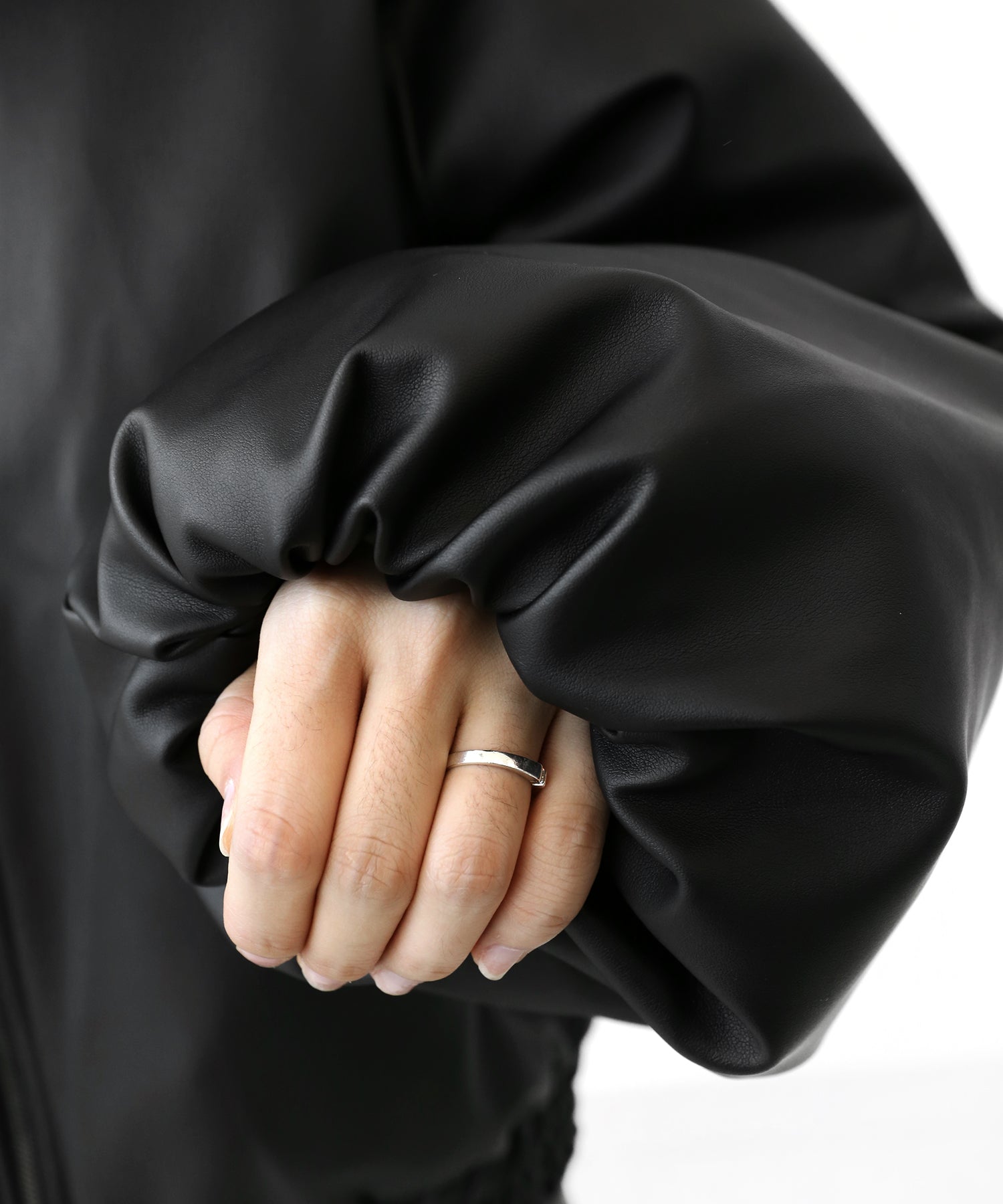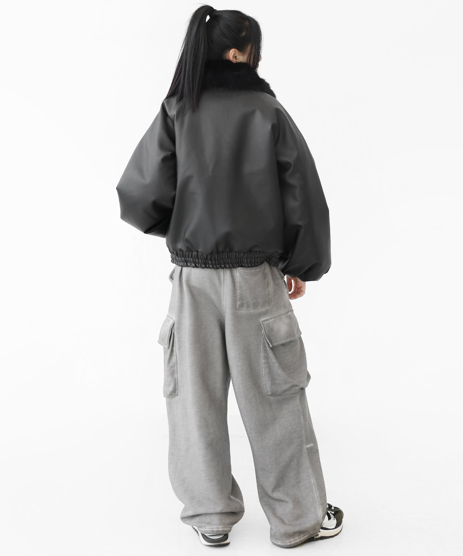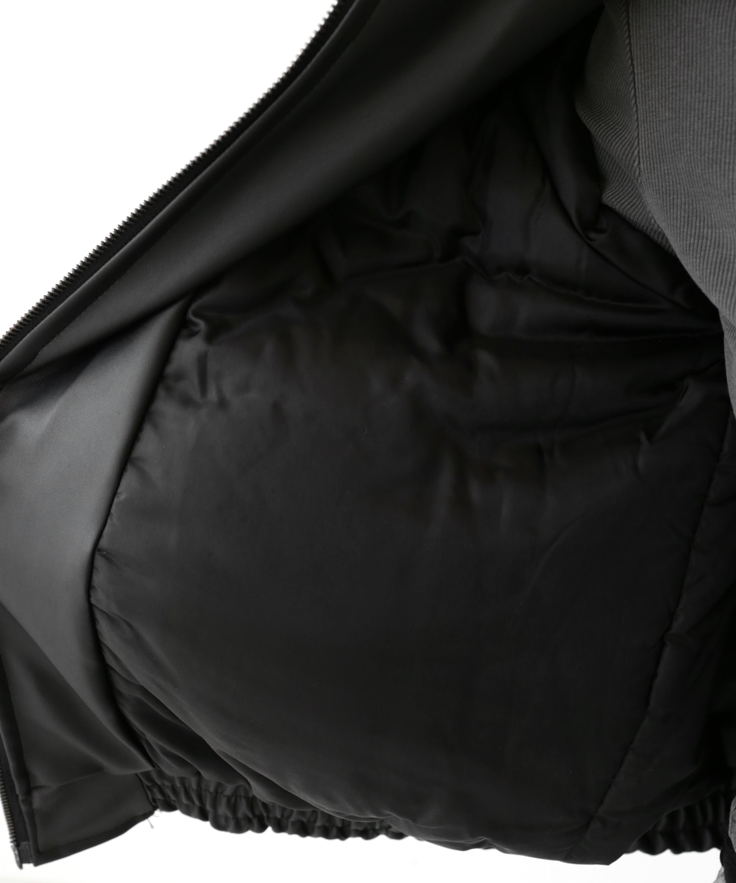 A high-neck balloon jacket made from matte faux leather, finished with a soft fur neckline.