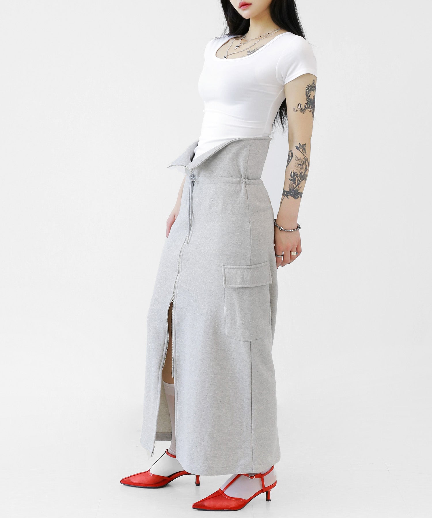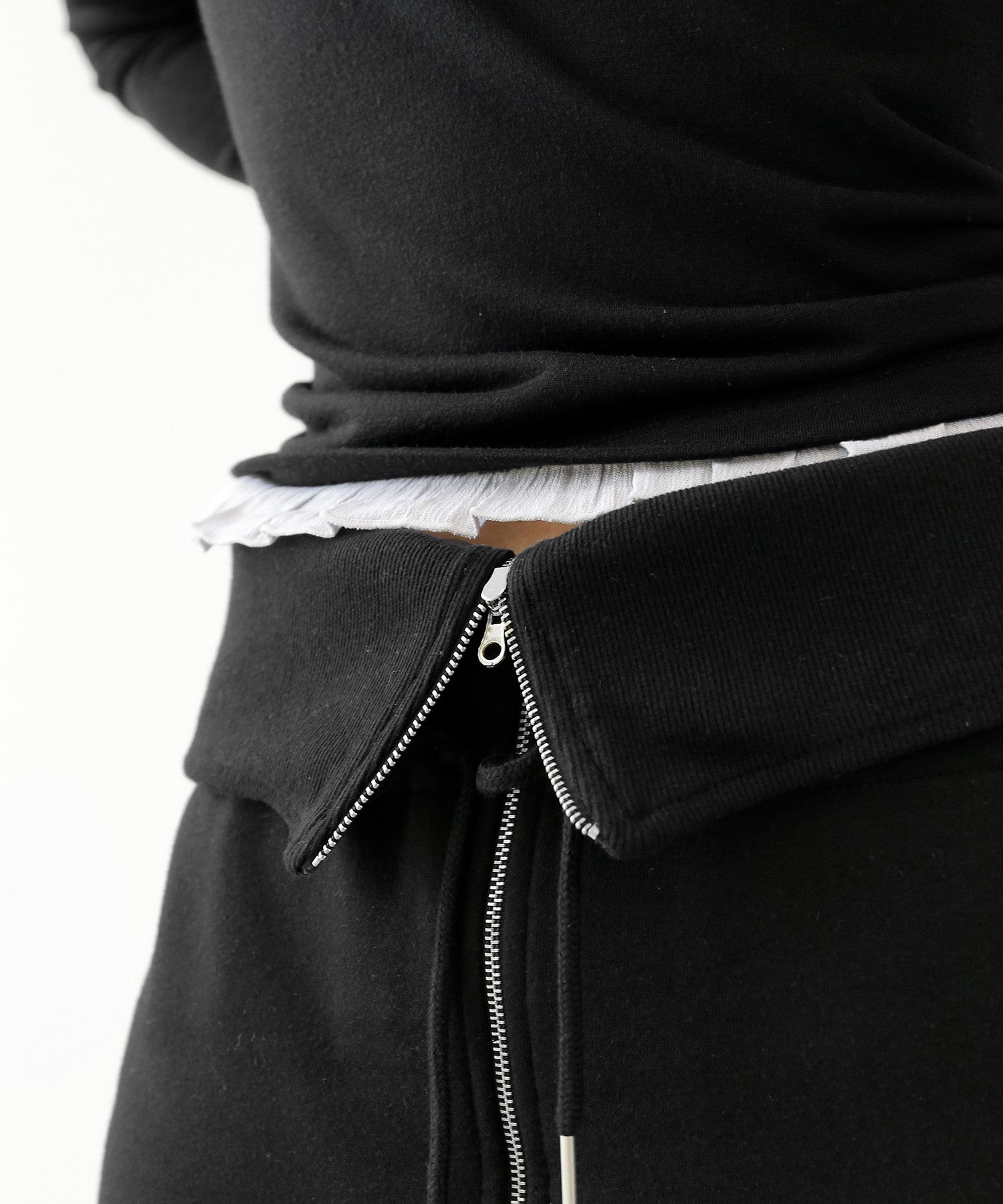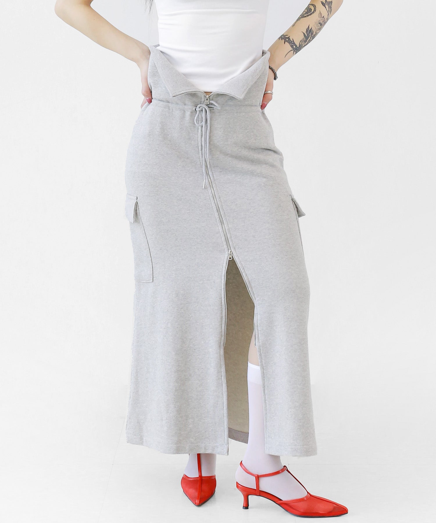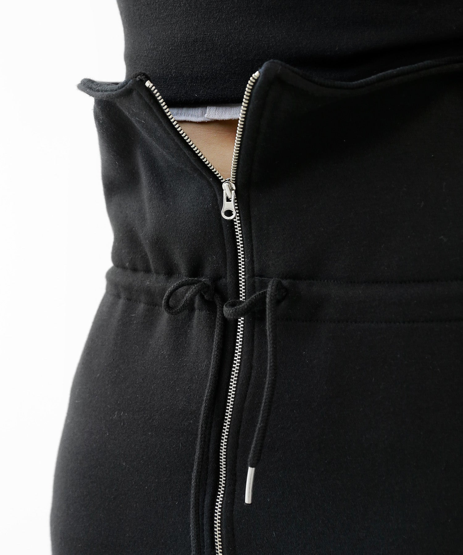 A comfy-meets-edgy sweat skirt with a bold 2-way zip.