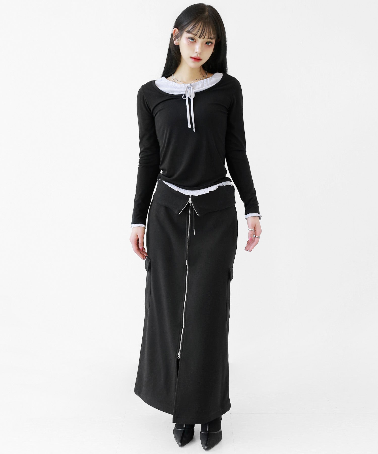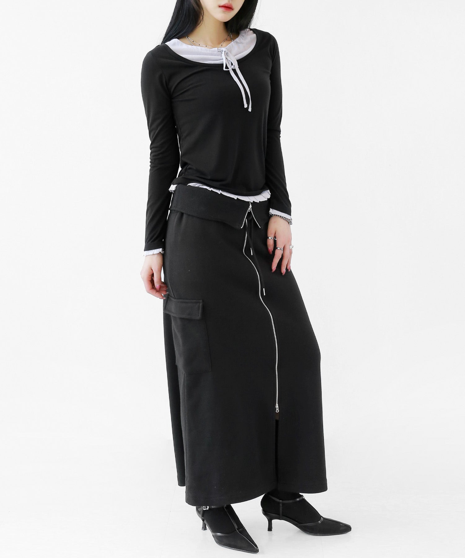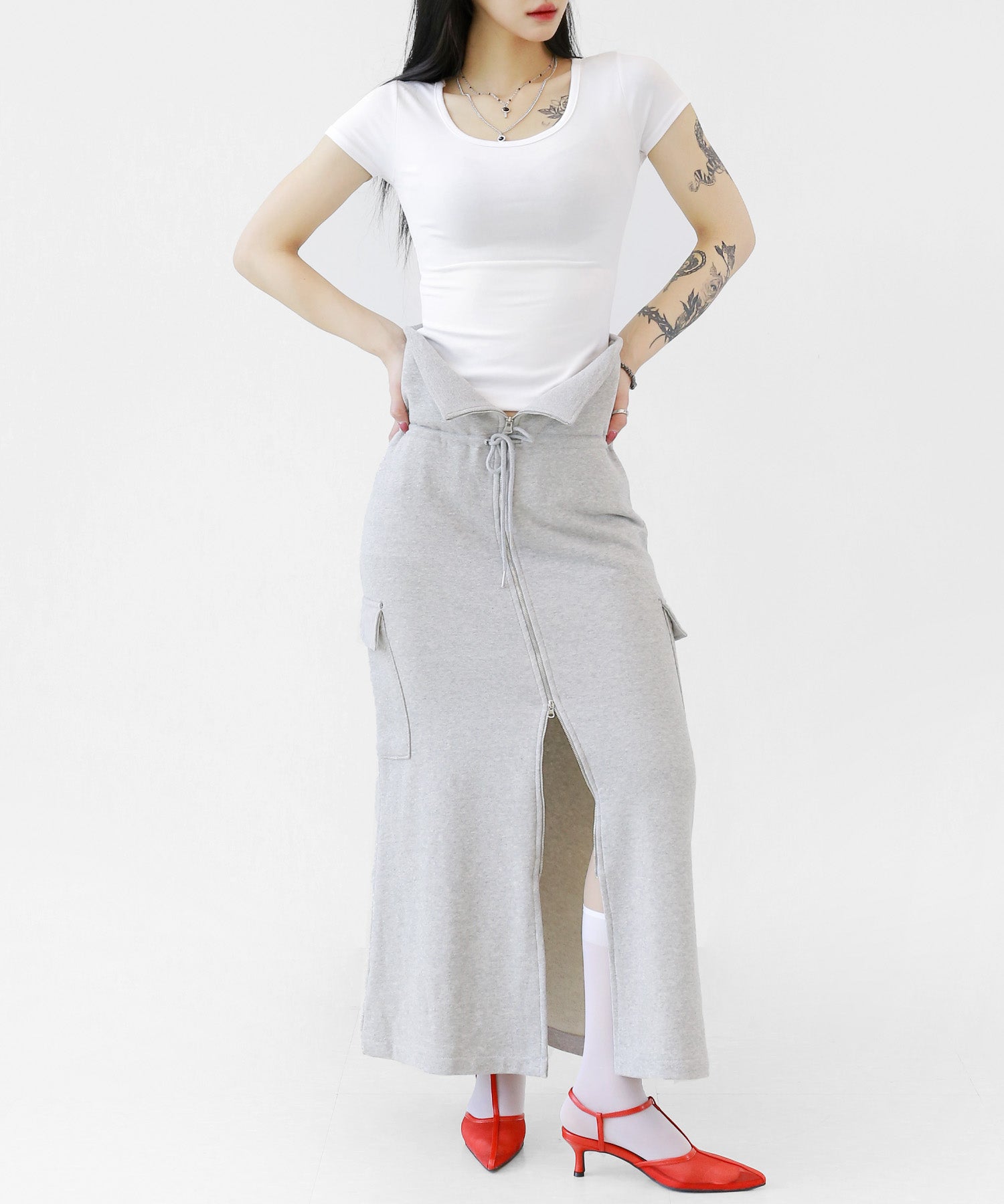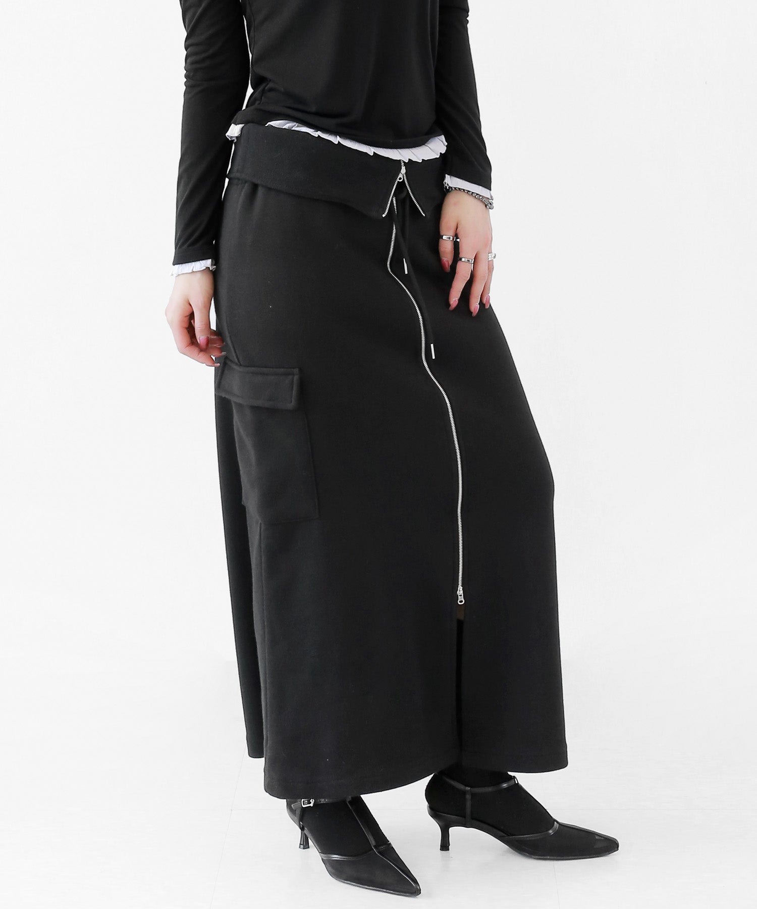 A comfy-meets-edgy sweat skirt with a bold 2-way zip.