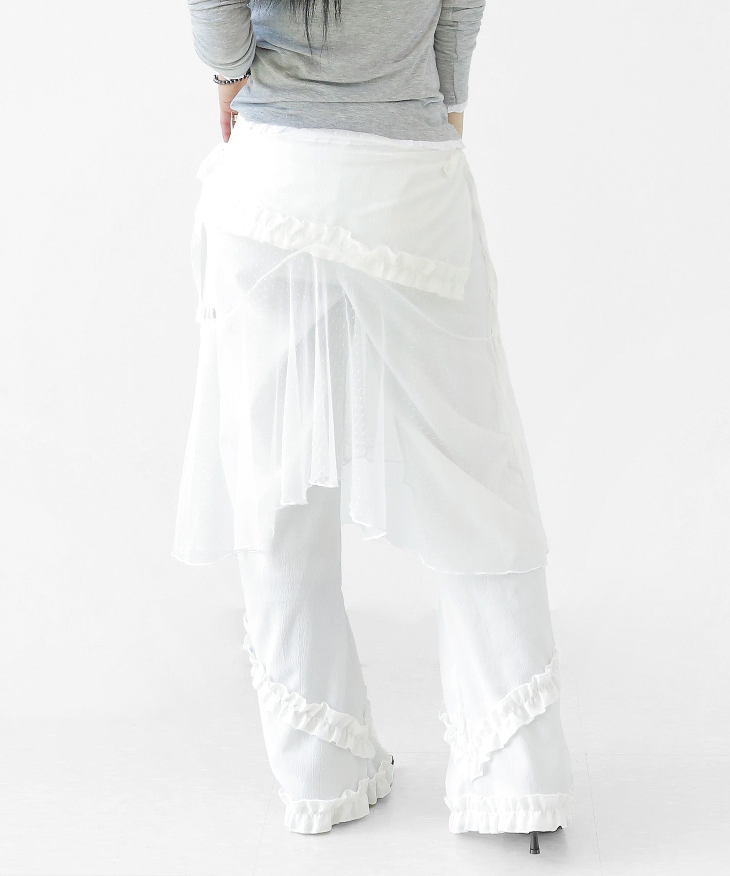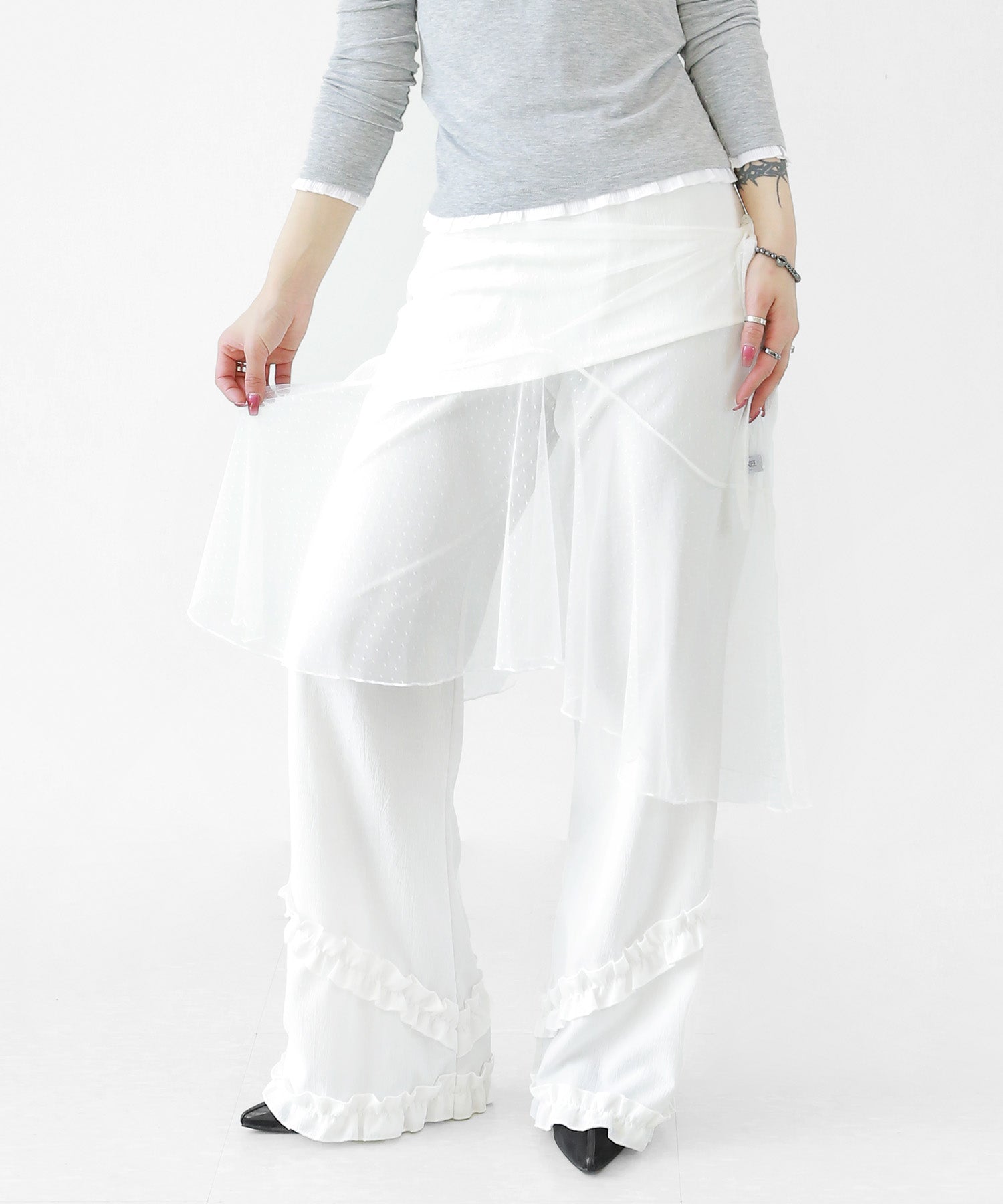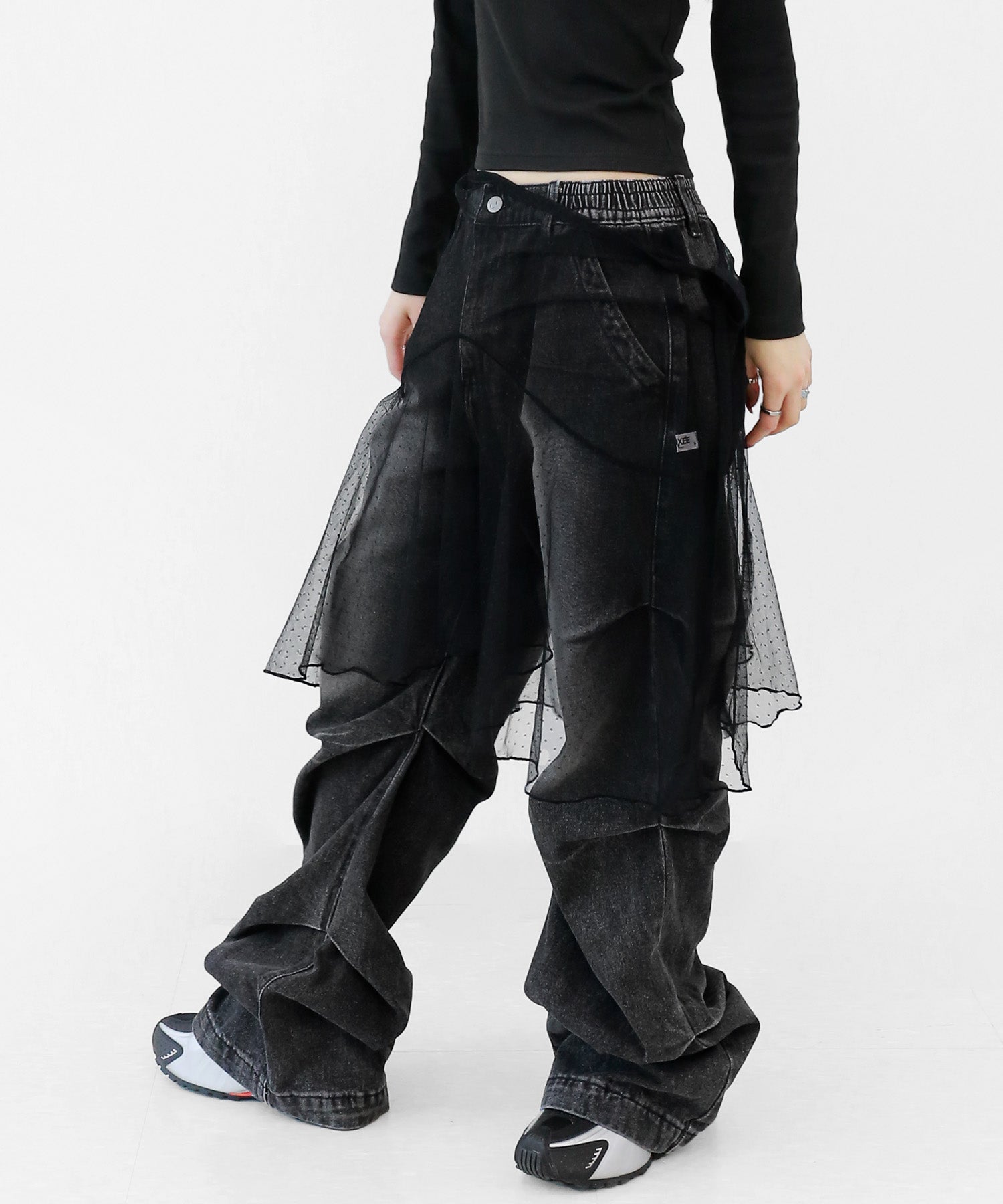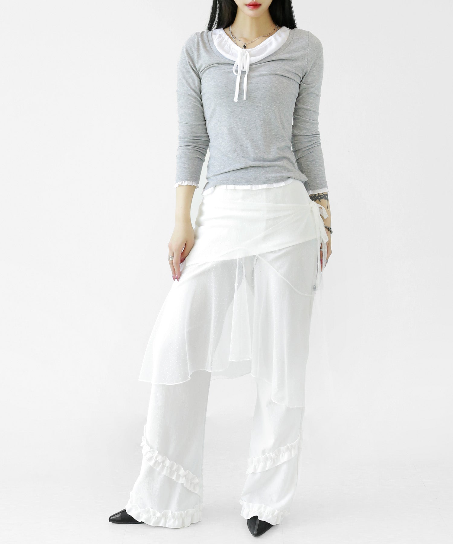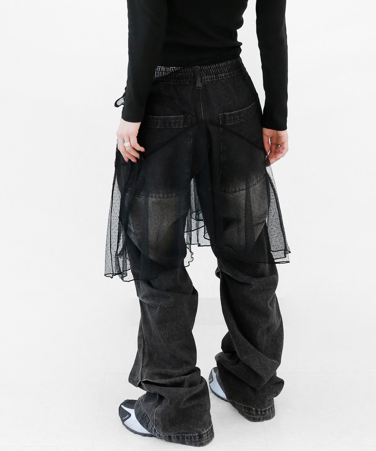 Add a modern twist to your outfit with this sheer dot lace wrap skirt. Designed to layer over jeans, pants, or slim-fit bottoms, it brings a stylish edge to minimal looks. Loved by fashion-forward women in Korea and Japan, this statement piece blends femininity with versatility—perfect for bold street styling or elegant layering.