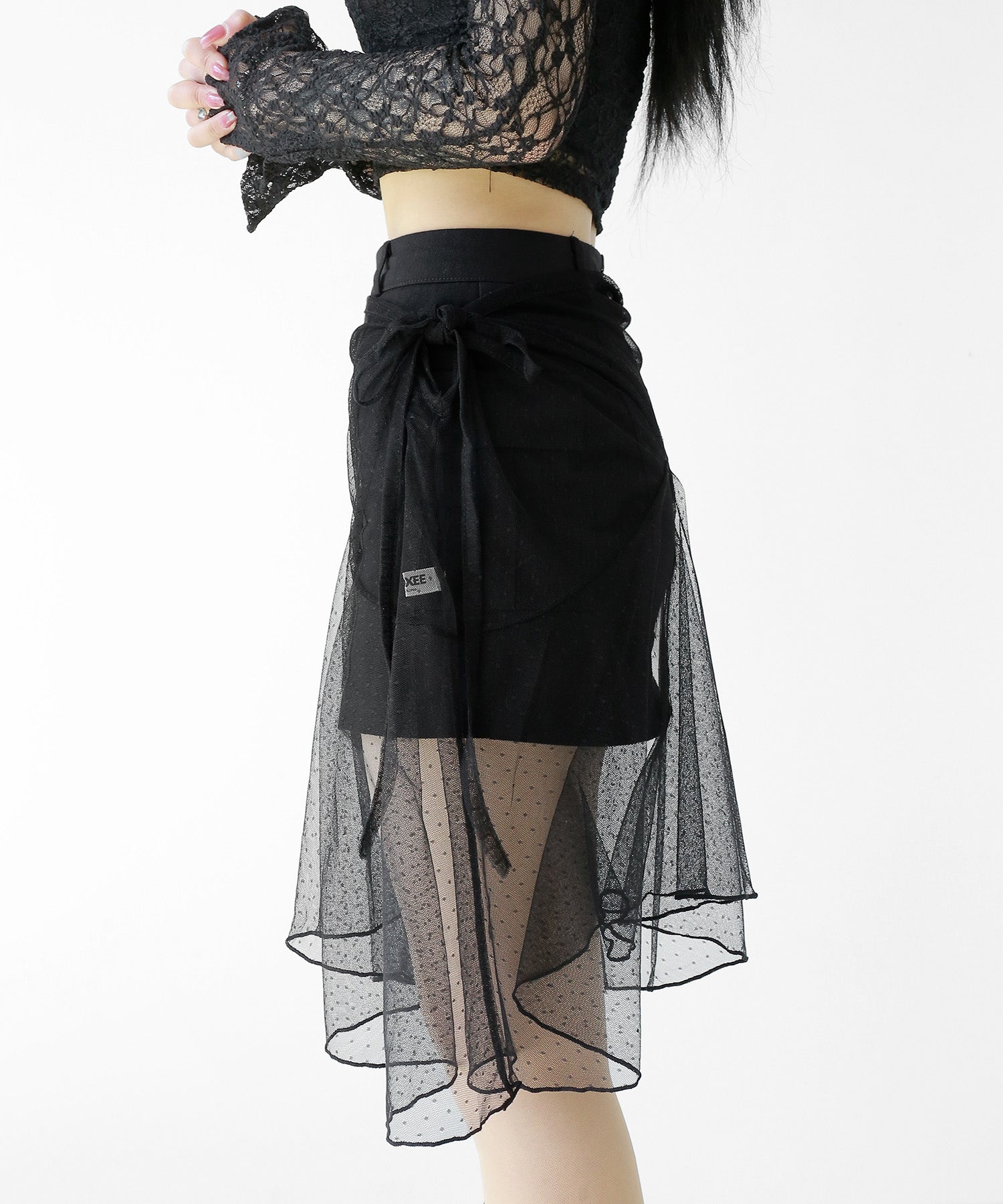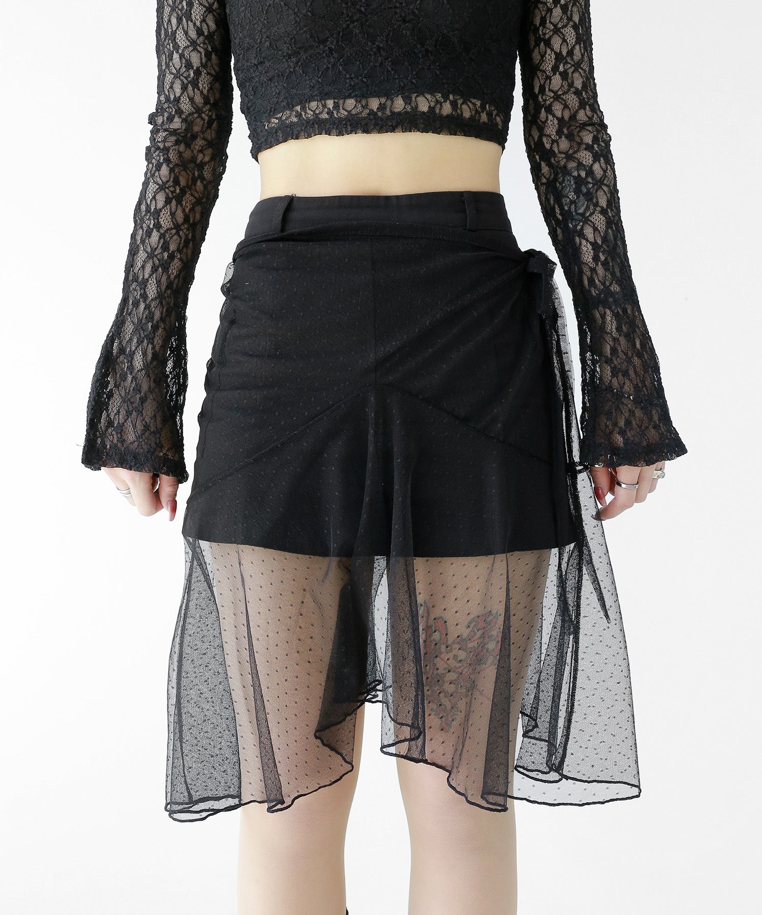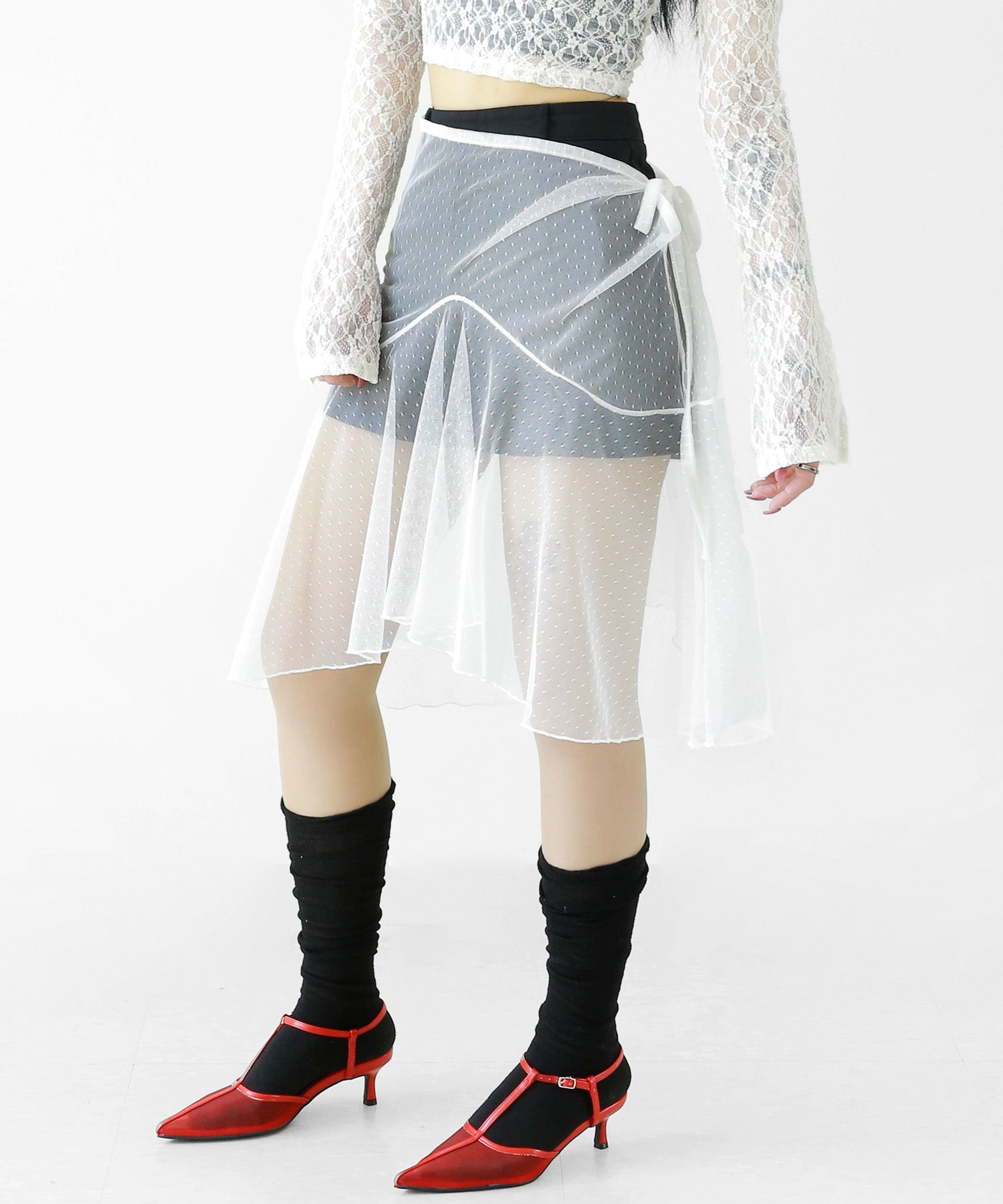 Dot Lace Wrap Skirt – Sheer Layered Statement Piece