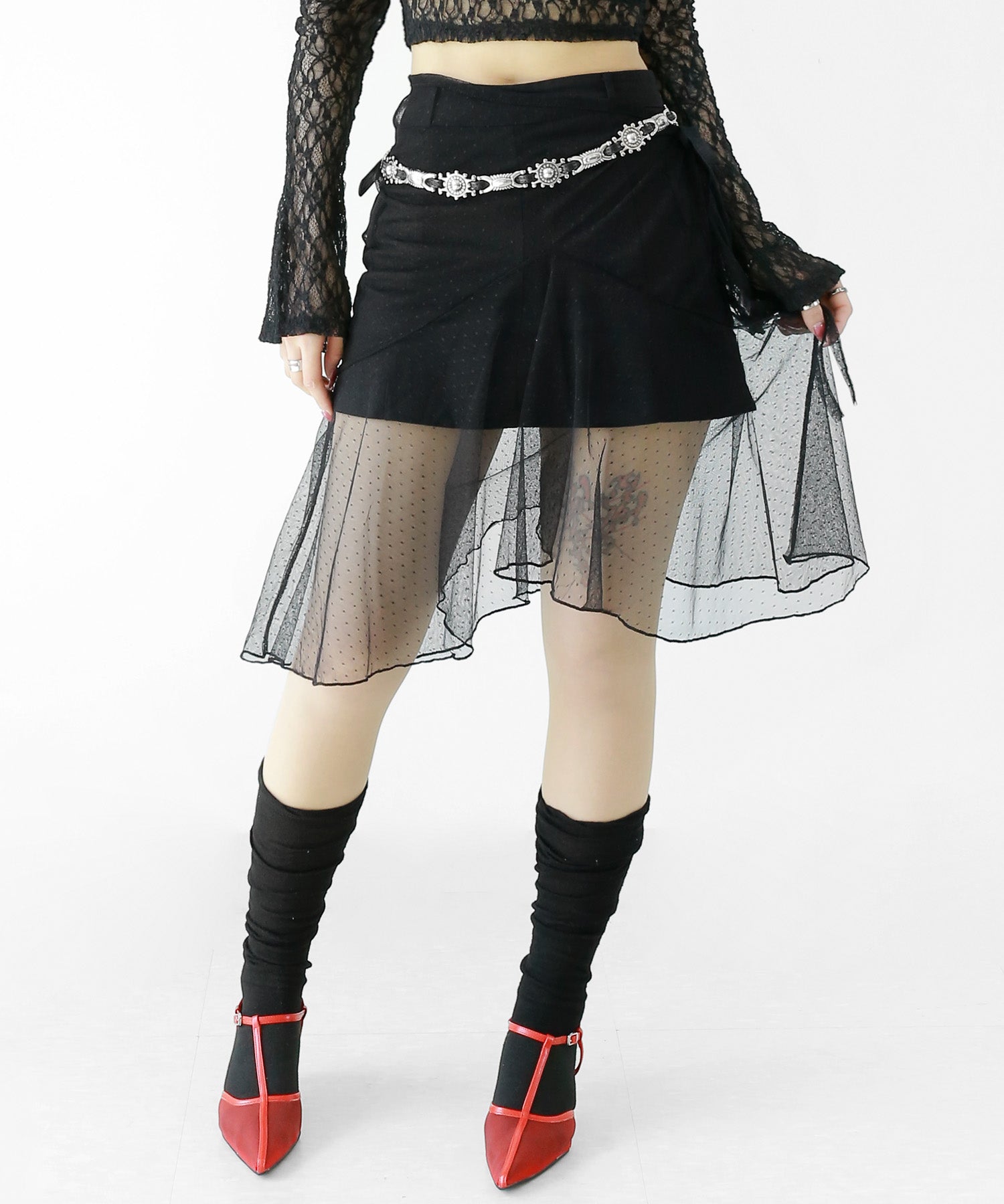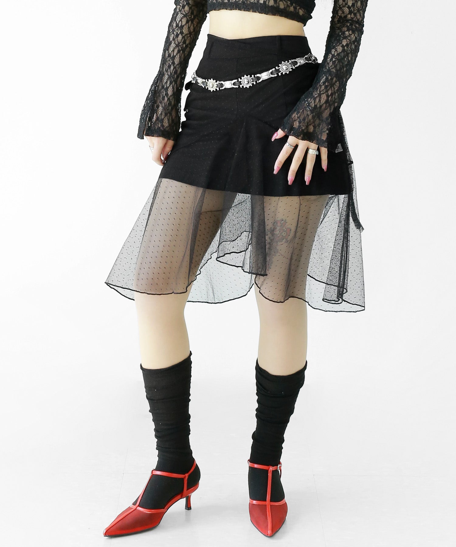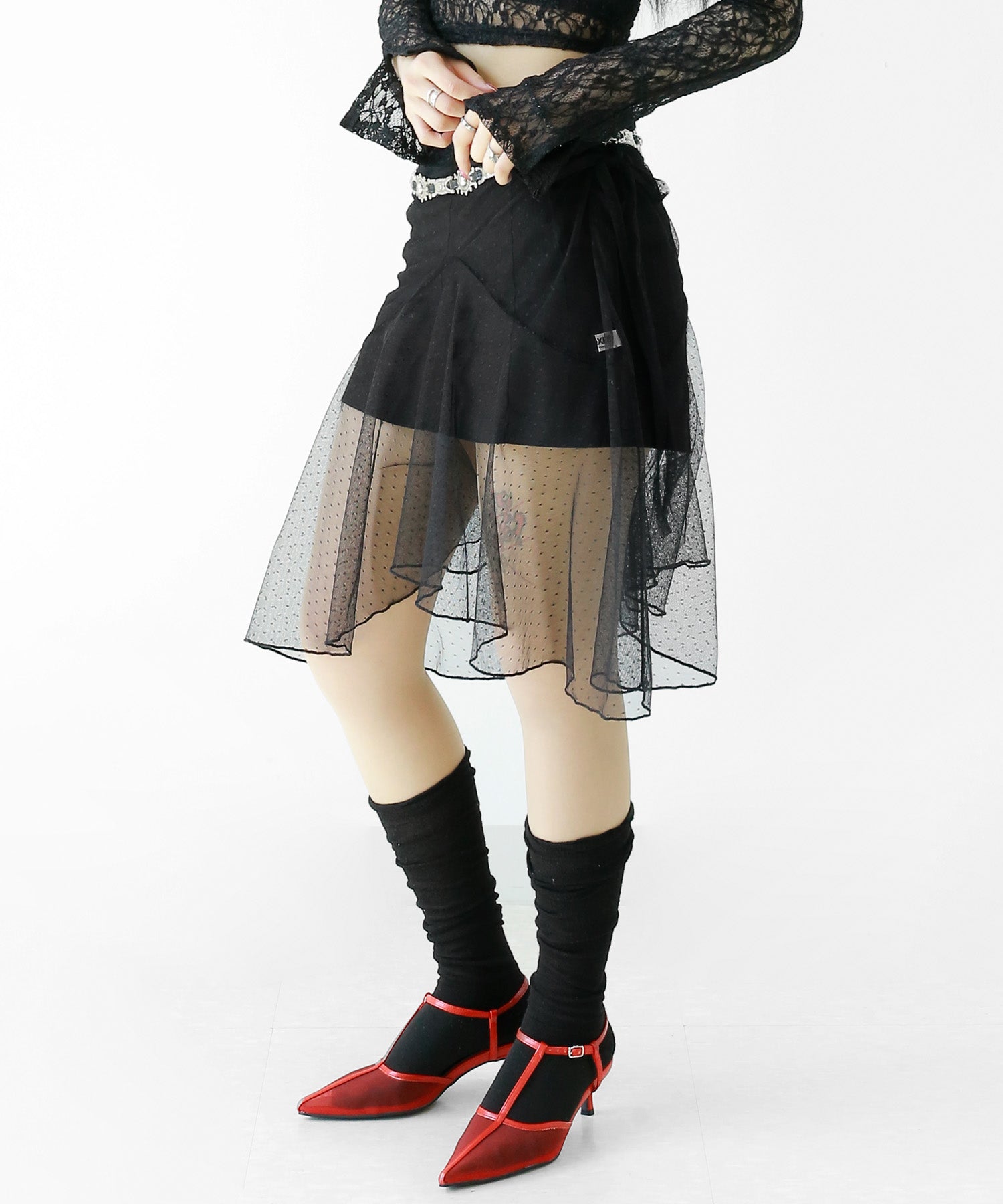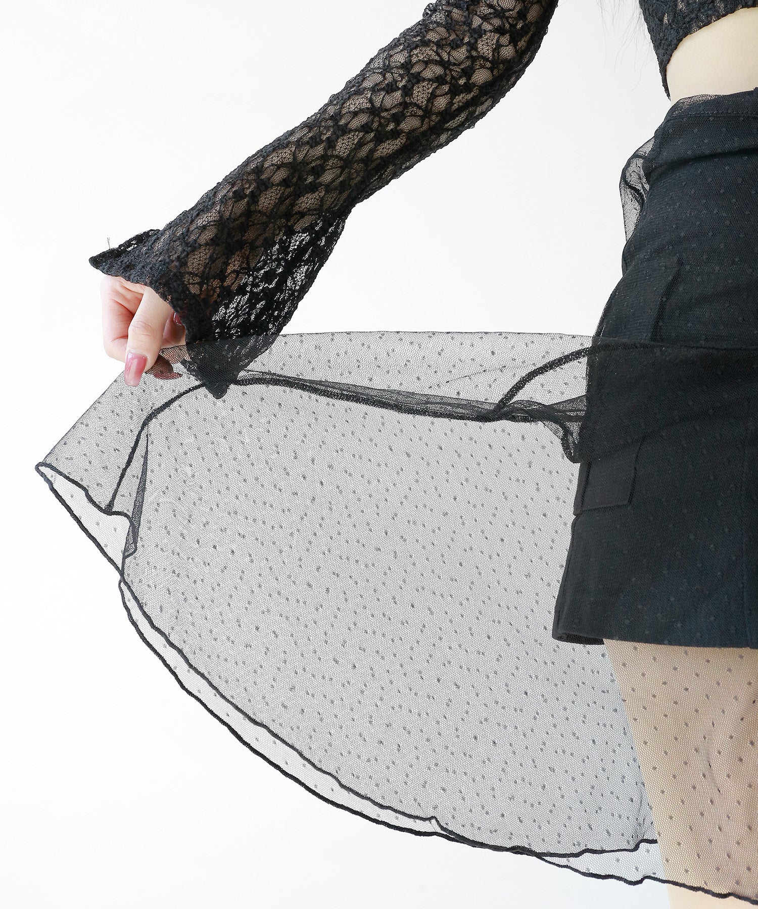 Dot Lace Wrap Skirt – Sheer Layered Statement Piece