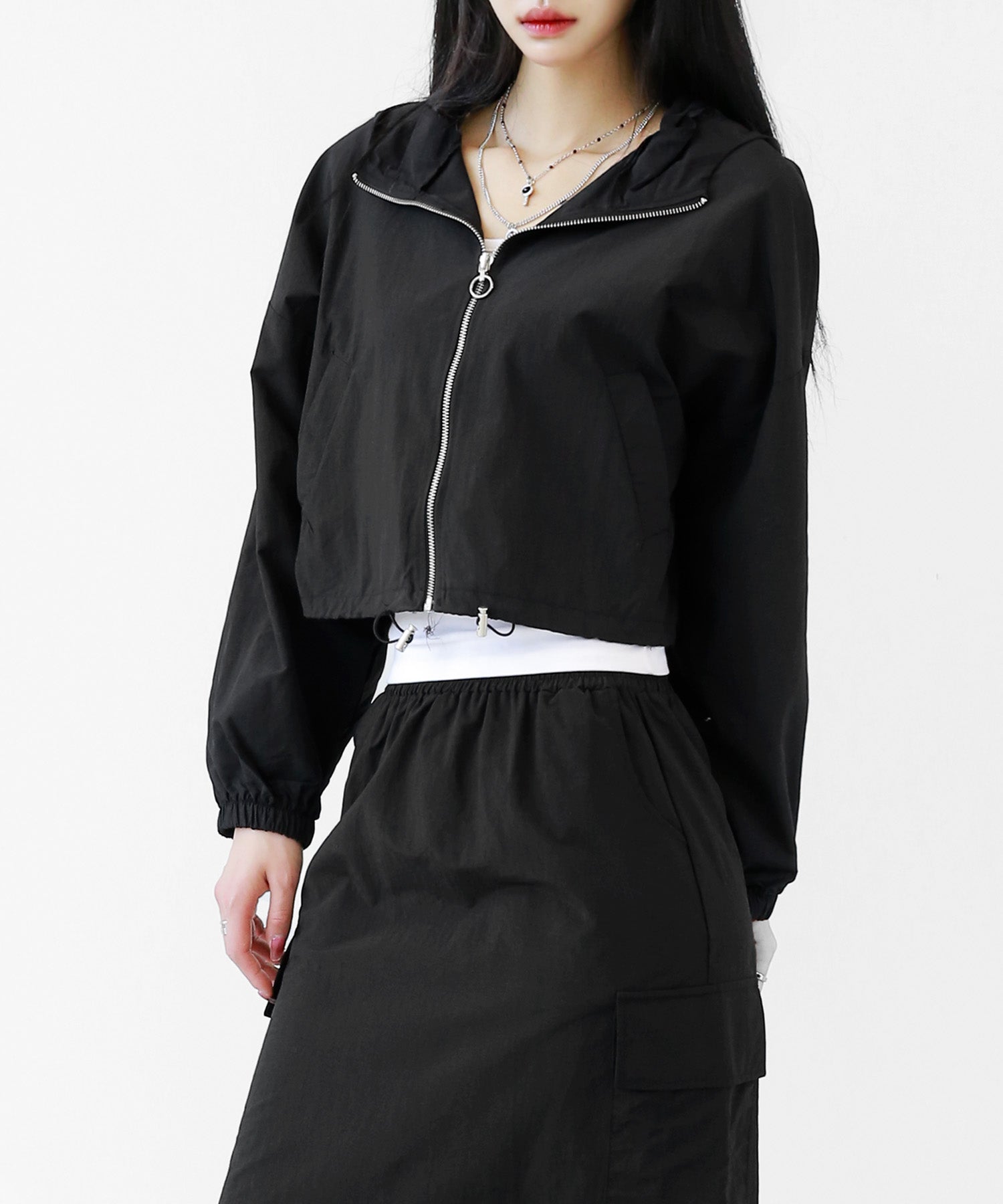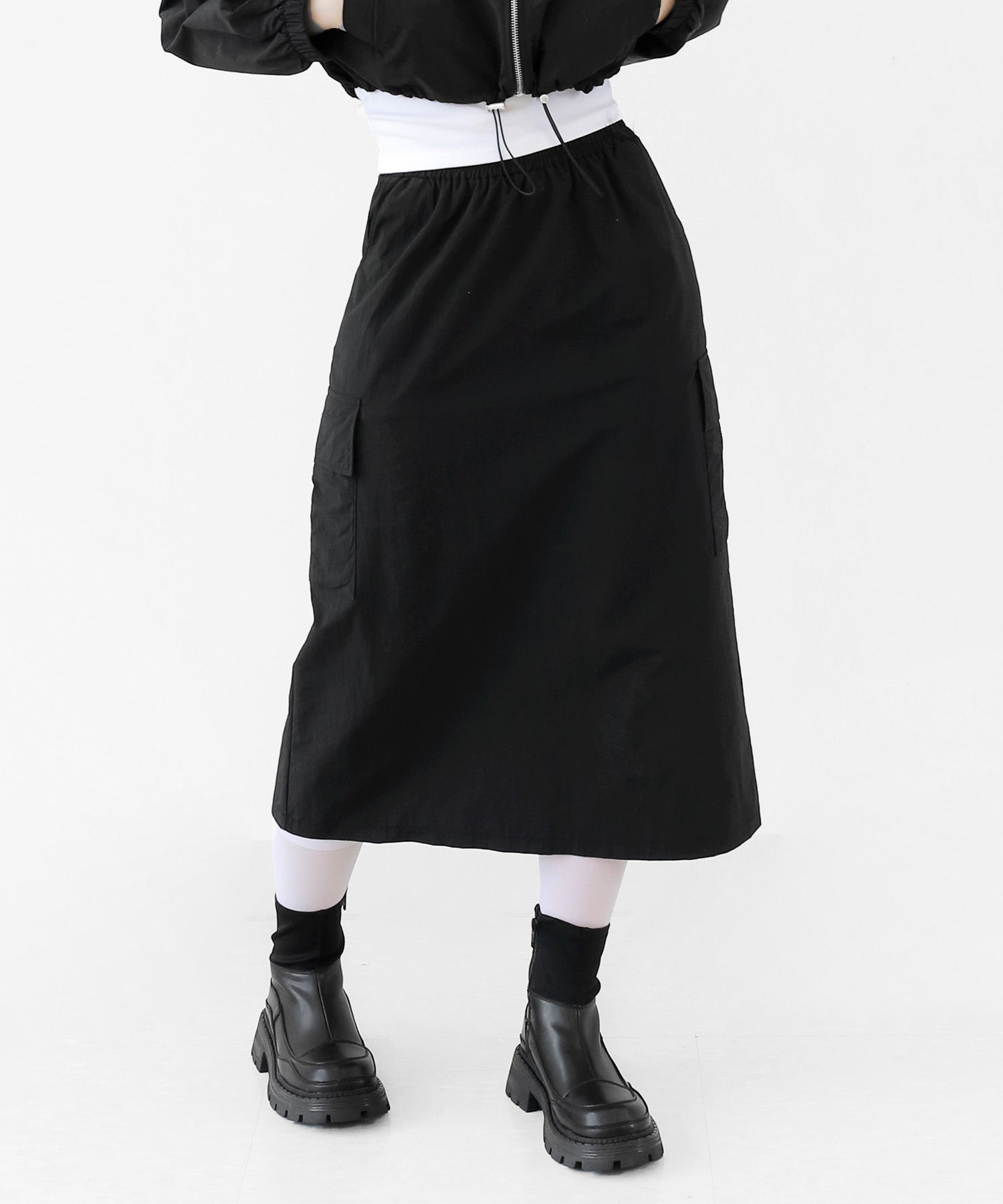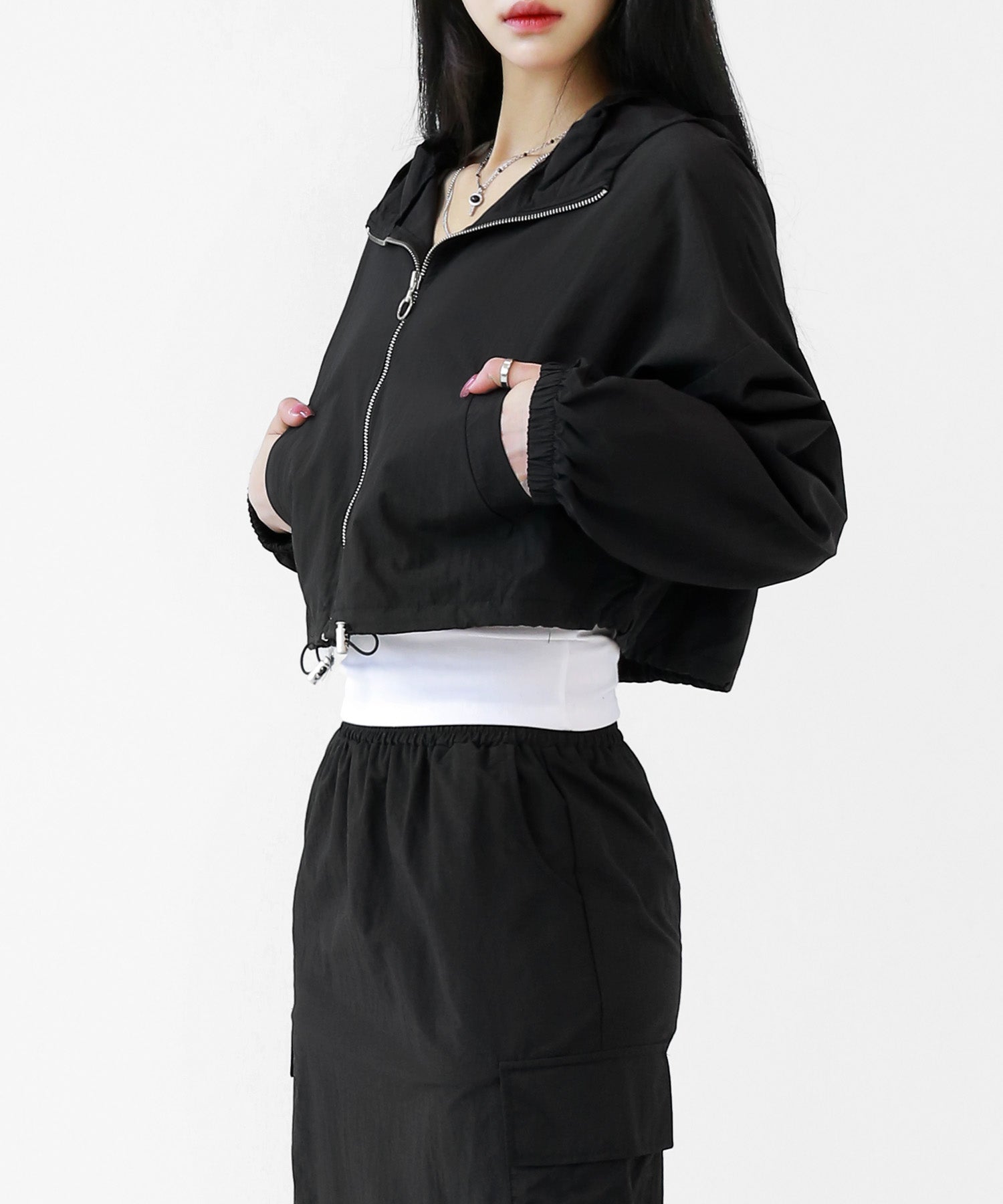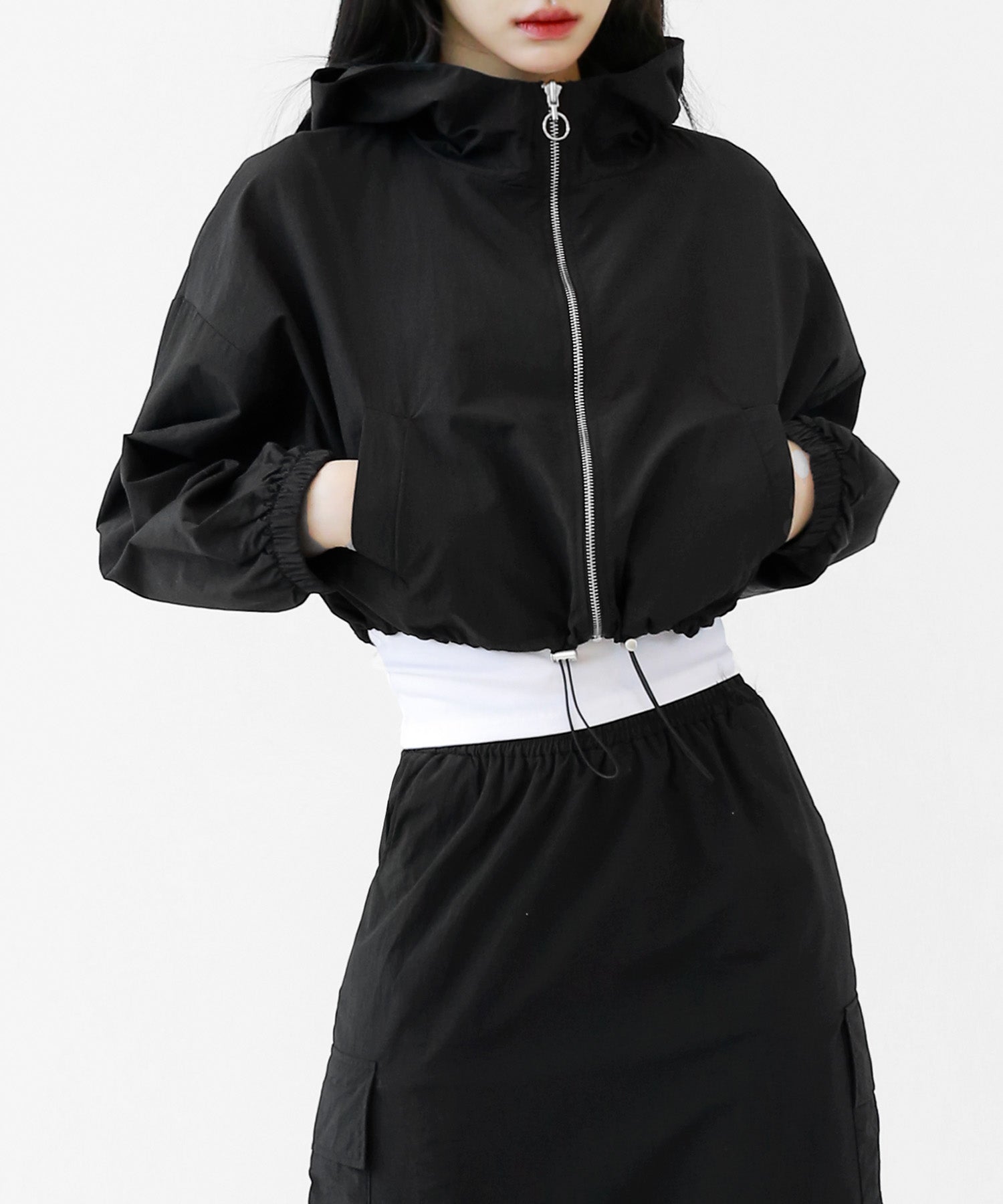 [2-PIECE SET]O-Ring Zip Cargo Pocket Skirt Set – Cropped Hoodie & Slit Skirt