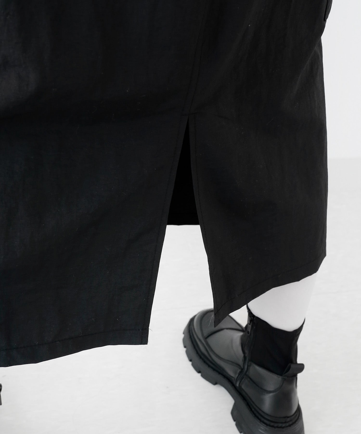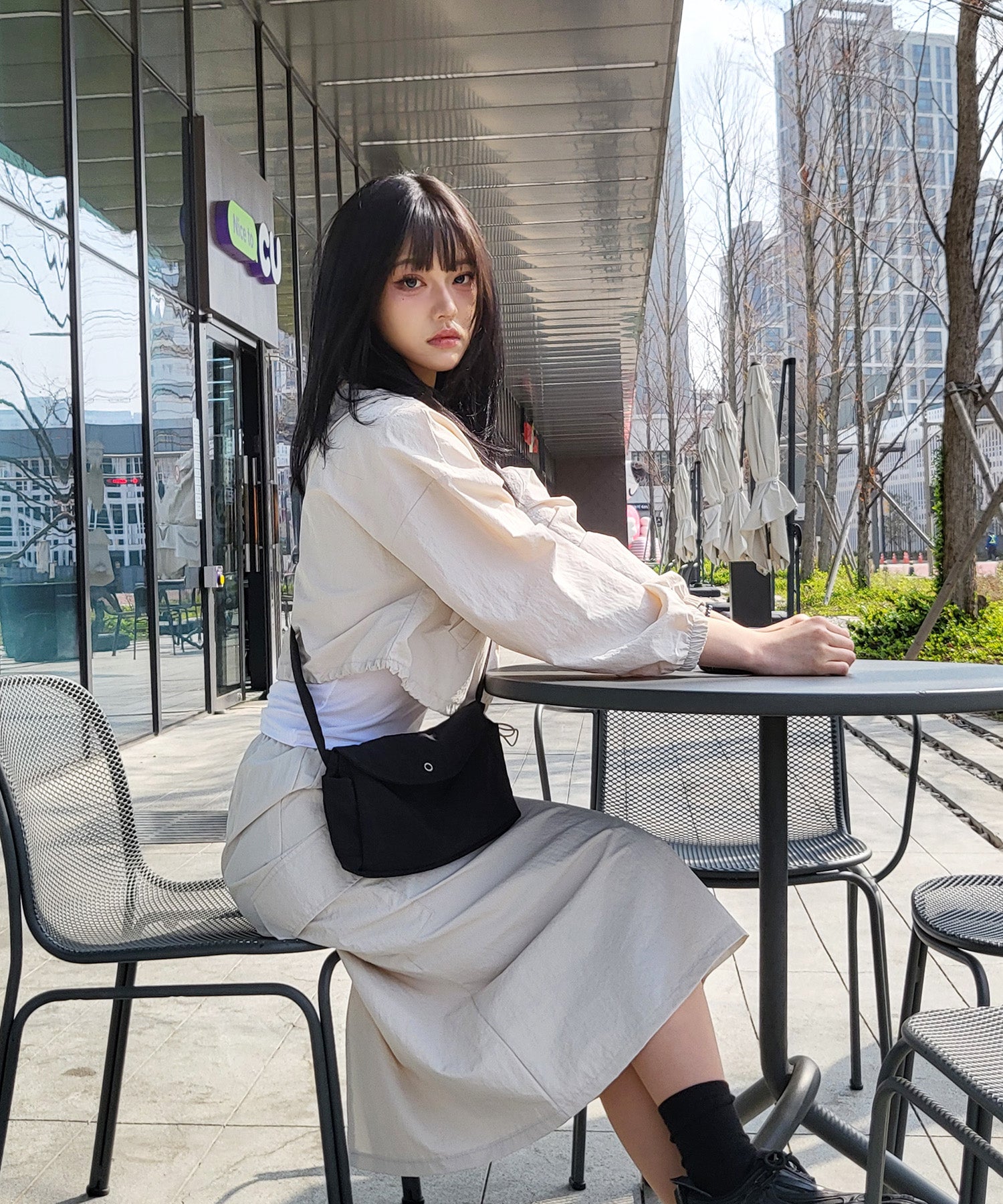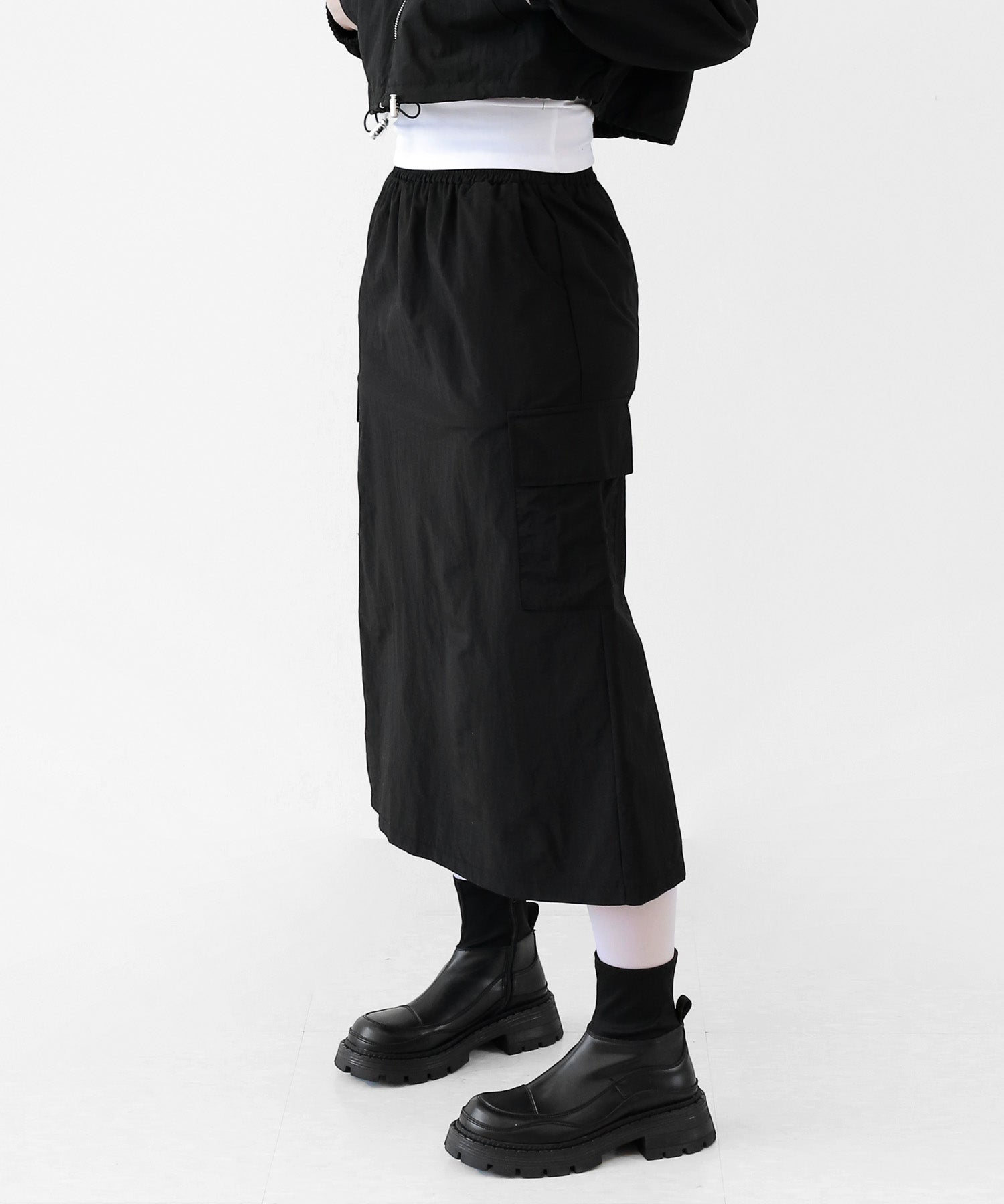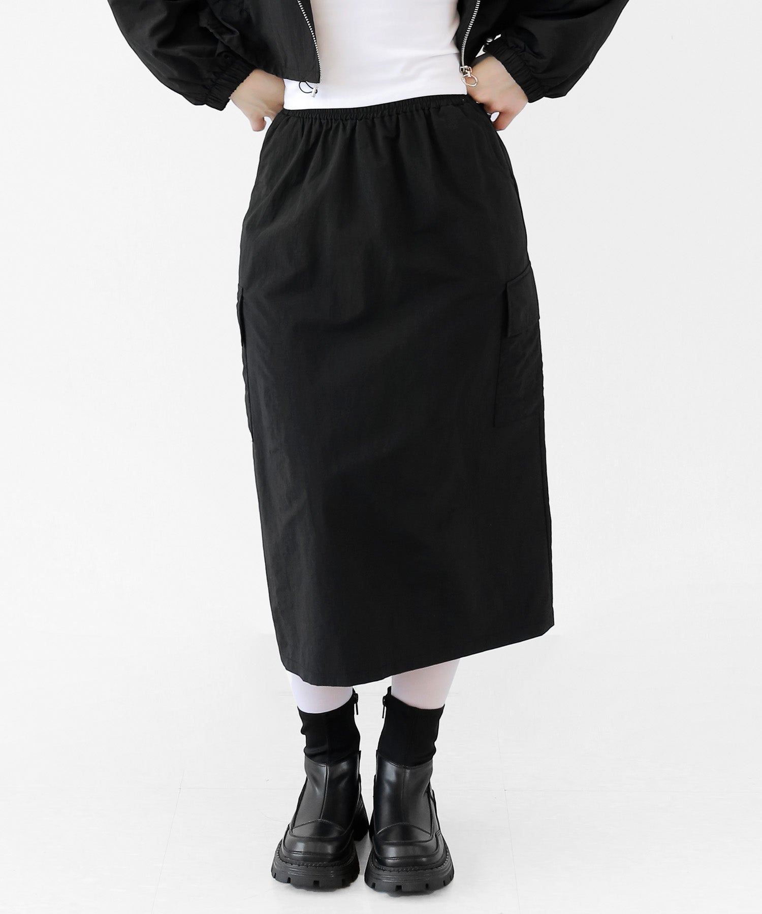 A street-meets-modern two-piece set featuring a cropped hoodie and high-slit H-line skirt. The O-ring zipper and cargo pockets add edgy detail, while the stretchy waistband ensures all-day comfort. Loved by trendsetters in Korea and Japan, this versatile outfit is perfect for layering or styling solo—your go-to for effortless, fashion-forward looks.