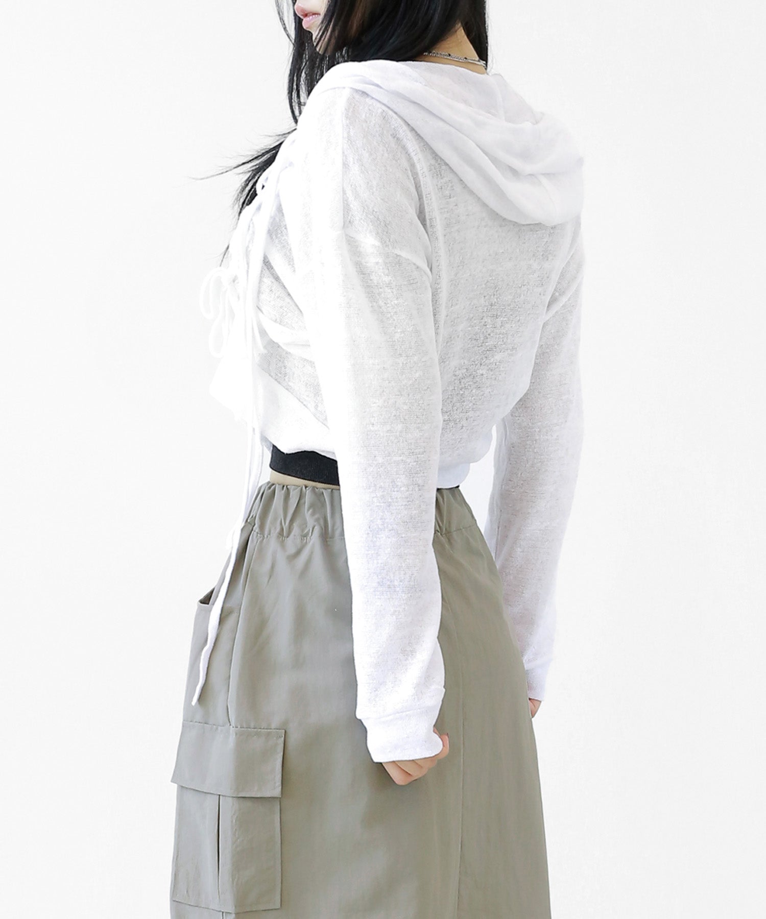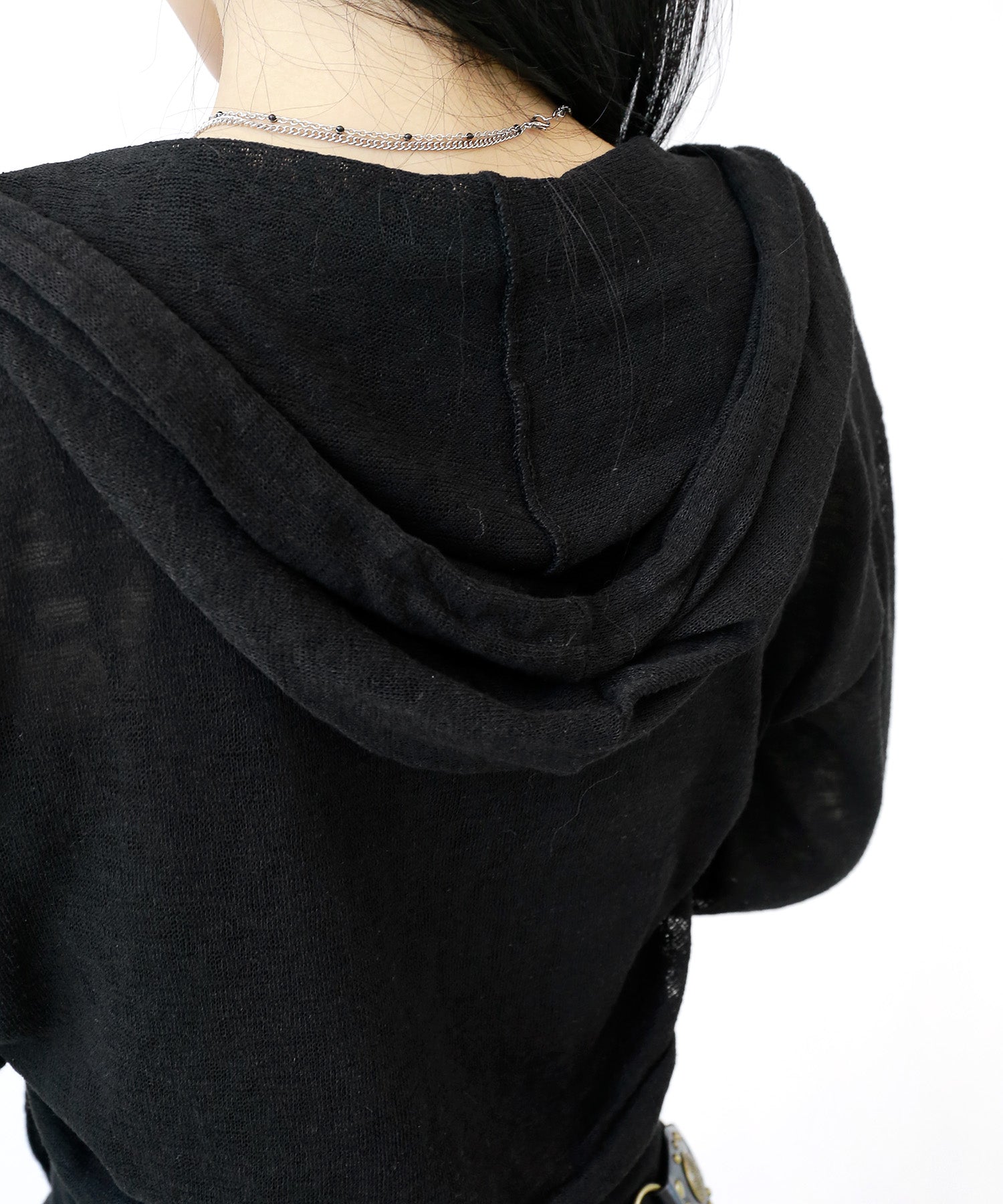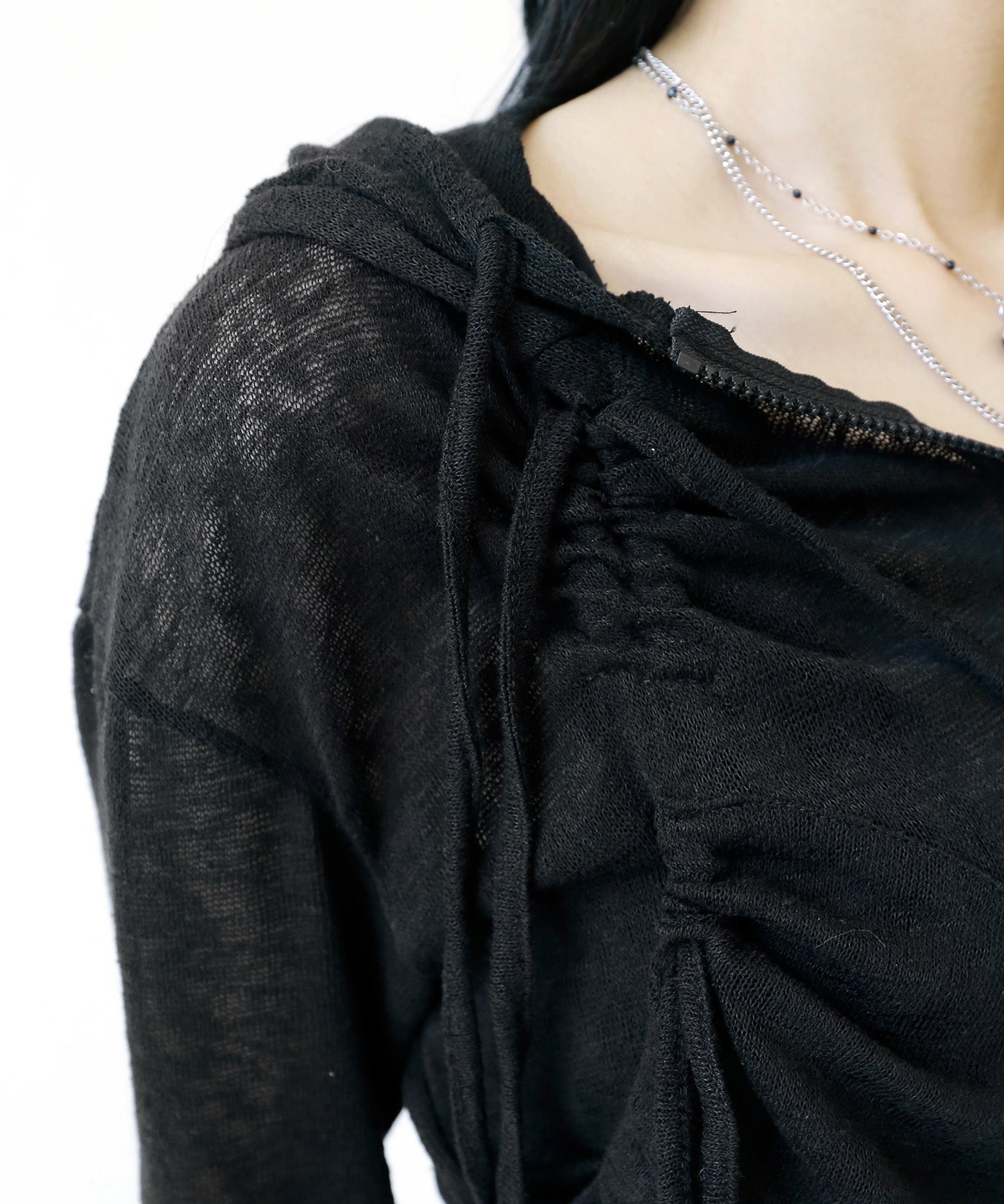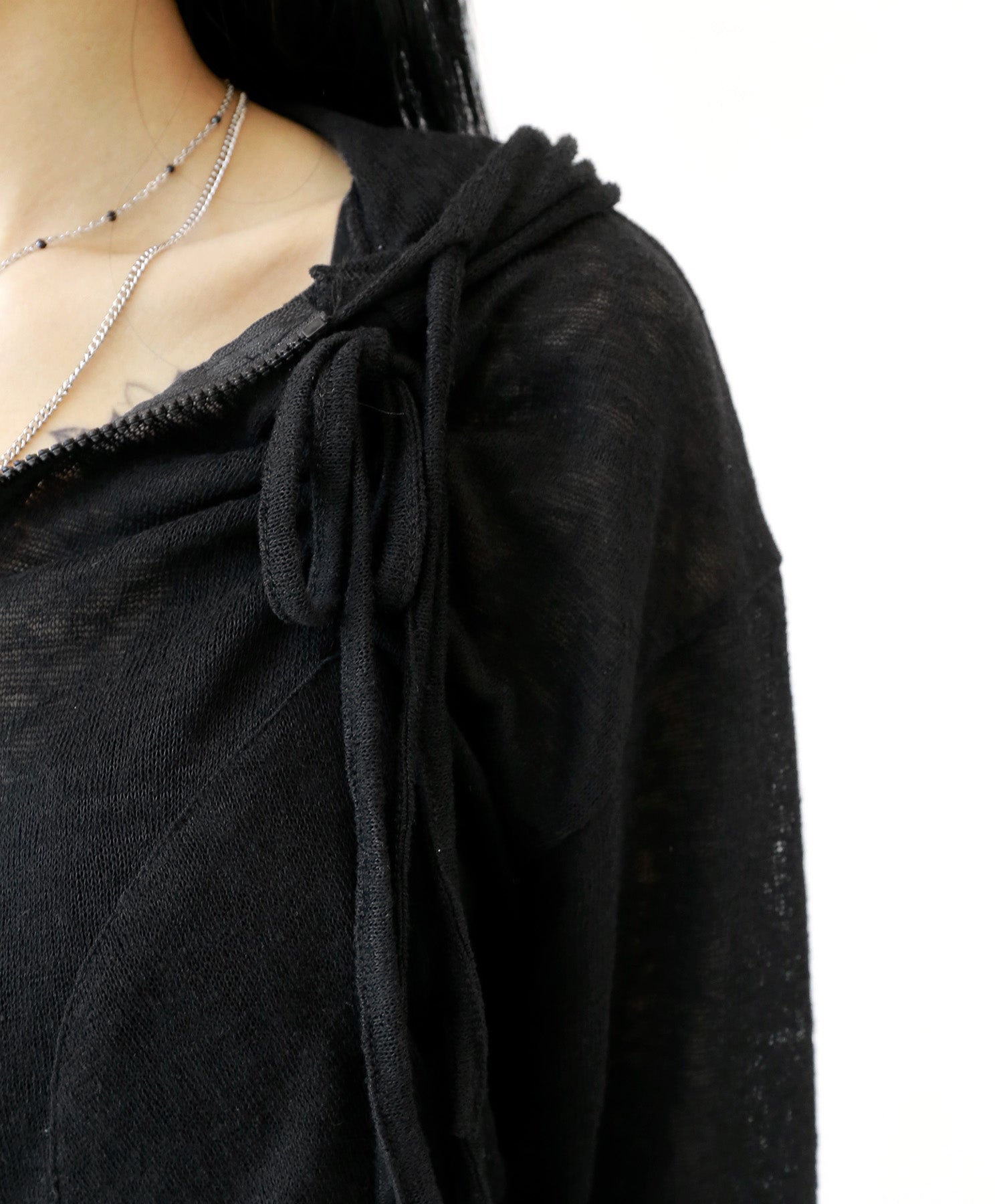 A breezy sheer hoodie crafted from linen, blending feminine charm with a soft street edge.