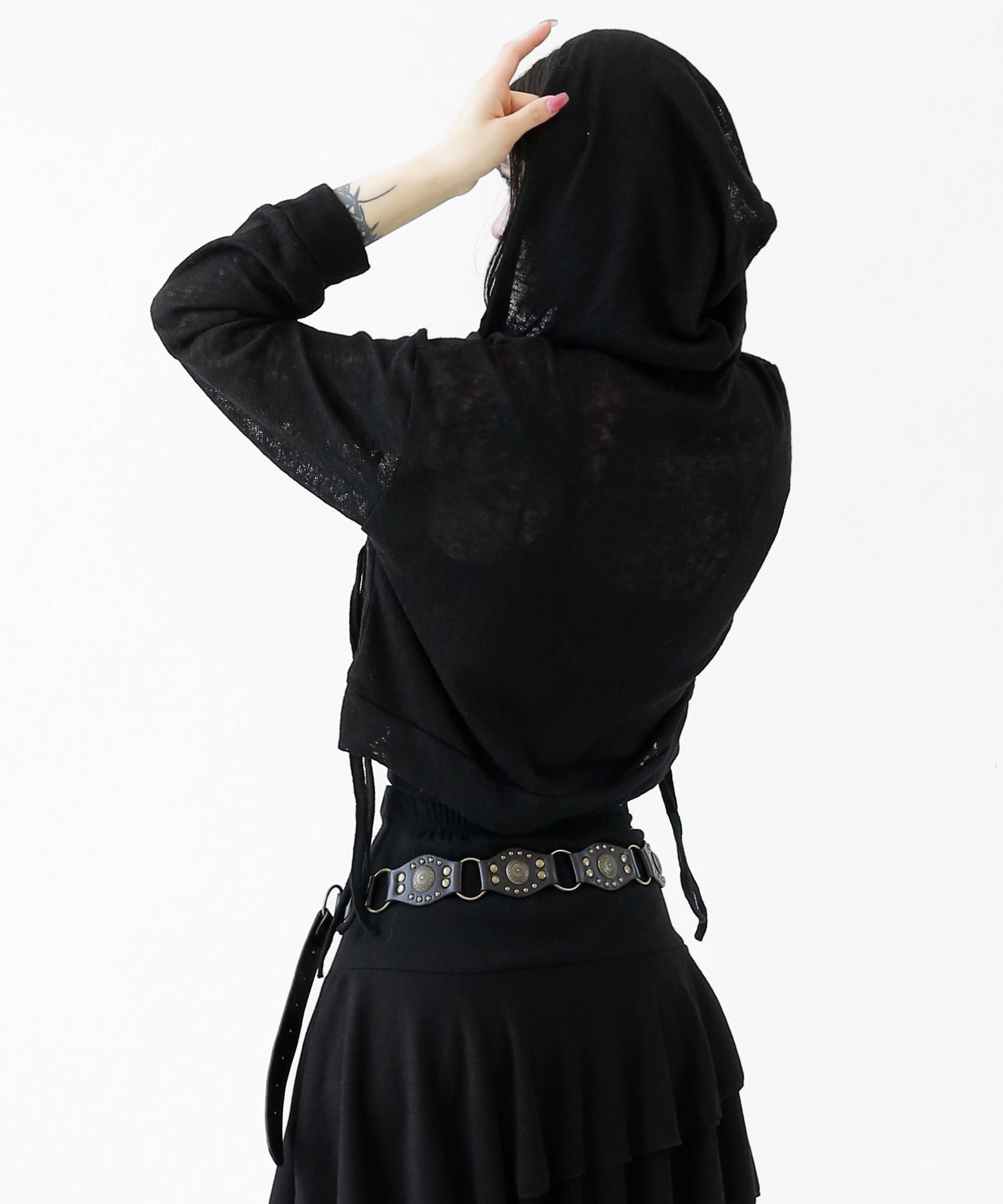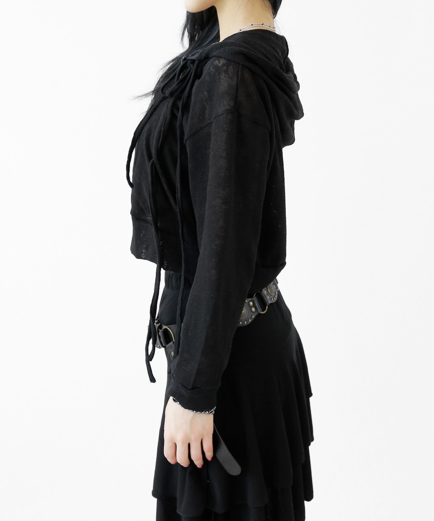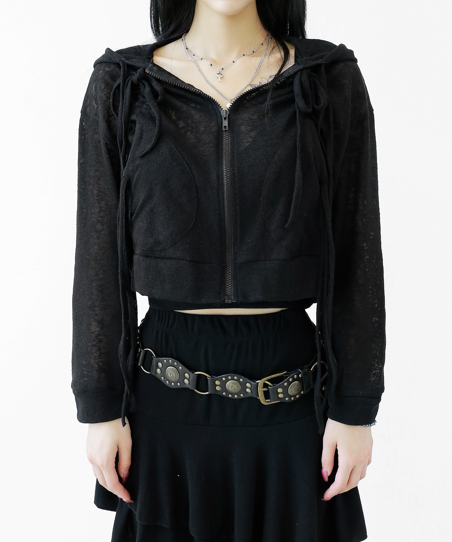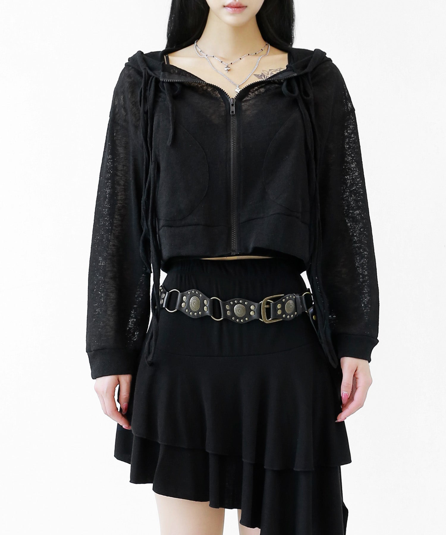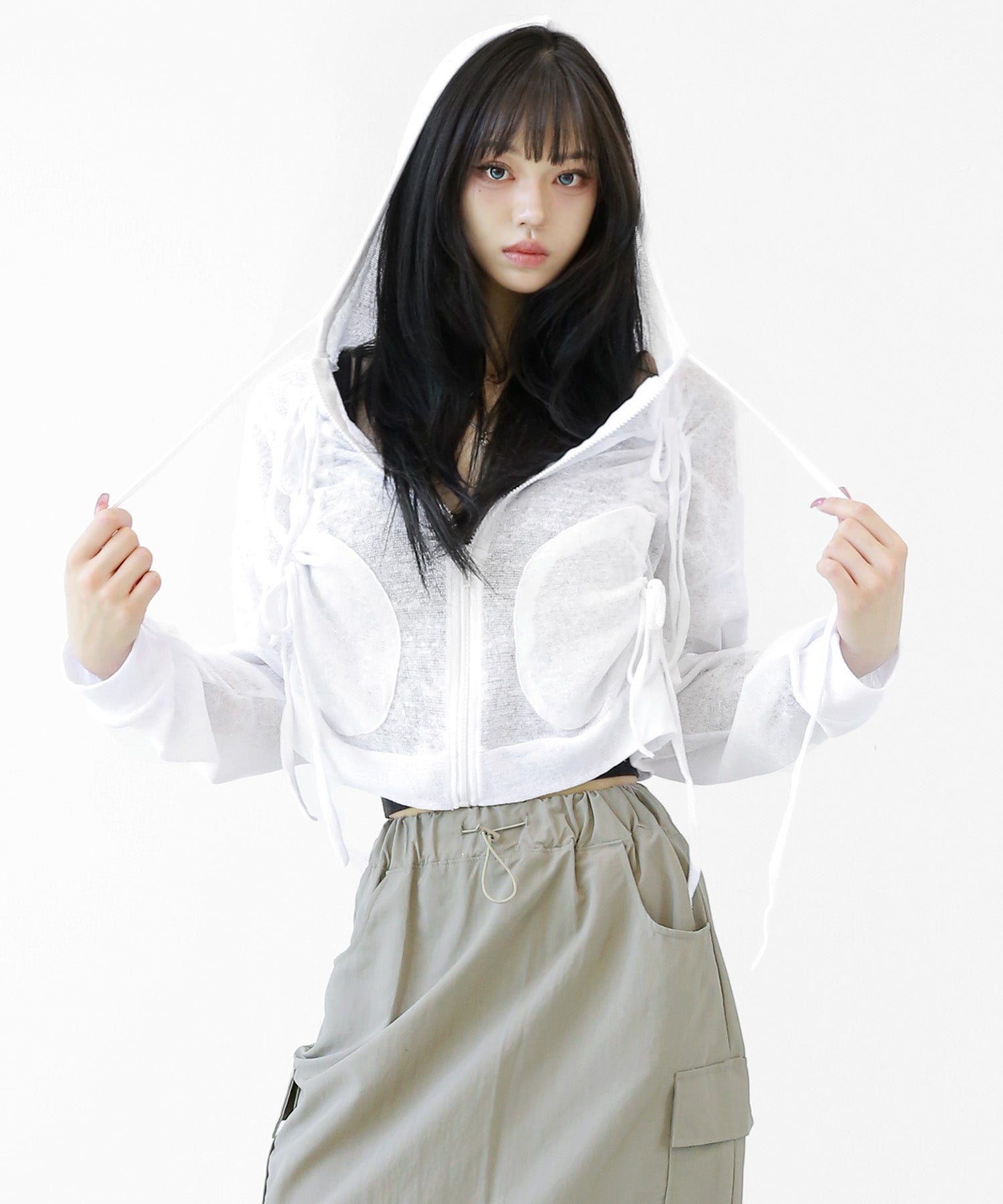 A breezy sheer hoodie crafted from linen, blending feminine charm with a soft street edge.