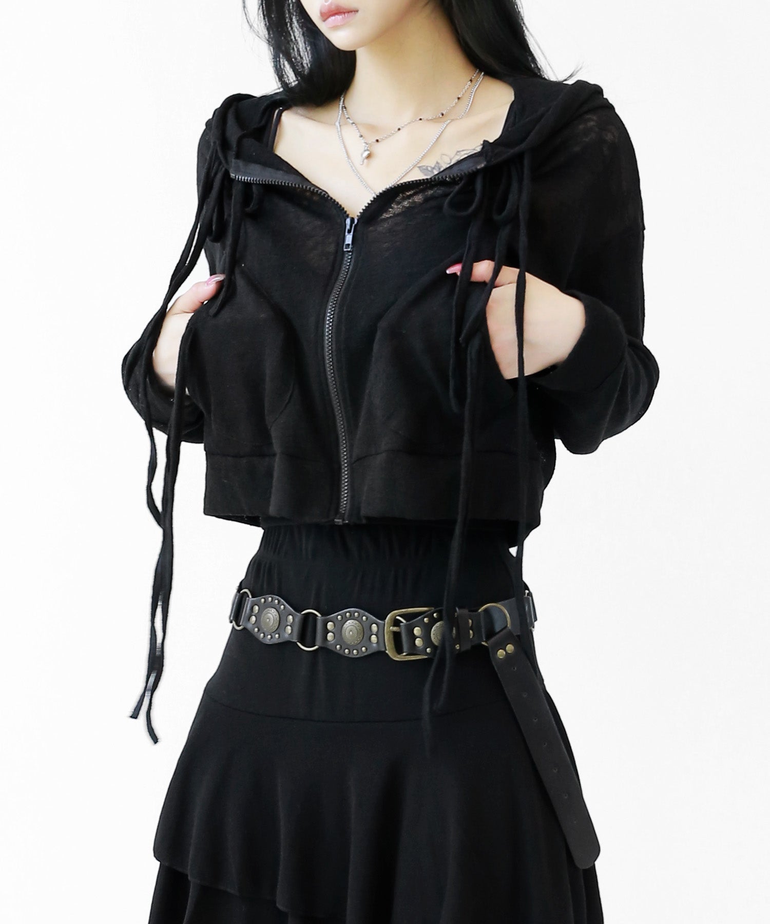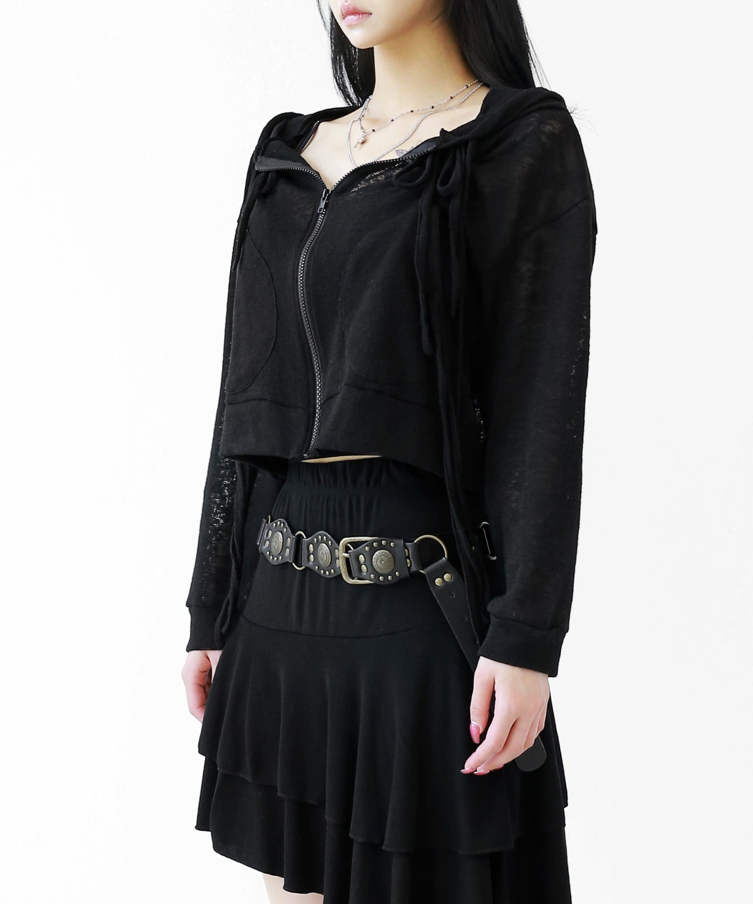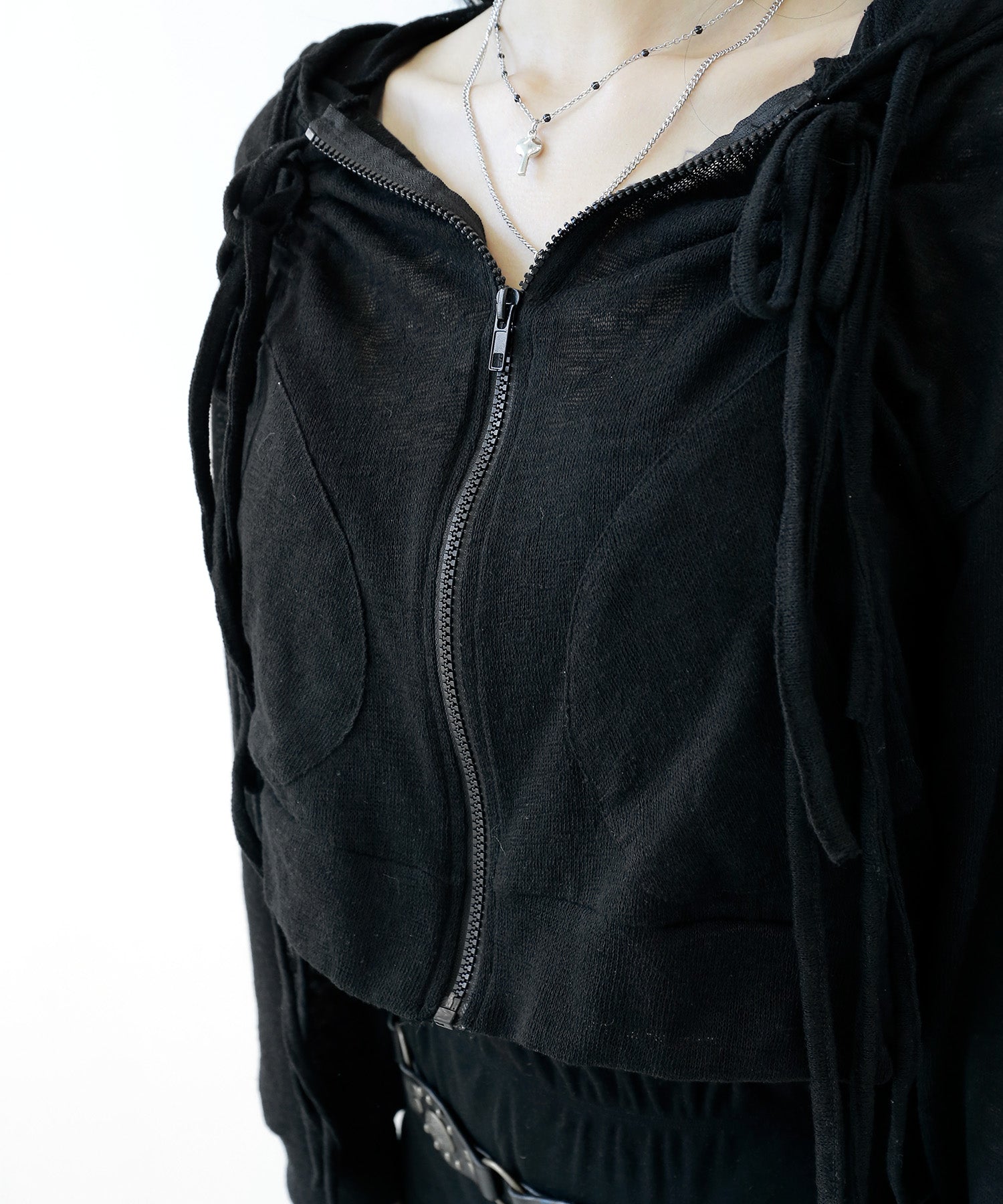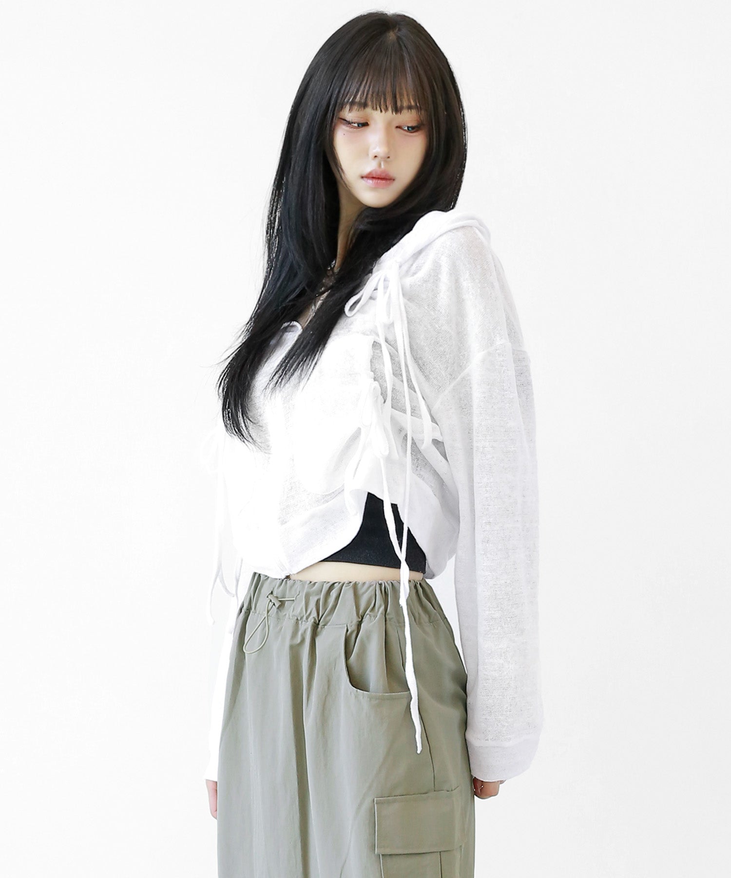 A breezy sheer hoodie crafted from linen, blending feminine charm with a soft street edge.