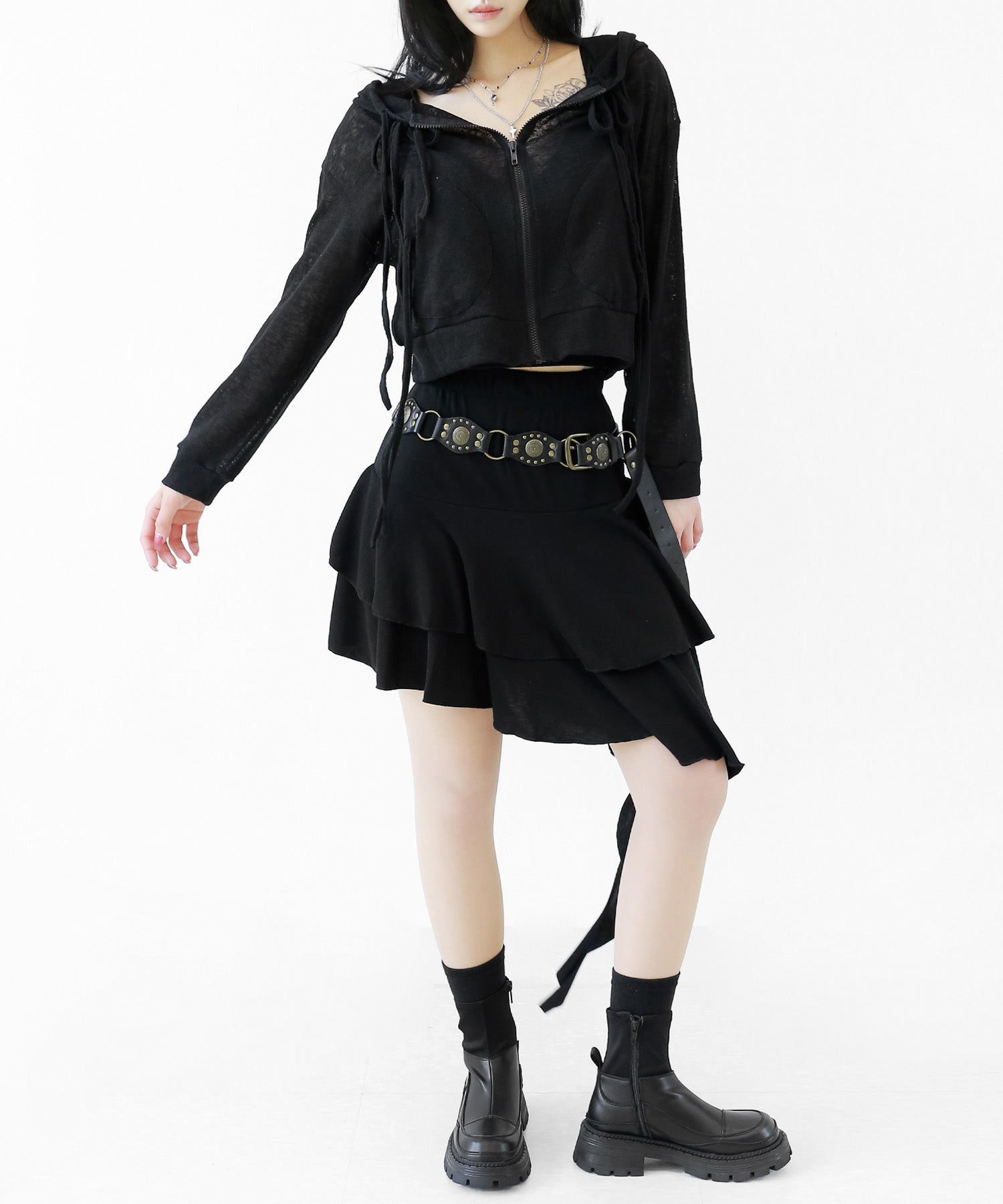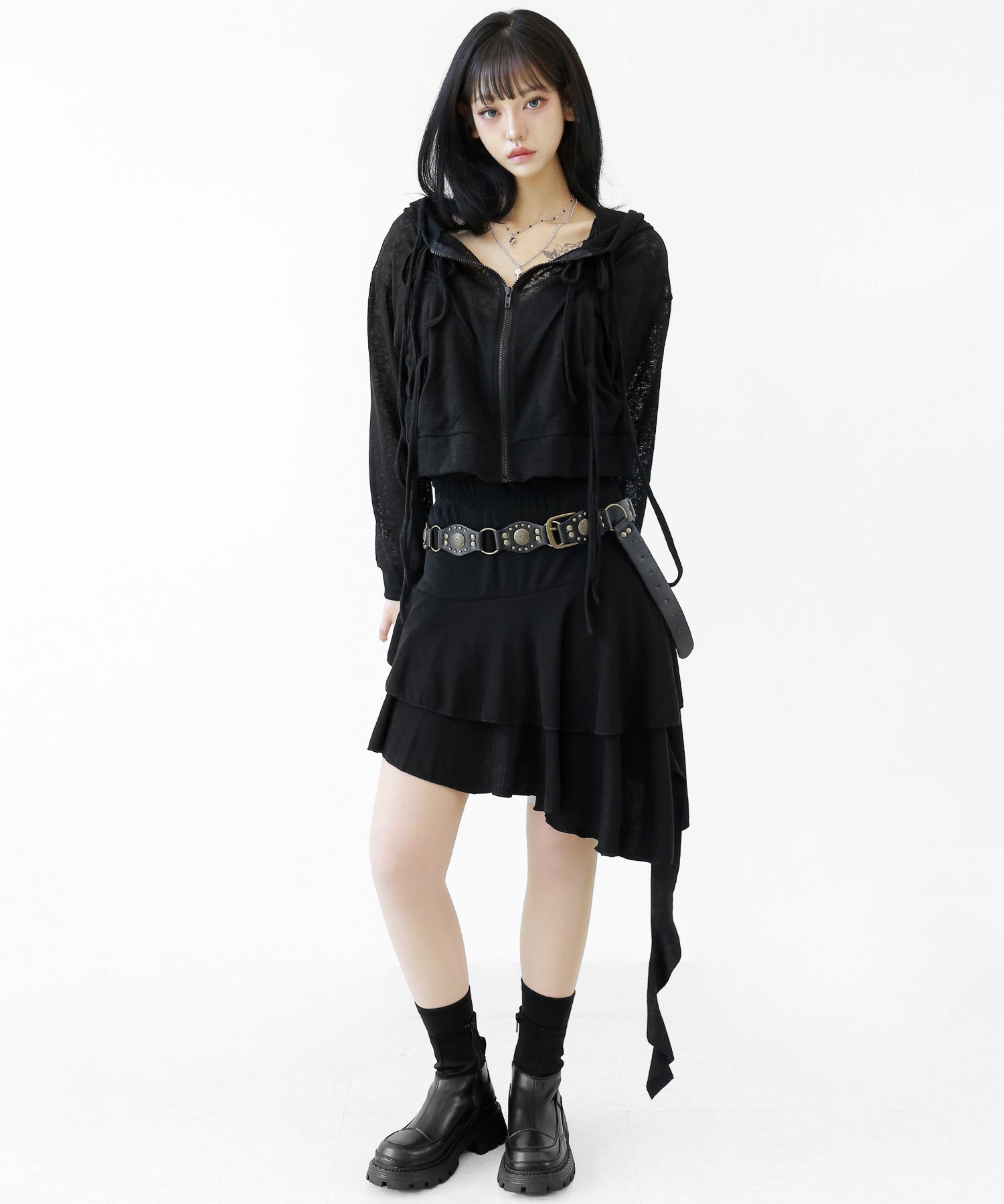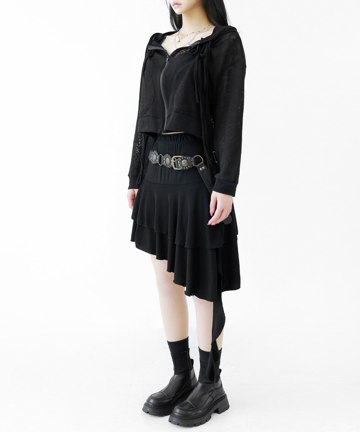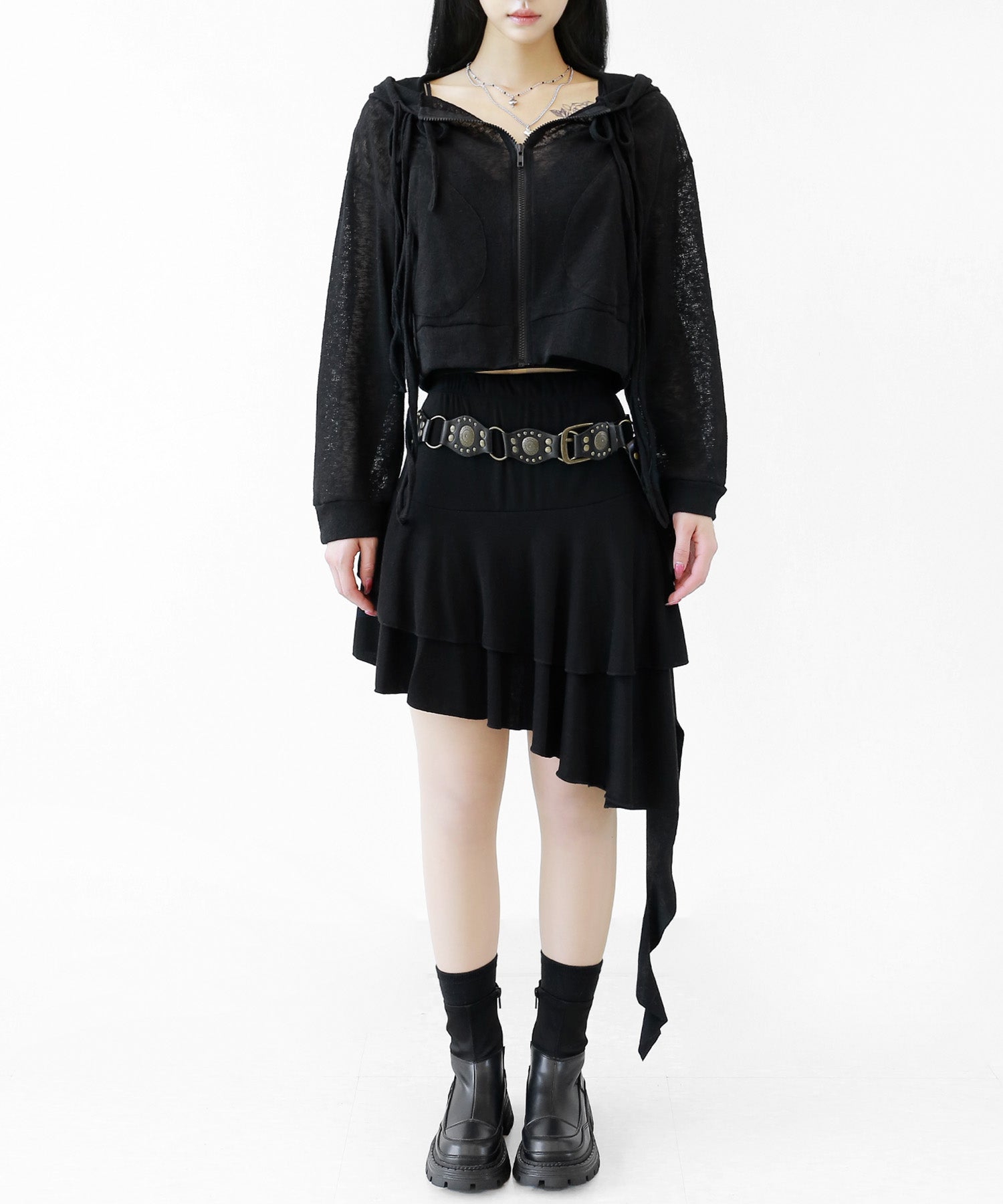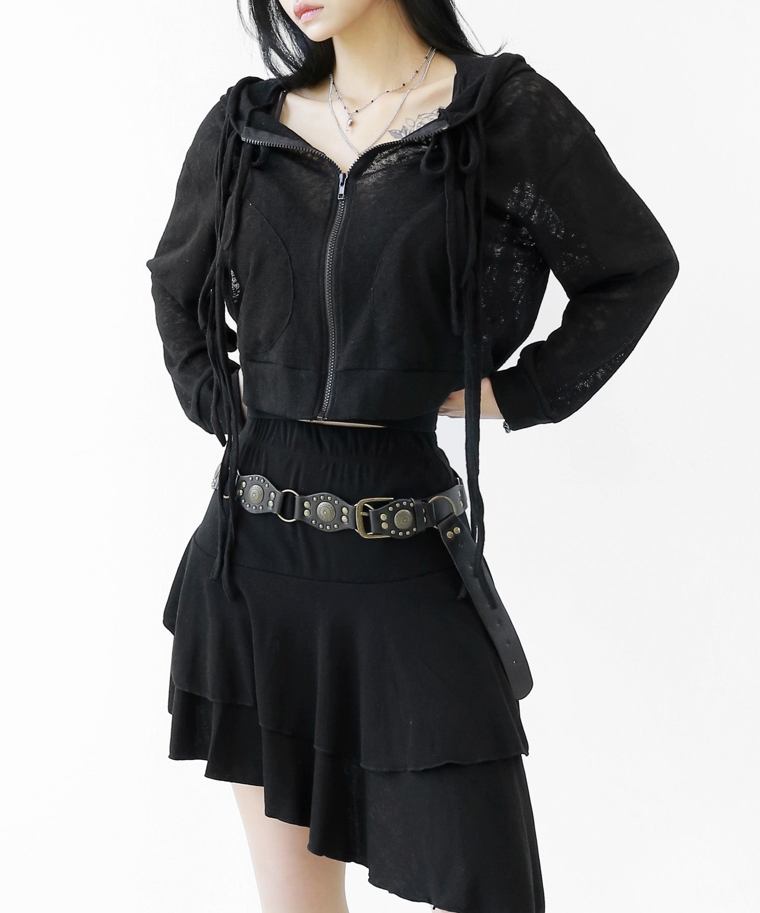 A breezy sheer hoodie crafted from linen, blending feminine charm with a soft street edge.