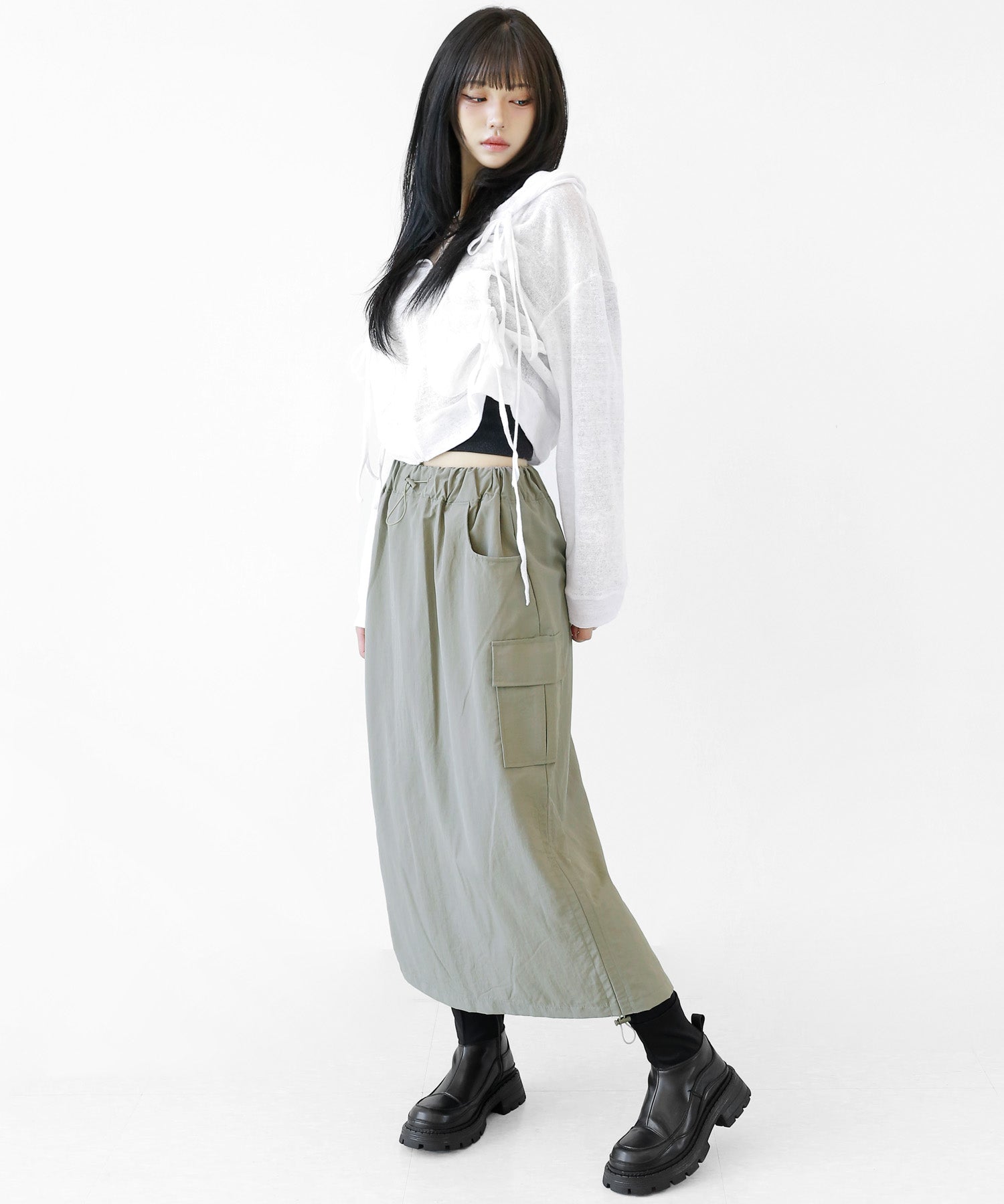 WOMAN: 167cm | 48kg | Wearing FREE SIZE (BLACK, WHITE)