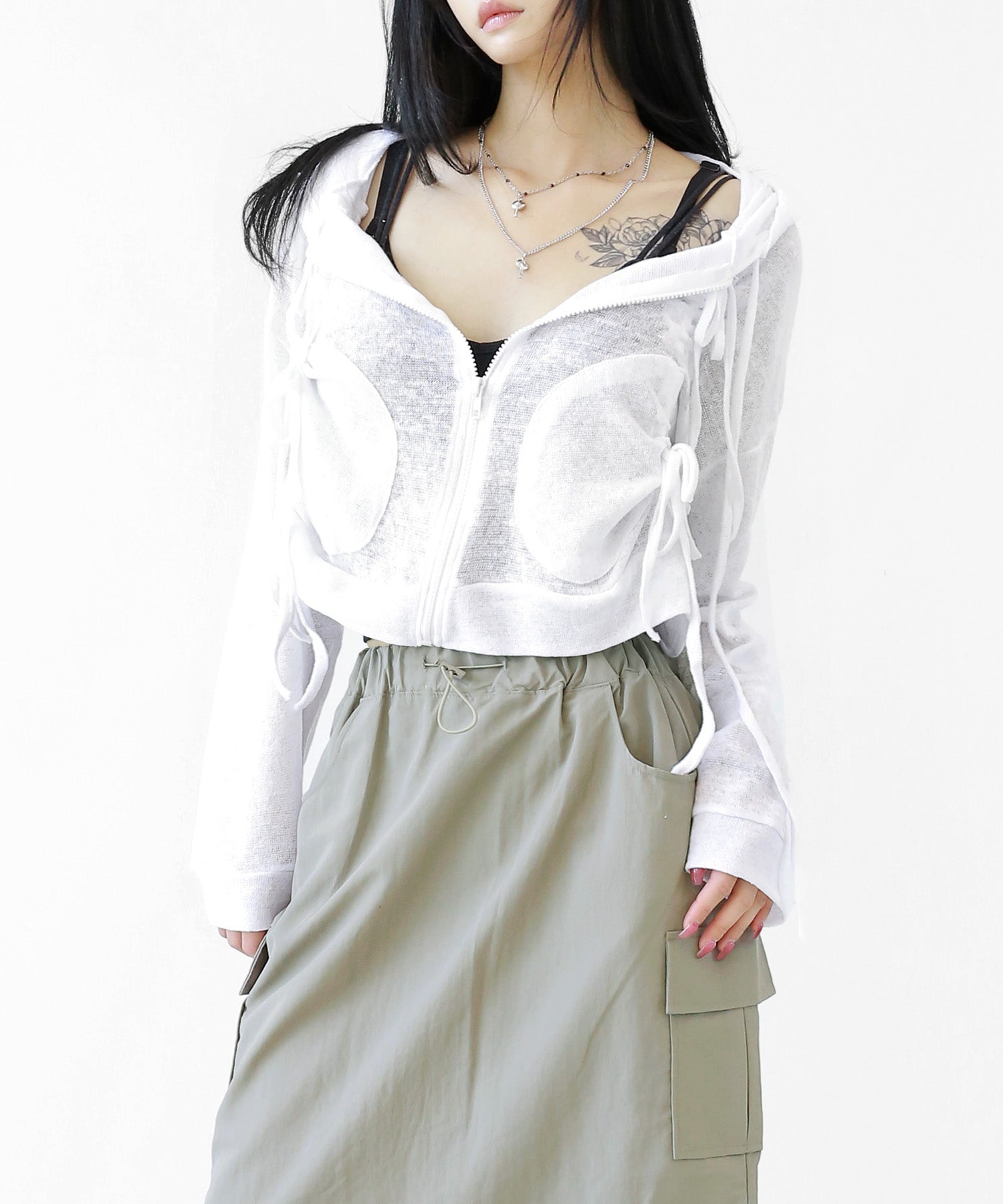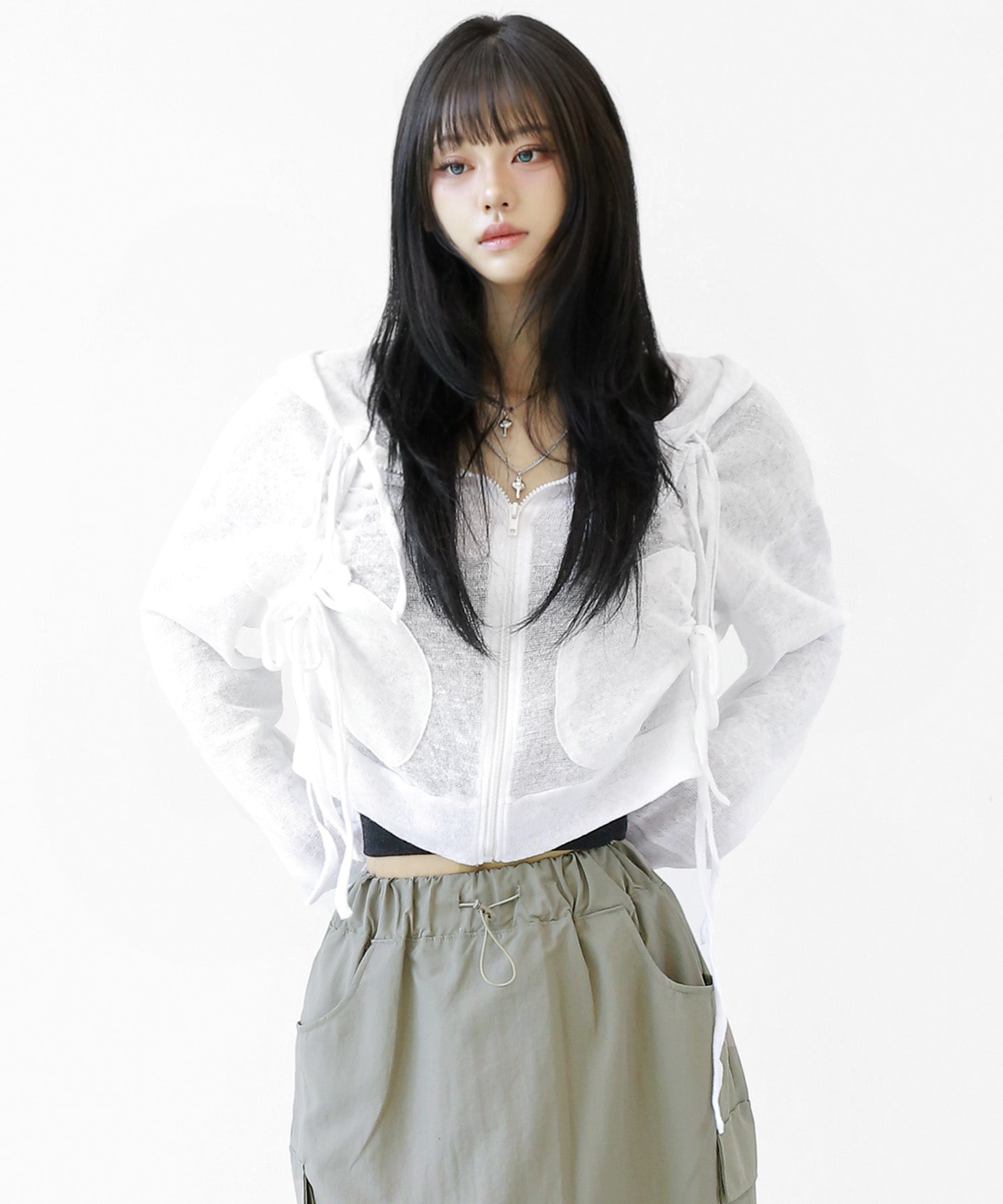 Loved by trendsetters in Korea and Japan, this cropped zip-up features a relaxed fit and shirring ribbon details for an effortless seasonal look.