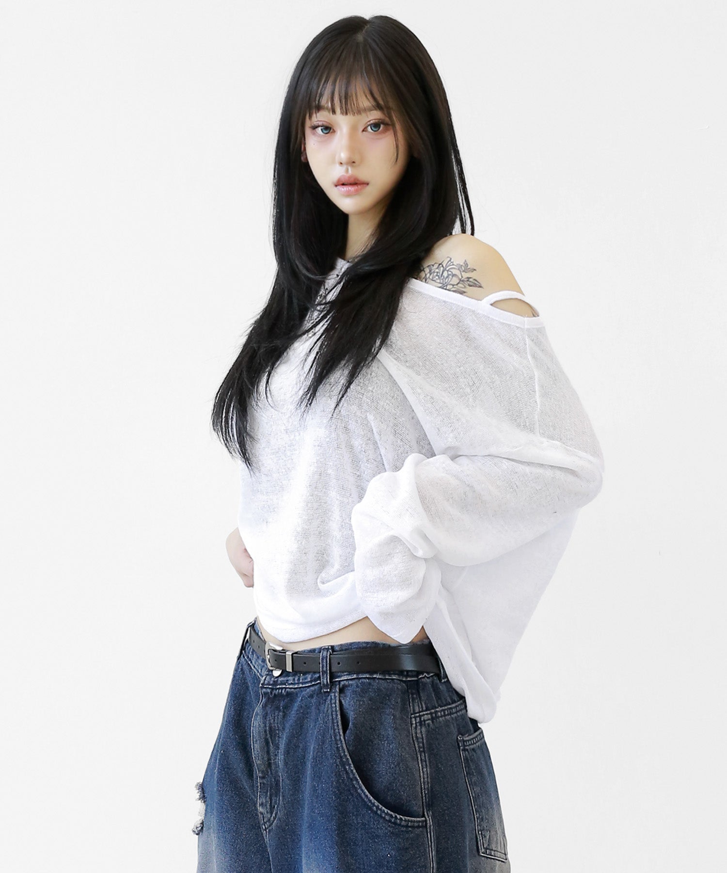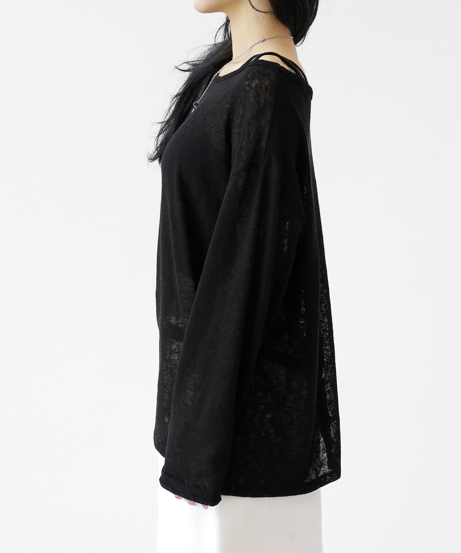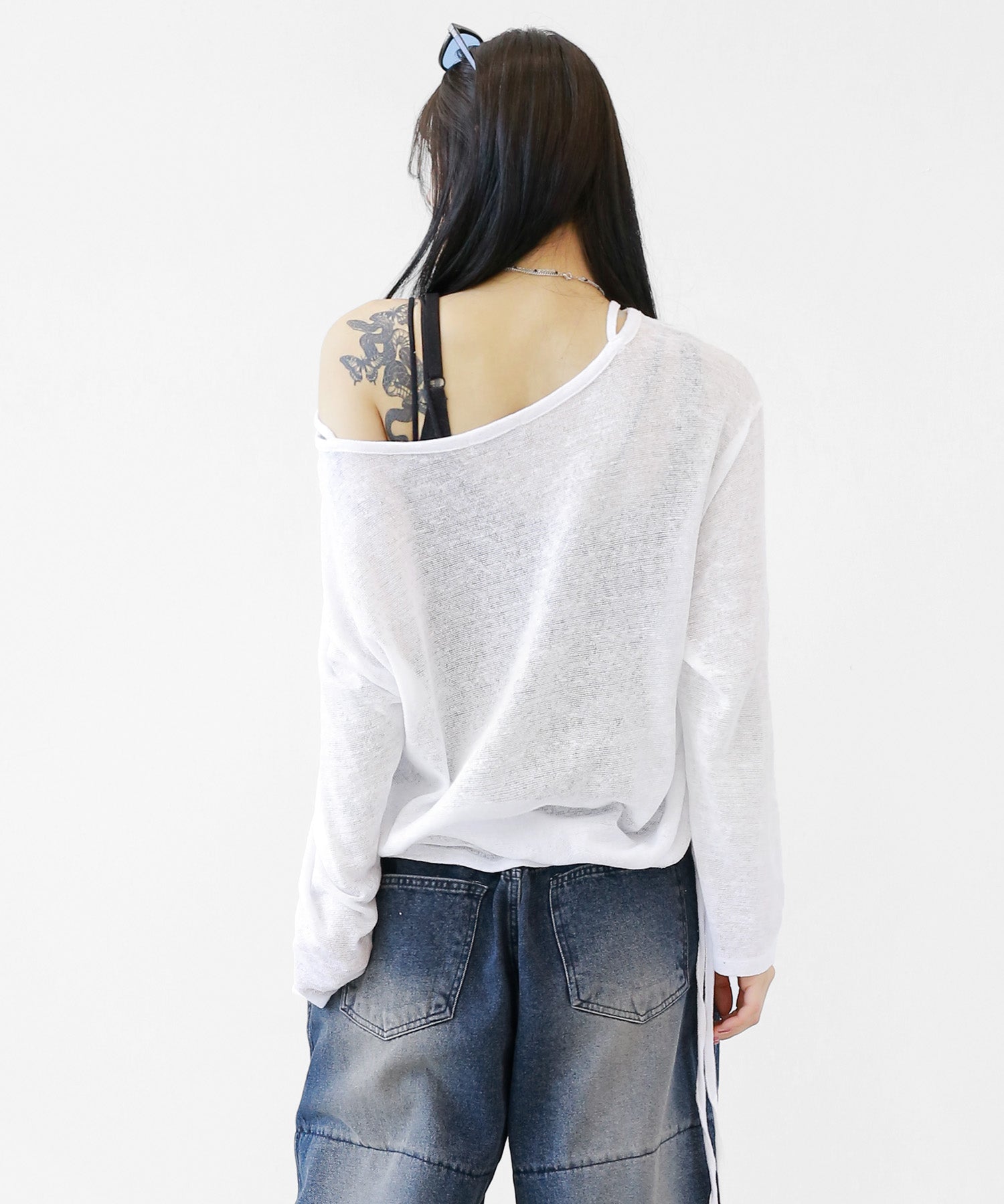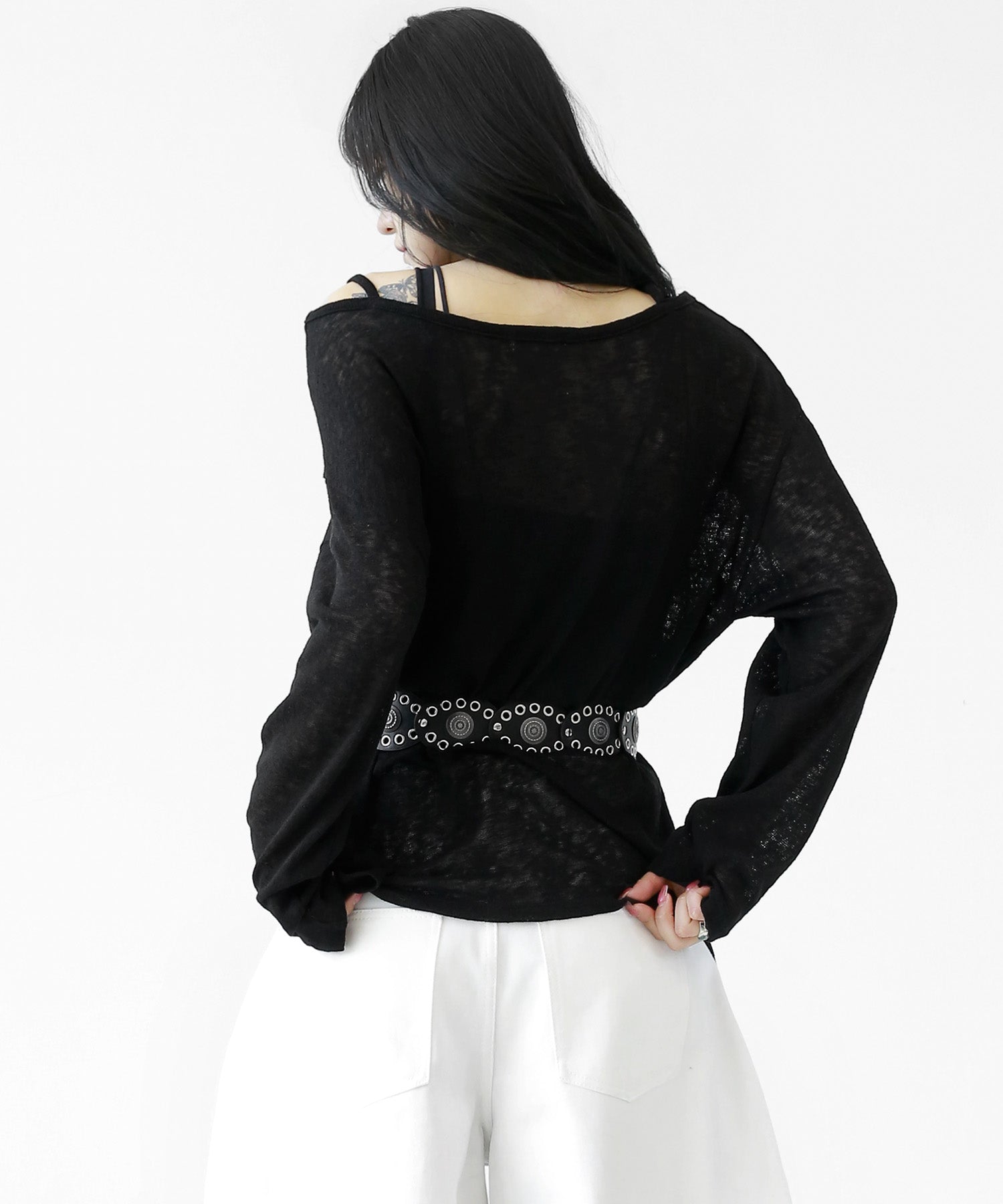 Light, sheer, and perfect for warm weather, this long sleeve top features a 2WAY neckline and flattering shirred detail.Wear it off-shoulder or one-shoulder for subtle edge and summer layering versatility.