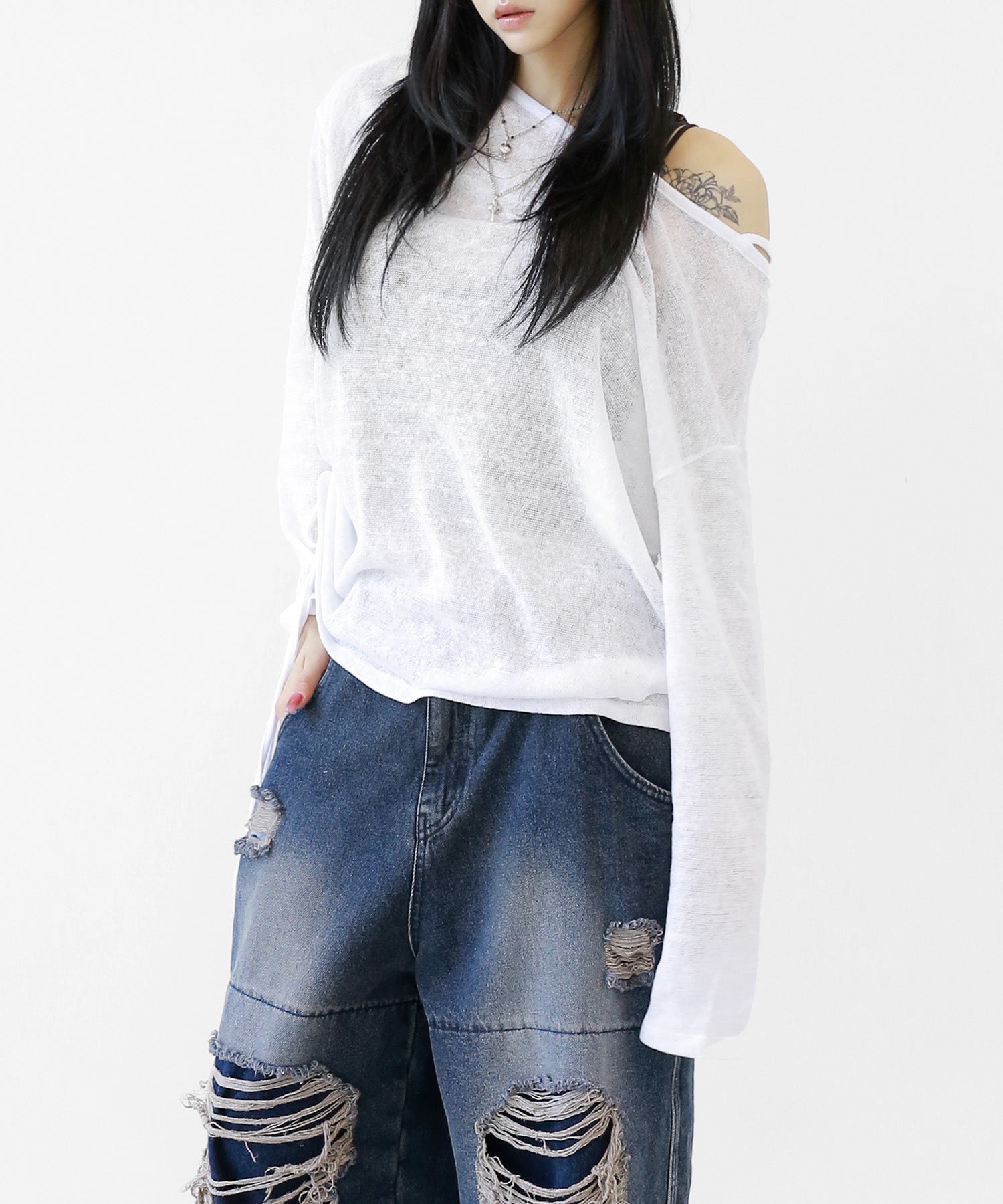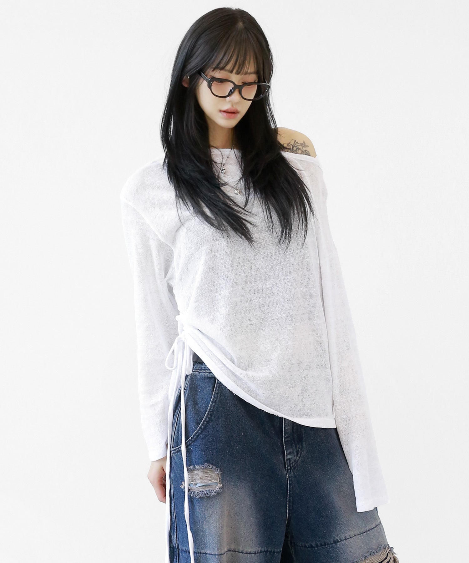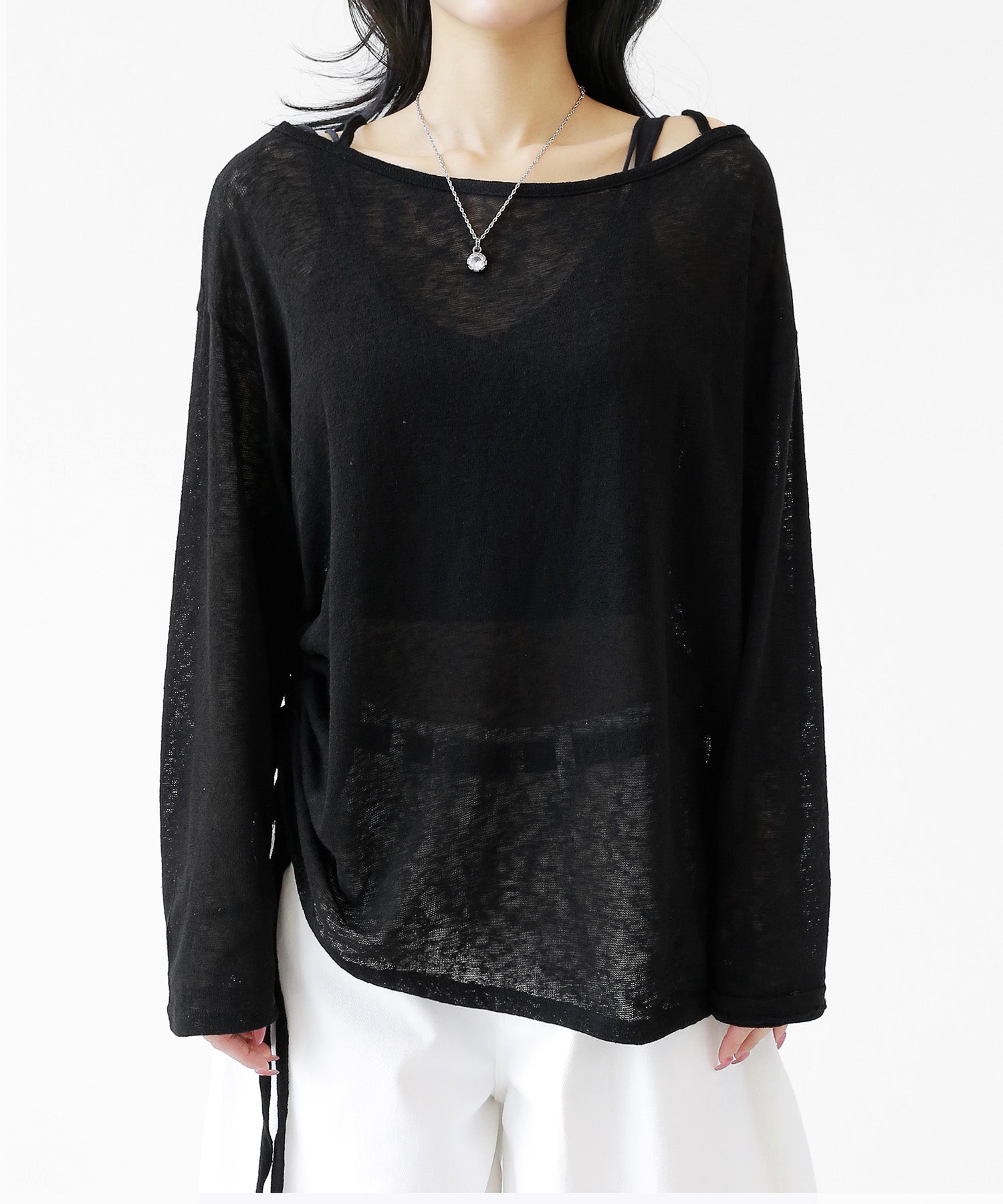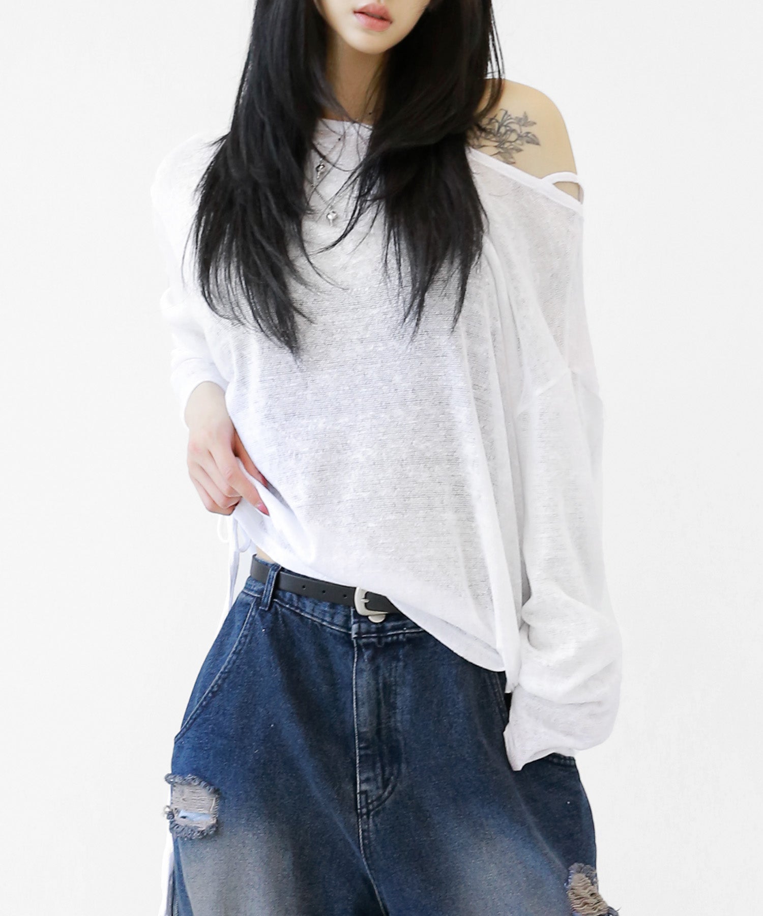 Light, sheer, and perfect for warm weather, this long sleeve top features a 2WAY neckline and flattering shirred detail.Wear it off-shoulder or one-shoulder for subtle edge and summer layering versatility.