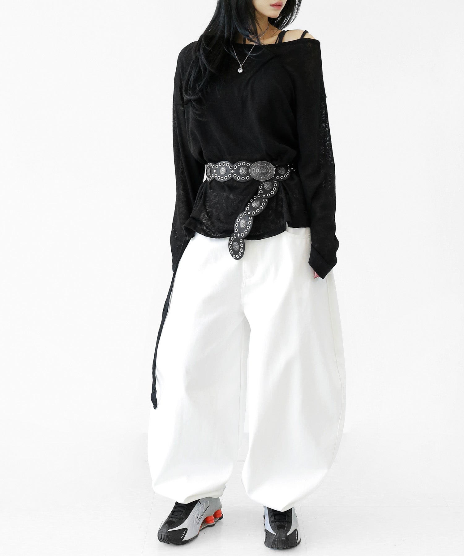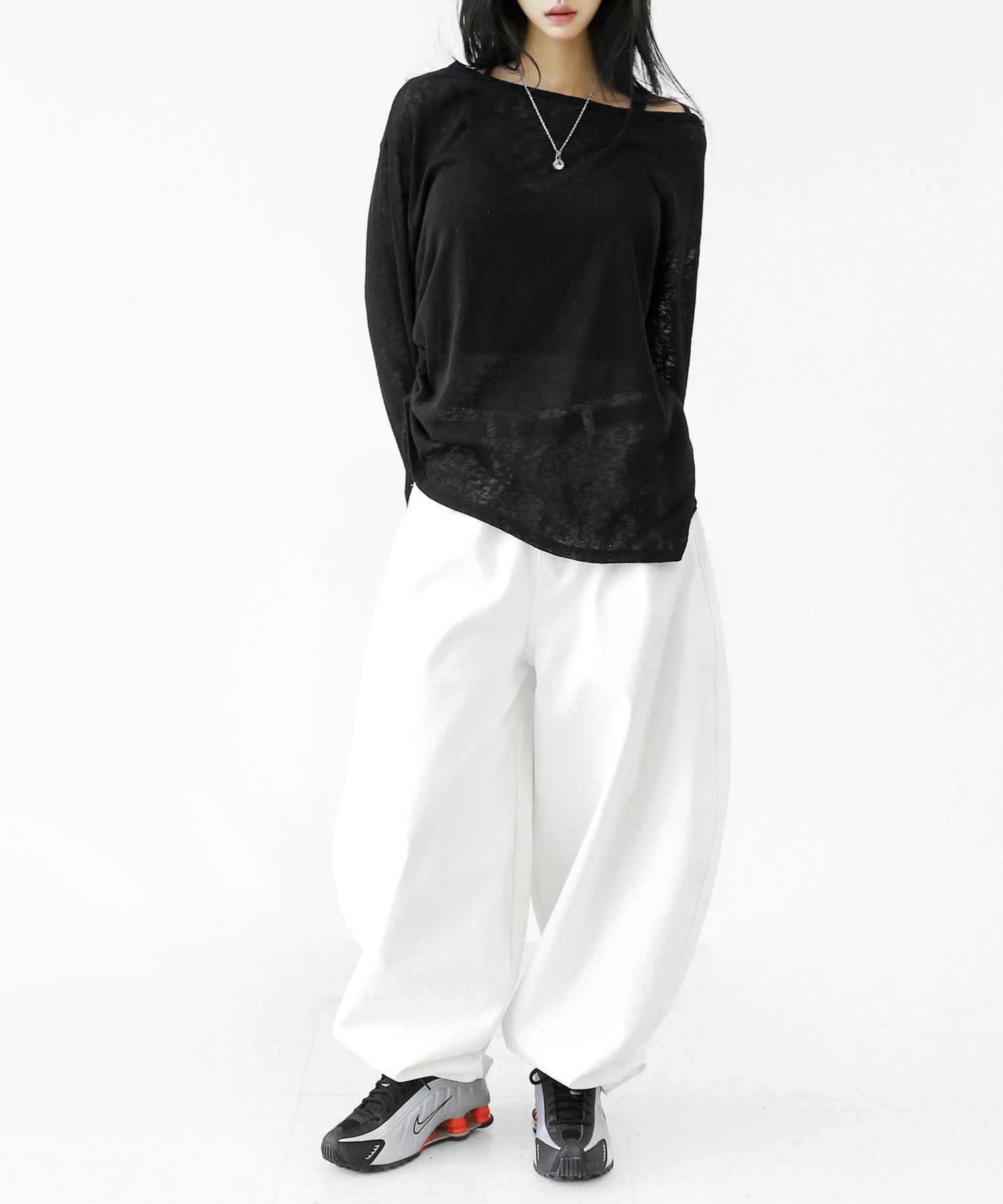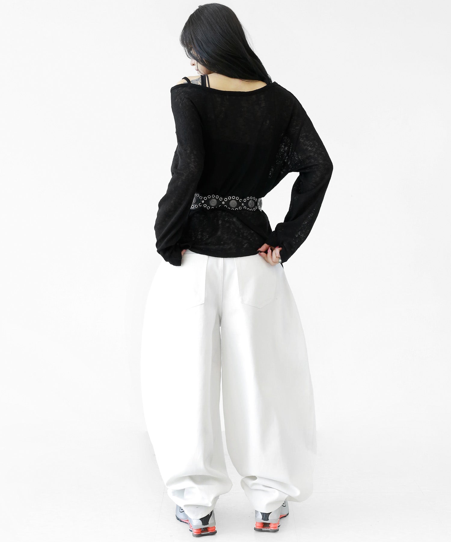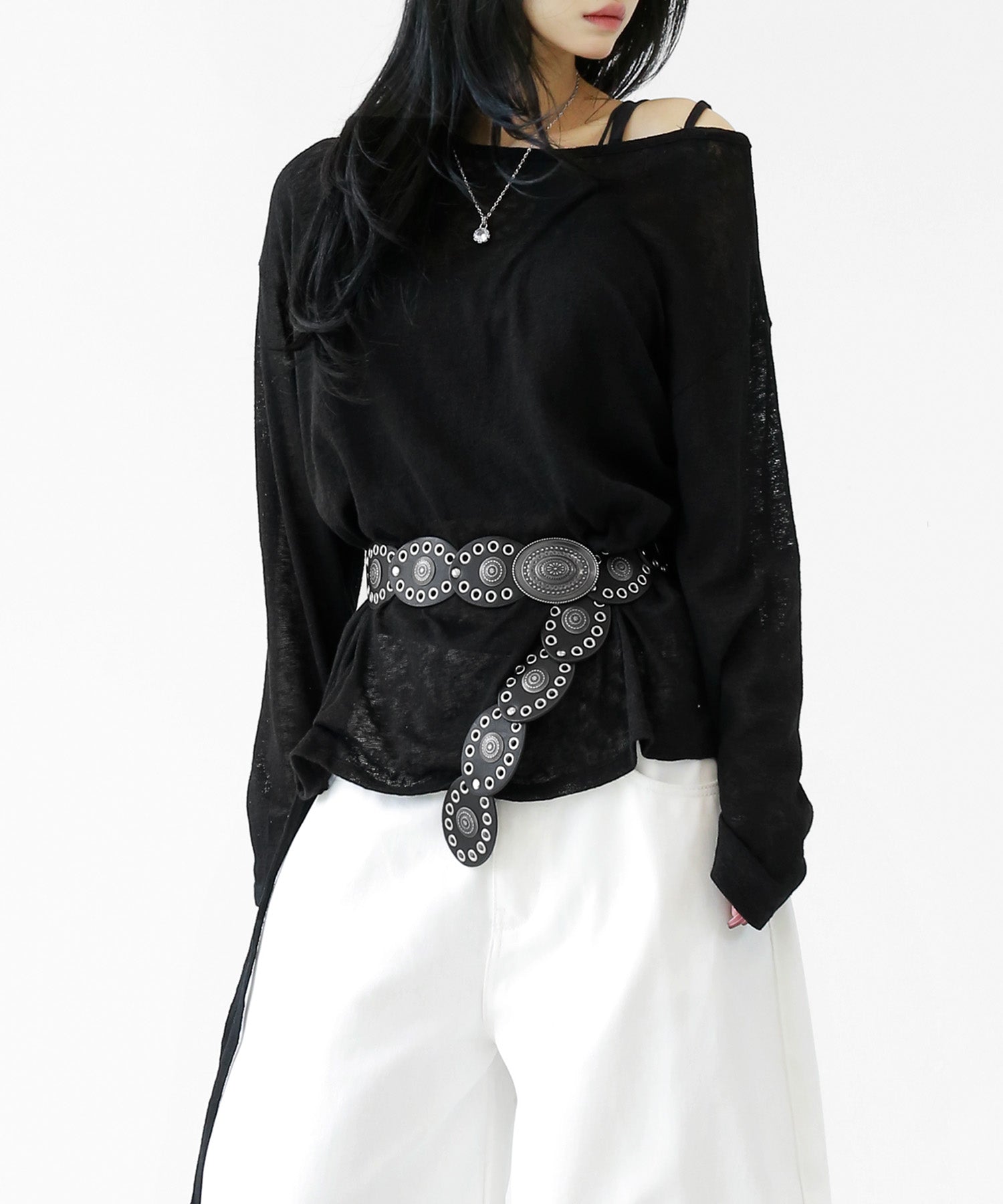 Light, sheer, and perfect for warm weather, this long sleeve top features a 2WAY neckline and flattering shirred detail.Wear it off-shoulder or one-shoulder for subtle edge and summer layering versatility.