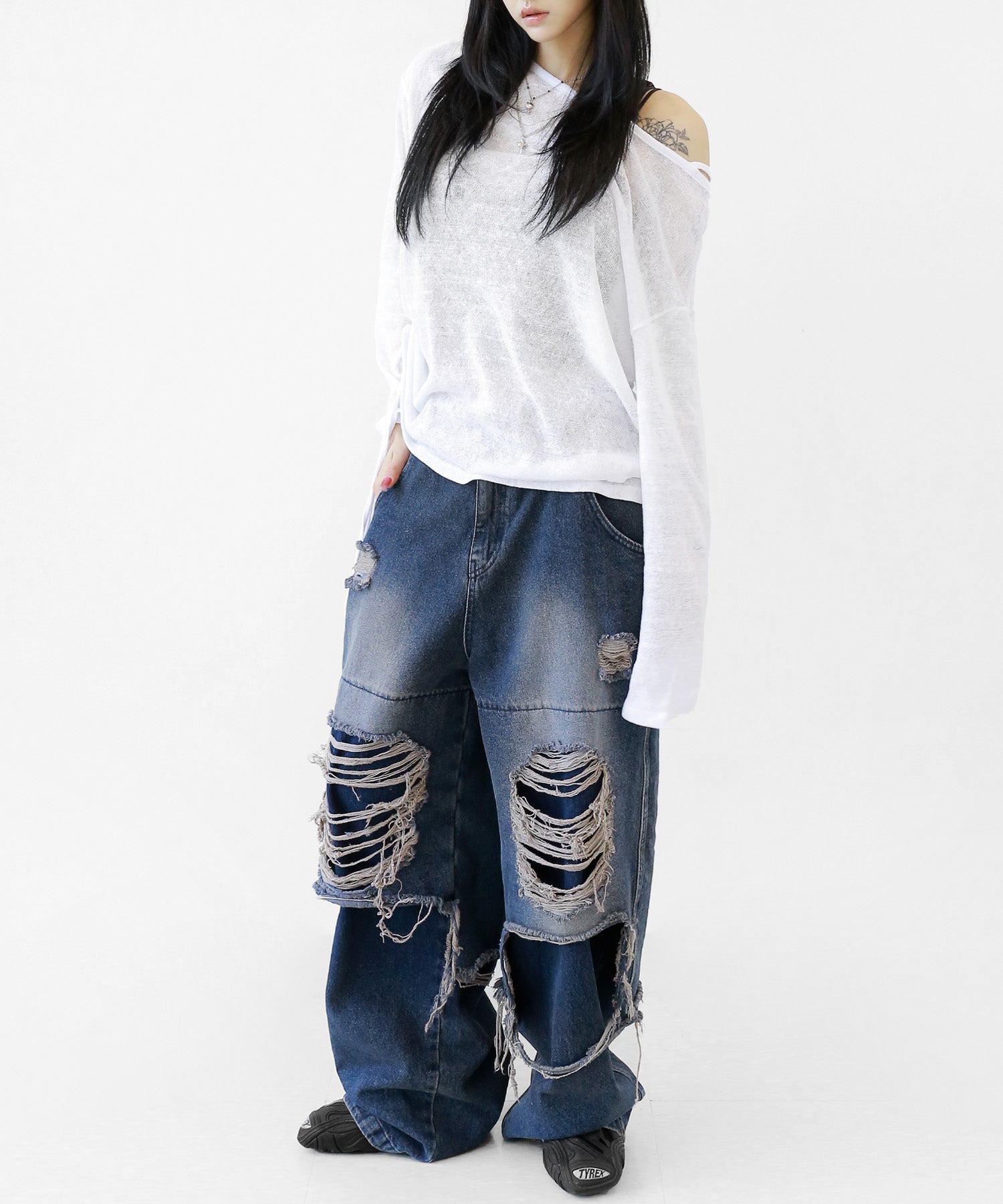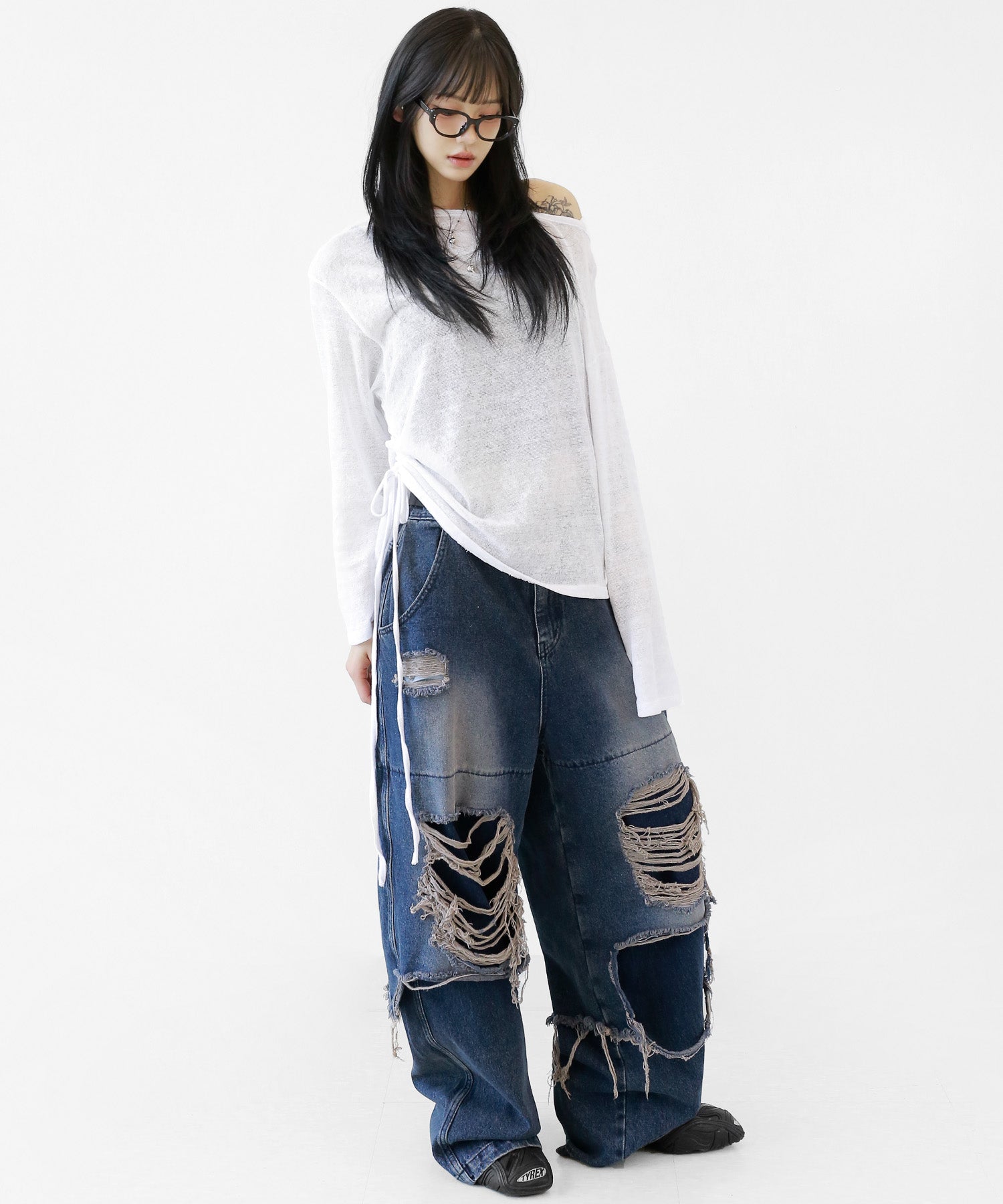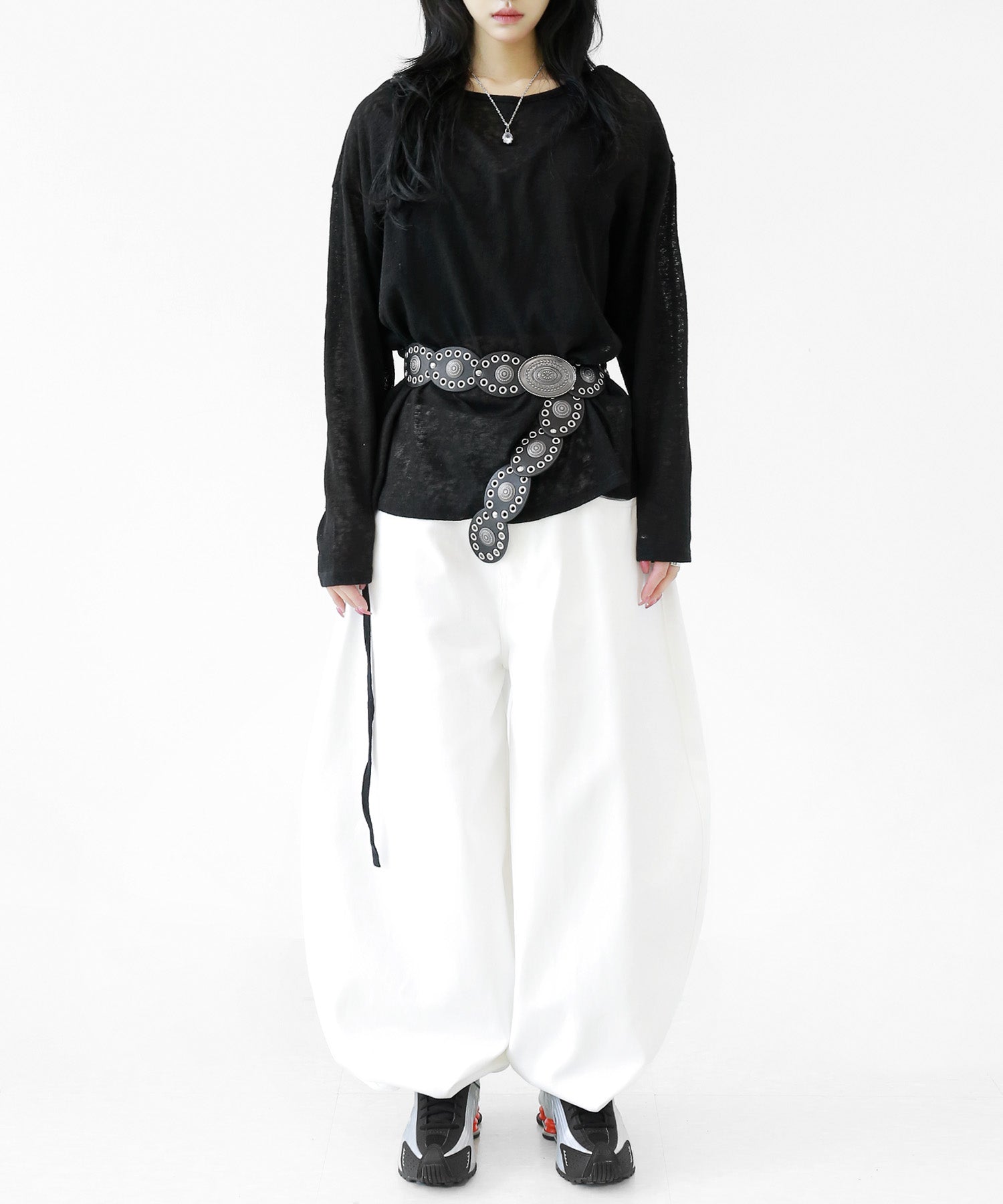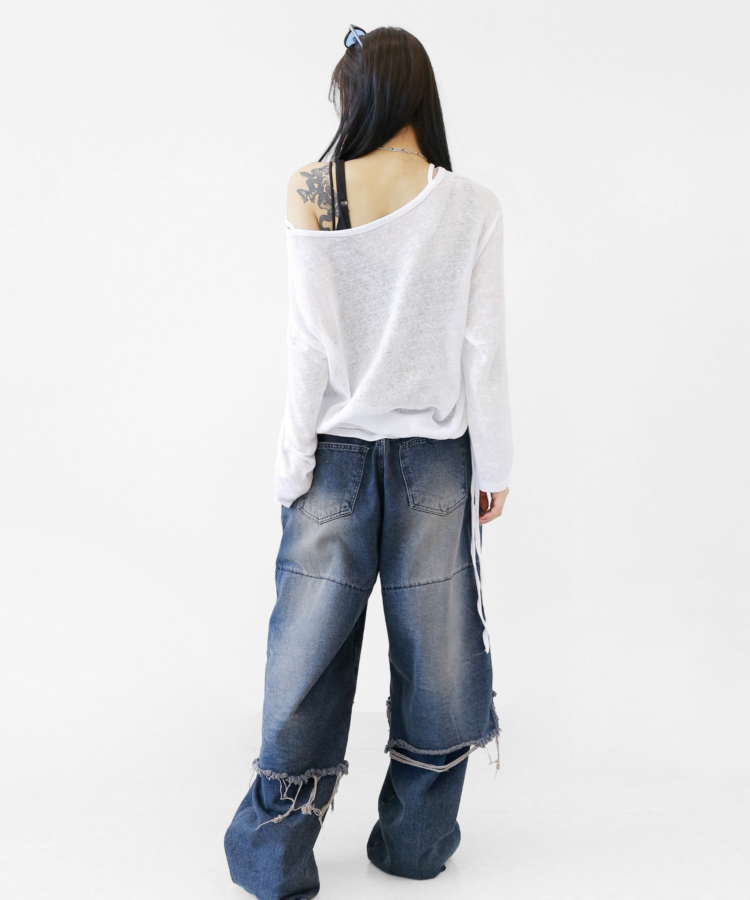 Light, sheer, and perfect for warm weather, this long sleeve top features a 2WAY neckline and flattering shirred detail.Wear it off-shoulder or one-shoulder for subtle edge and summer layering versatility.