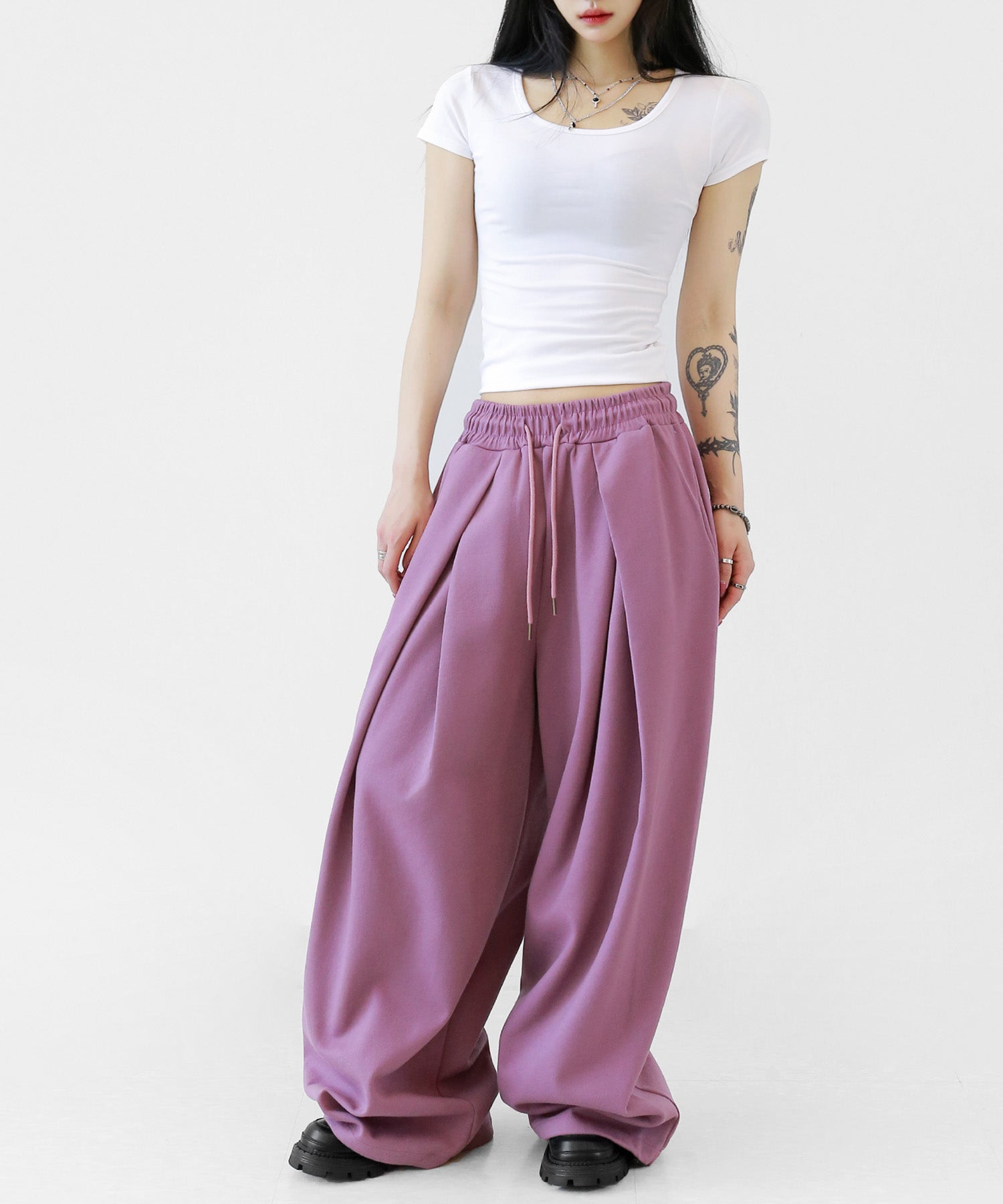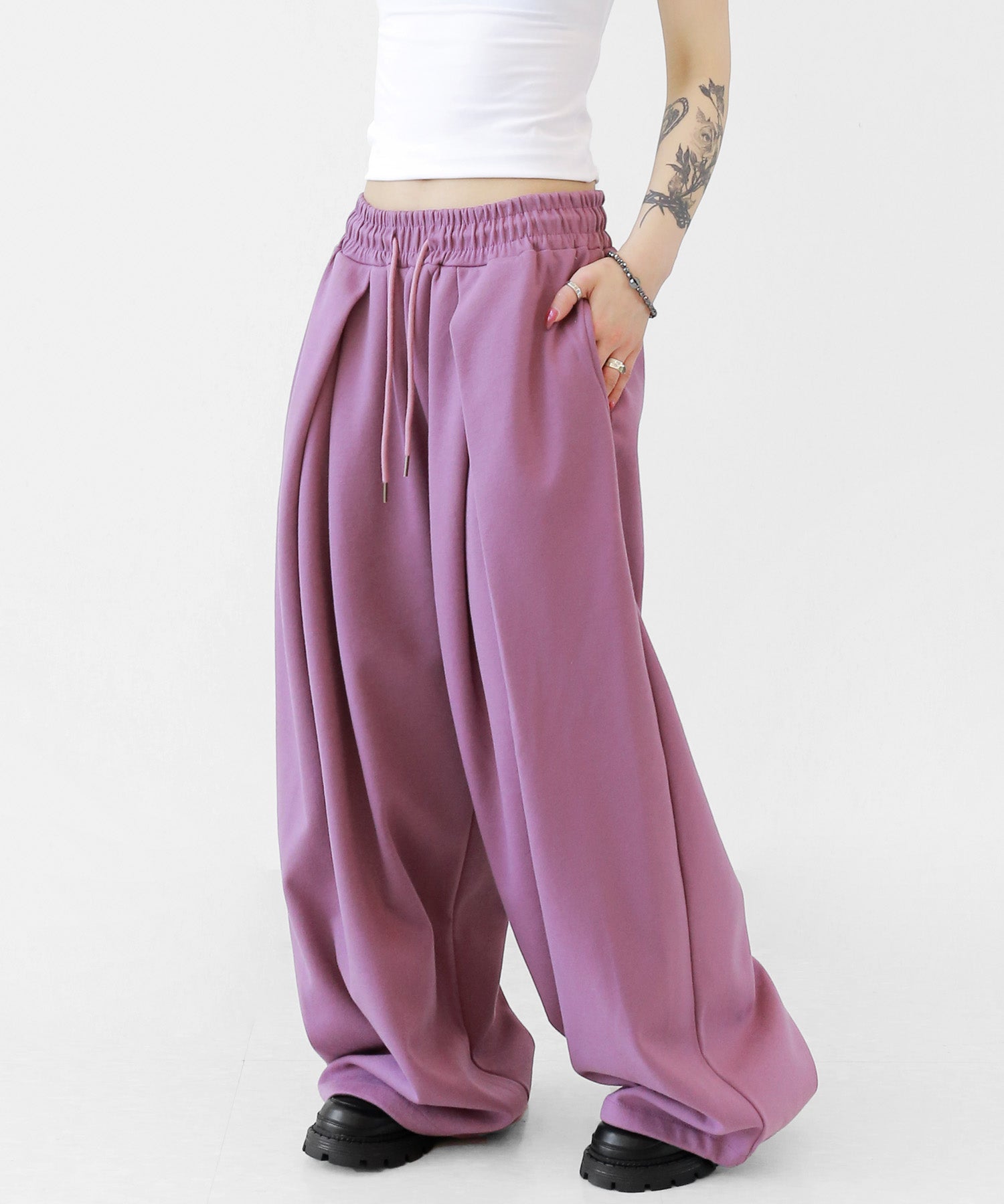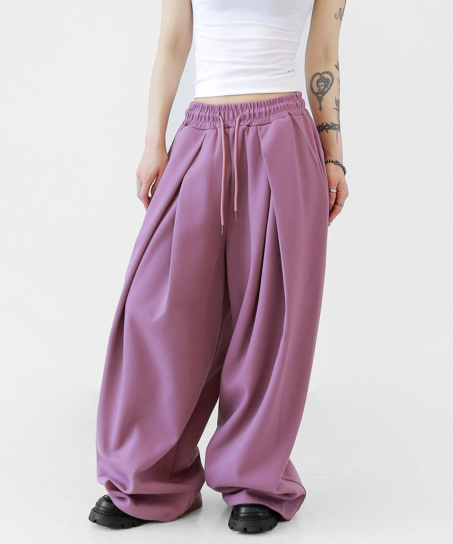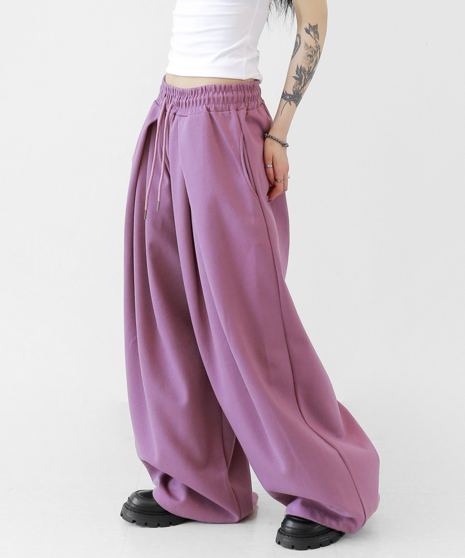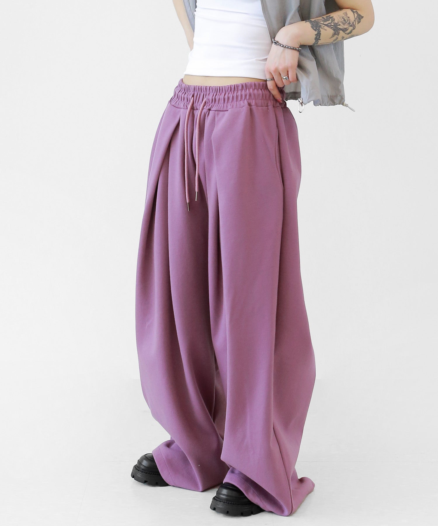 Two-pleat wide sweat pants