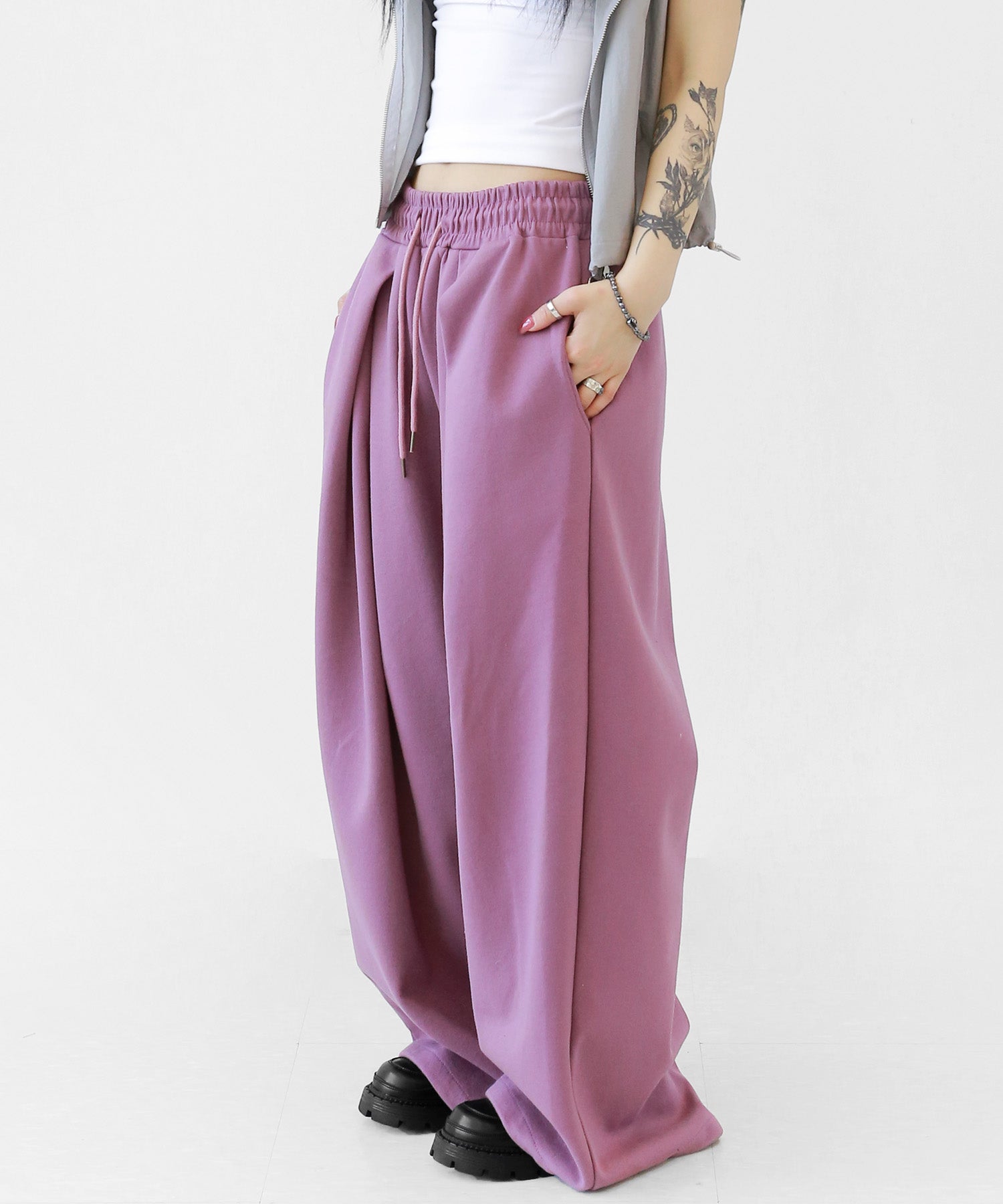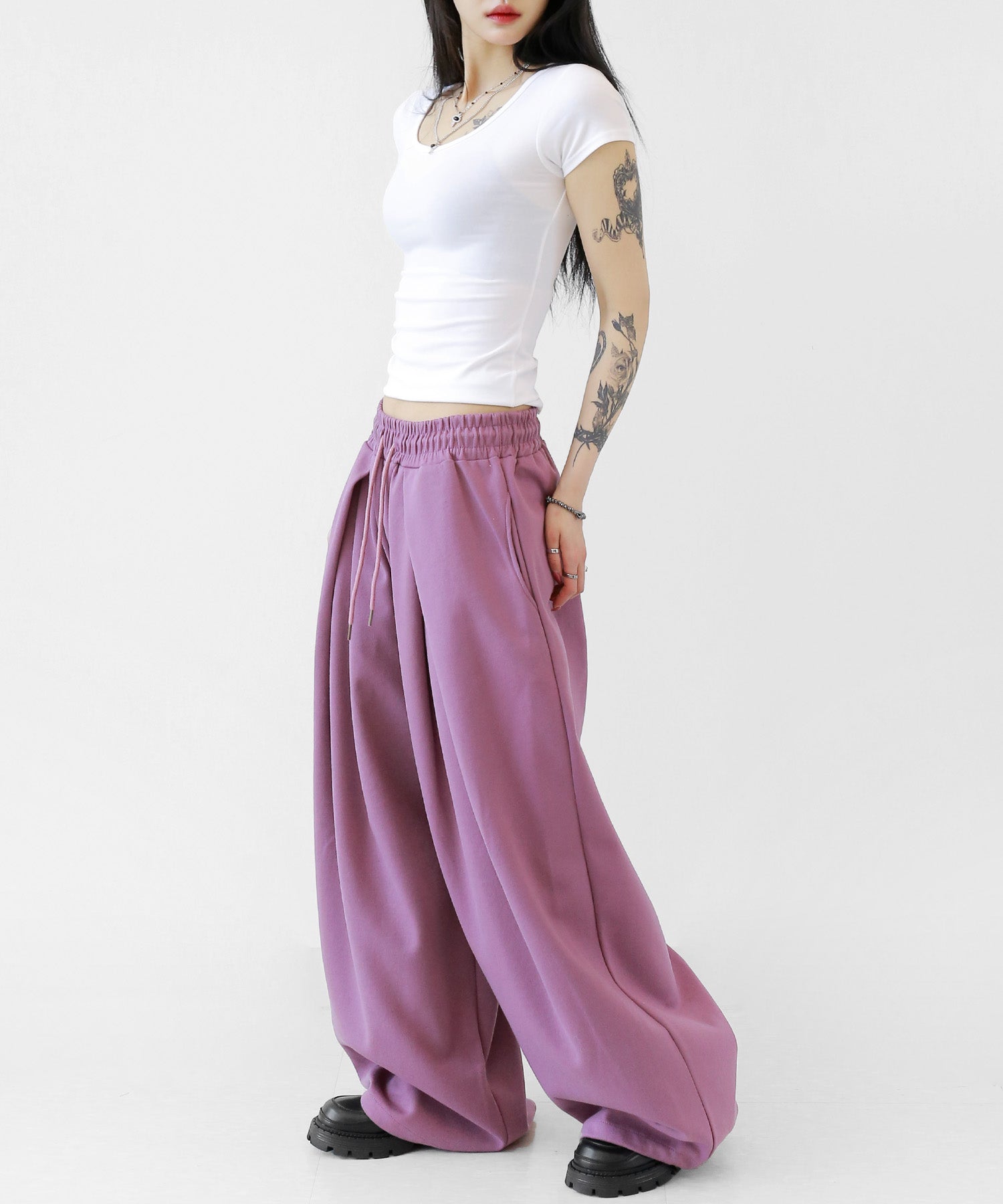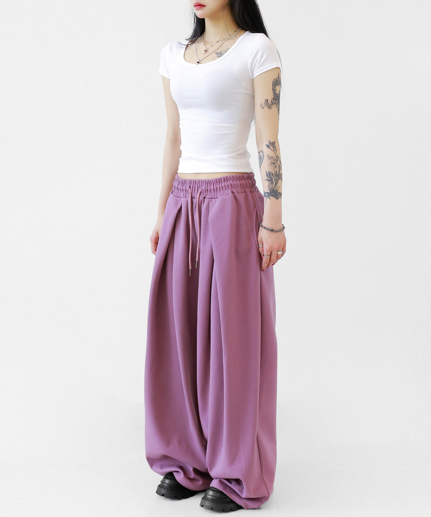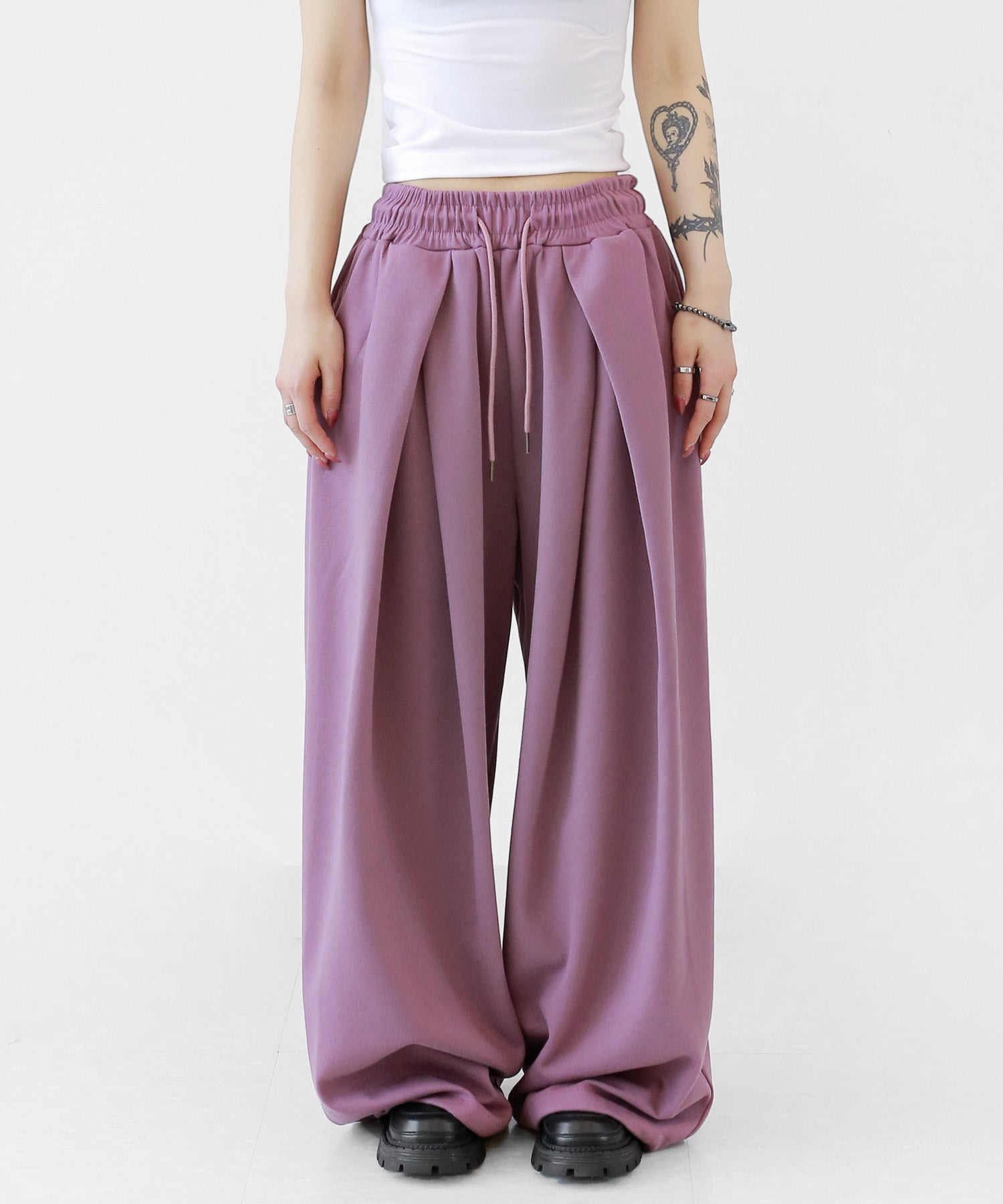 Two-pleat wide sweat pants