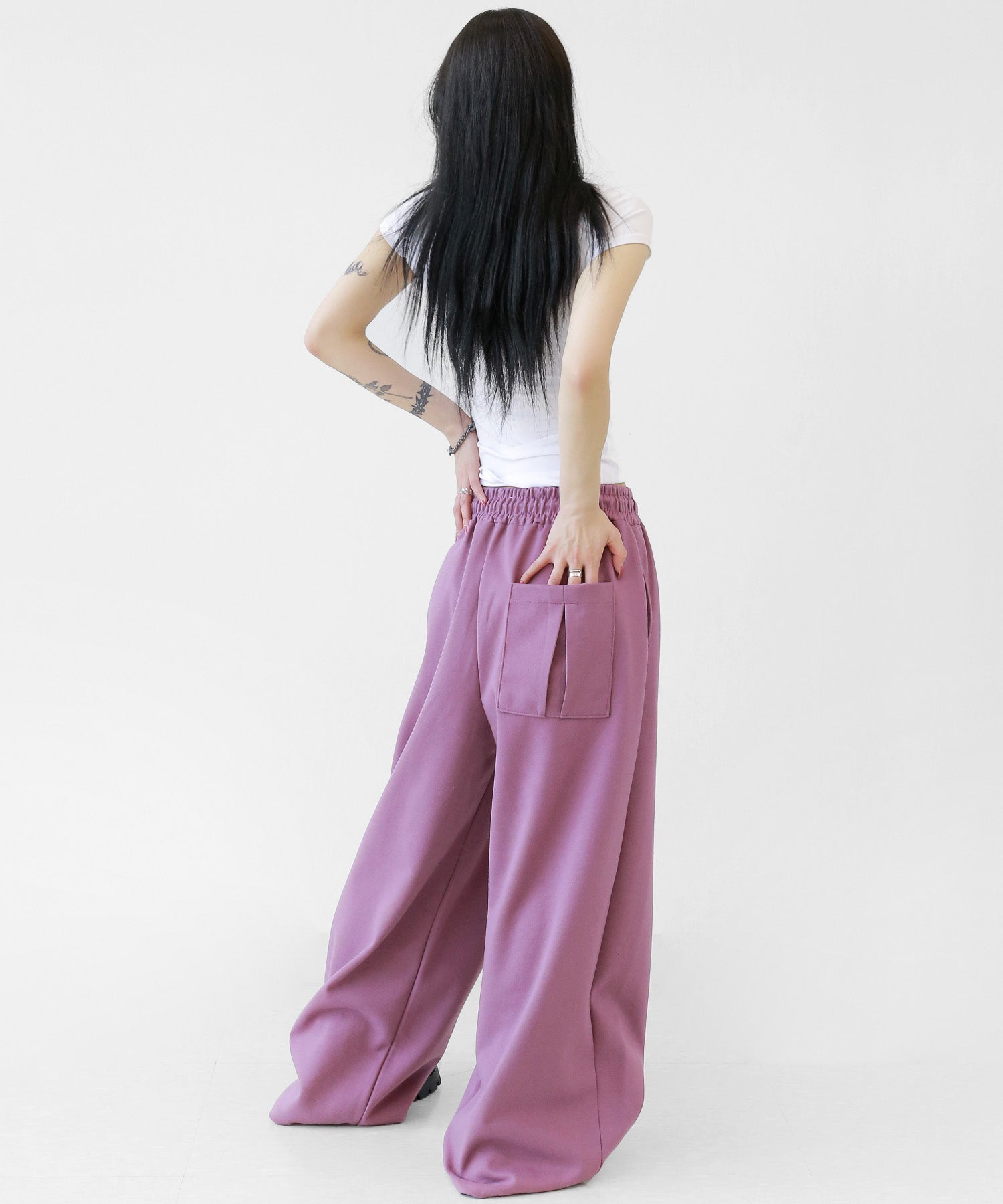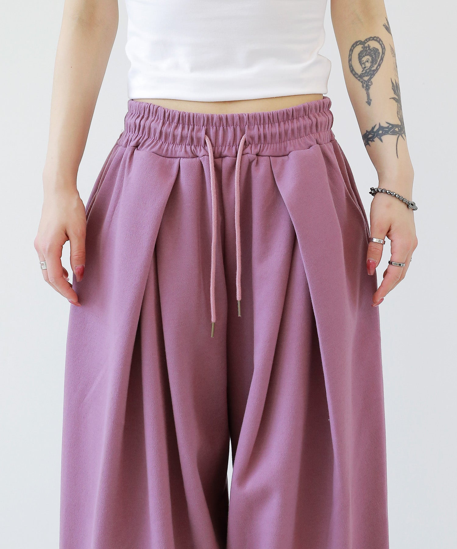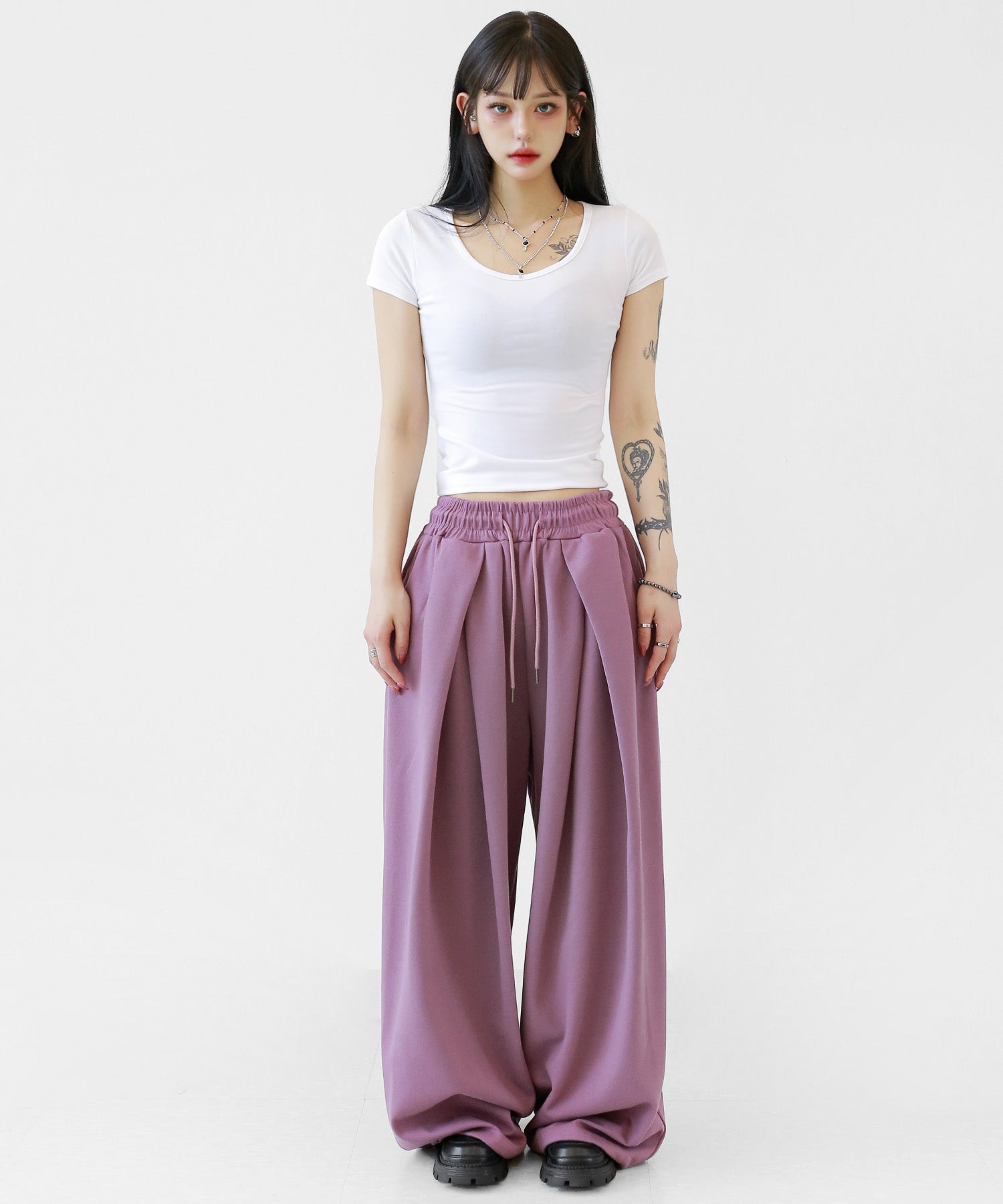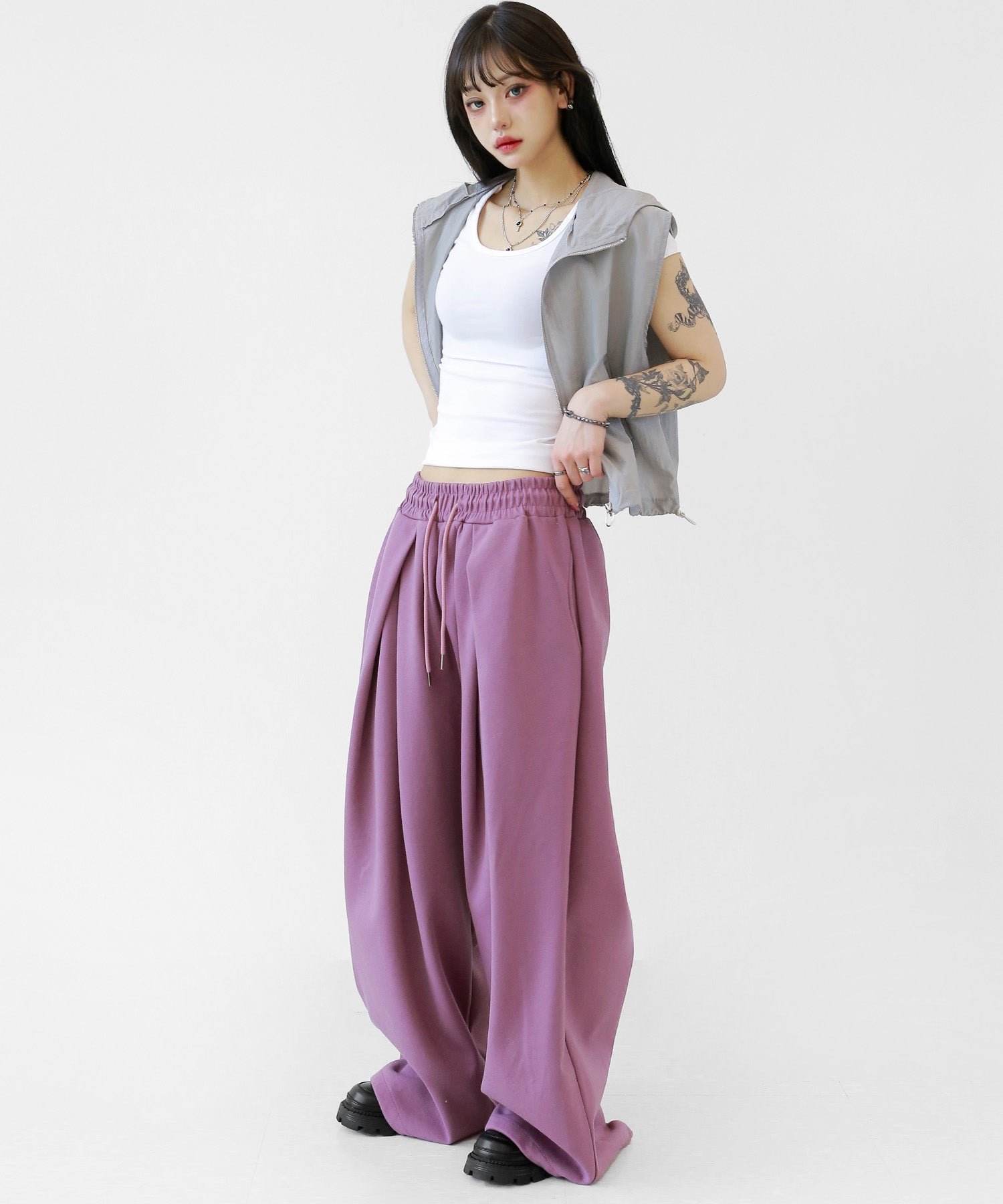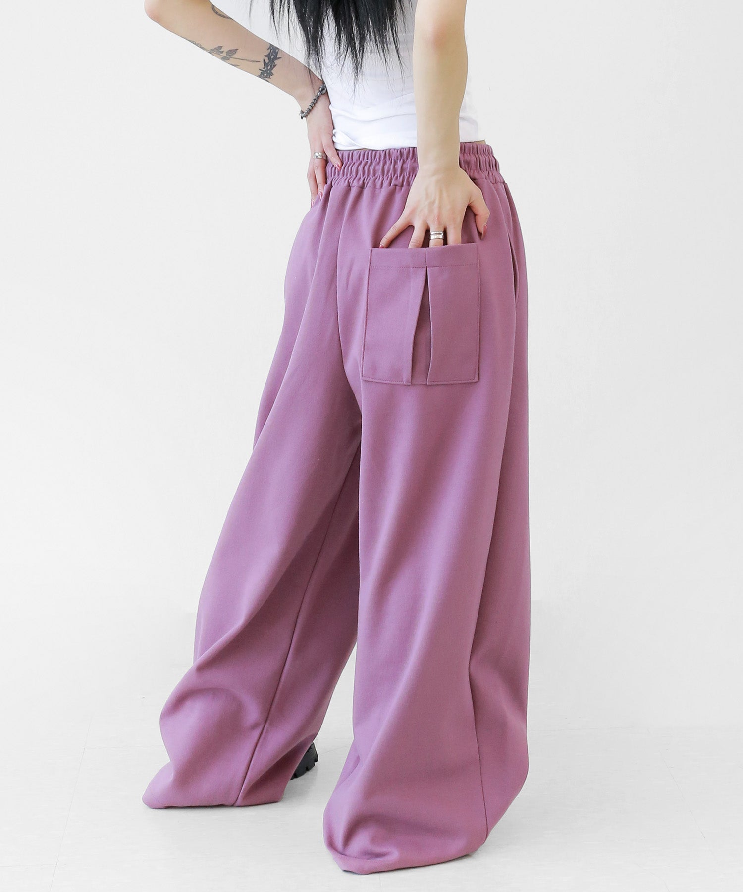 Two-pleat wide sweat pants
