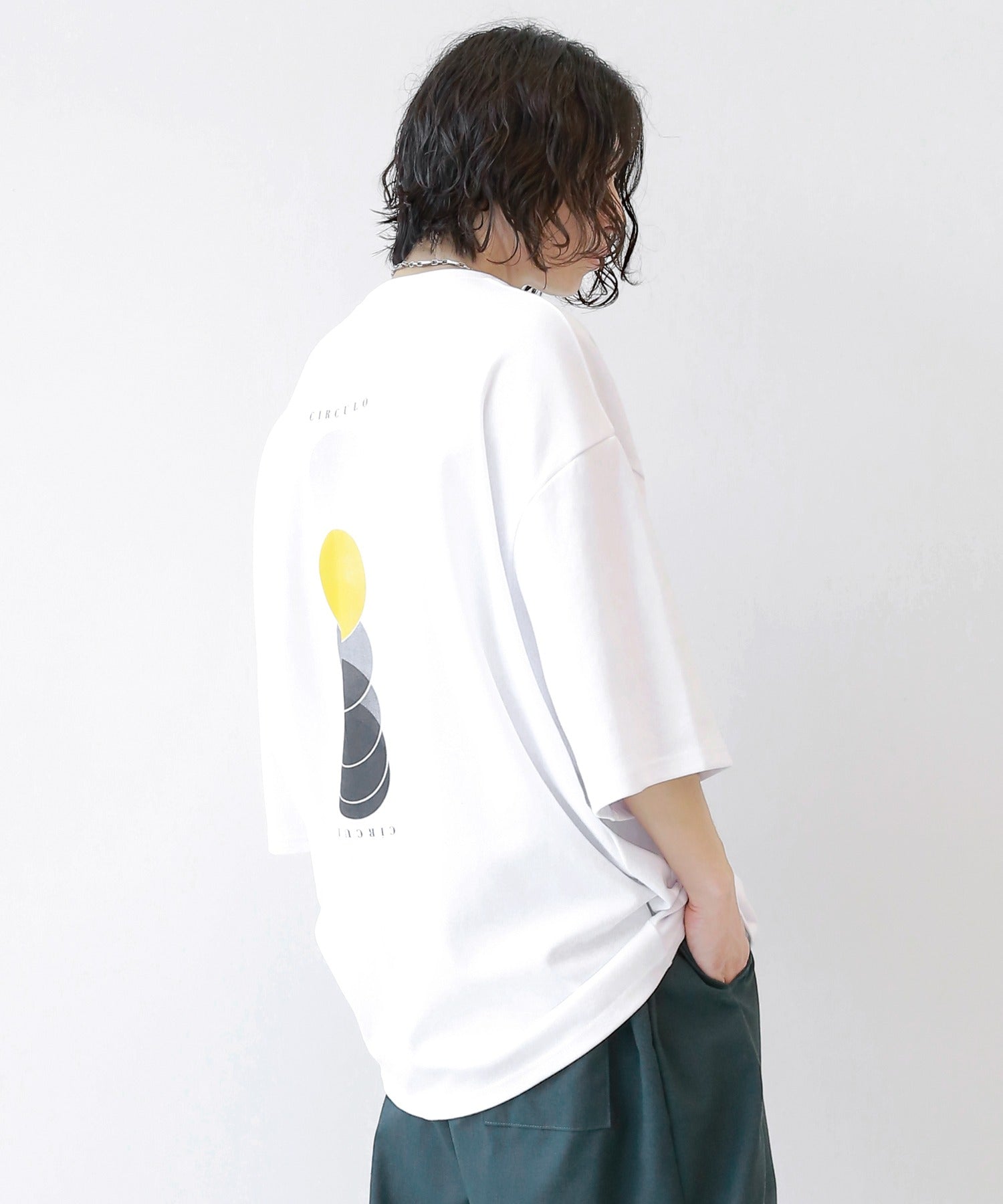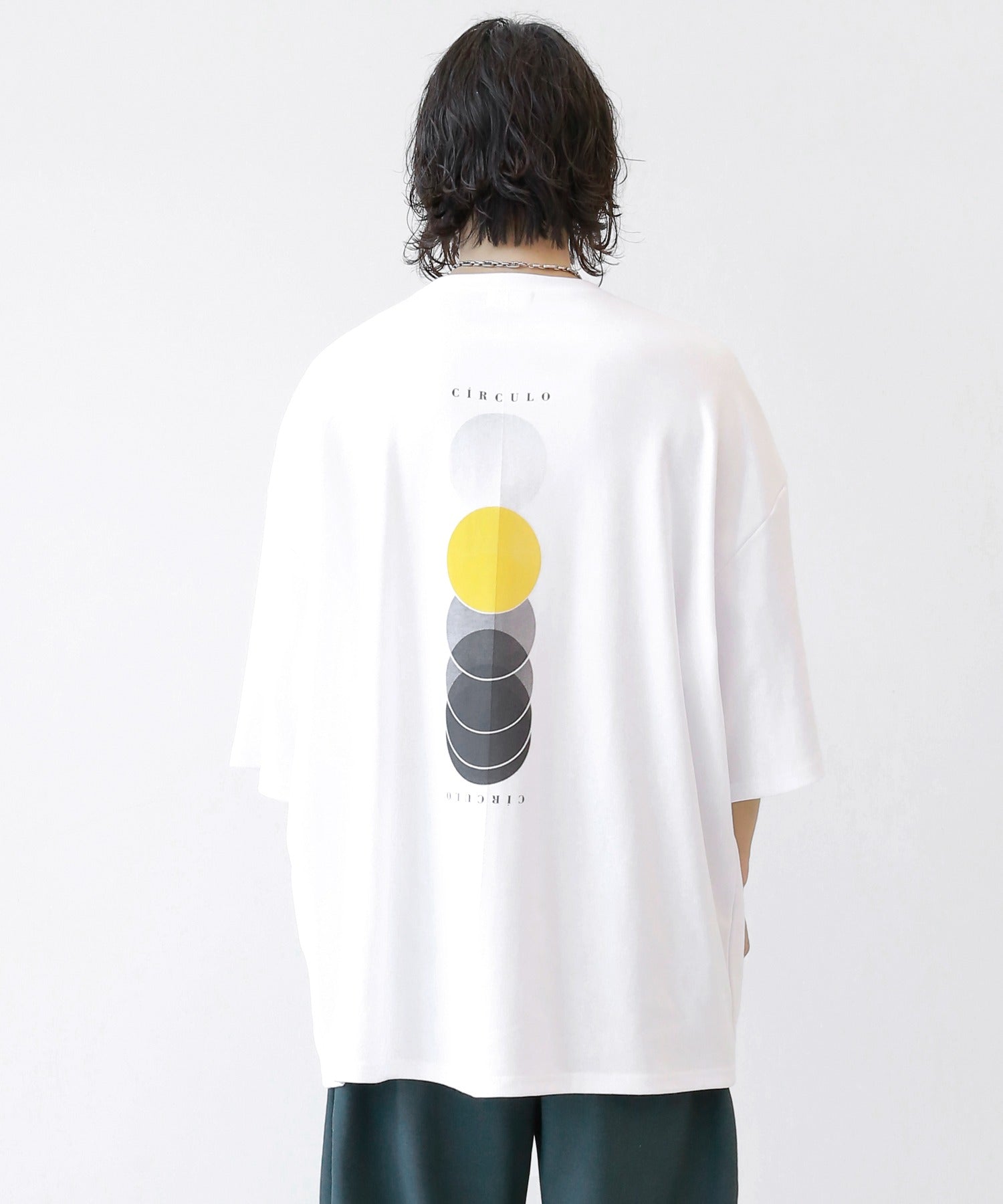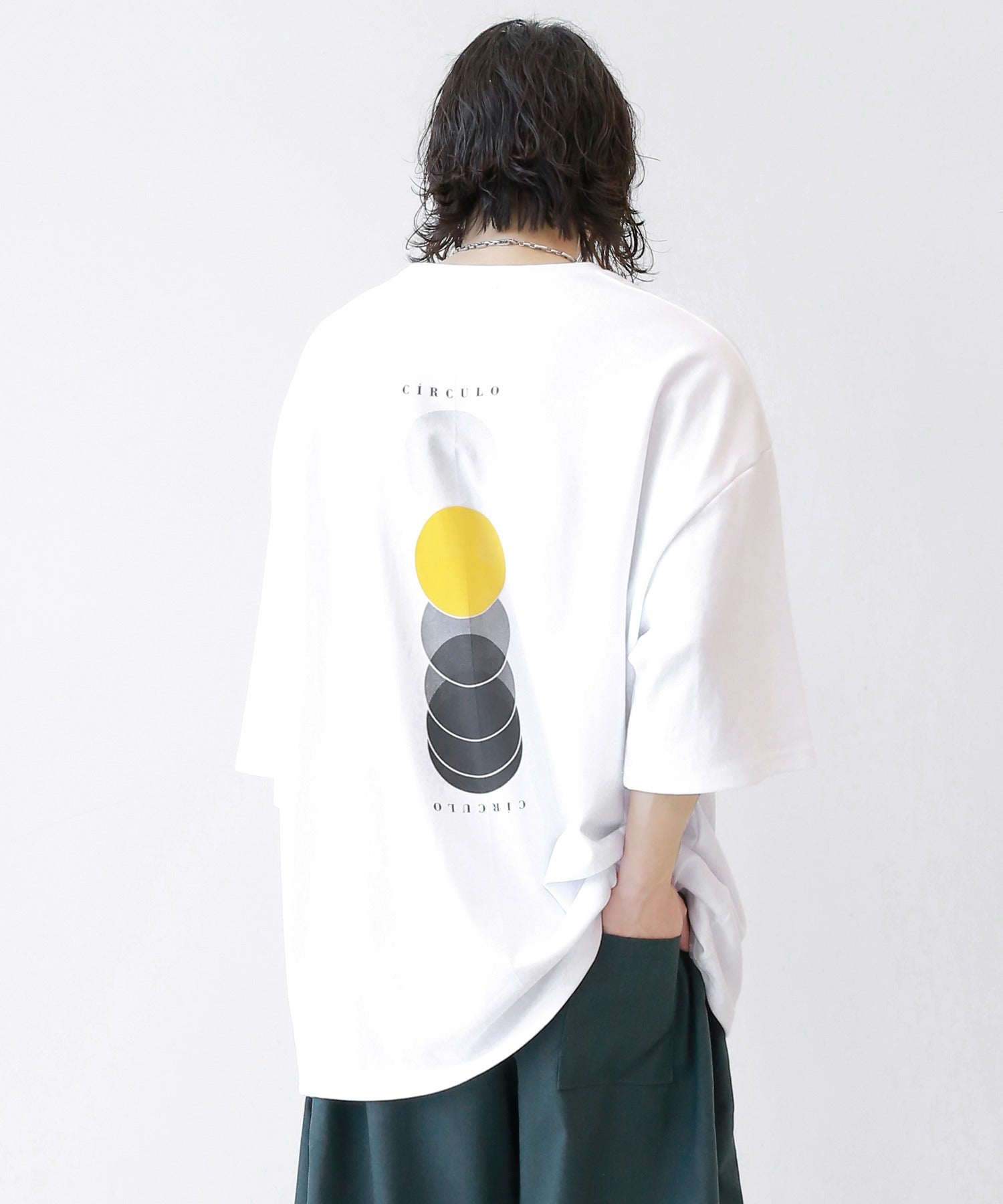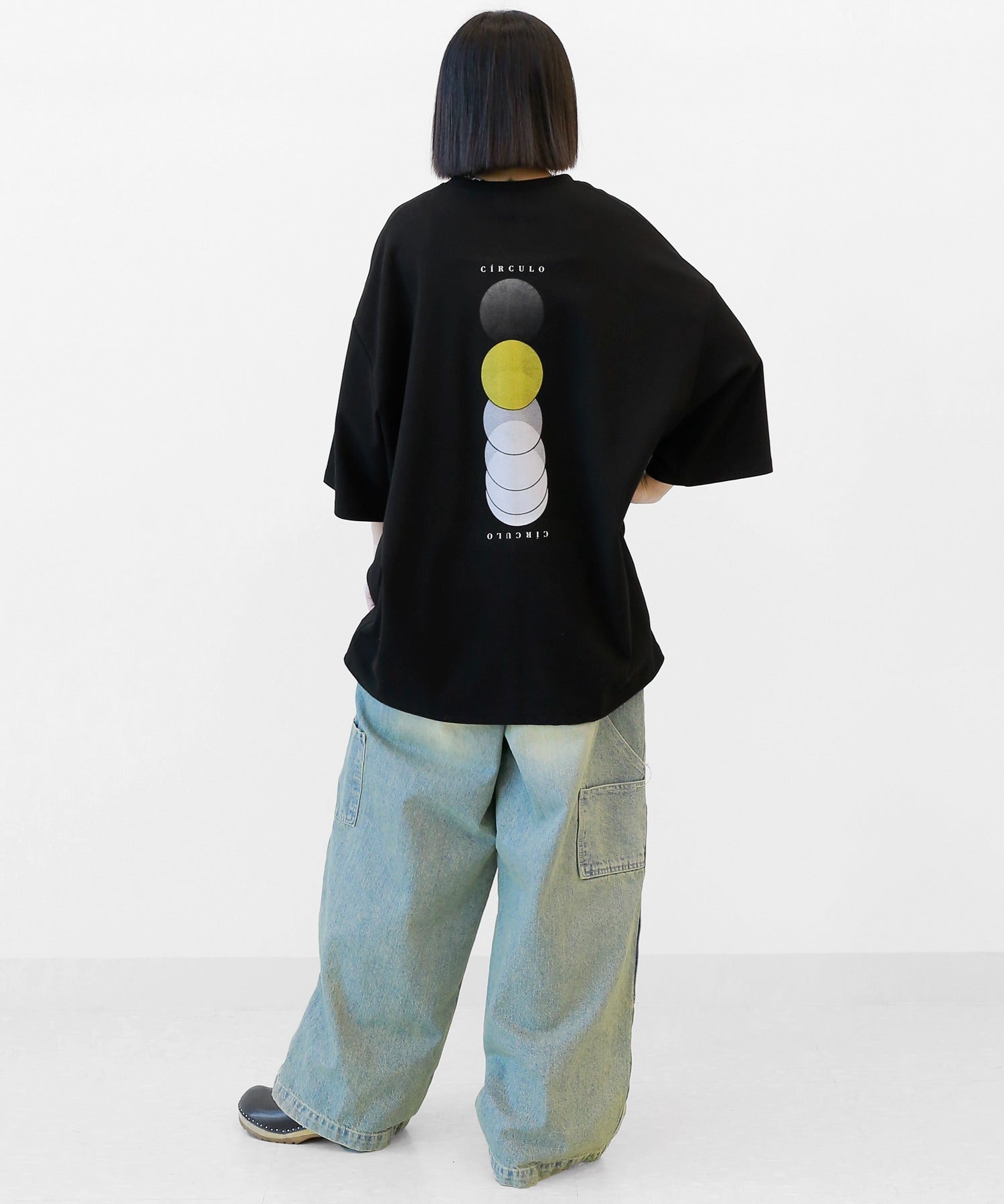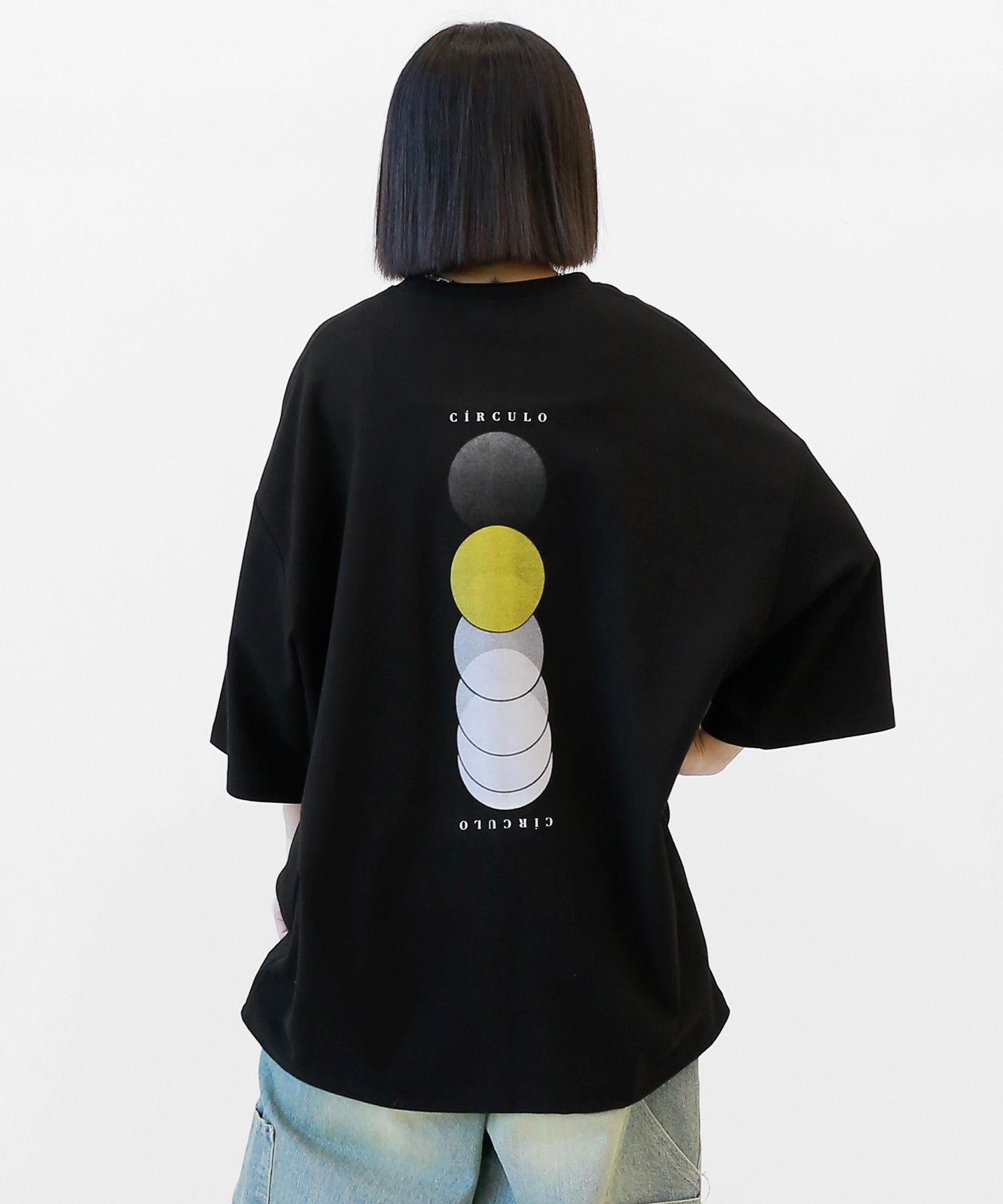 This oversized tee keeps it clean with a small chest logo and contrast seam detail — then surprises with a bold two-tone circle graphic in yellow on the back.