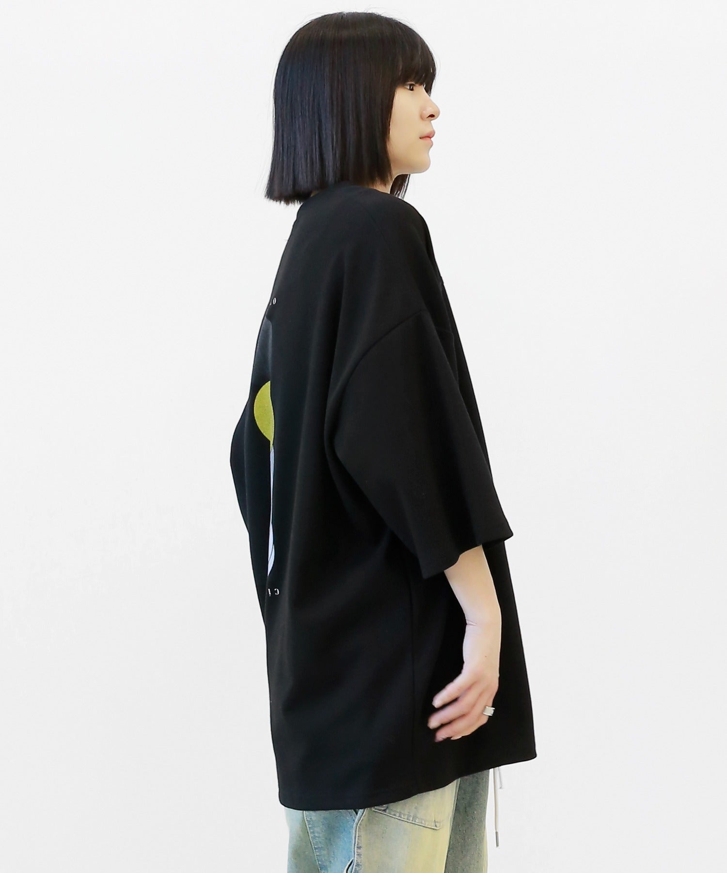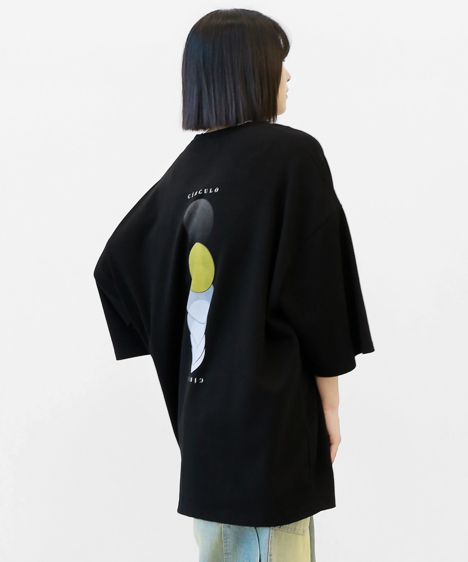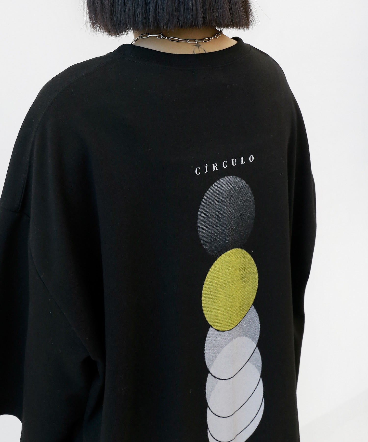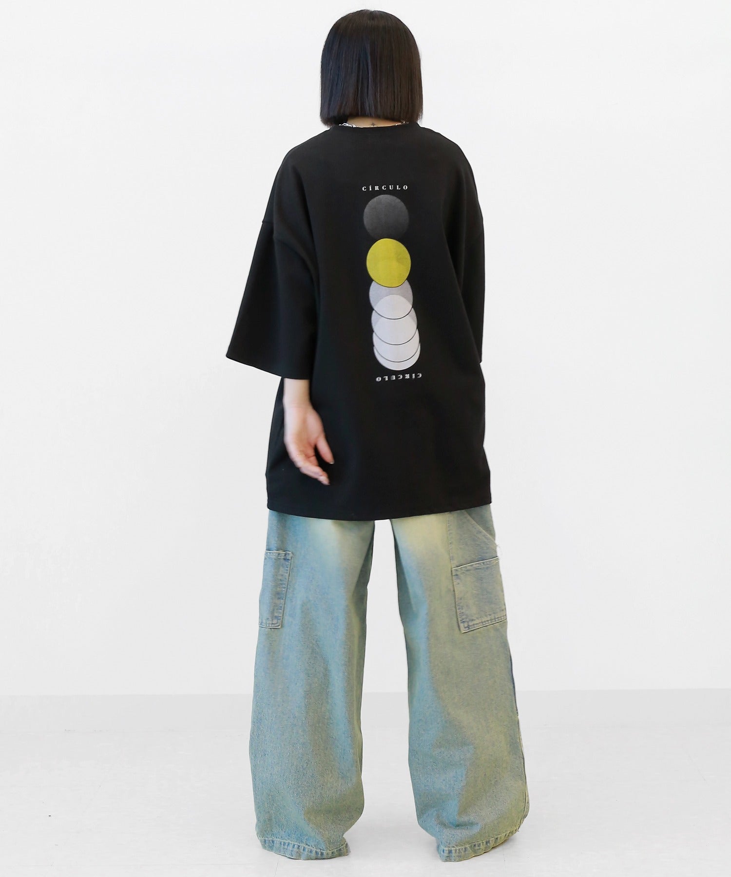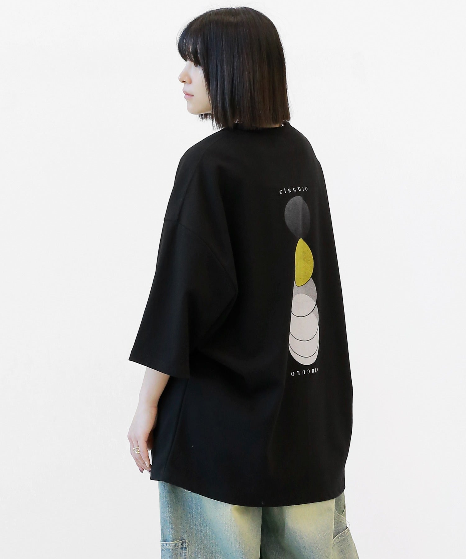 This oversized tee keeps it clean with a small chest logo and contrast seam detail — then surprises with a bold two-tone circle graphic in yellow on the back.