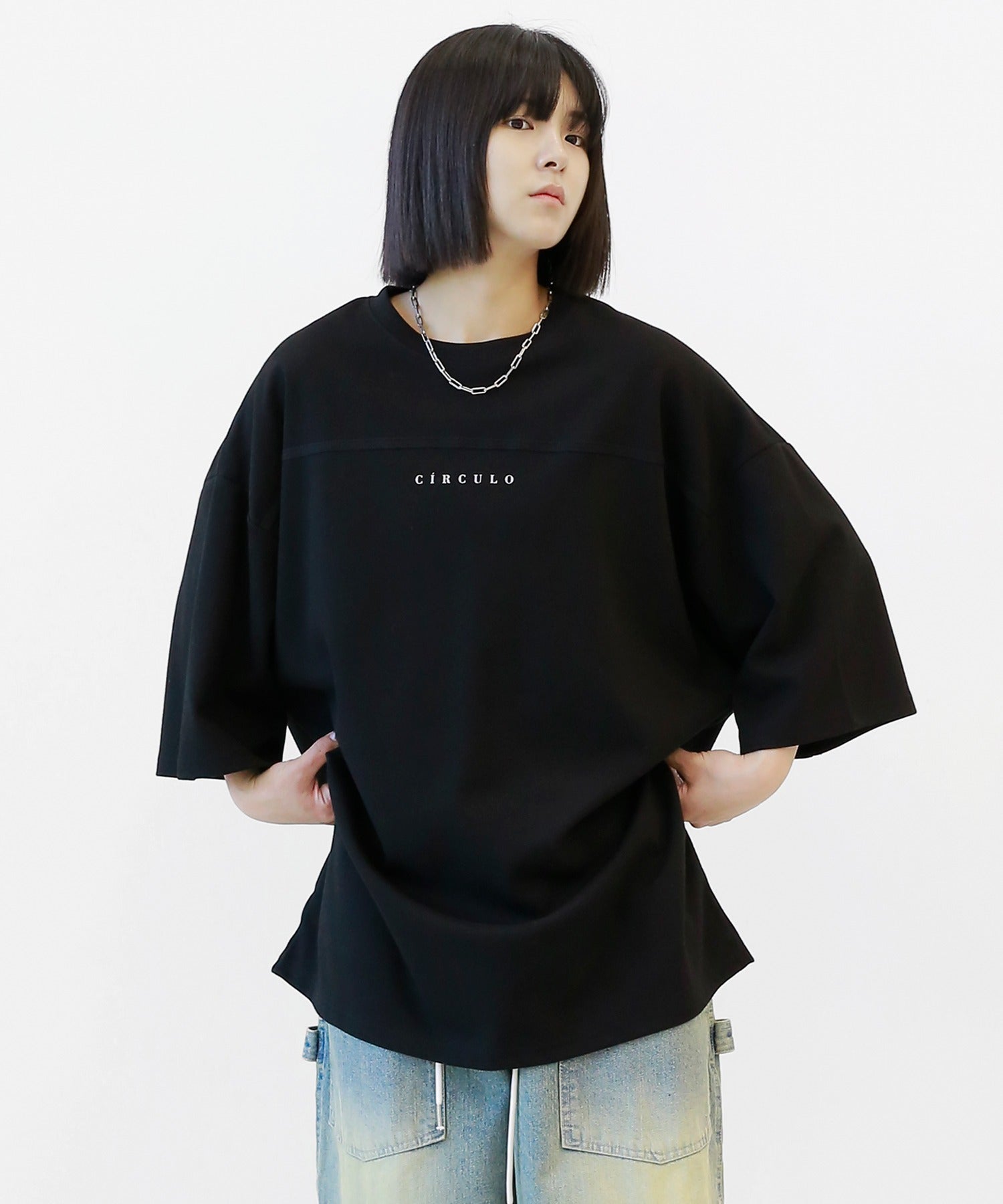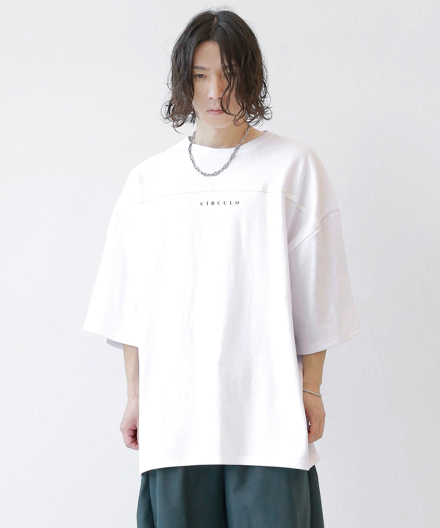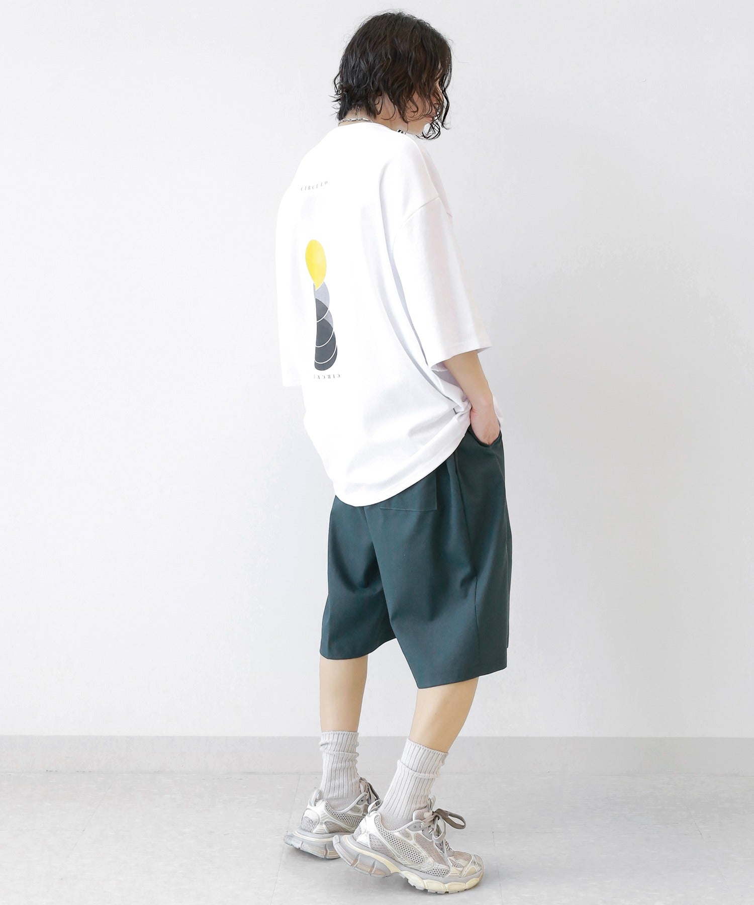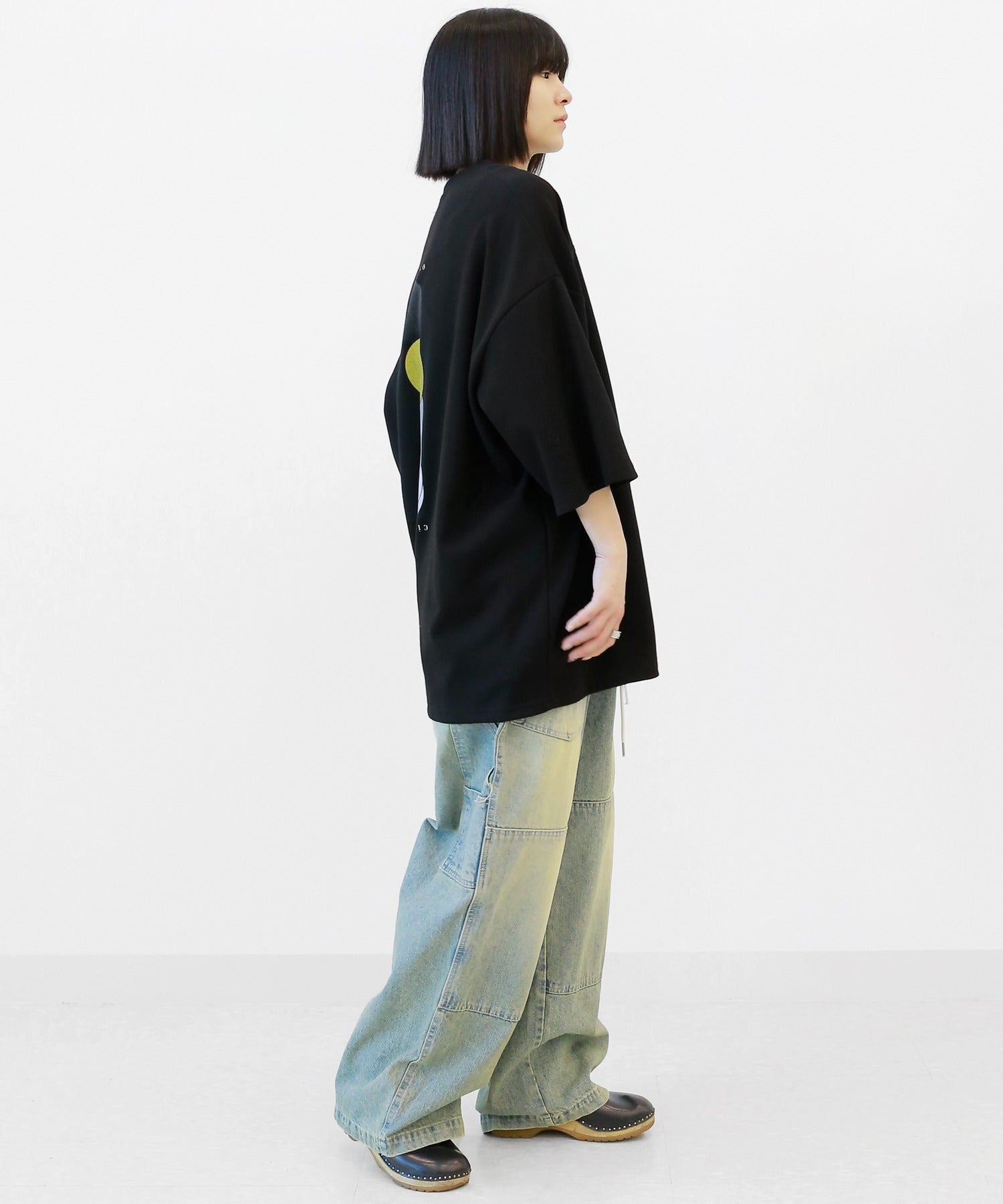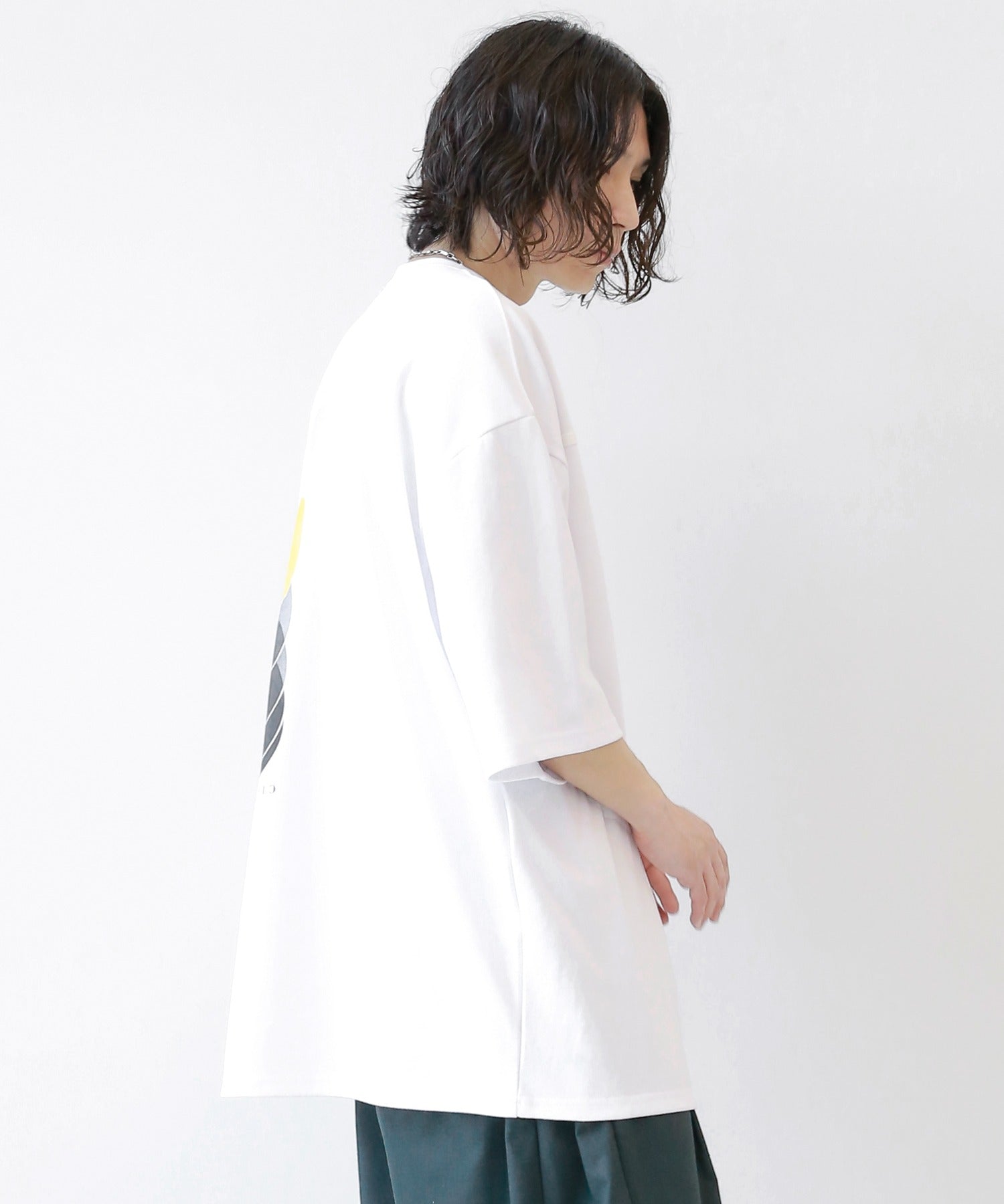 This oversized tee keeps it clean with a small chest logo and contrast seam detail — then surprises with a bold two-tone circle graphic in yellow on the back.
