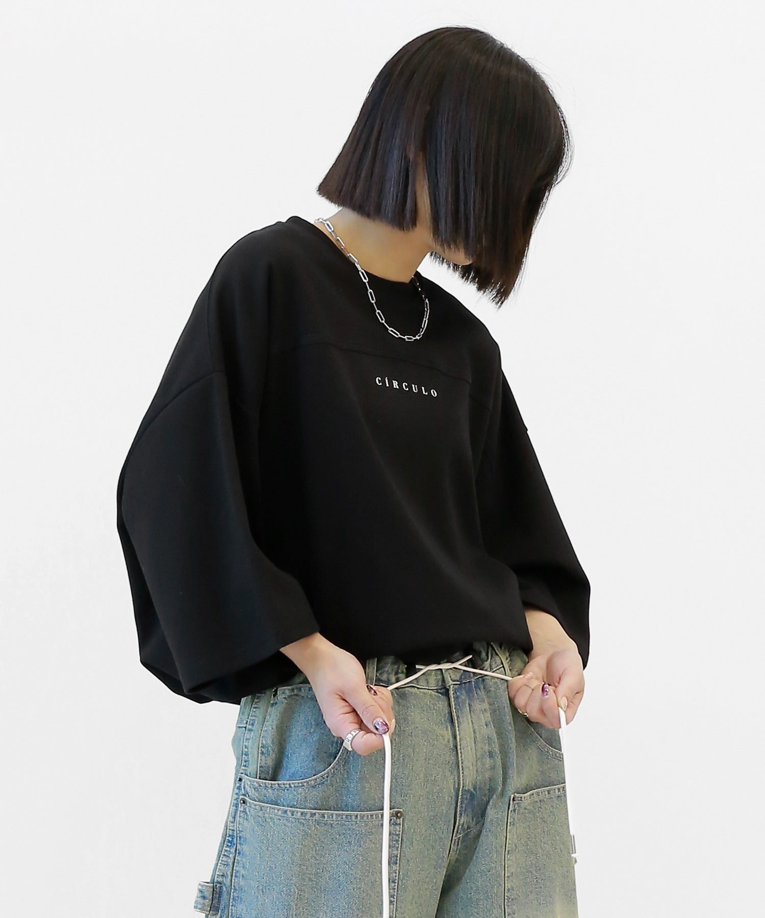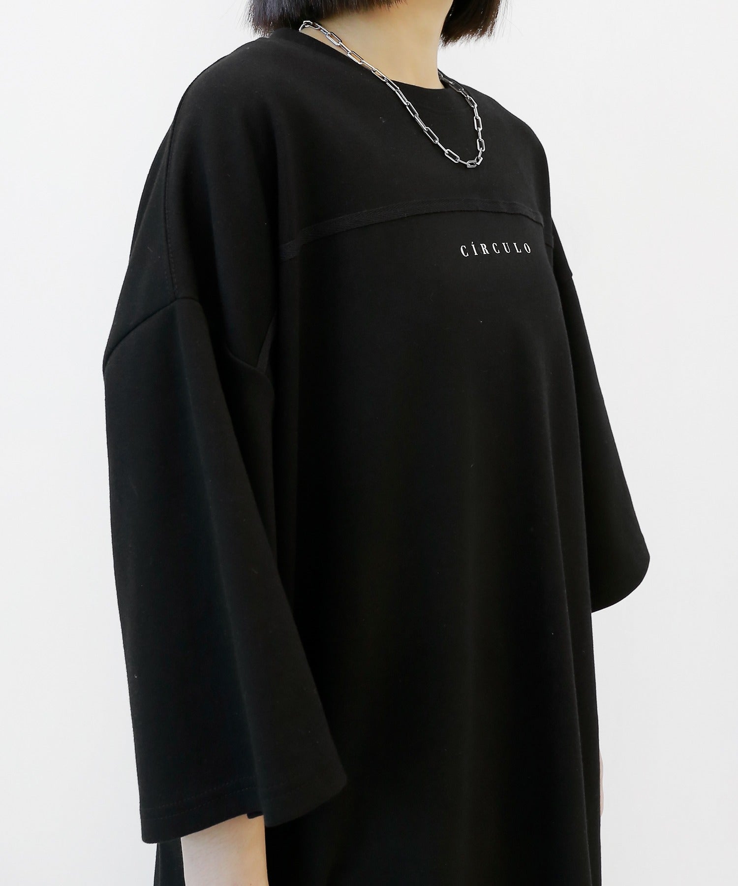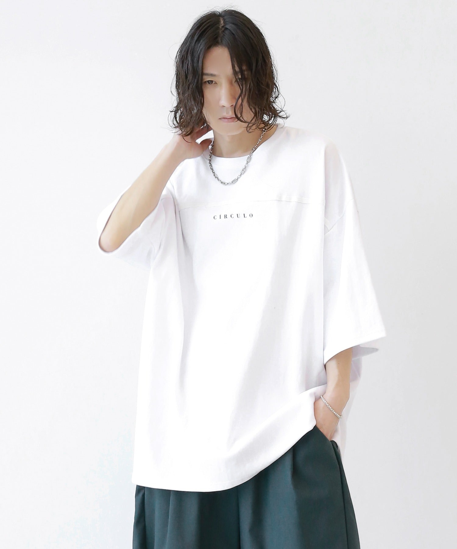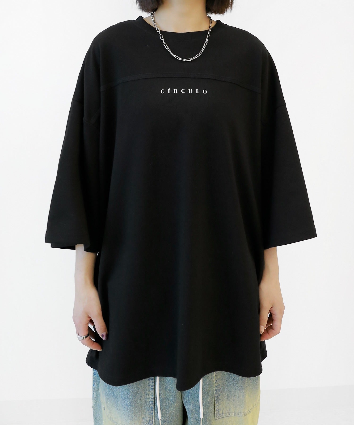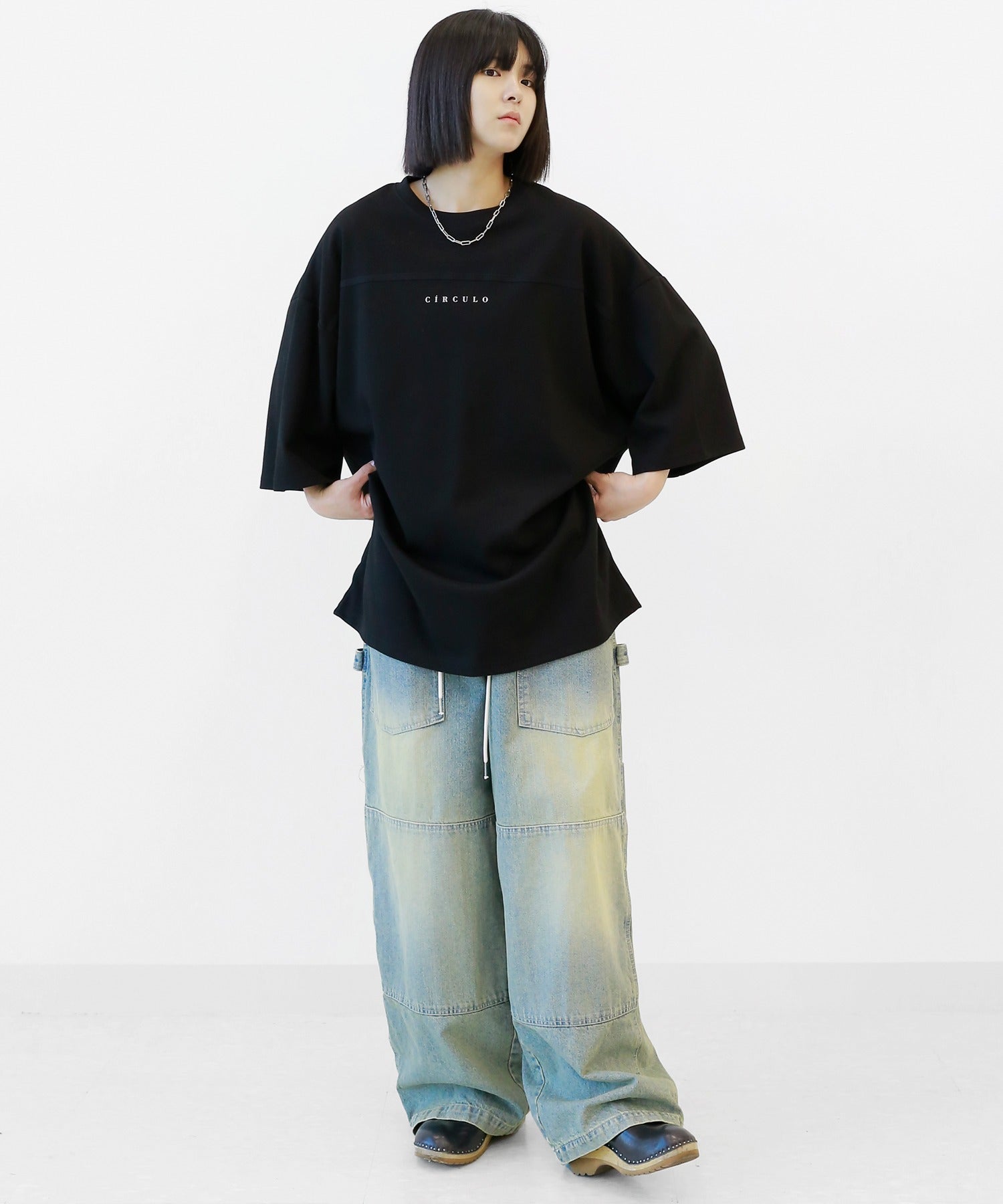 This oversized tee keeps it clean with a small chest logo and contrast seam detail — then surprises with a bold two-tone circle graphic in yellow on the back.