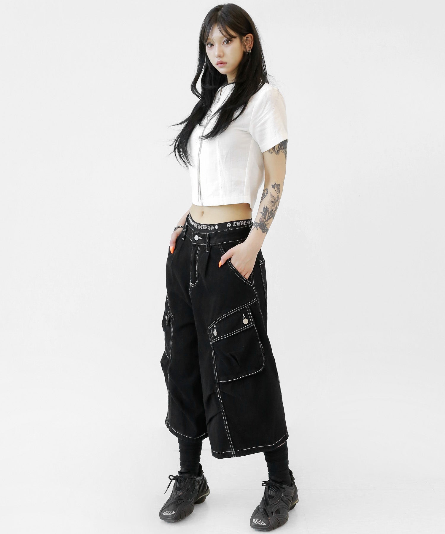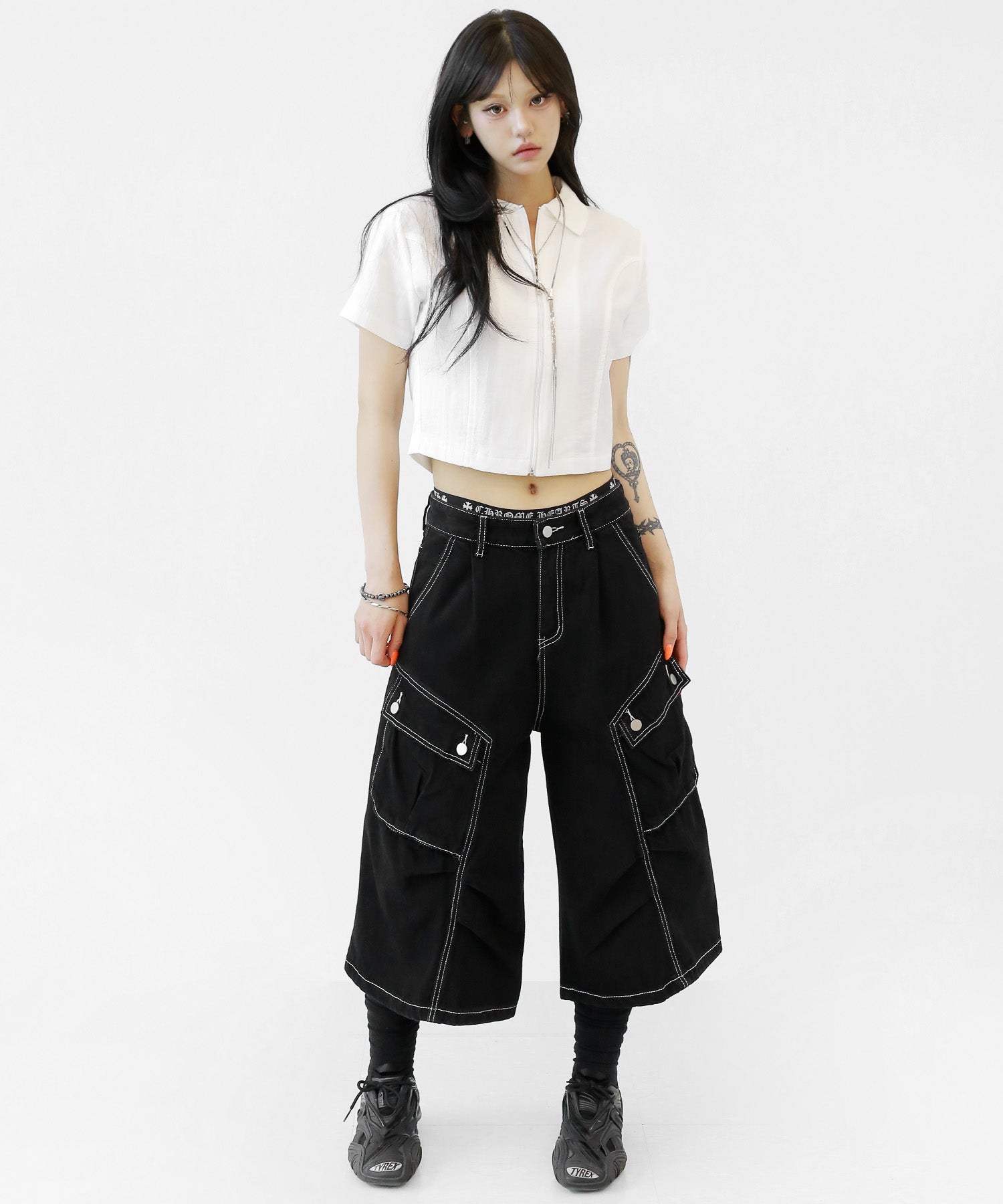 WOMAN: 167 cm | 48 kg | Wearing FREE SIZE (BLACK, IVORY)