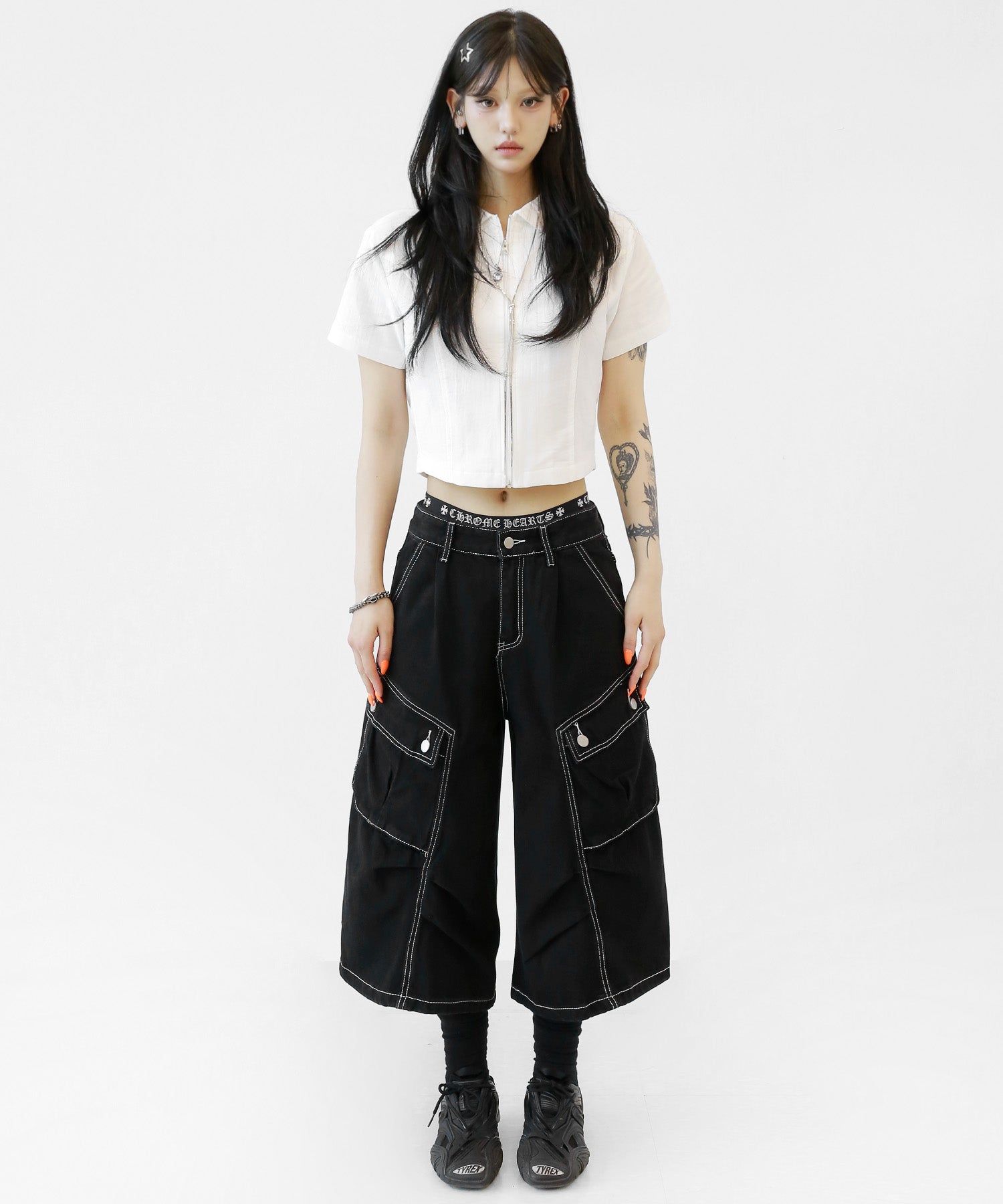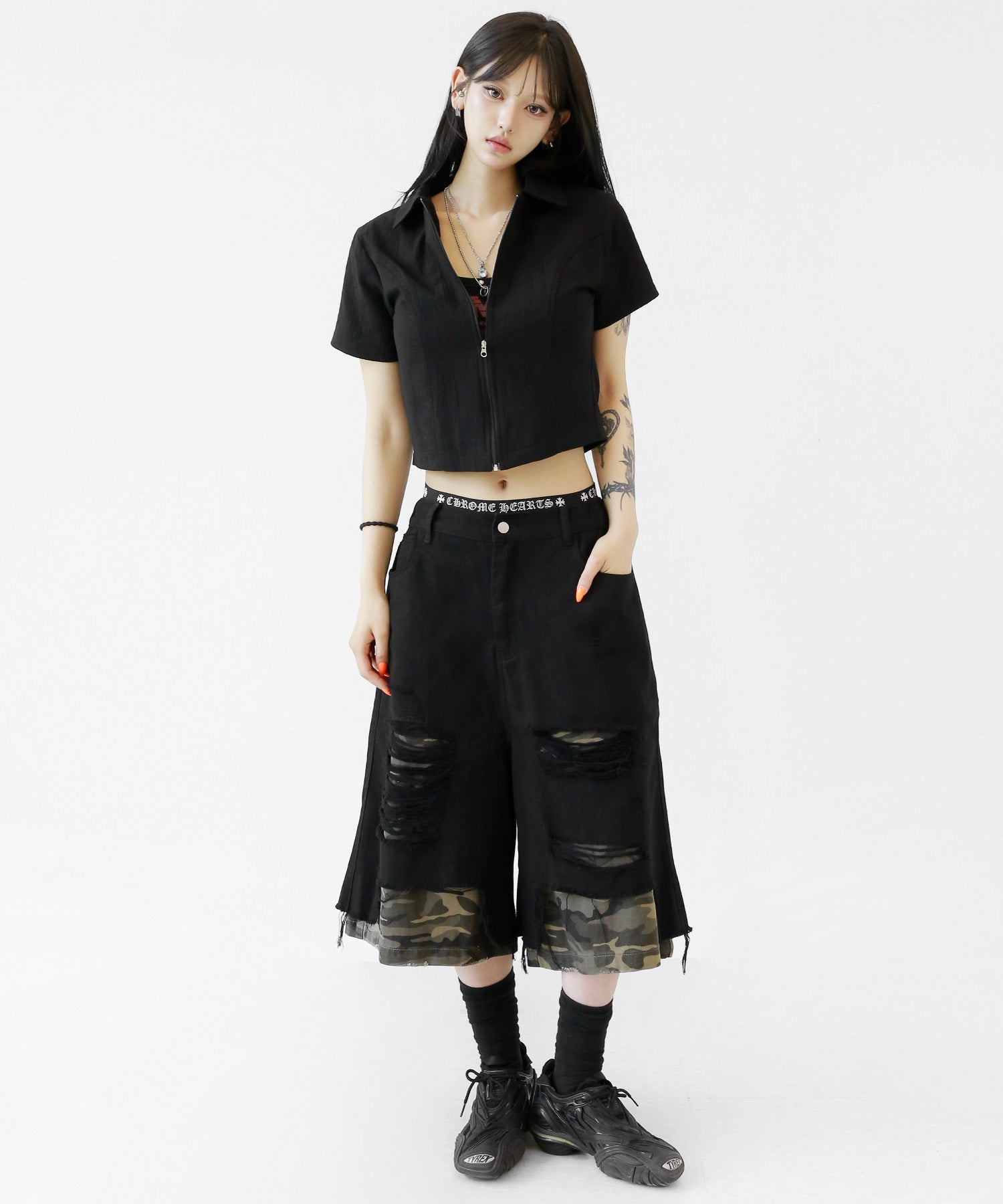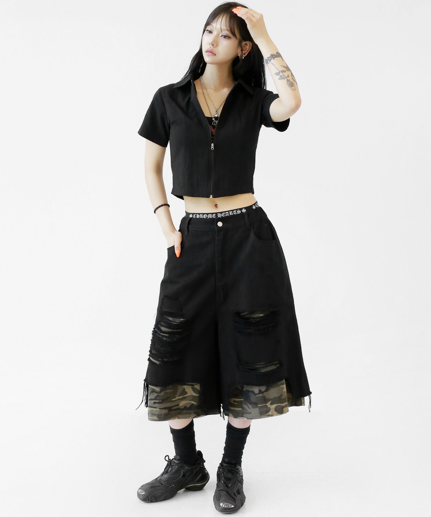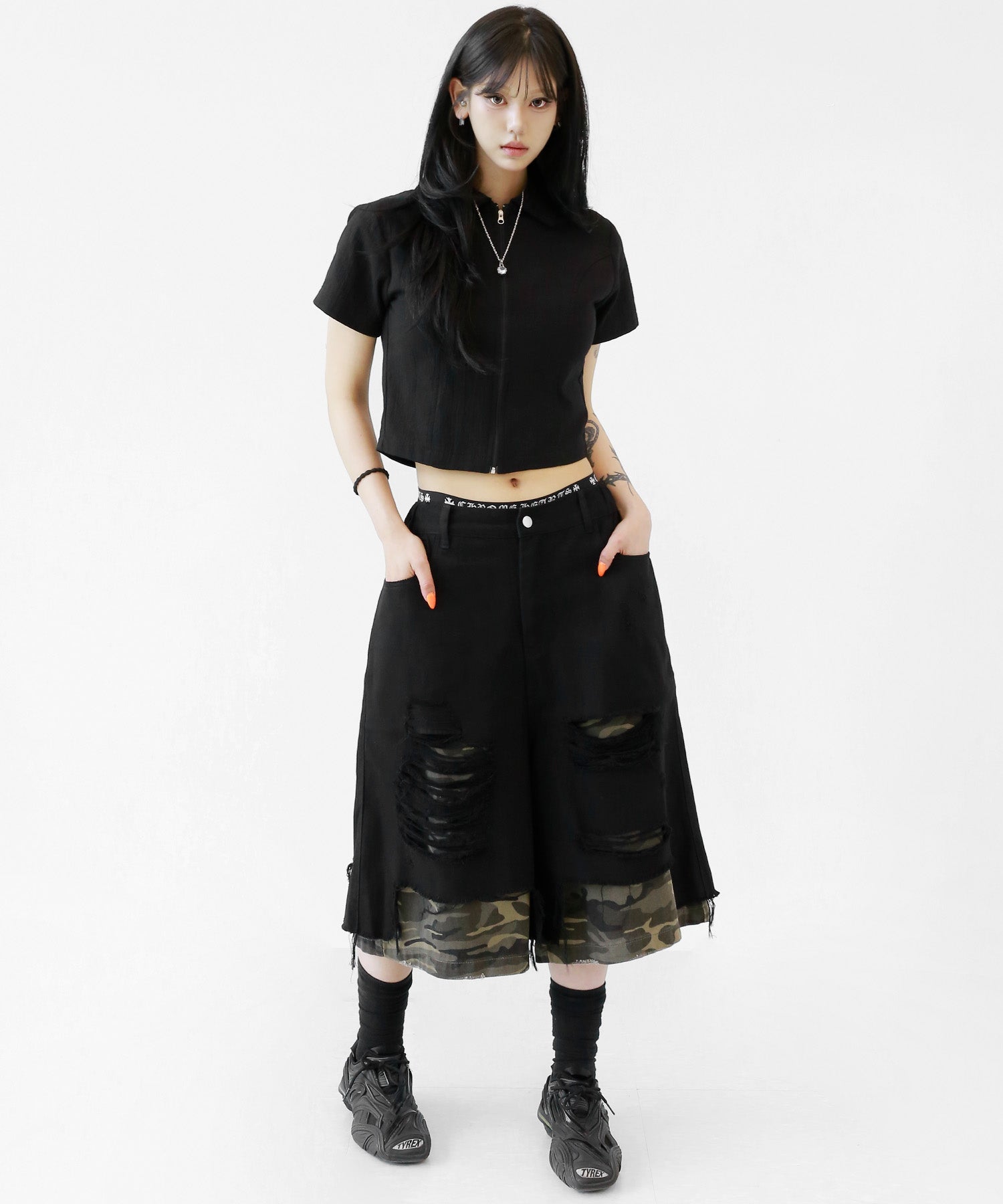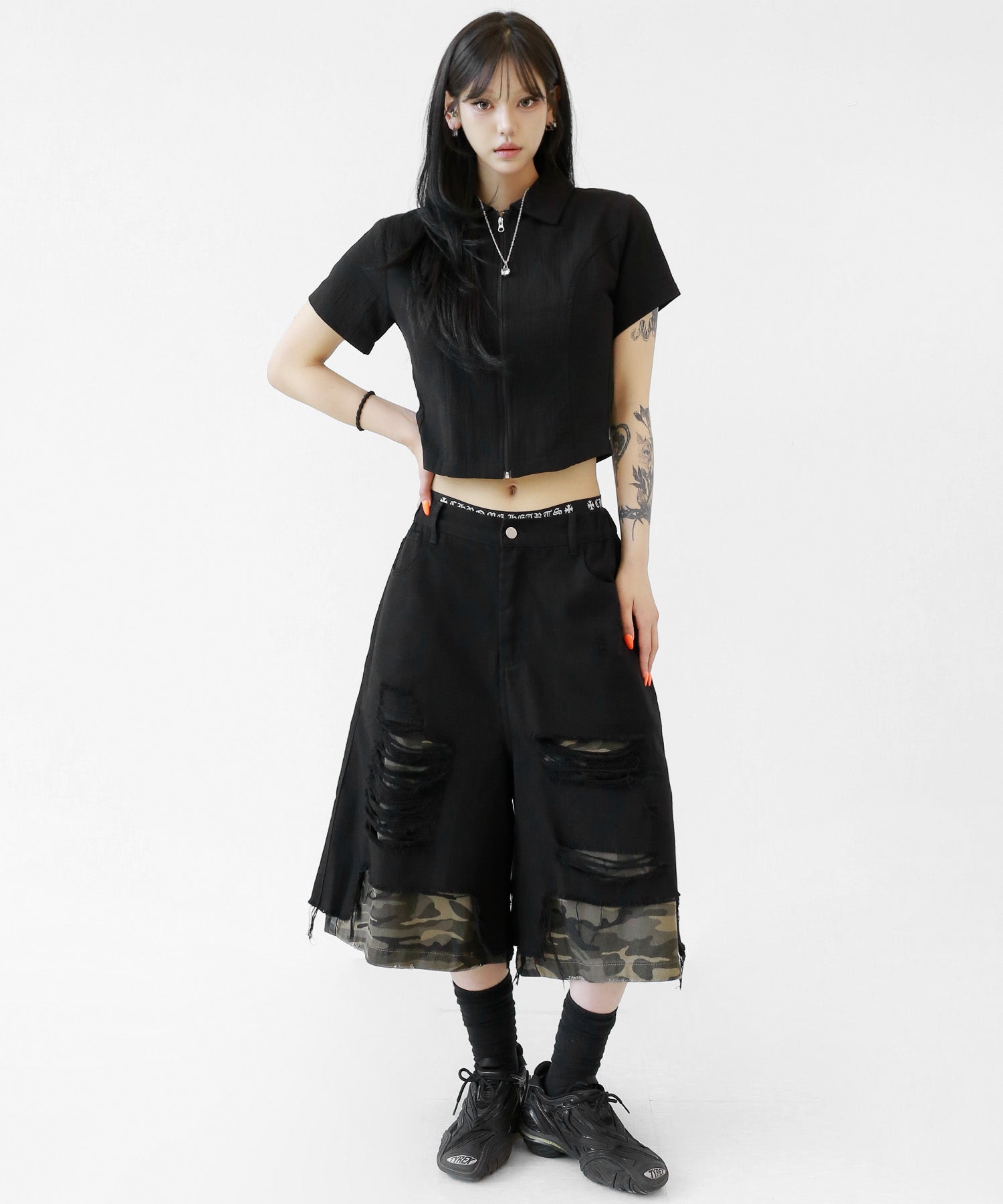 A sleek zip-up cropped tee with a clean, minimal silhouette. The front zipper offers styling versatility—wear it open for a casual vibe or zipped up for a chic look. Perfectly pairs with high-waisted bottoms to enhance your silhouette.