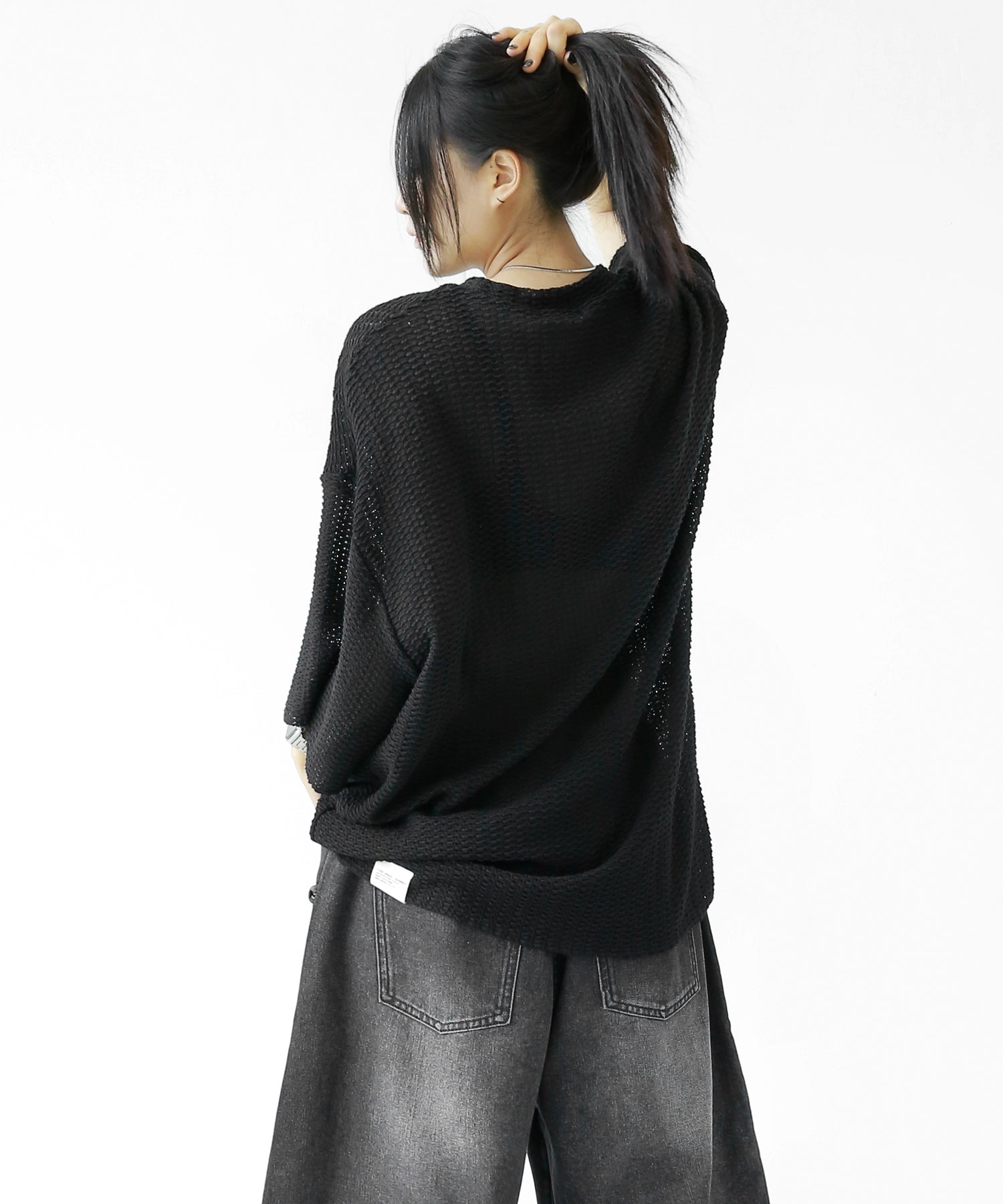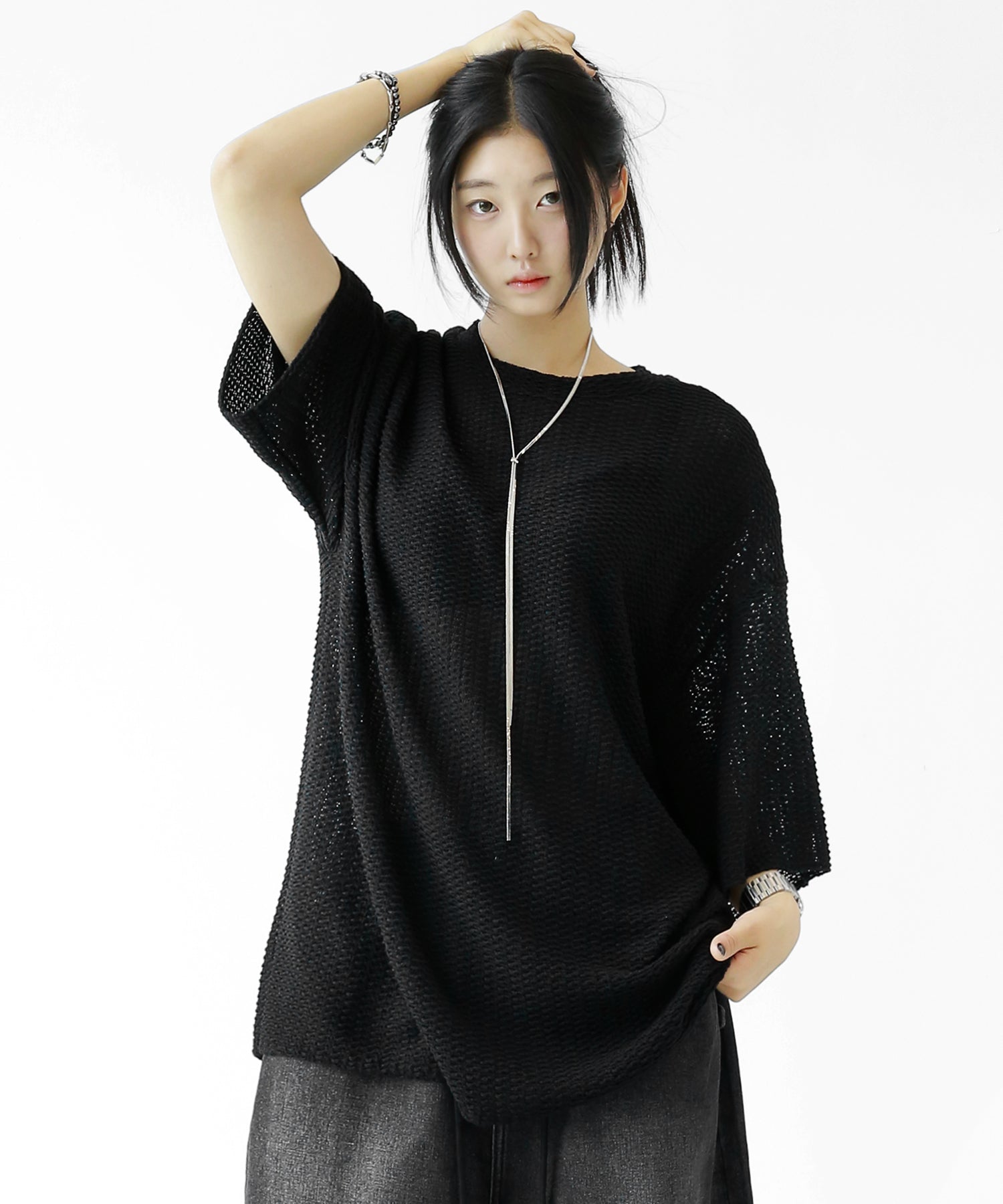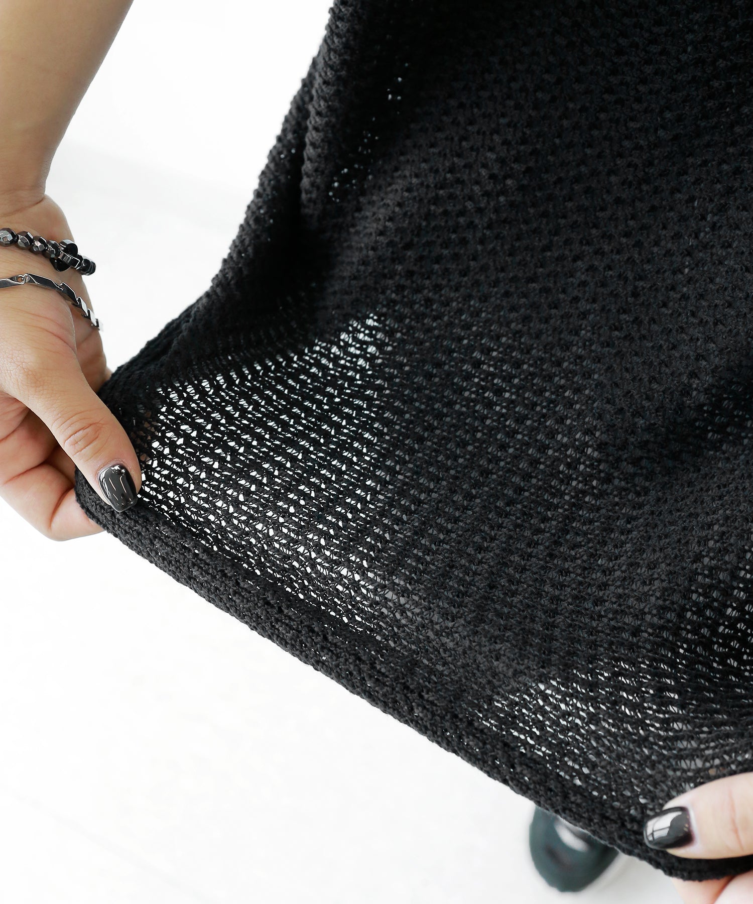 A breezy summer knit with soft sheerness and a minimalist monochrome palette. Lightweight and versatile, it's the perfect layering piece for warm-weather styling.