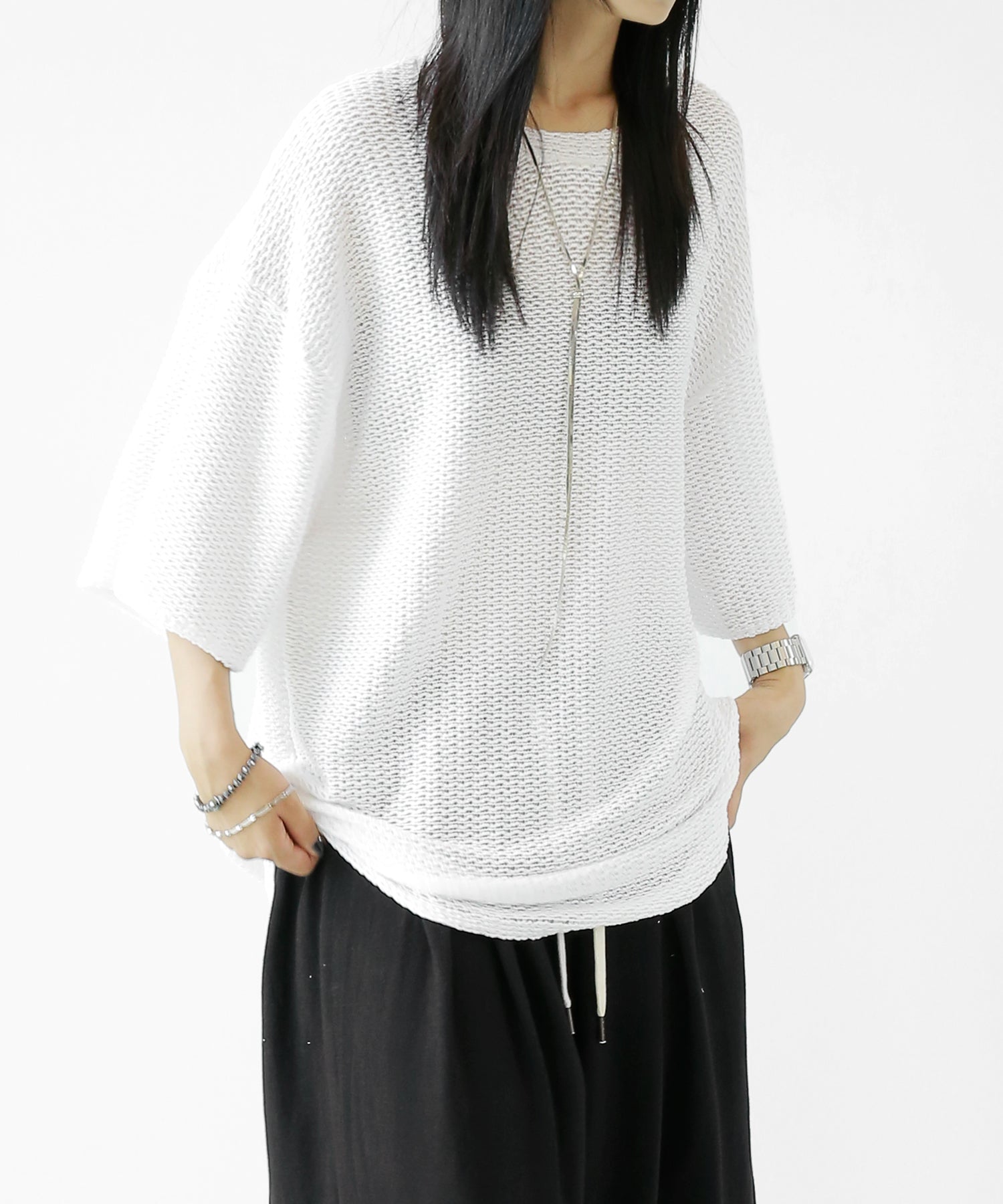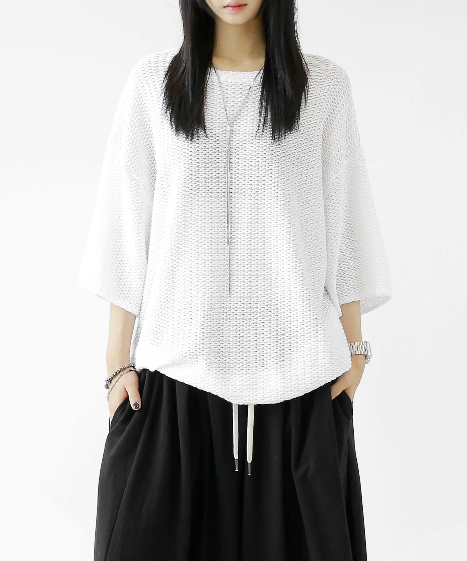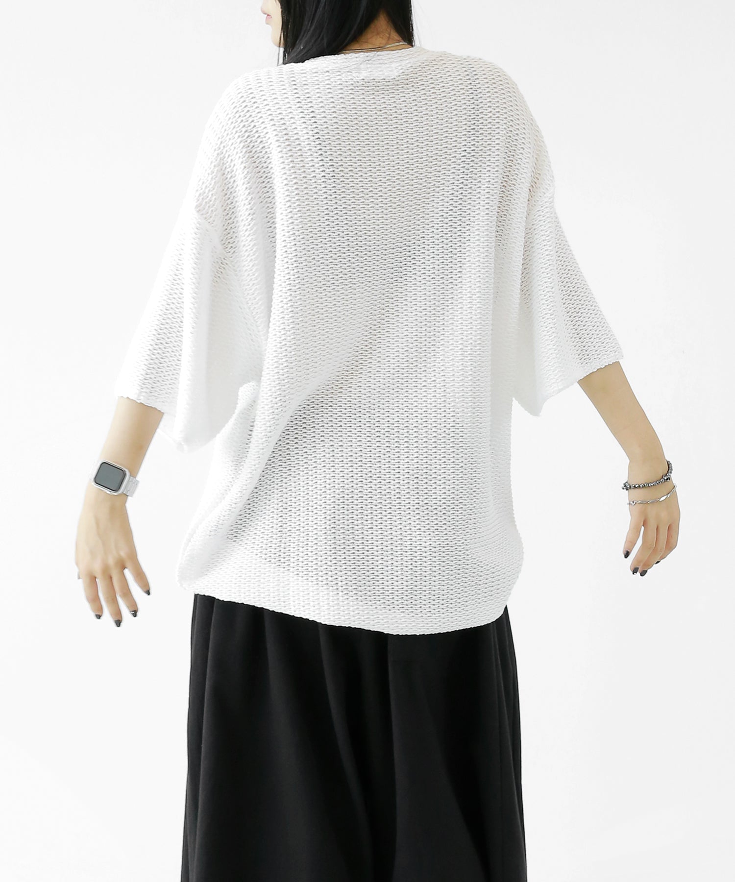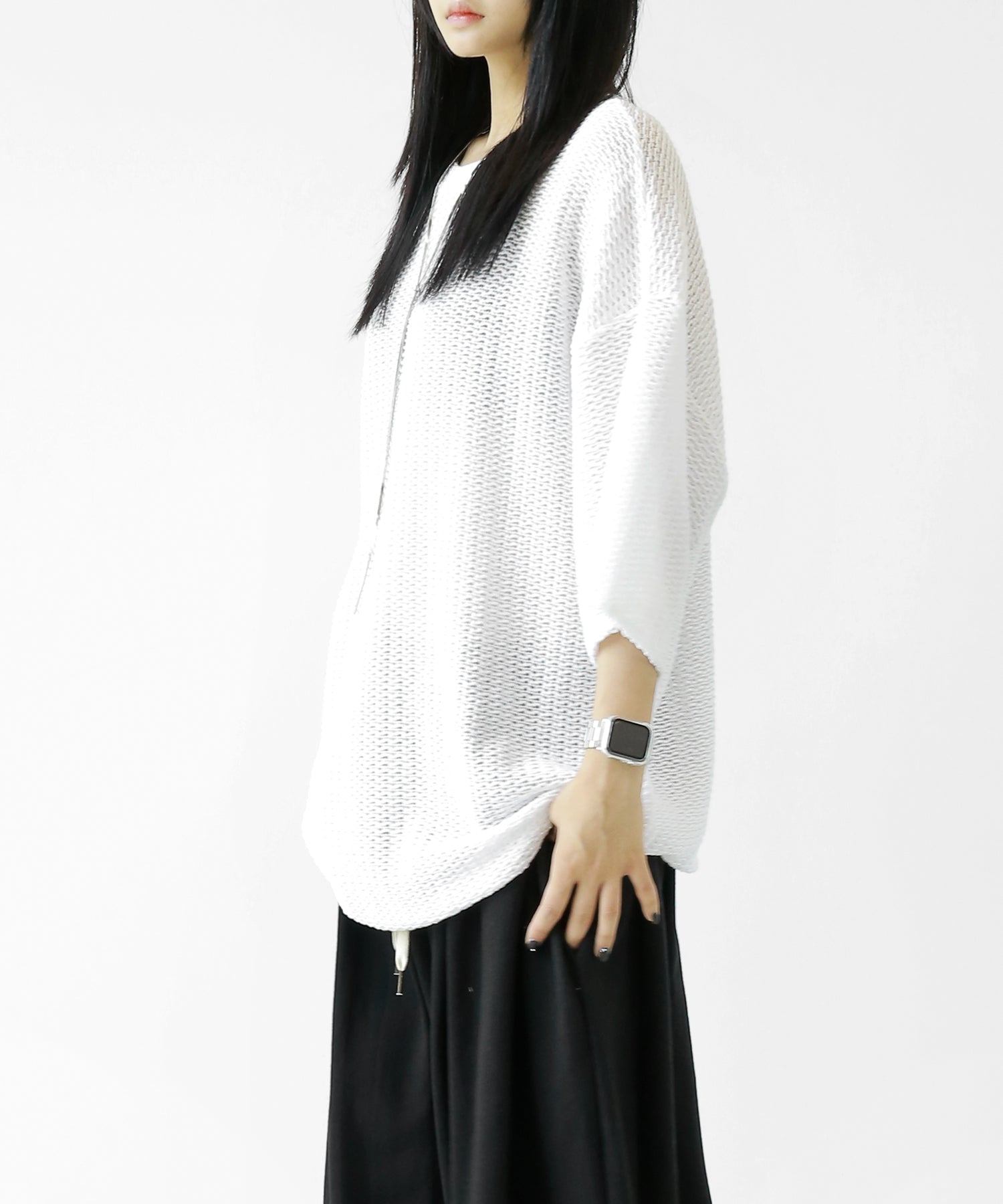 A breezy summer knit with soft sheerness and a minimalist monochrome palette. Lightweight and versatile, it's the perfect layering piece for warm-weather styling.
